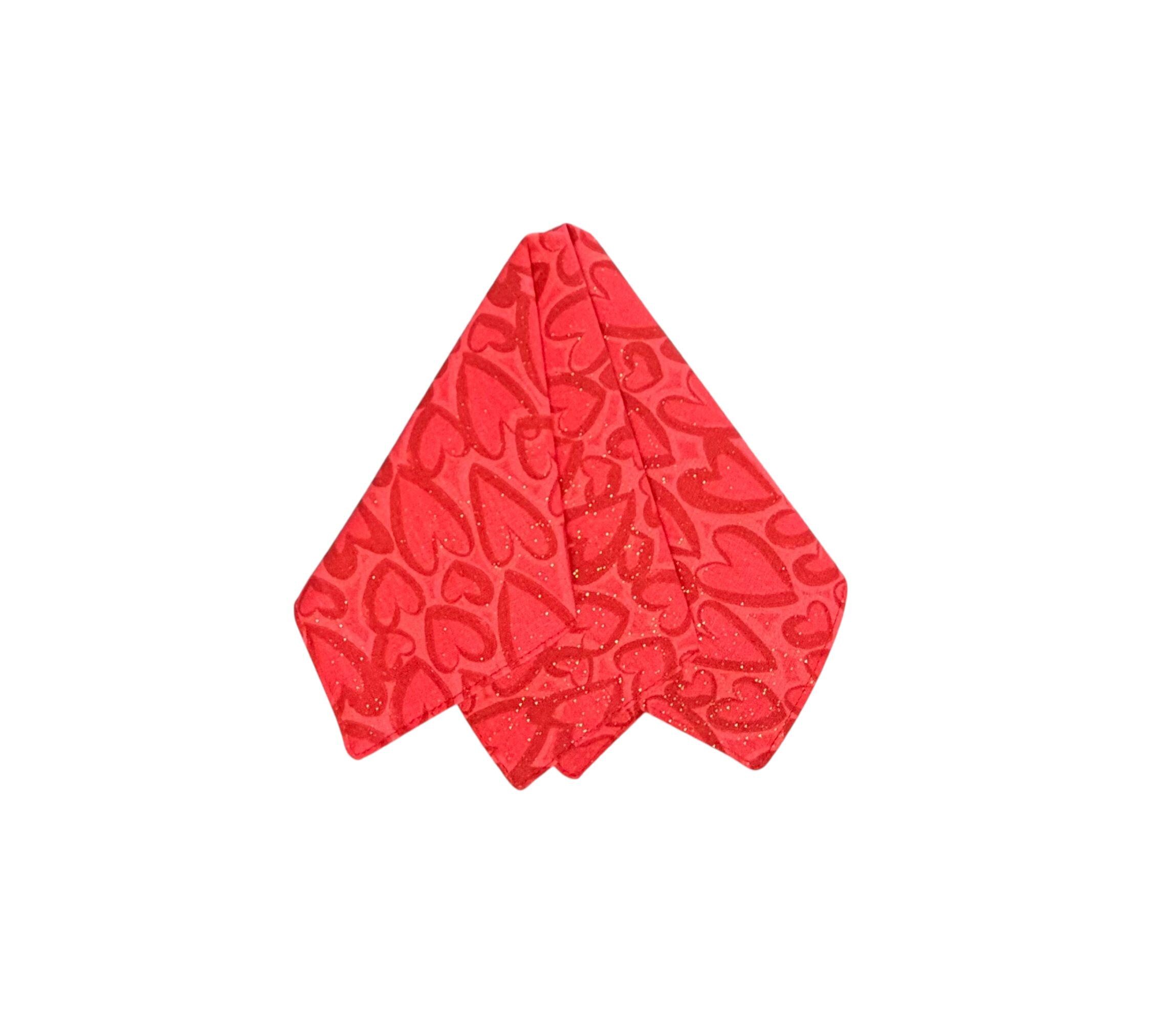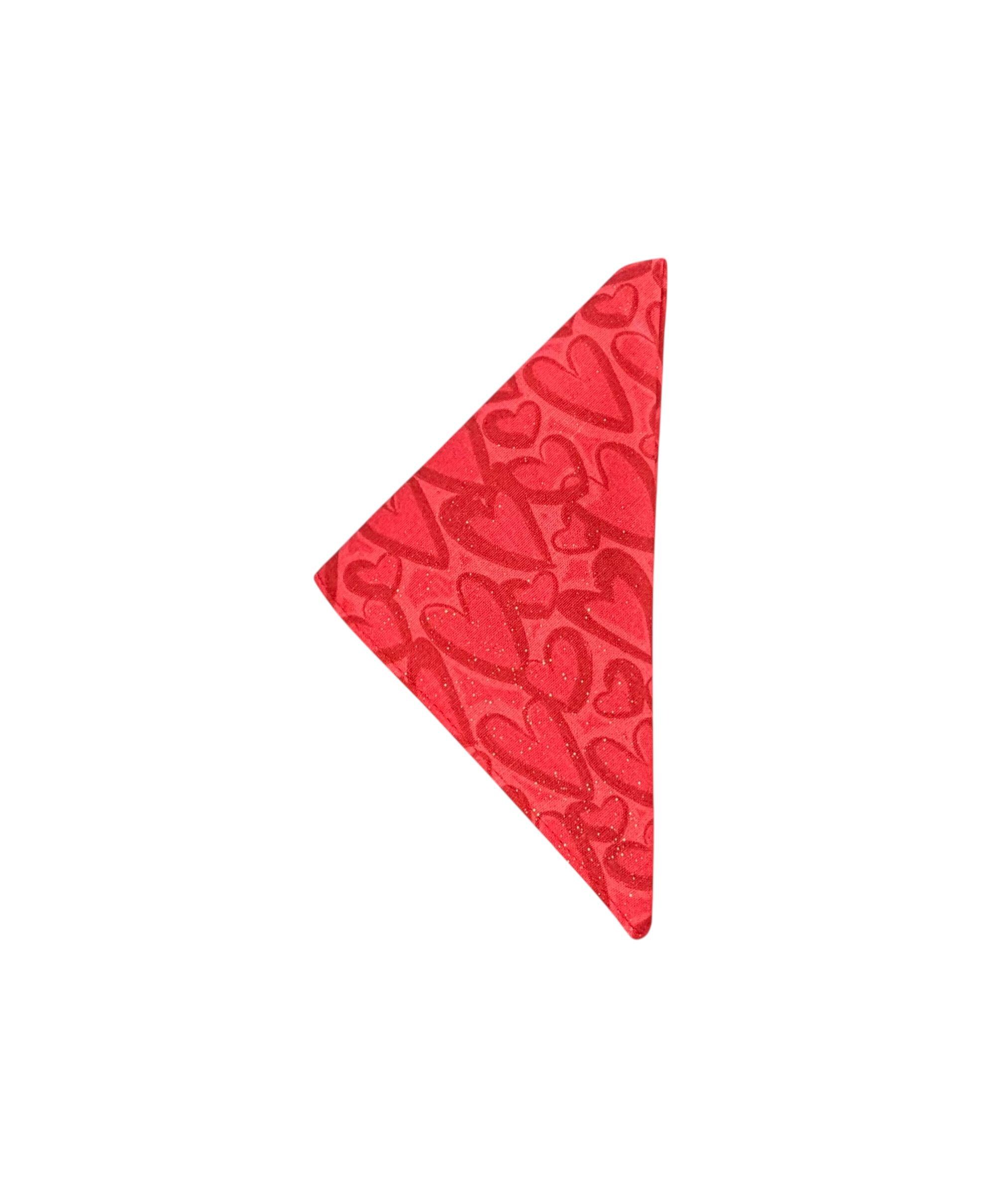 Valentine Pocket Square - Red Hearts with Iridecent Touches Cotton Handkerchief - Adult Sizing - Handcrafted in the USA by Holiday Bow Ties, LLC - The "Winslow"