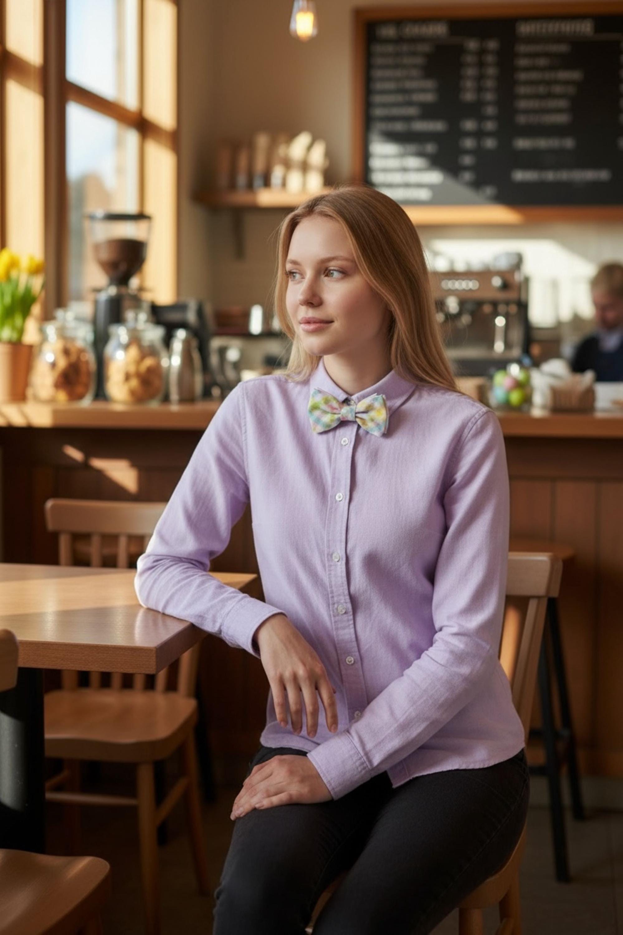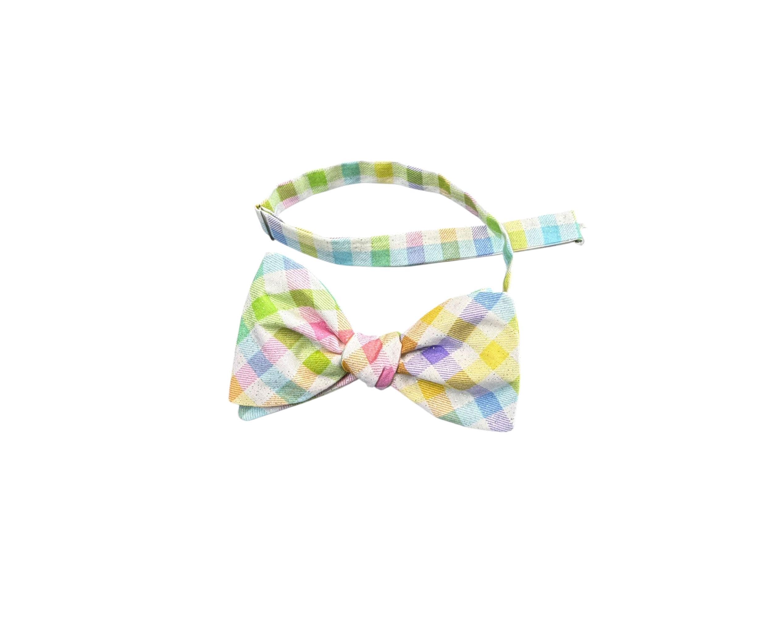 Handmade Pre-tied Bow Tie - Pastel Spring Plaid Easter Holiday Multi-Colored Celebration with Touches of Iridescent Sparkles - Adult Men's Sizing - Crafted in the USA by Holiday Bow Ties, LLC - The "Palmer" Bow Tie