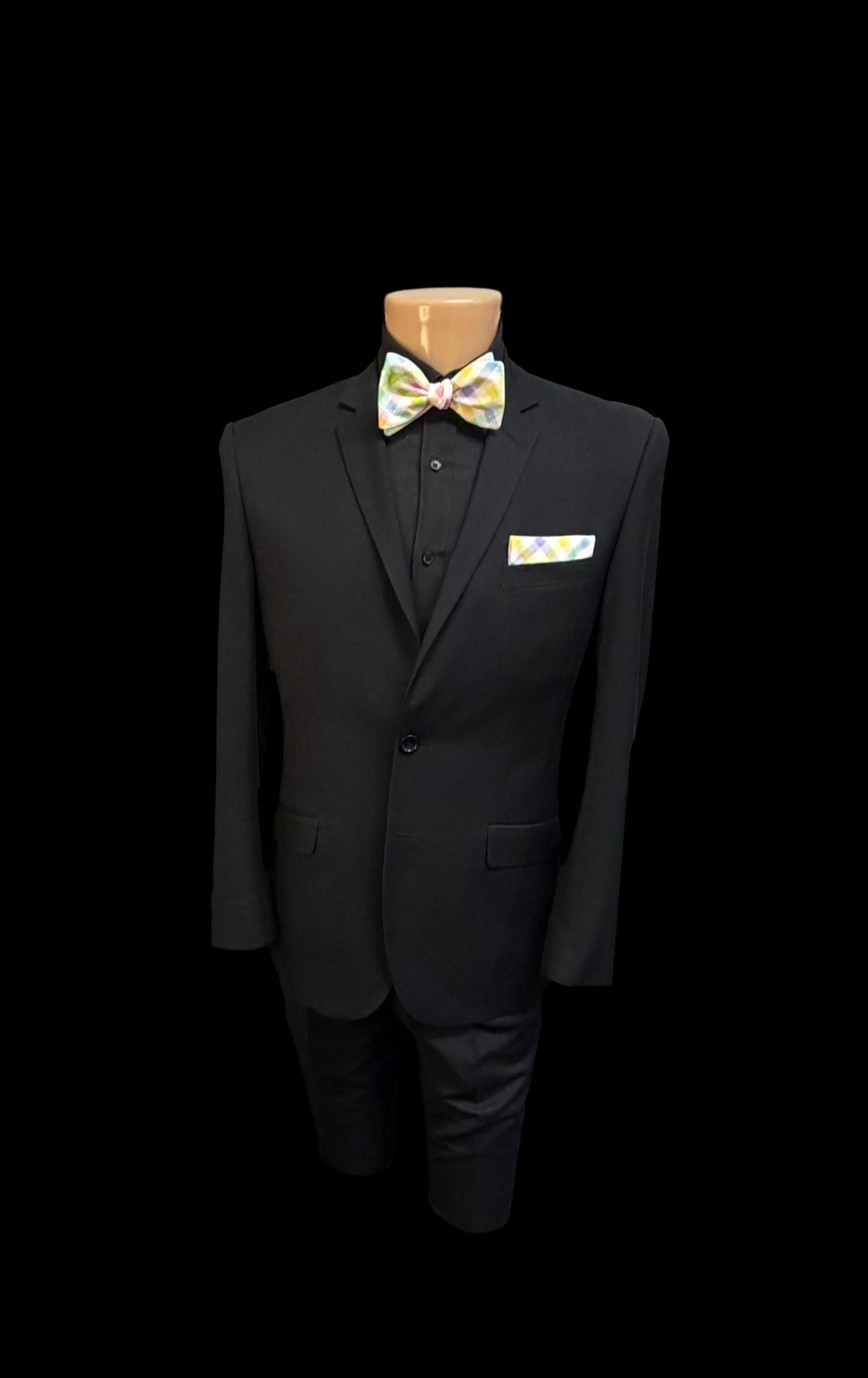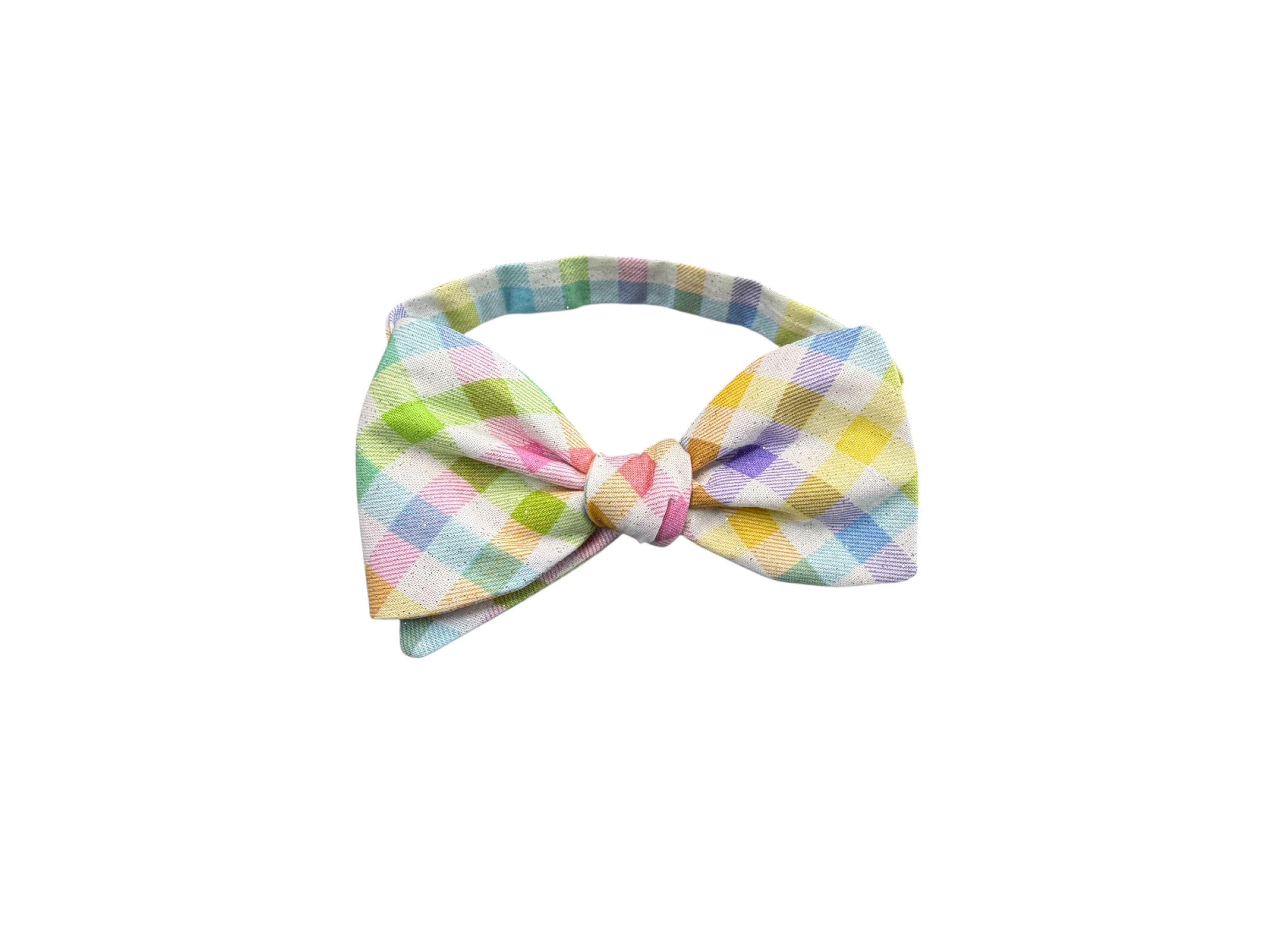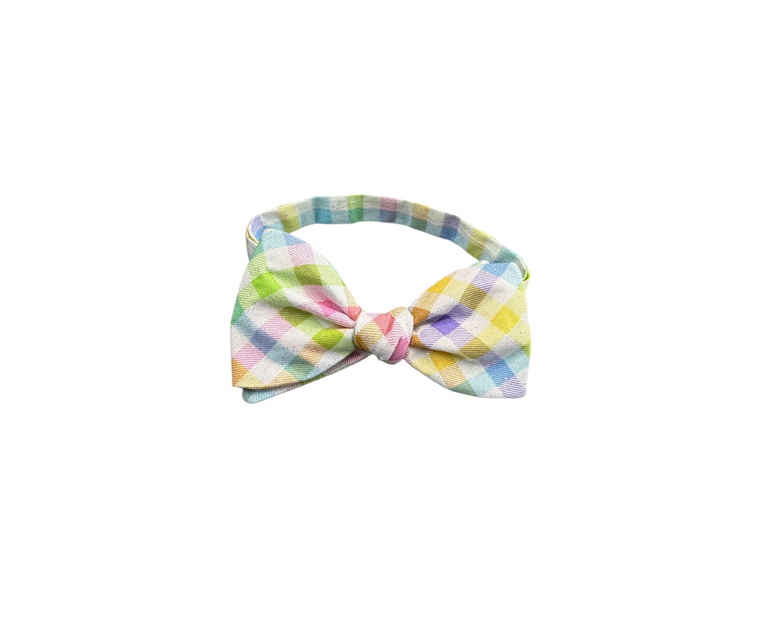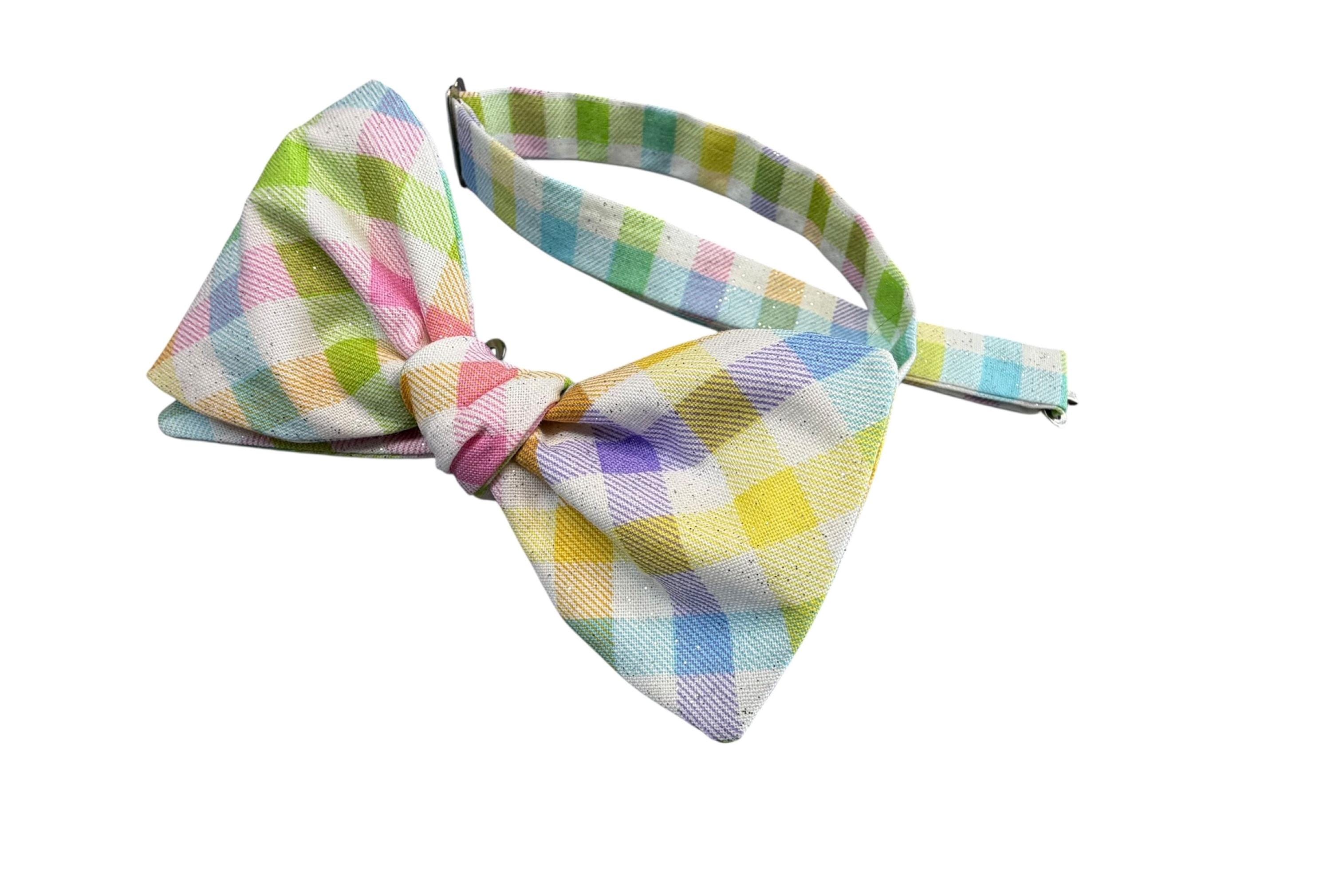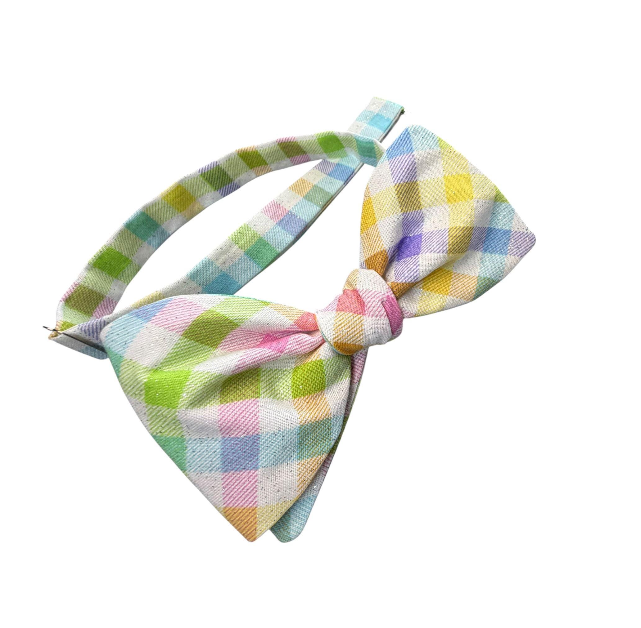 Handmade Pre-tied Bow Tie - Pastel Spring Plaid Easter Holiday Multi-Colored Celebration with Touches of Iridescent Sparkles - Adult Men's Sizing - Crafted in the USA by Holiday Bow Ties, LLC - The "Palmer" Bow Tie
