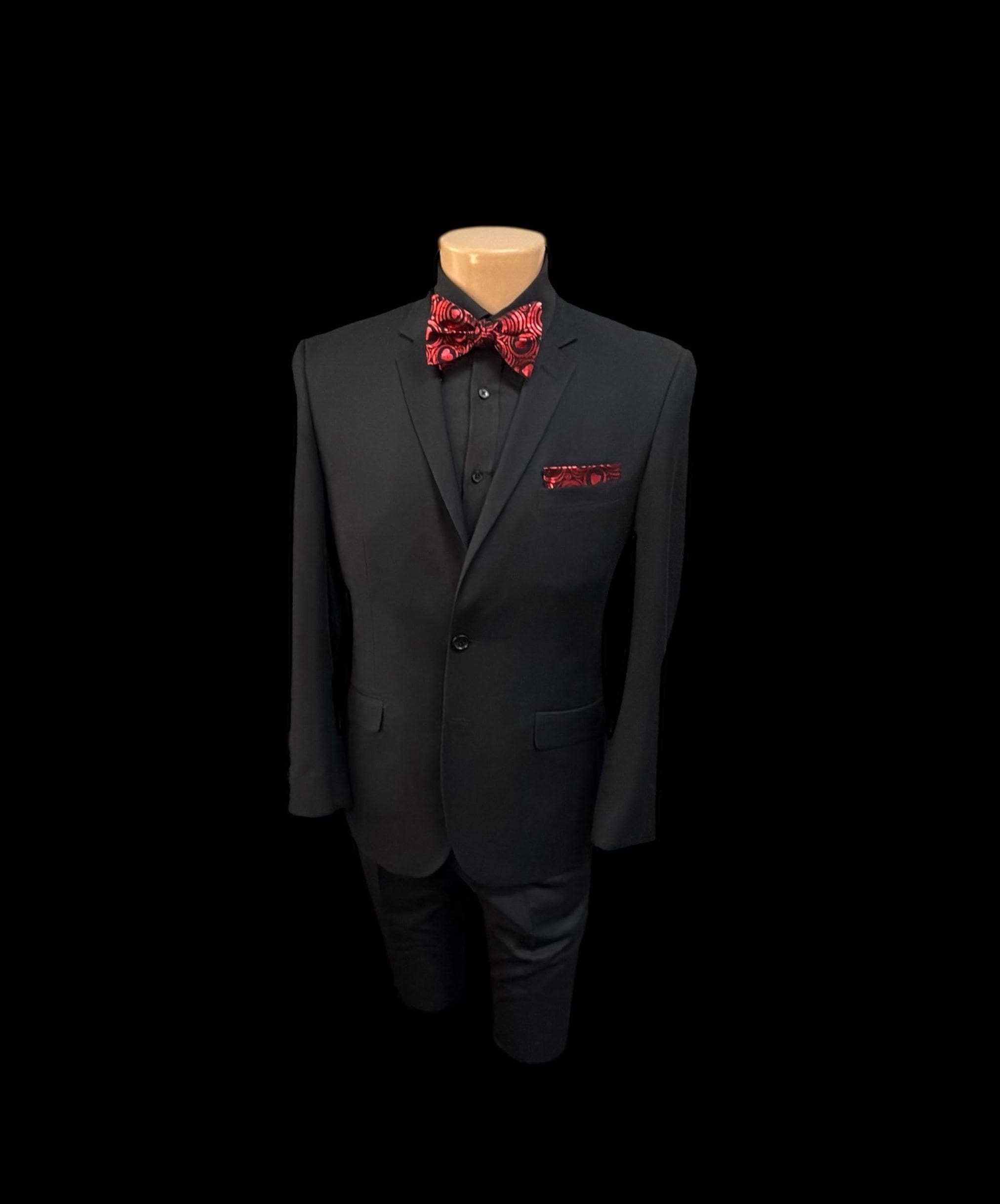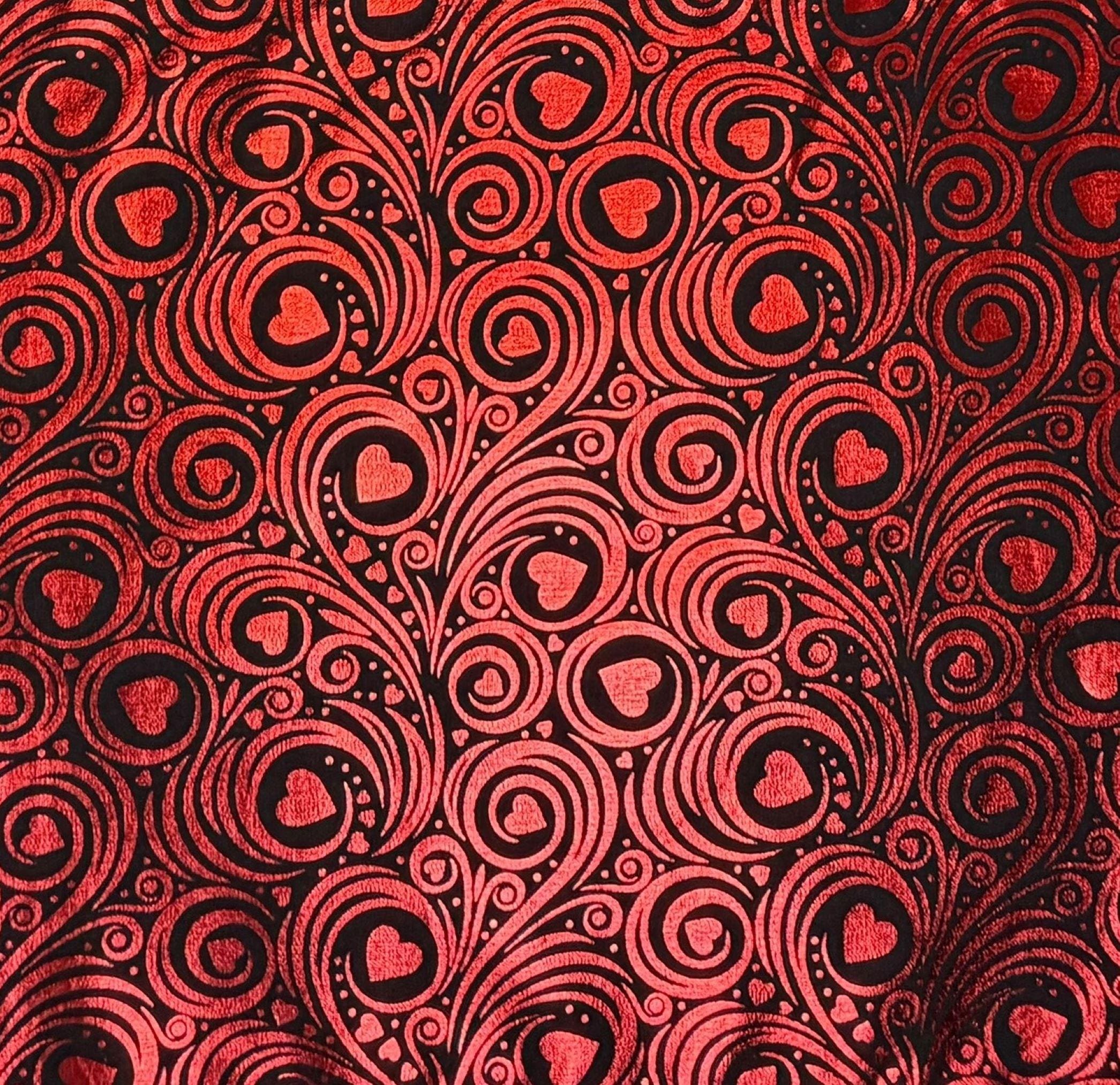 Self-Tie Bow Tie - Valentine's Day Sweetheart Red Foil Hearts and Swirls on Black - Premium Cotton - Adult Men's Sizing - Handcrafted in the USA - The "Valentin"