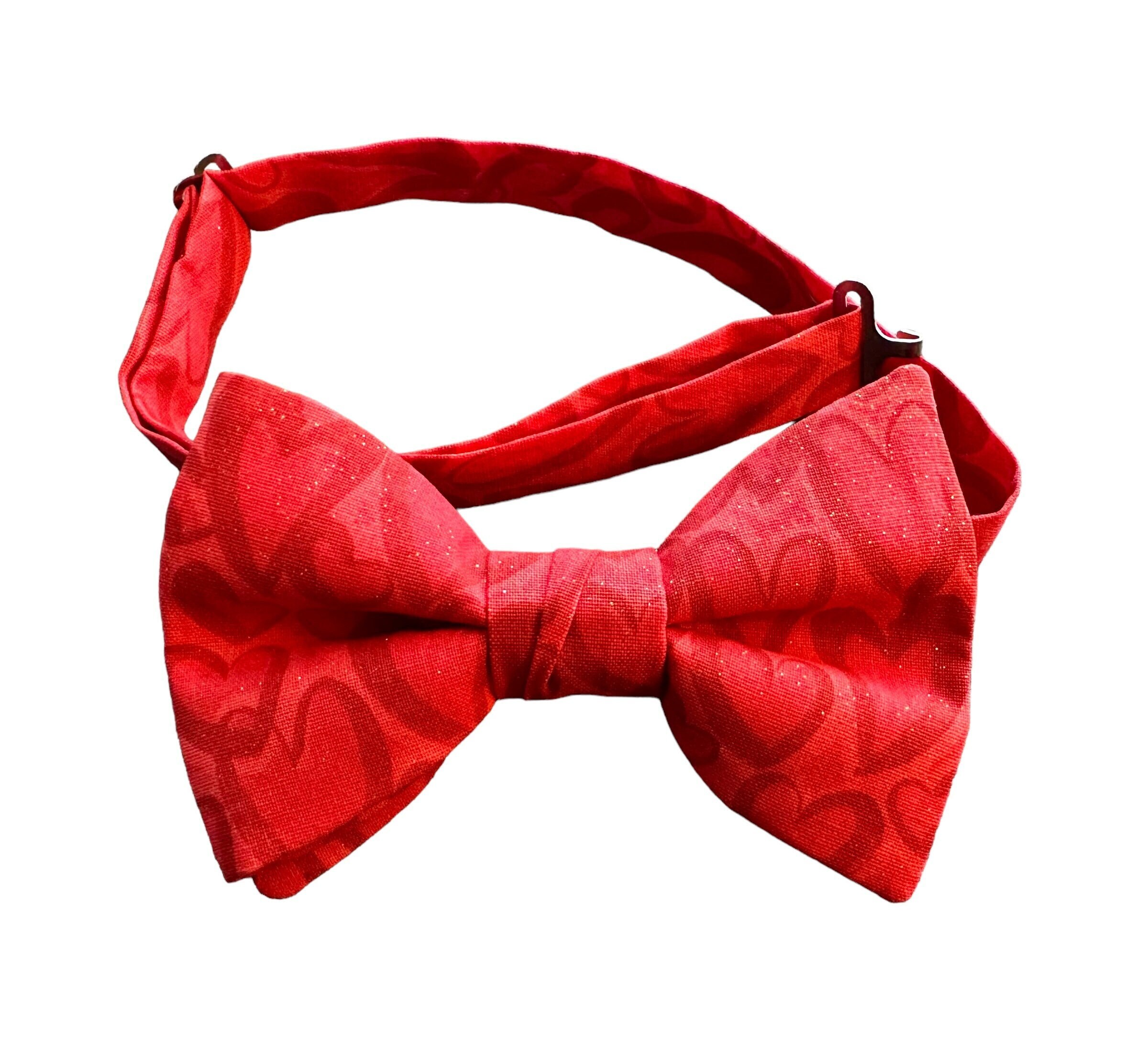 Valentine's Day Pre-tied Bow Tie - Sweetheart Scattered Red Hearts on Red with Touches of Gold Glitter - Adult Men's Sizing - Crafted in the USA by Holiday Bow Ties, llc - The "Winslow" Bow Tie