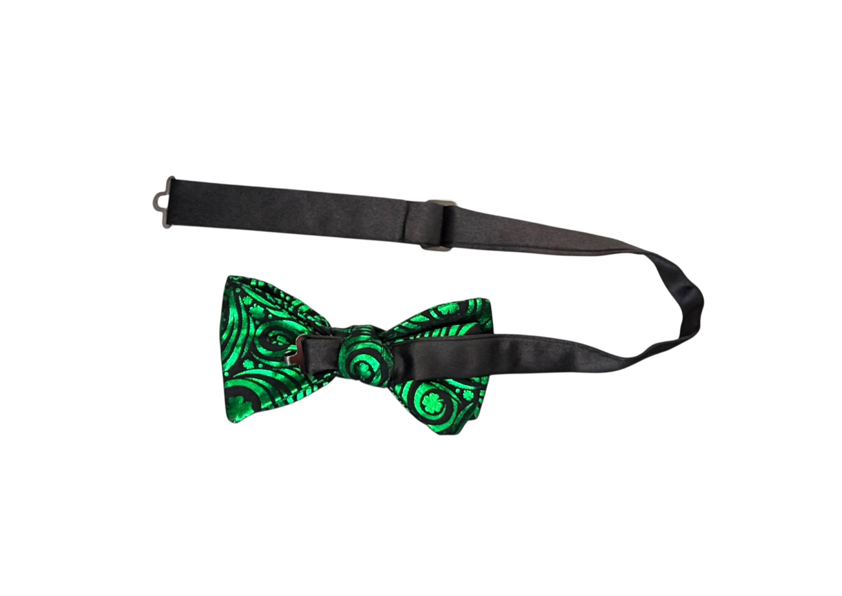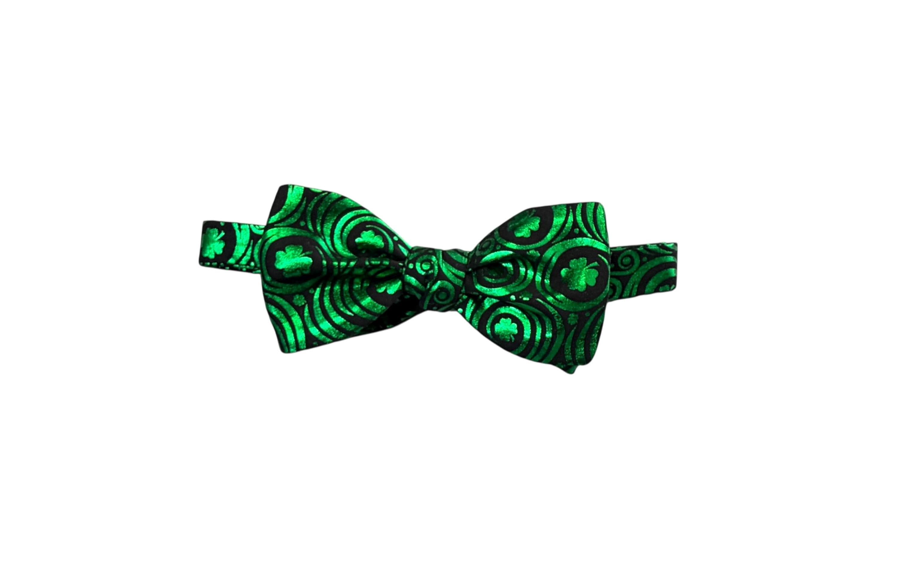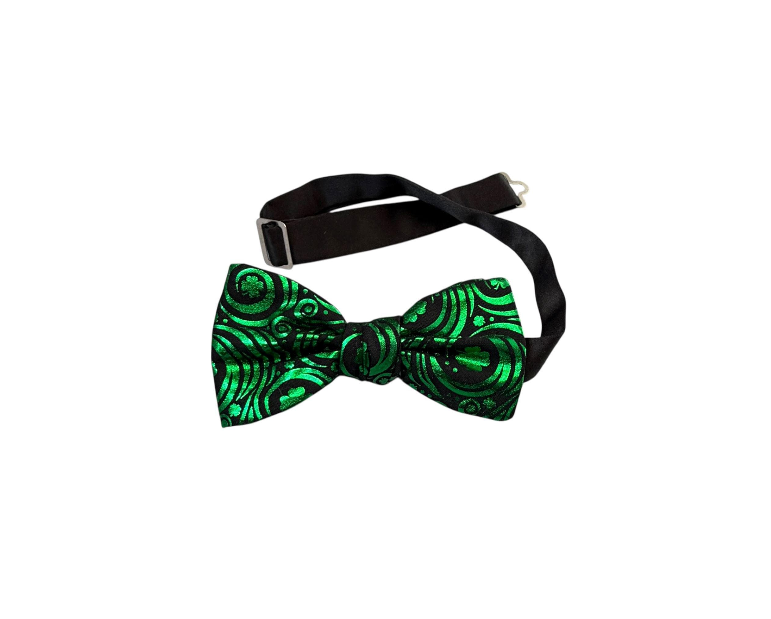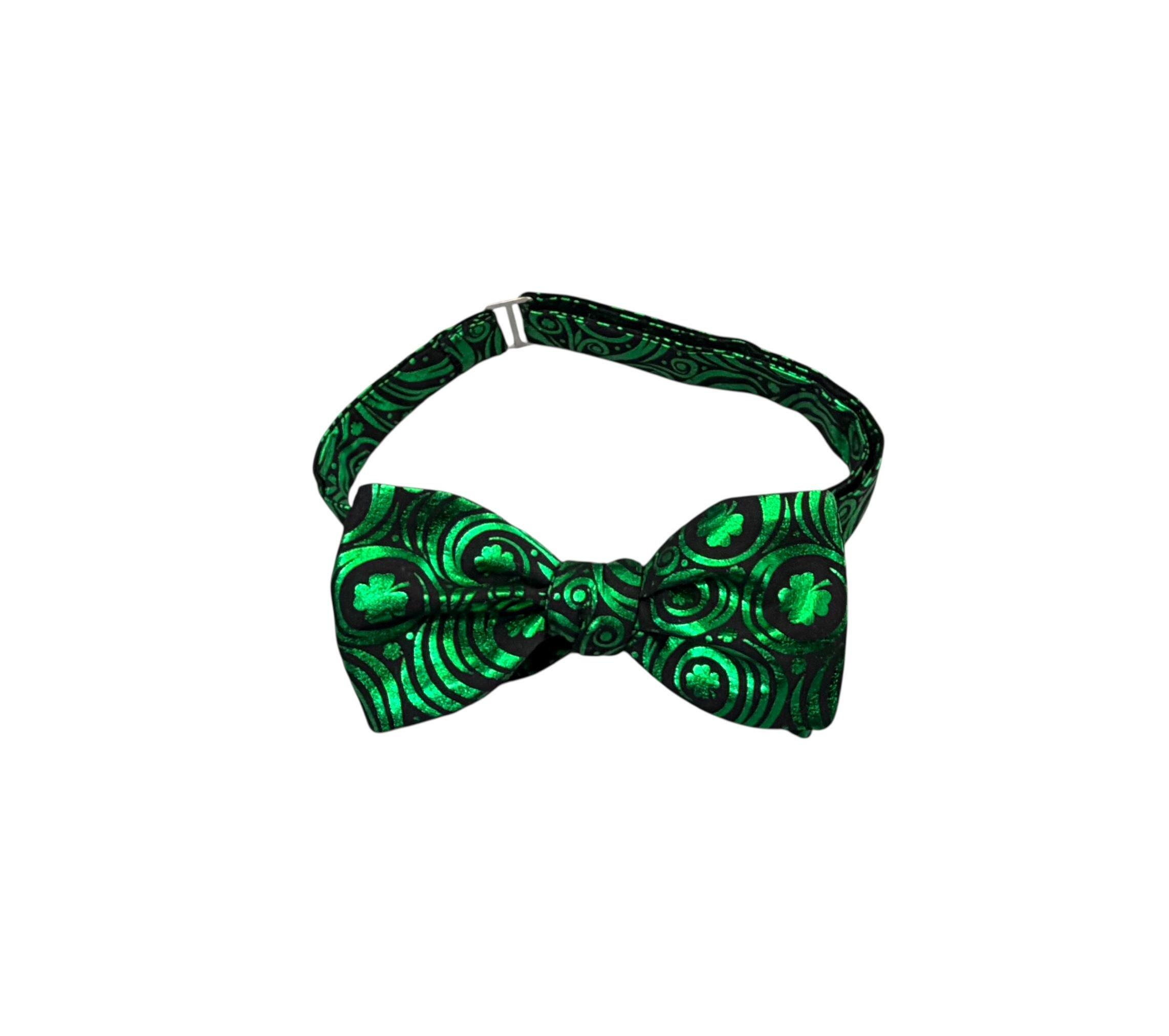St. Patrick's Day Self-Tie or Pretied Bow Tie - Green Foil Shamrocks and Swirls on Black - Premium Cotton - Adult Men's Sizing - Handcrafted in the USA - The "Ozzy"