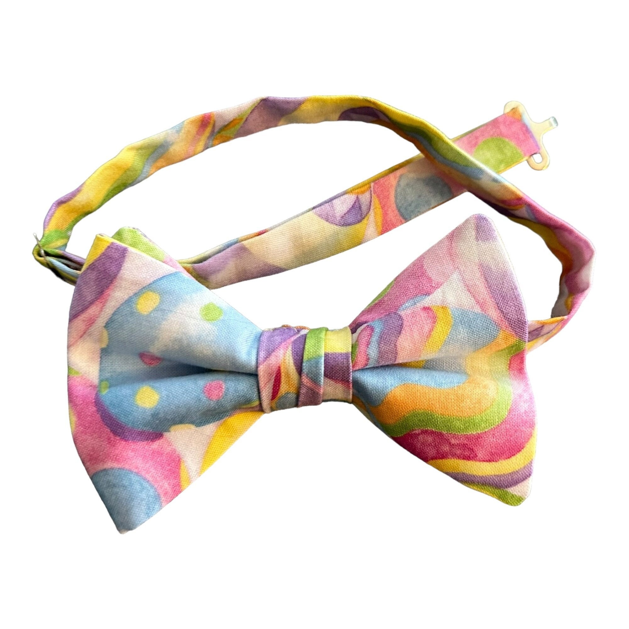 Handmade Pre-tied Bow Tie - Pastel Spring Water Color Easter Egg Holiday Multi-Colored Celebration- Adult Men's Sizing - Crafted in the USA by Holiday Bow Ties, LLC - The "Pete" Bow Tie
