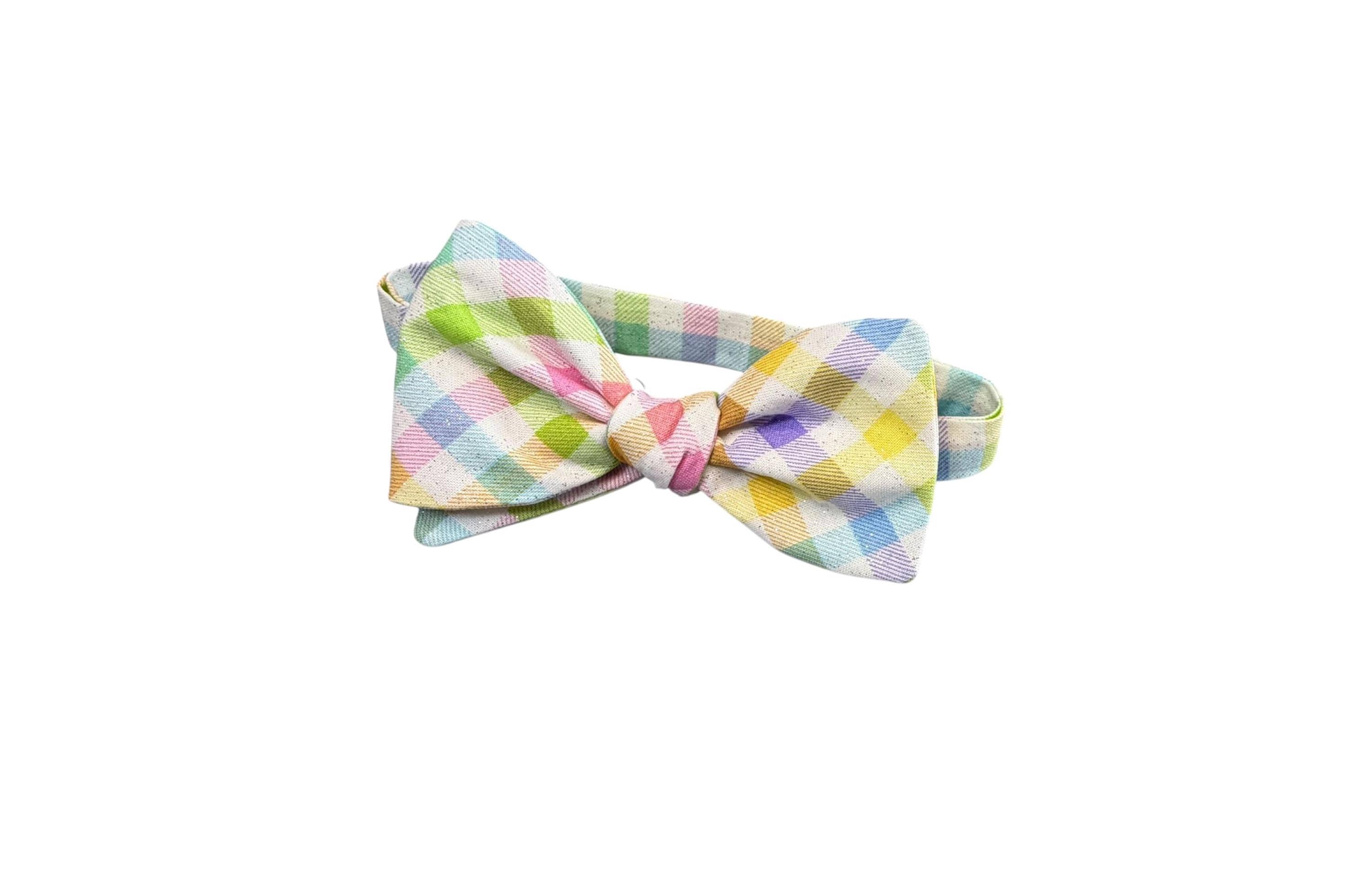 Easter Self-tie or Pretied Bow Tie - Pastel Spring Plaid Multi-Colored with Iridescent Sparkle - Adult Men's Sizing - Crafted in the USA by Holiday Bow Ties, LLC - The "Palmer" Bow Tie