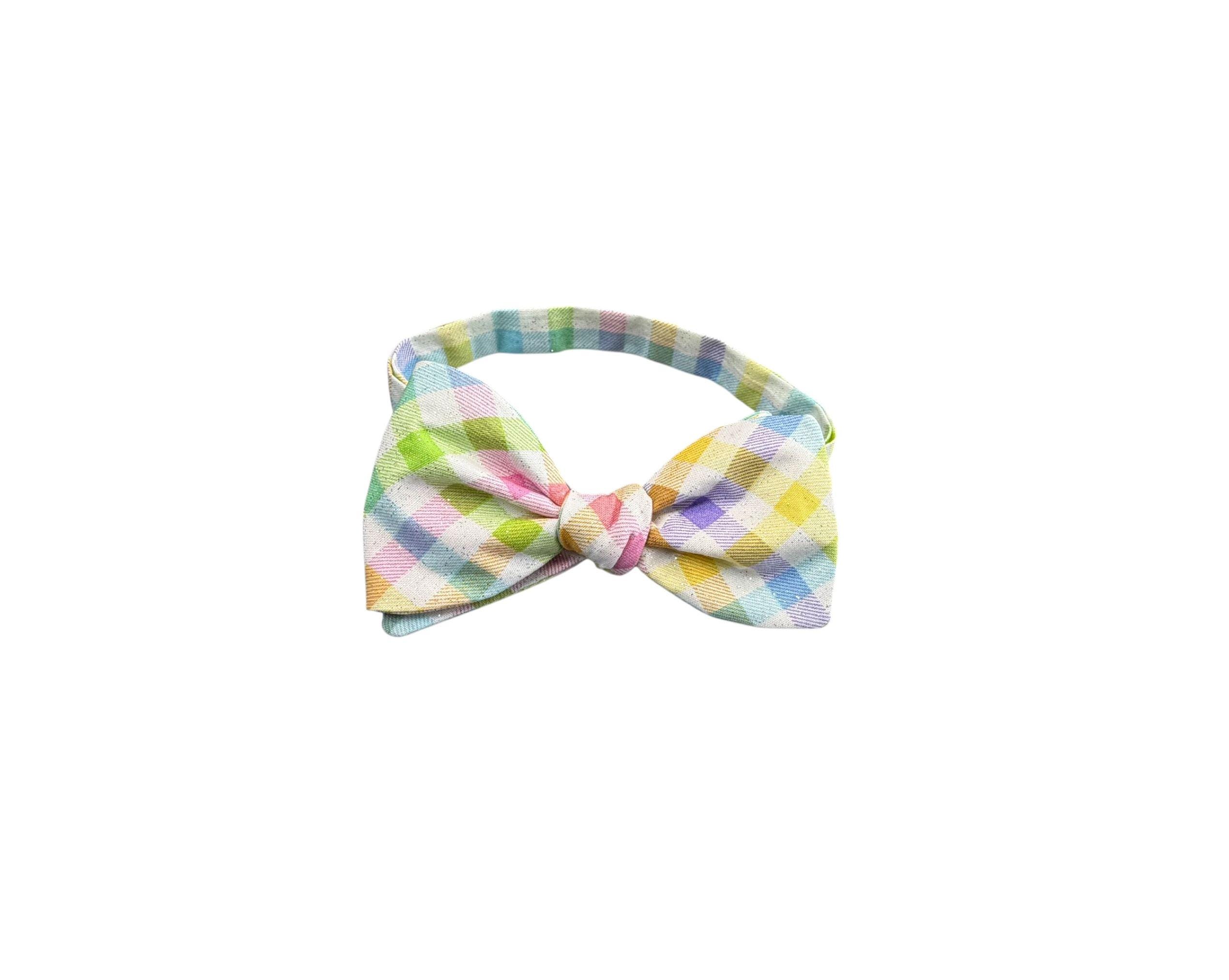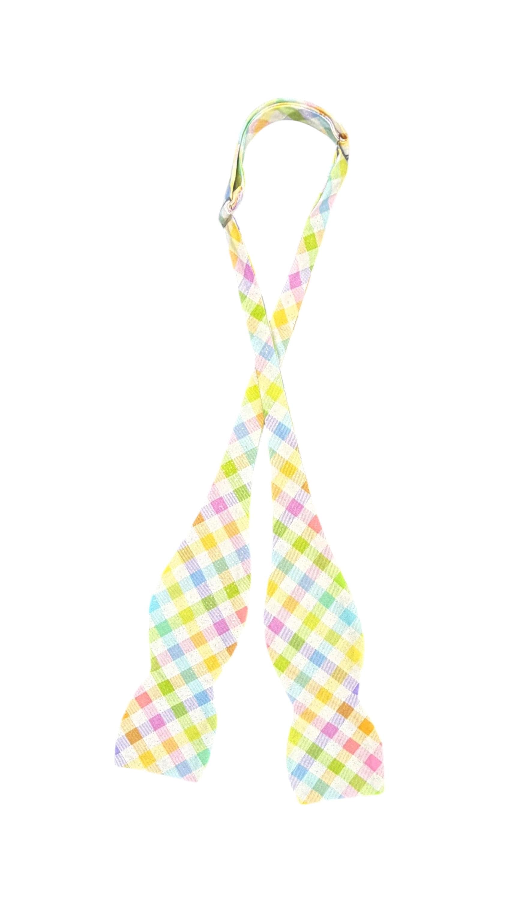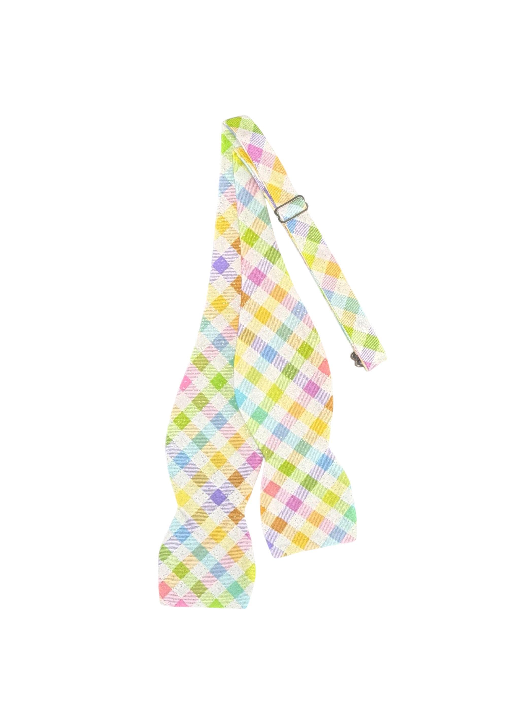 Handmade Self-tie Bow Tie Easter Self-tie Bow Tie & Pocket Square Set - Pastel Spring Plaid with Iridescent Sparkle - Adult Men's and Boys Sizing - Holiday Bow Ties, LLC - The "Palmer" Bow Tie Set