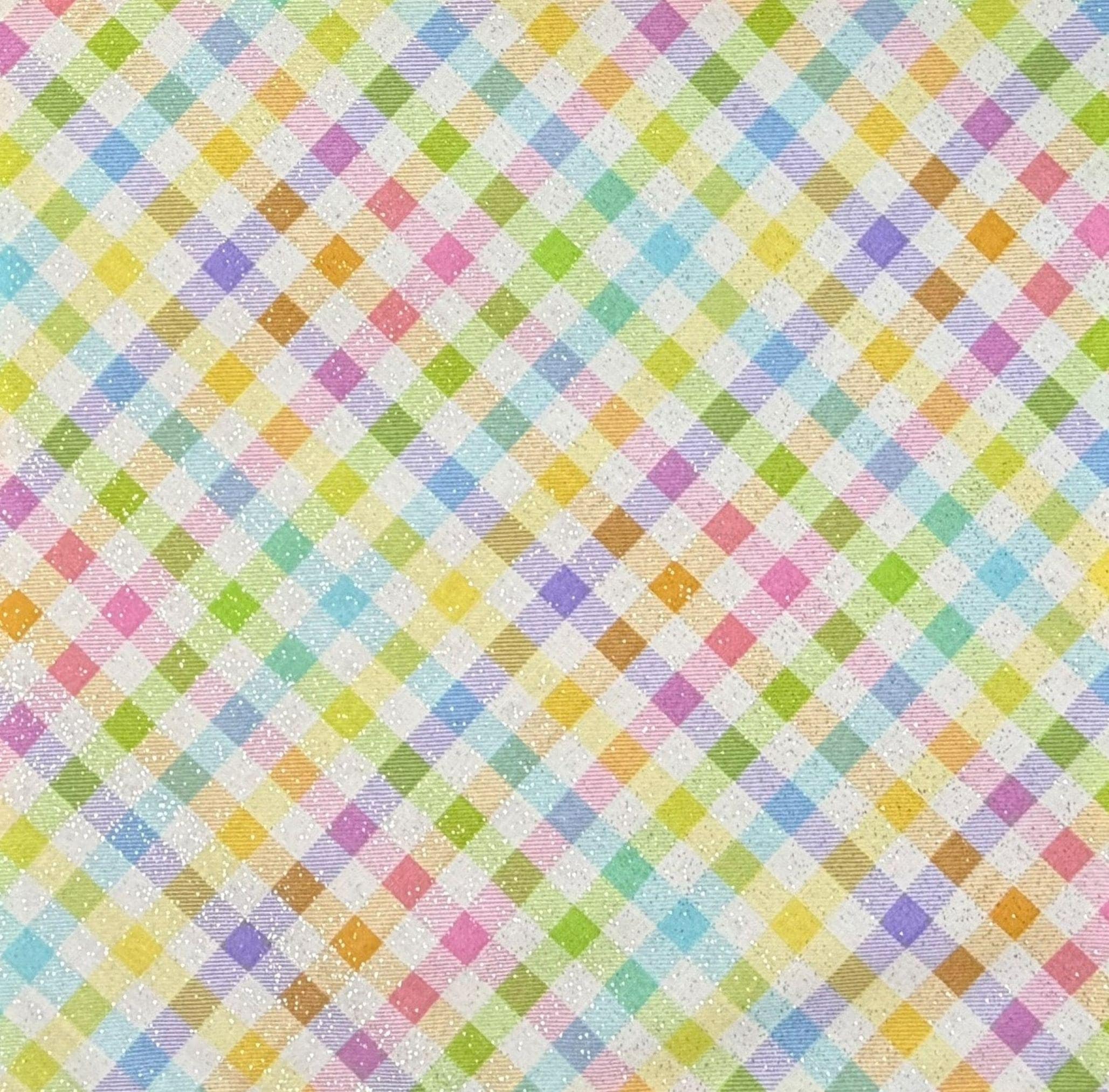 Colors: Spring multi-colors including yellow, orange, light blue, lavender, light pink, green on white and touched with iridescent glitter!