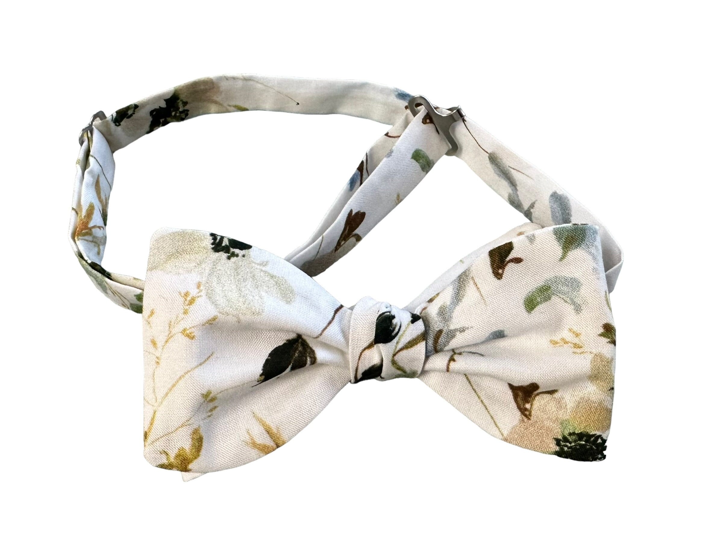 Handmade Pretied Bow Tie - Vintage Spring and Fall Floral Medley in Greens, Blues, Tans, Sages, Pinks and Candlelight - Men's Sizing - Crafted in the USA by Holiday Bow Ties, llc - The "Hudson"