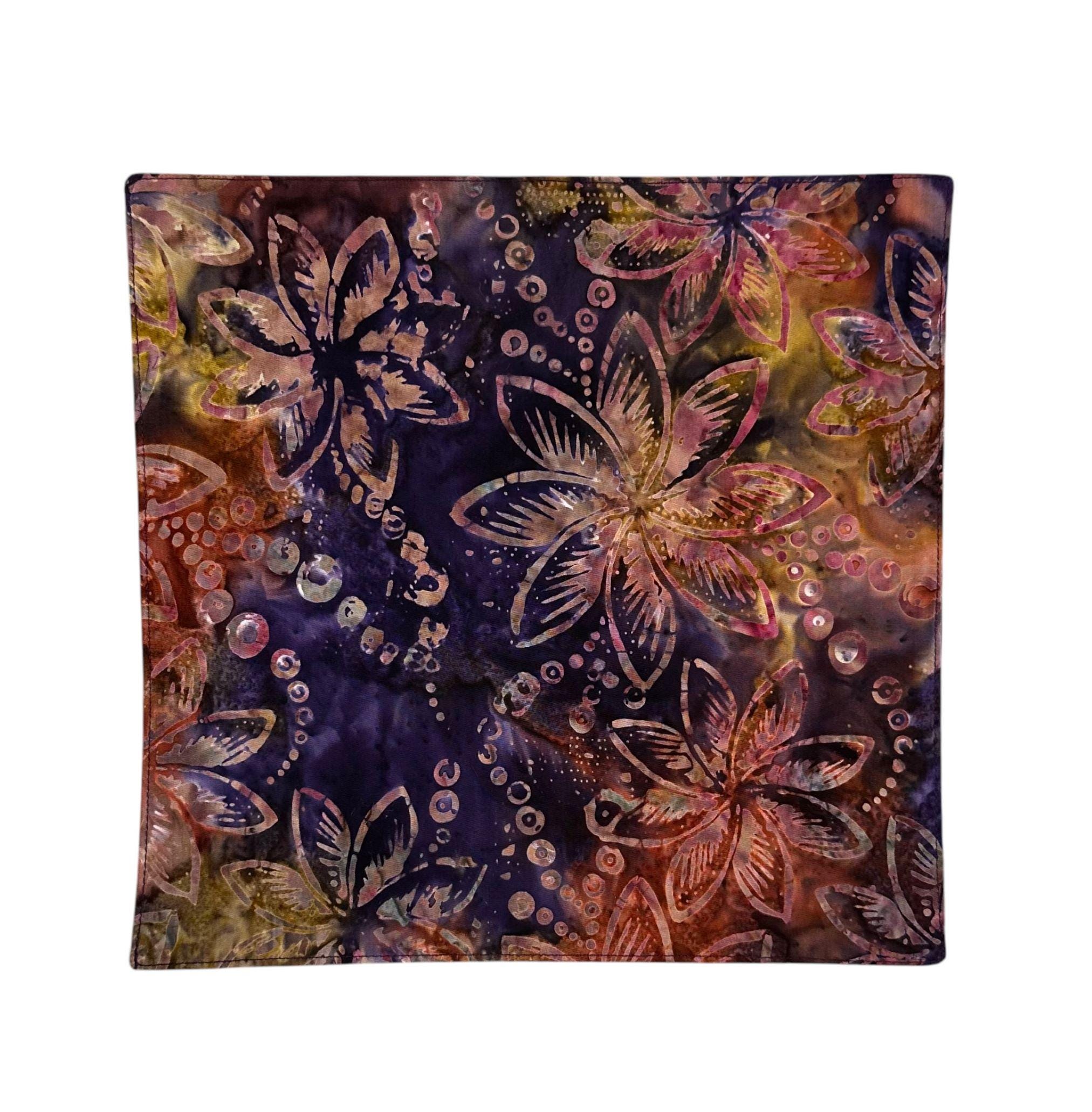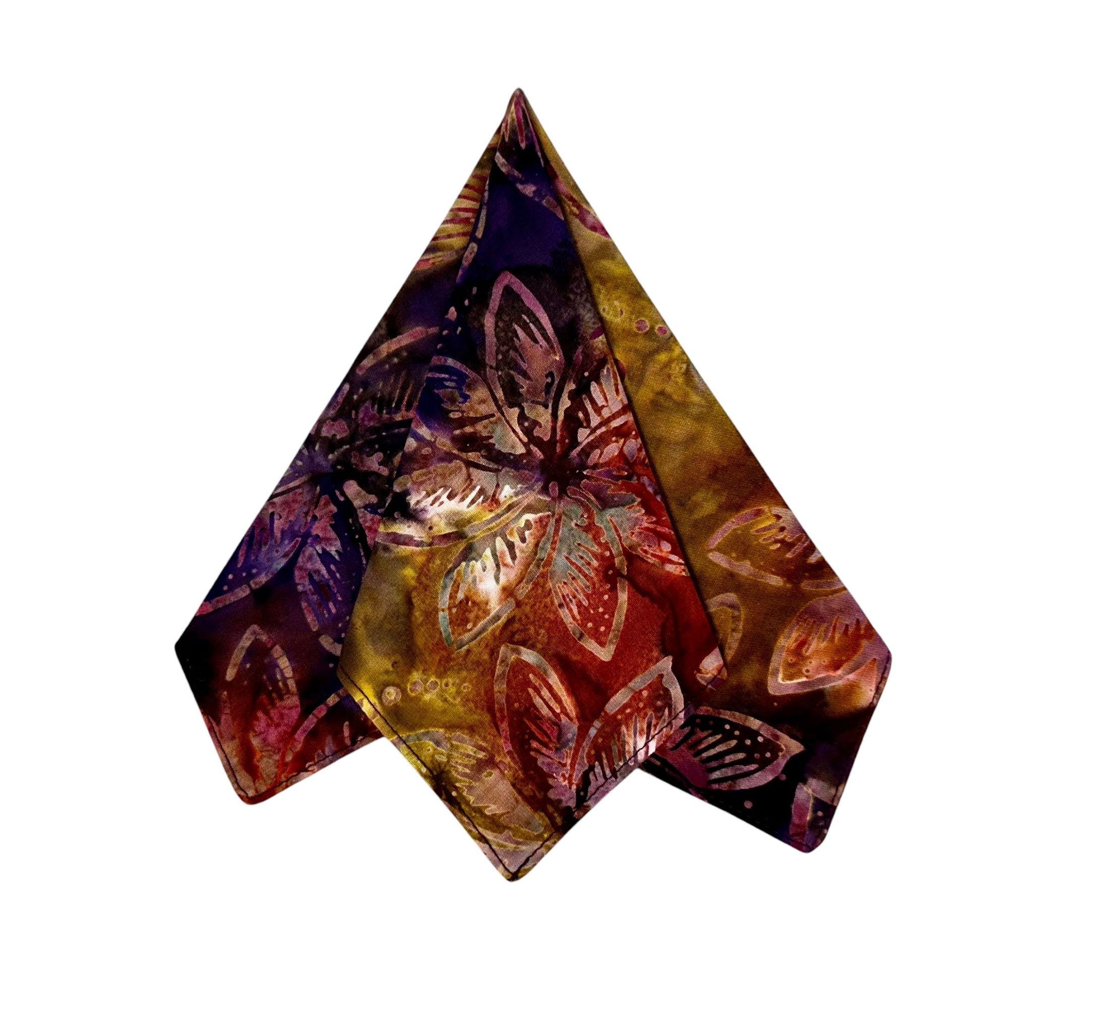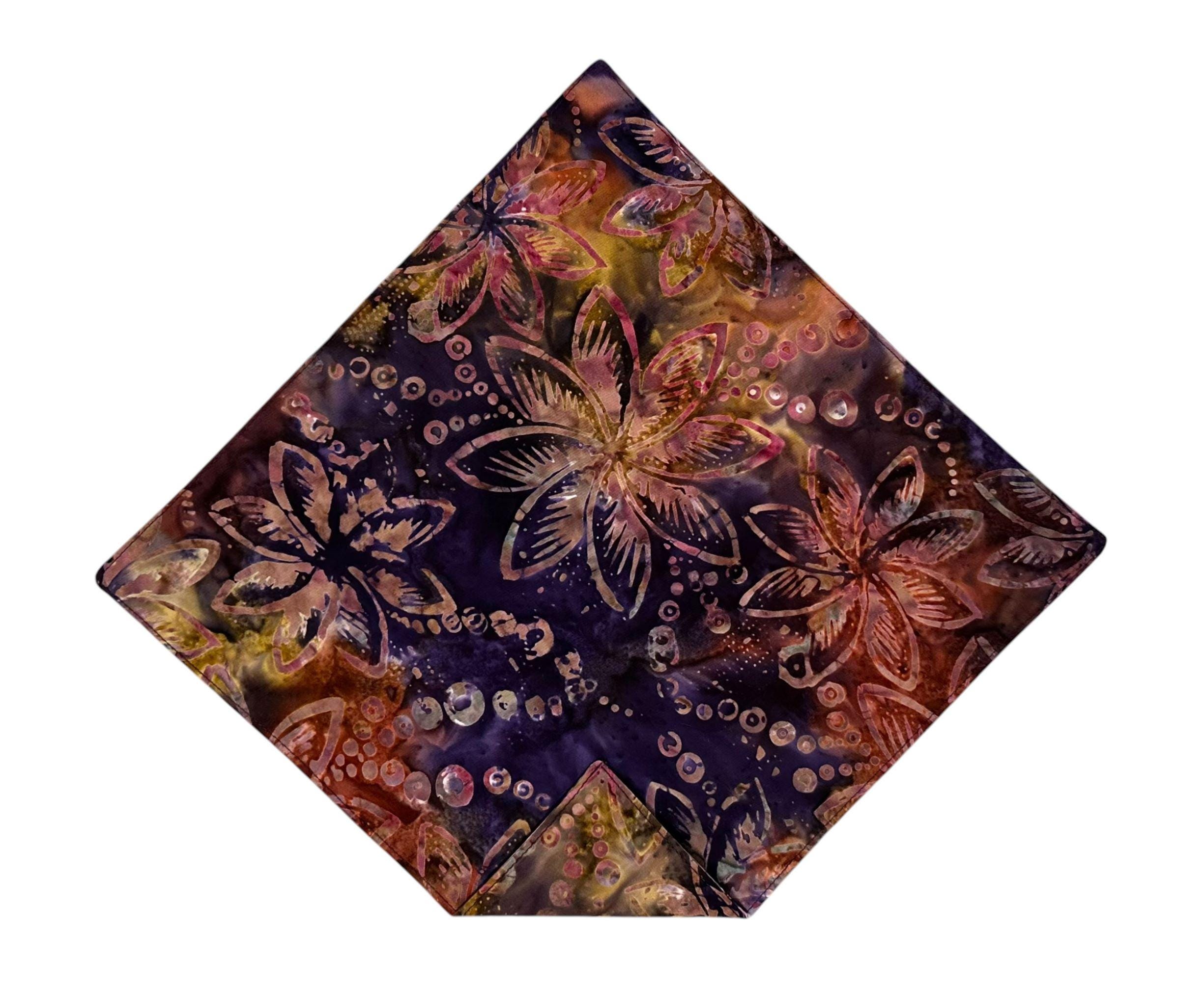 Pocket Square - Hawaiian Jewel Tone Plum Floral Pattern - Premium Cotton Batik Handkerchief - Adult Mens Sizing - Handcrafted in the USA by Holiday Bow Ties, LLC - The "Kahiau"