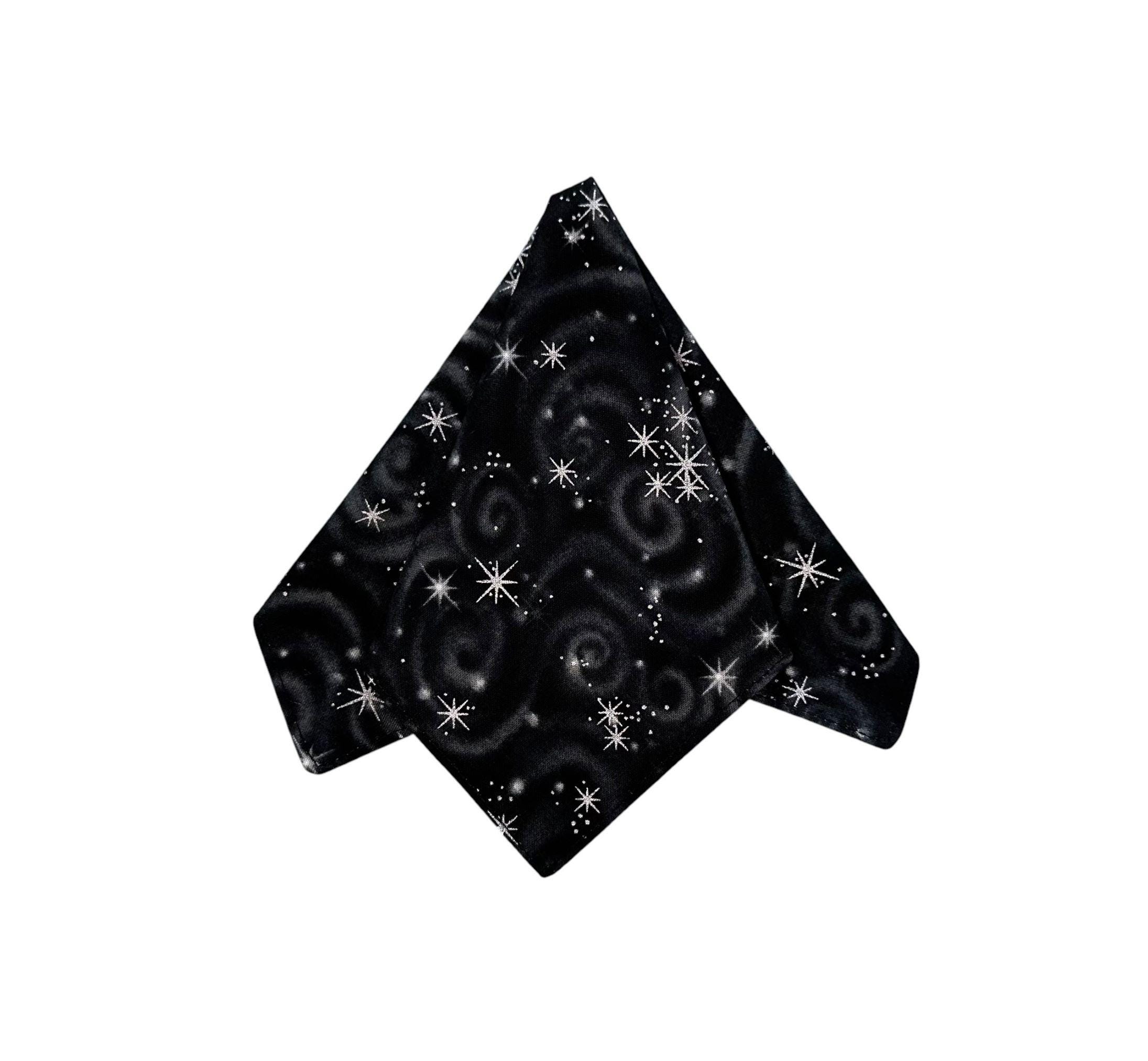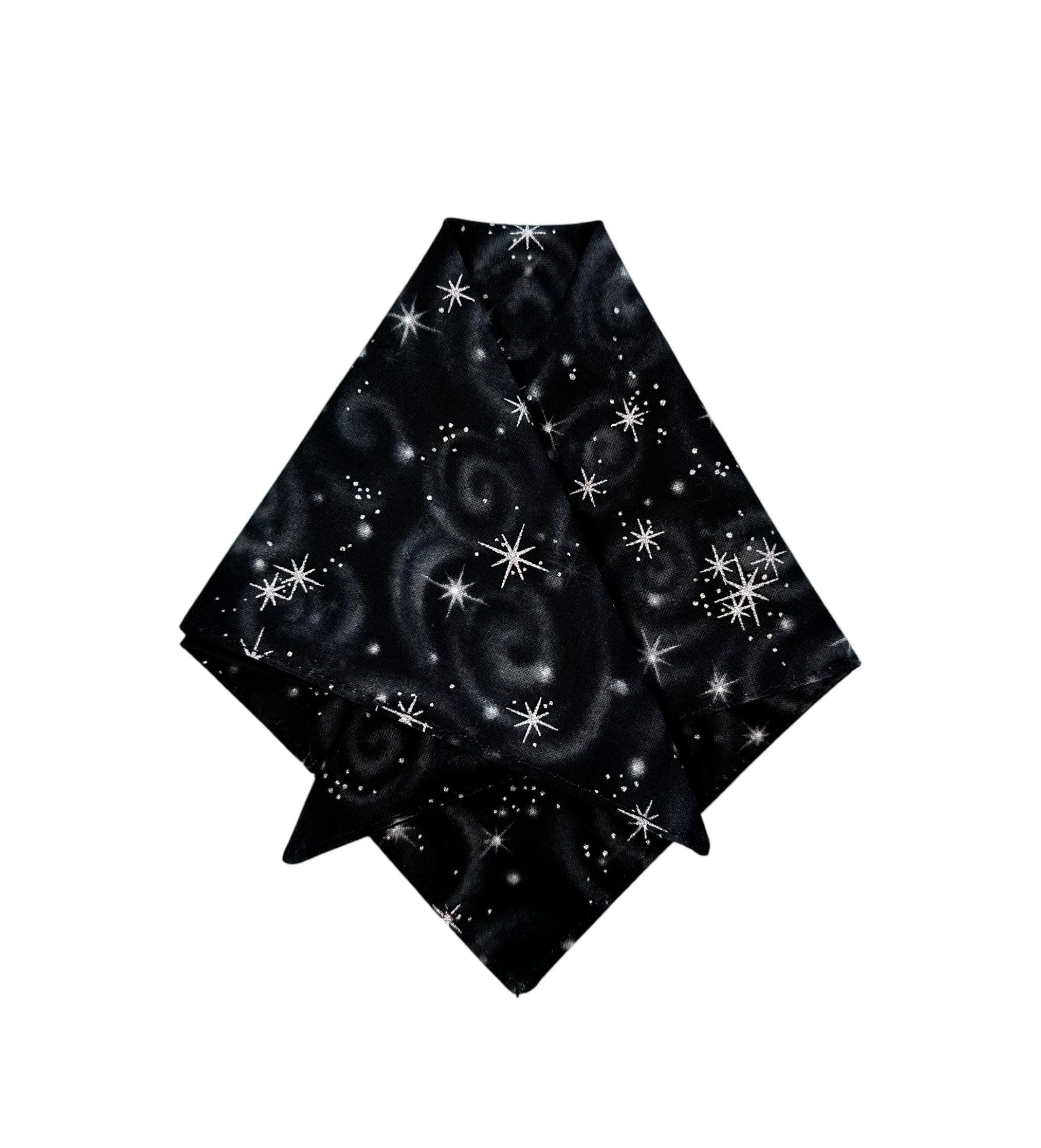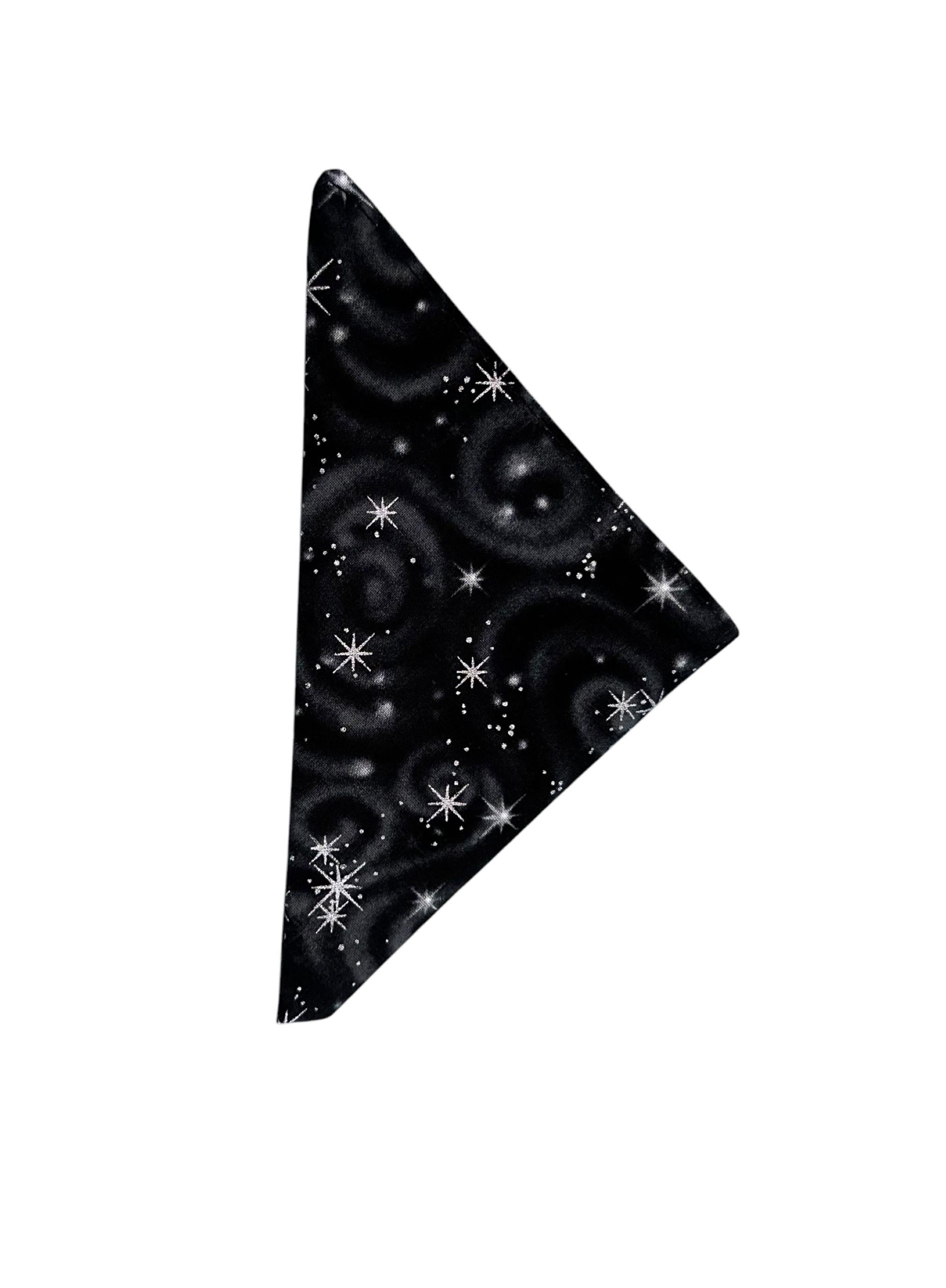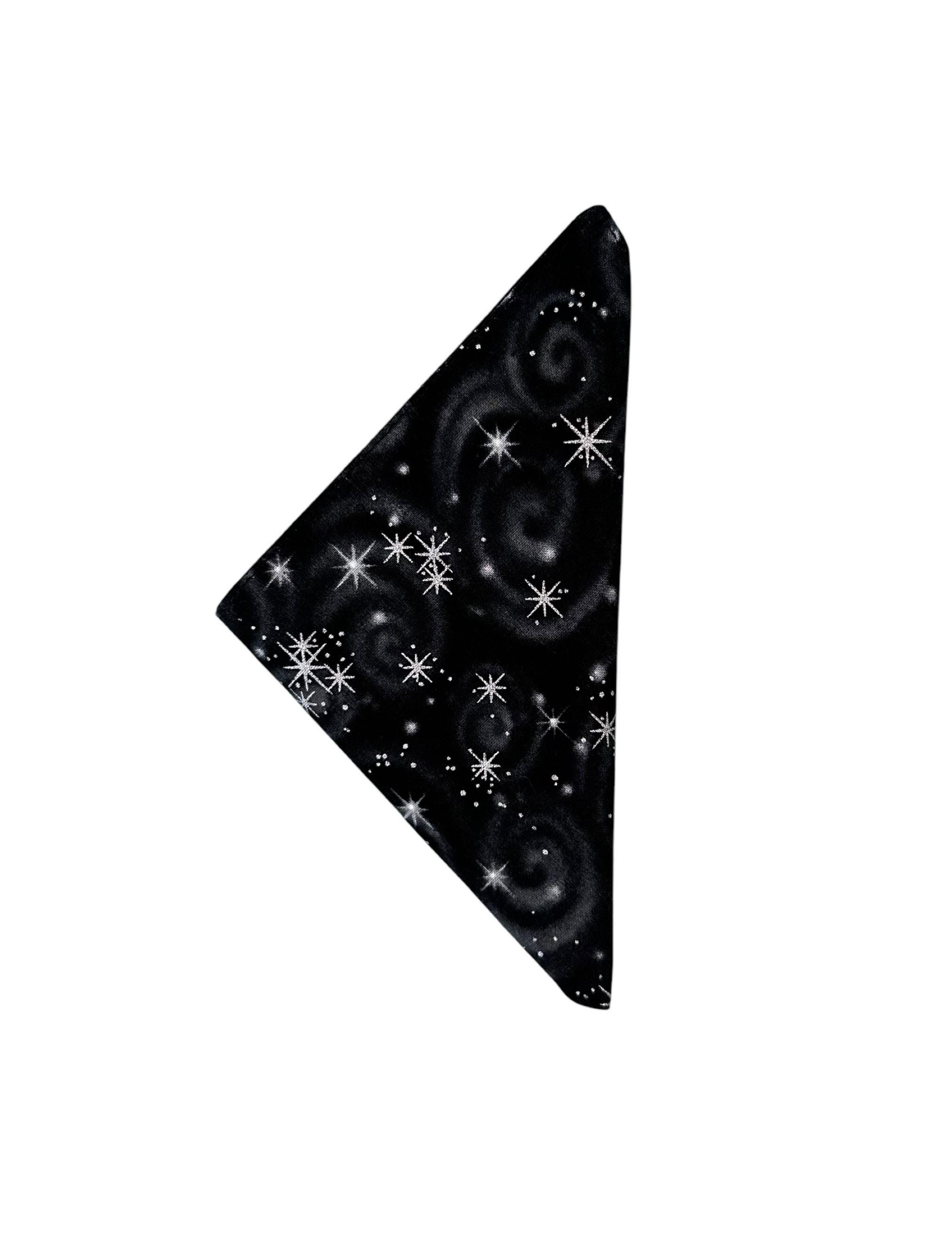 Pocket Square - Black with Silver Metallic Stars Cotton Handkerchief - Adult Mens Sizing - Handcrafted in the USA by Holiday Bow Ties, LLC - The "Mateo" Pocket Square