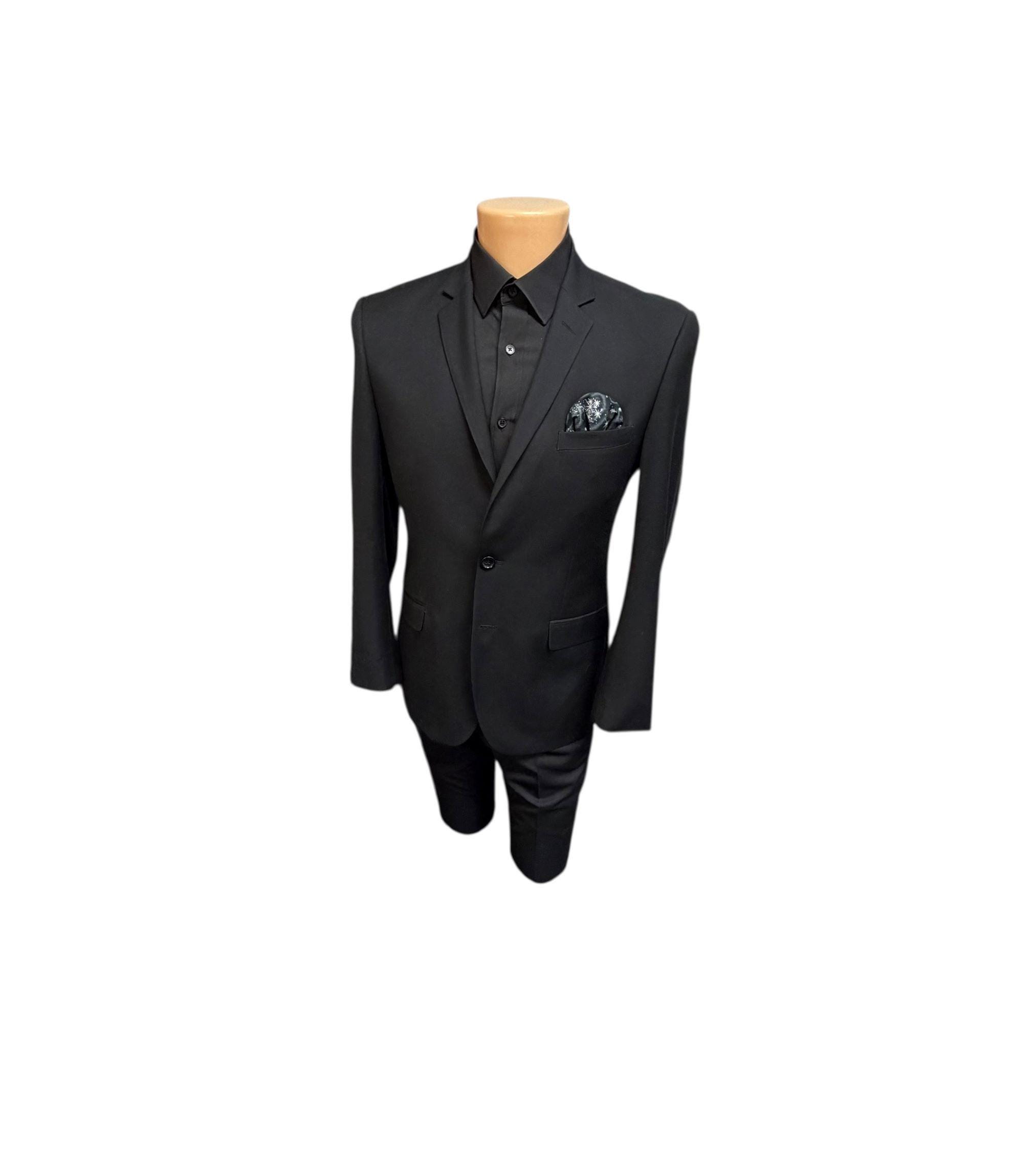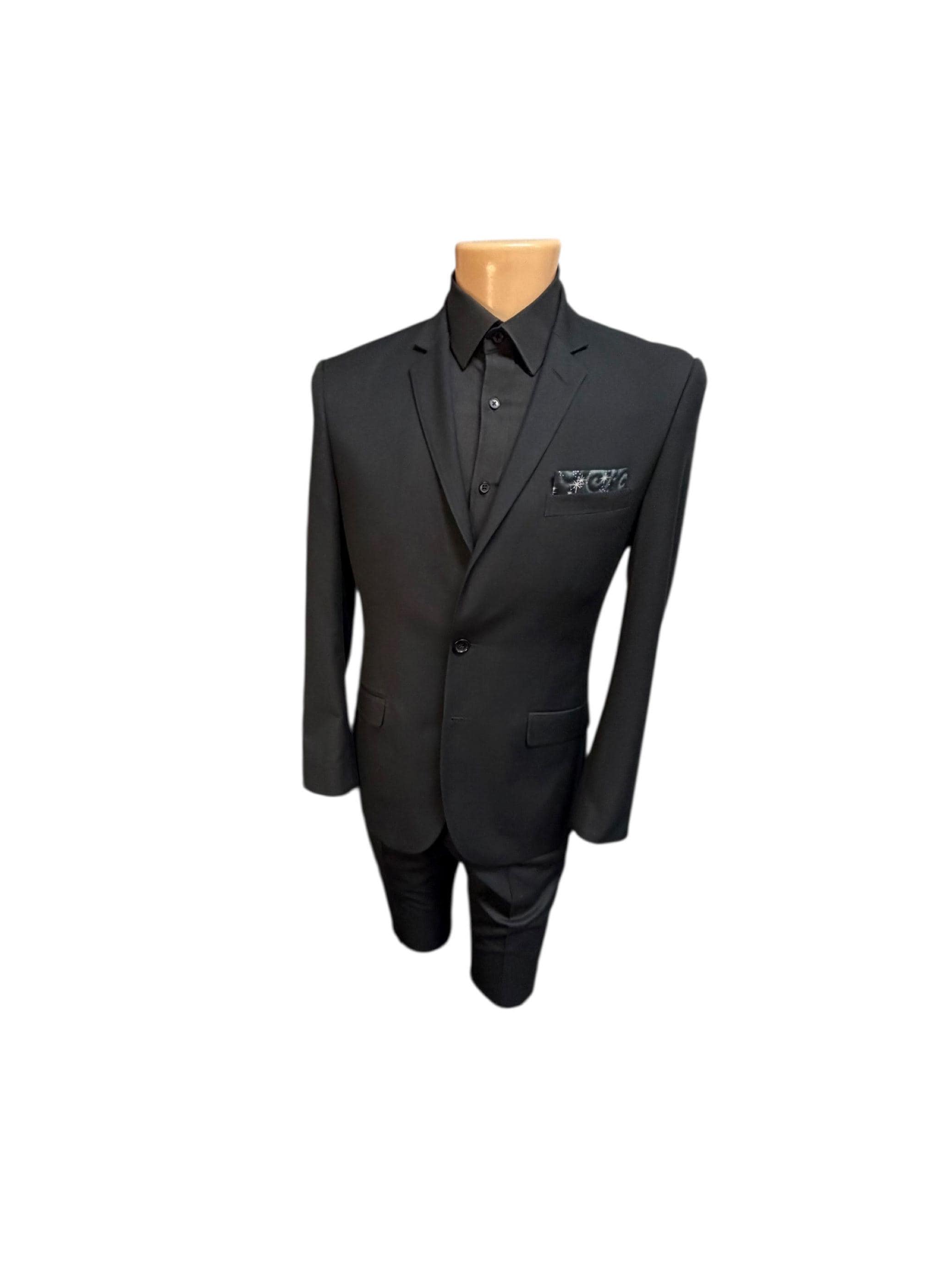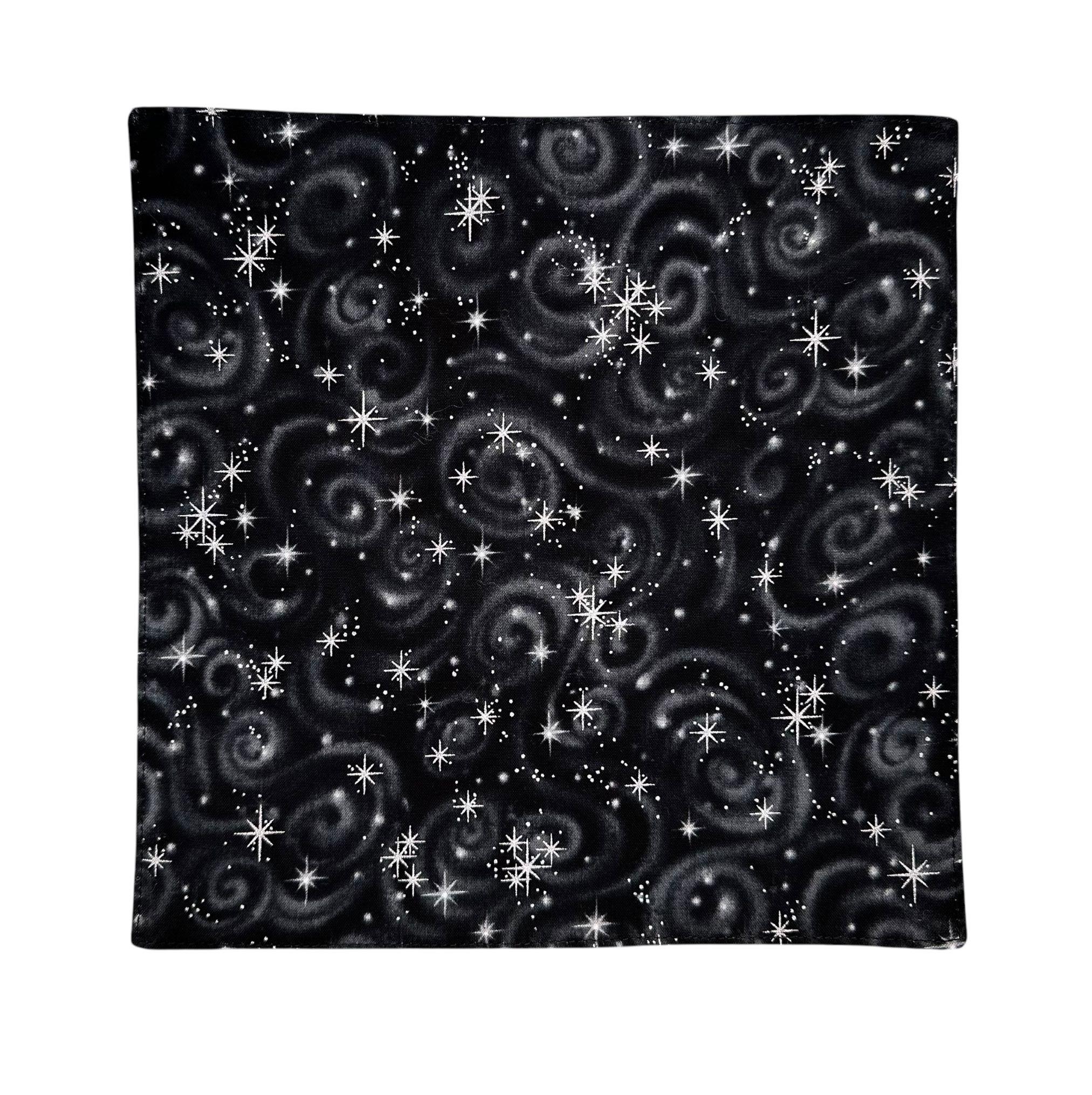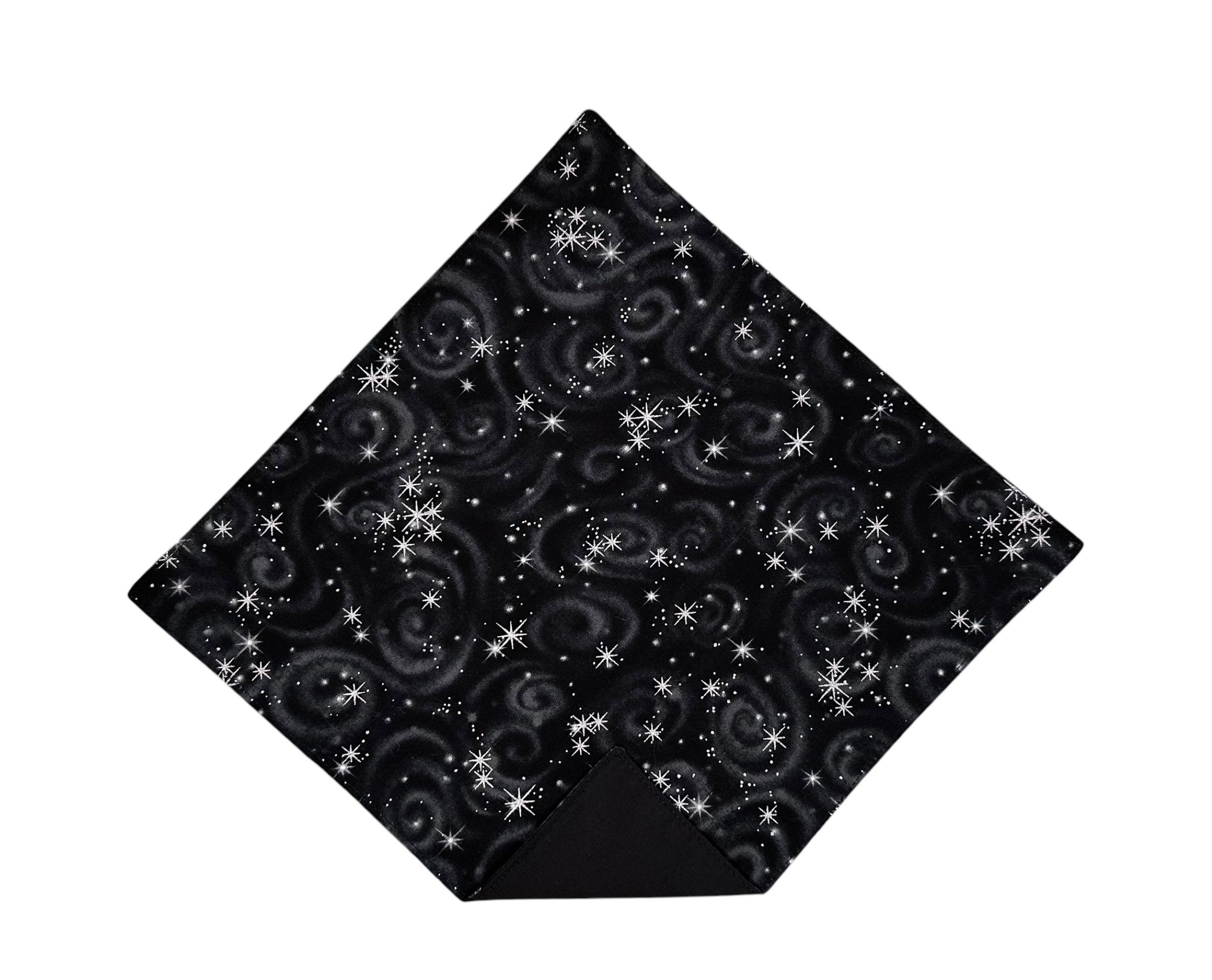 Pocket Square - Black with Silver Metallic Stars Cotton Handkerchief - Adult Mens Sizing - Handcrafted in the USA by Holiday Bow Ties, LLC - The "Mateo" Pocket Square