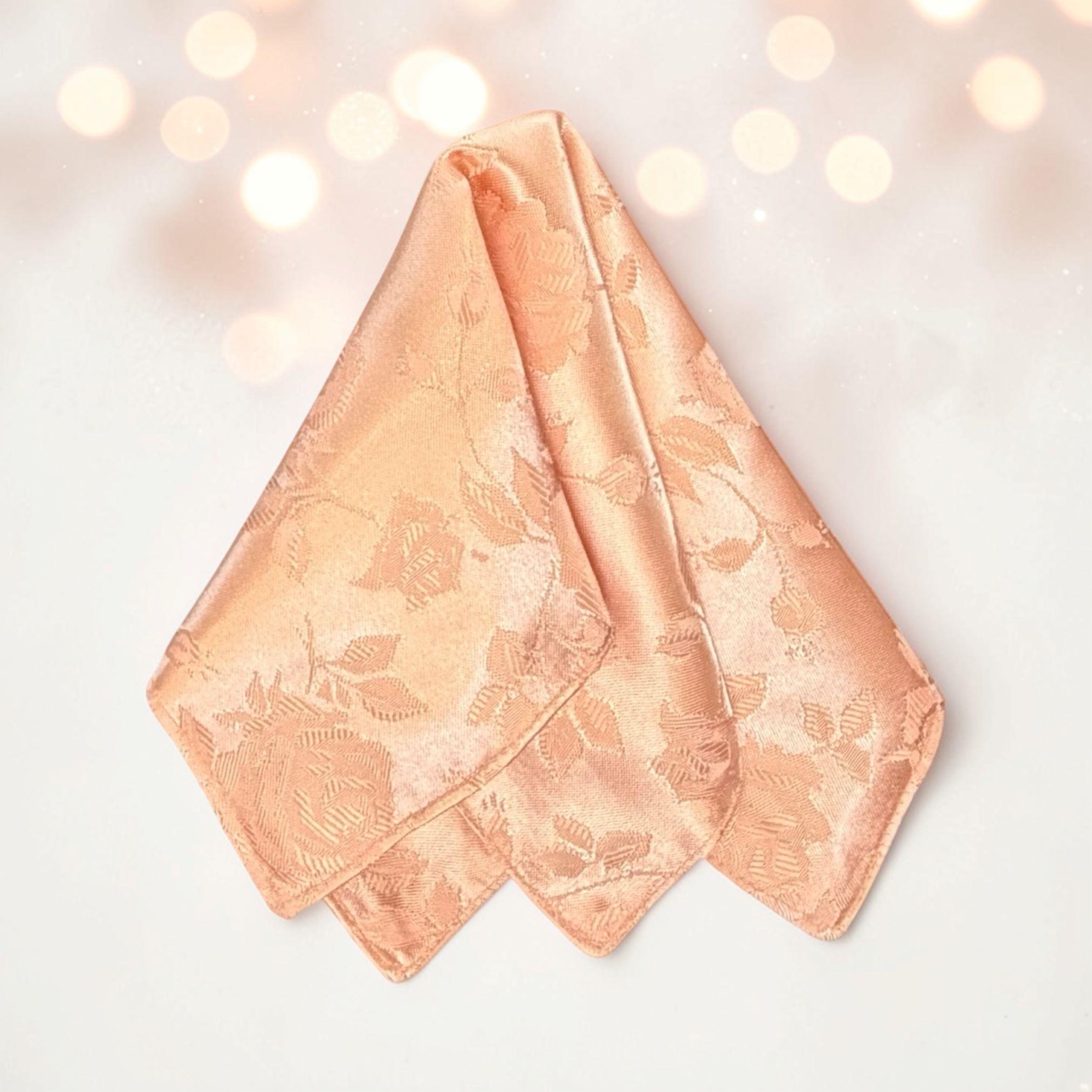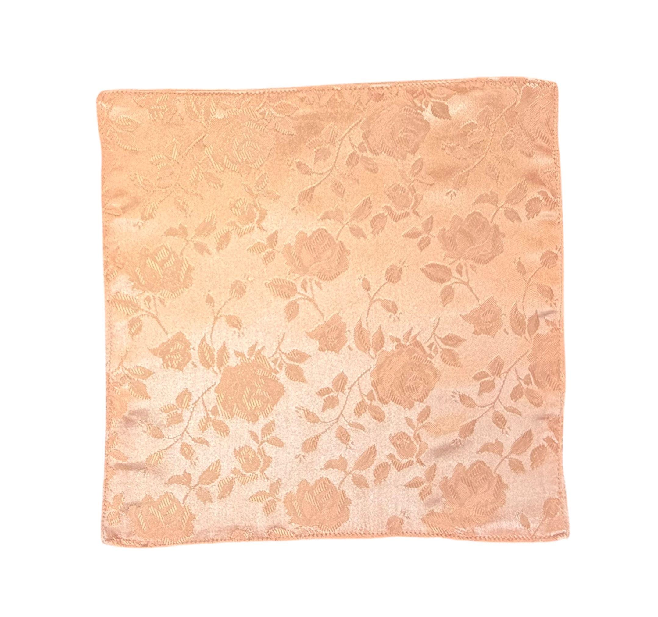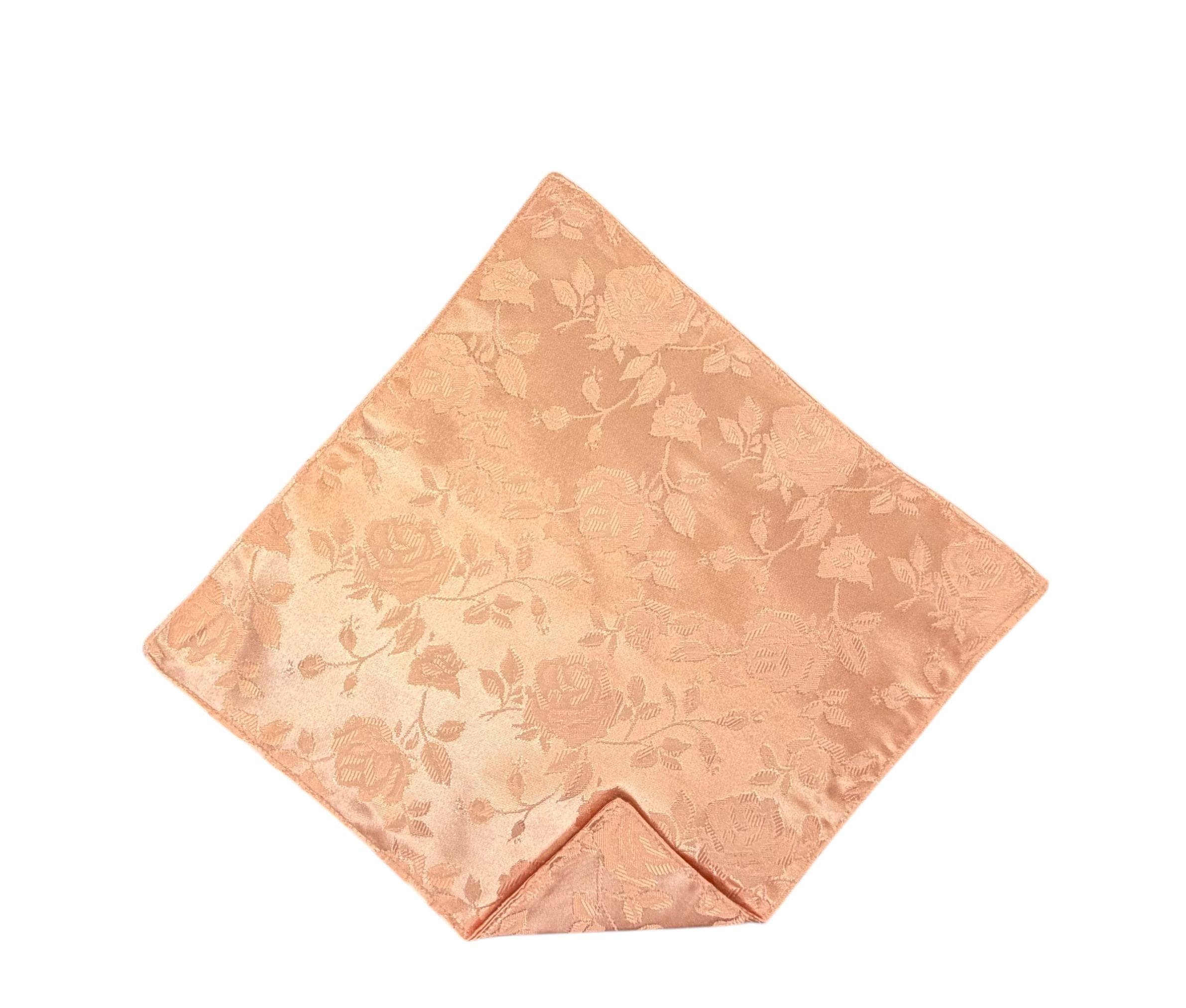 Pocket Square - Peach Rose Satin Jacquard Wedding Handkerchief - Adult Men's Sizing - Handcrafted in the USA by Holiday Bow Ties, LLC - The "Lee"