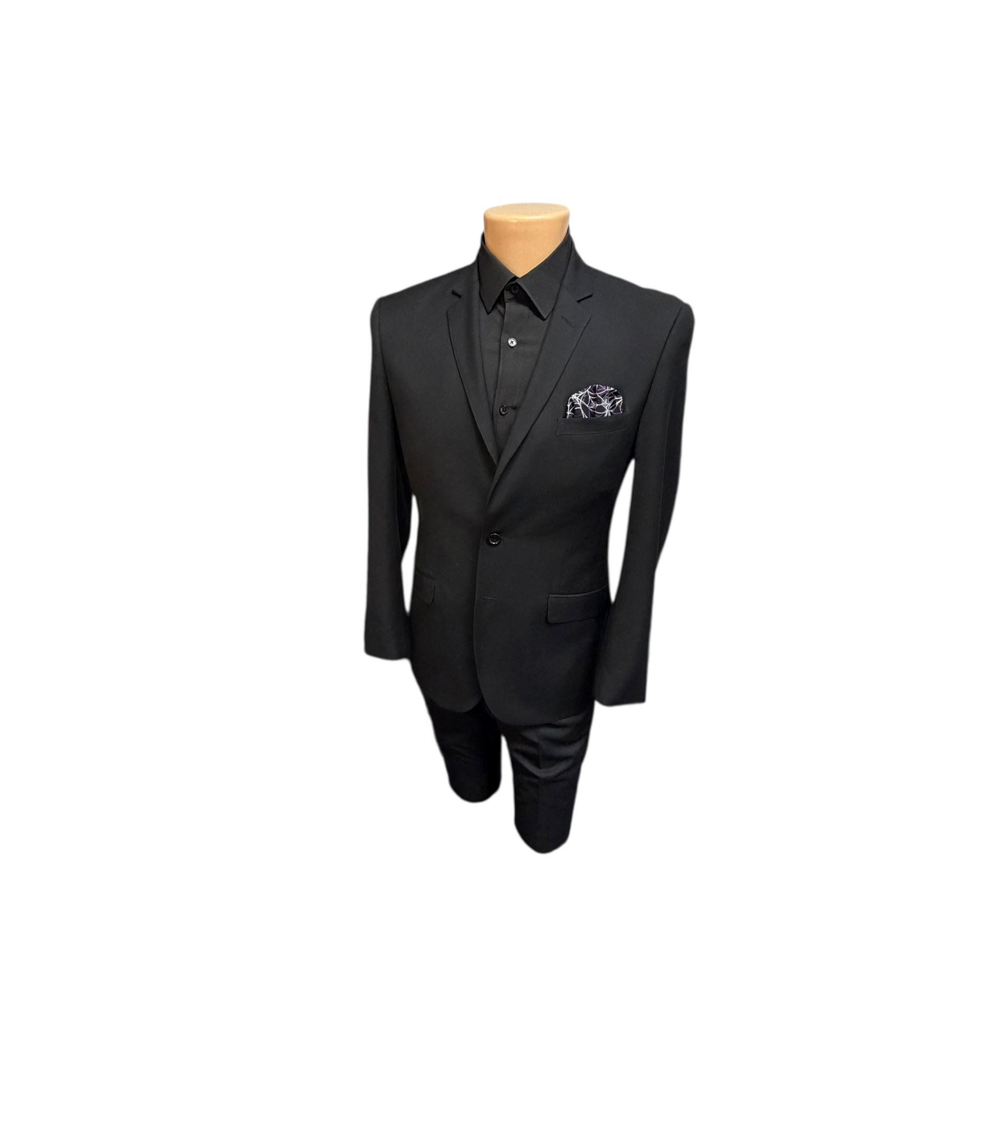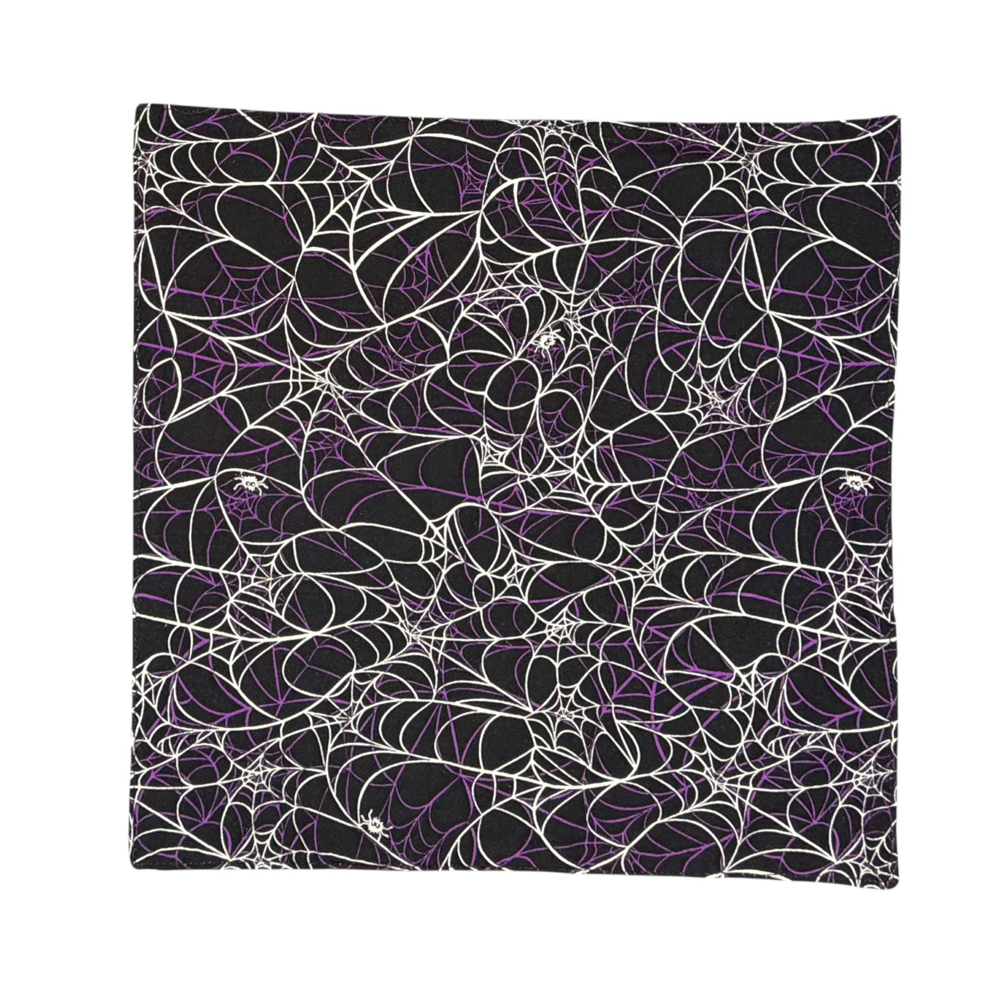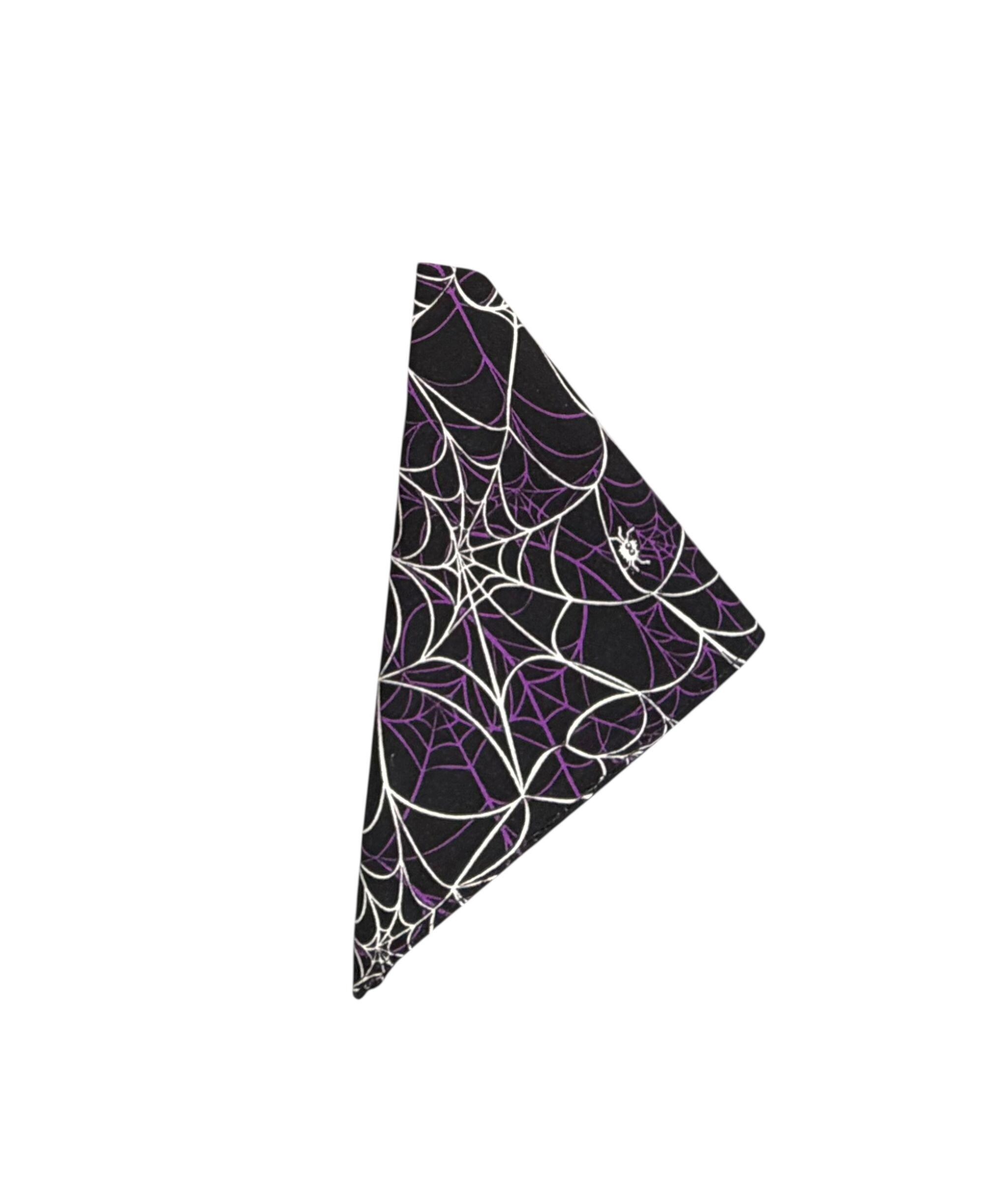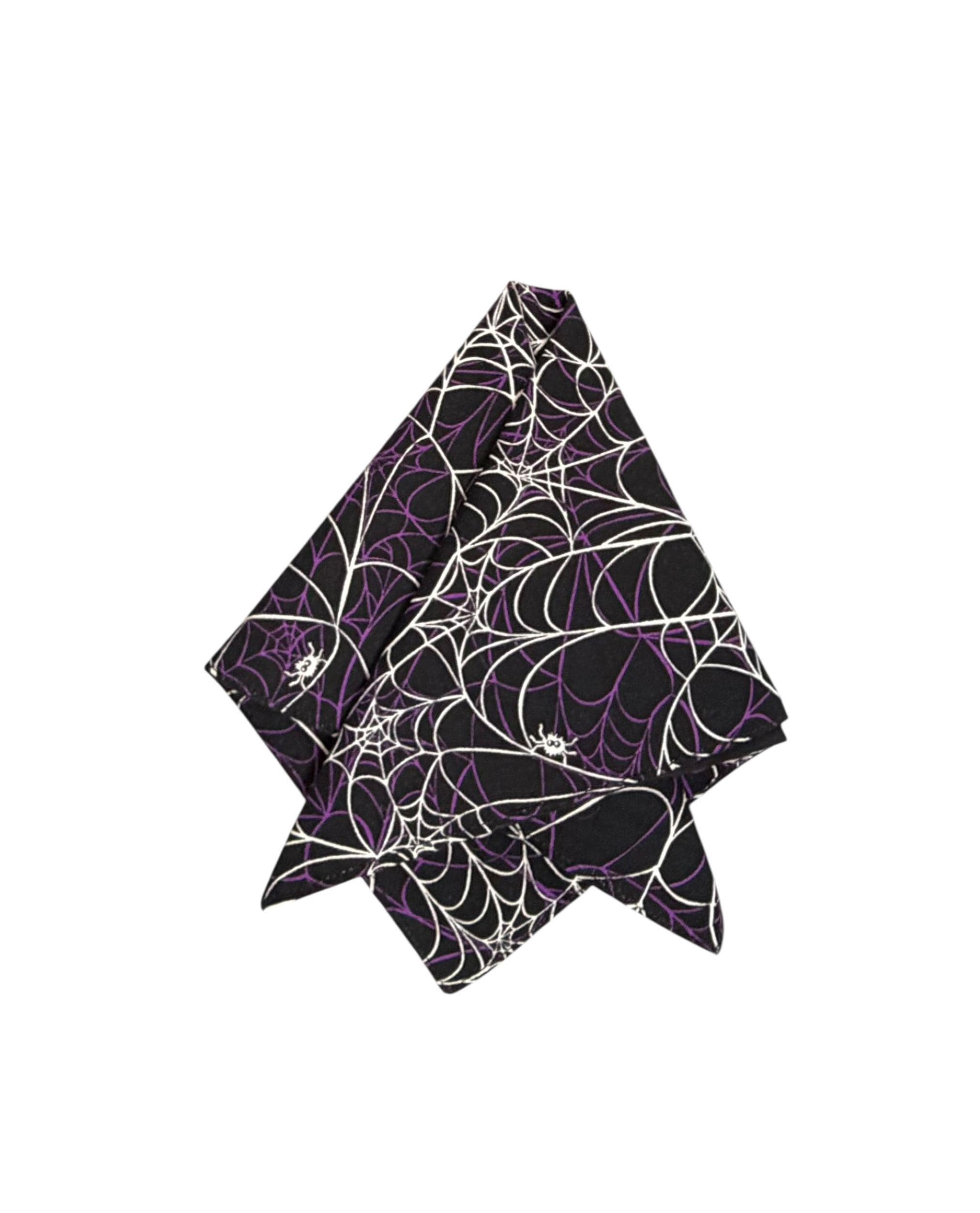 Elevate your Halloween style with The “Emmett” Halloween Pocket Square, featuring a bold black base with purple and white spider web designs. Perfect for adding seasonal flair to weddings, parties, or everyday suits in October.