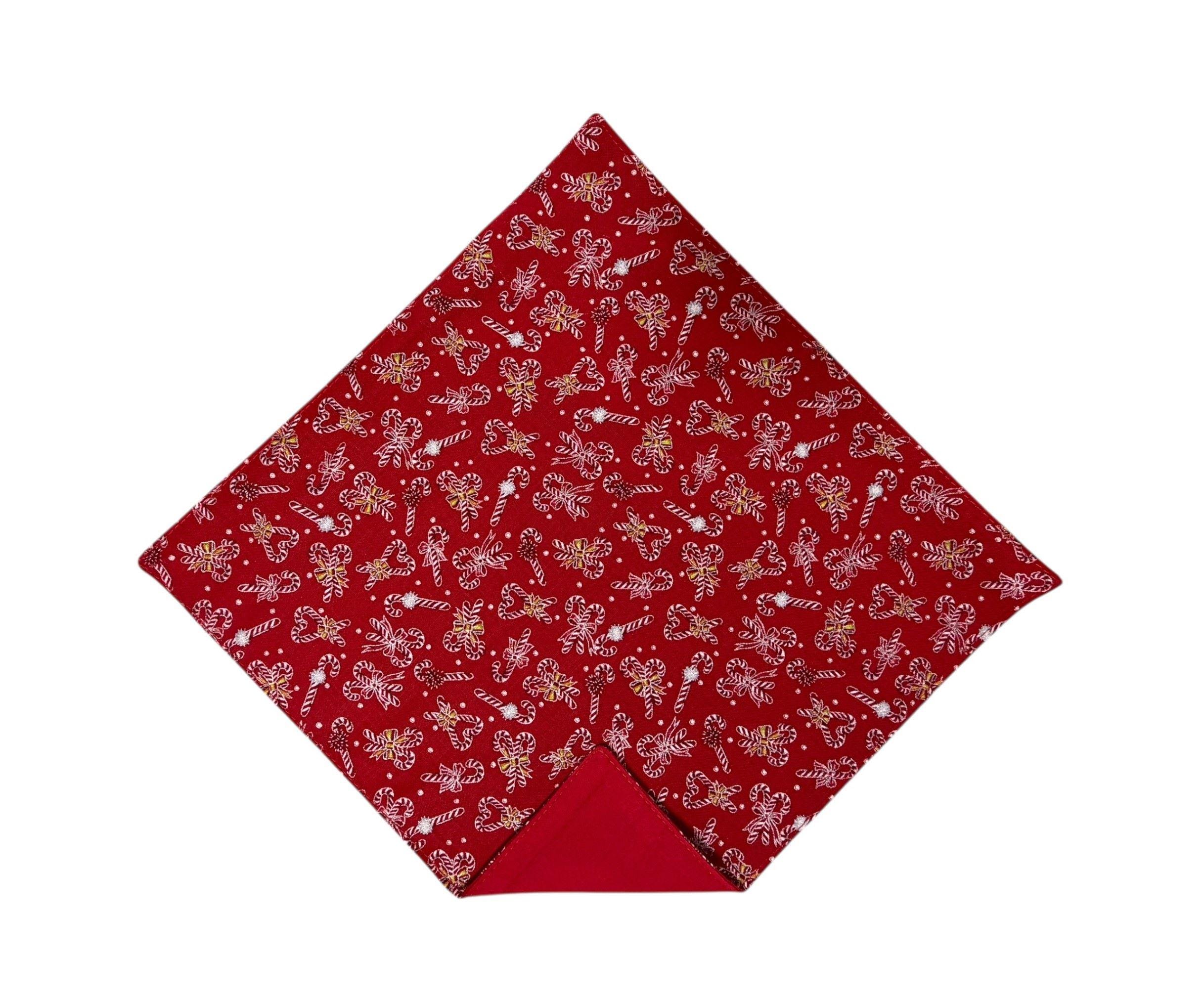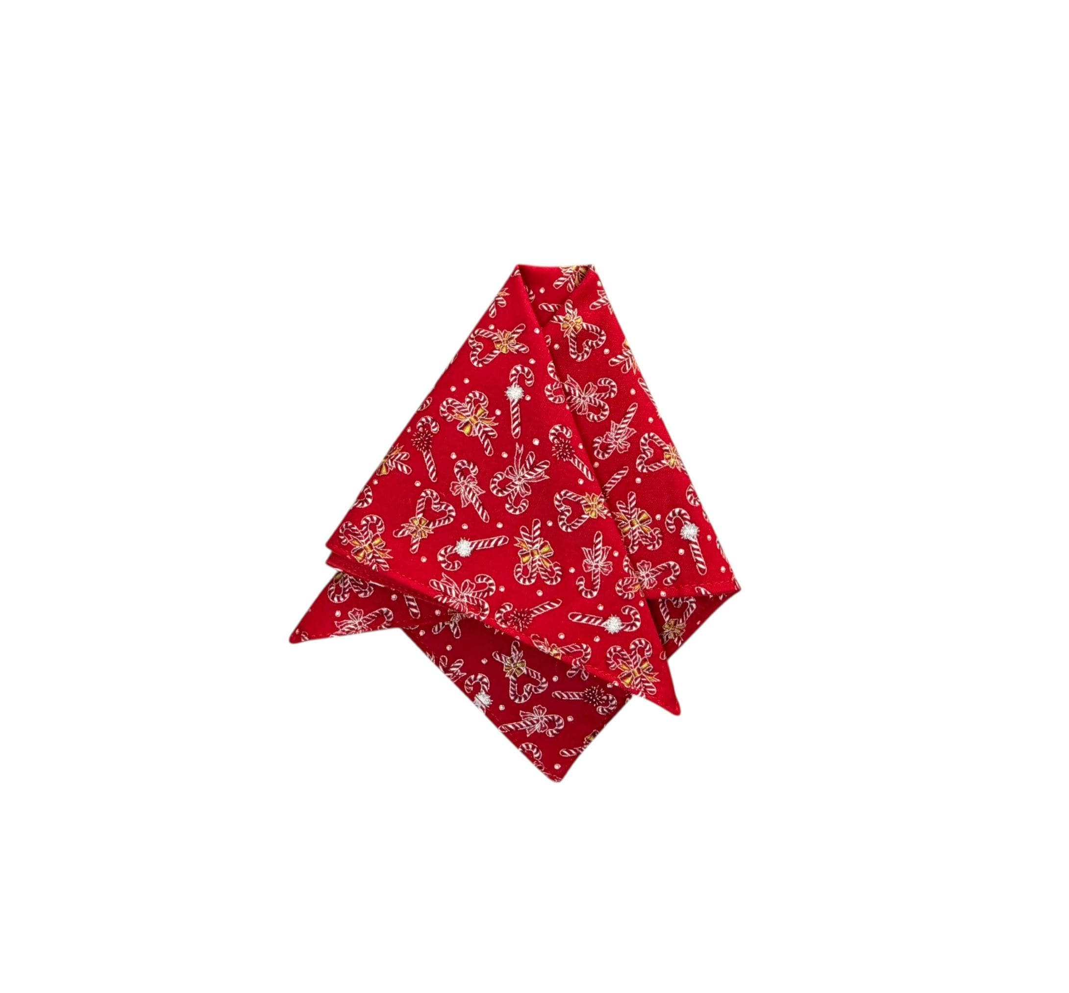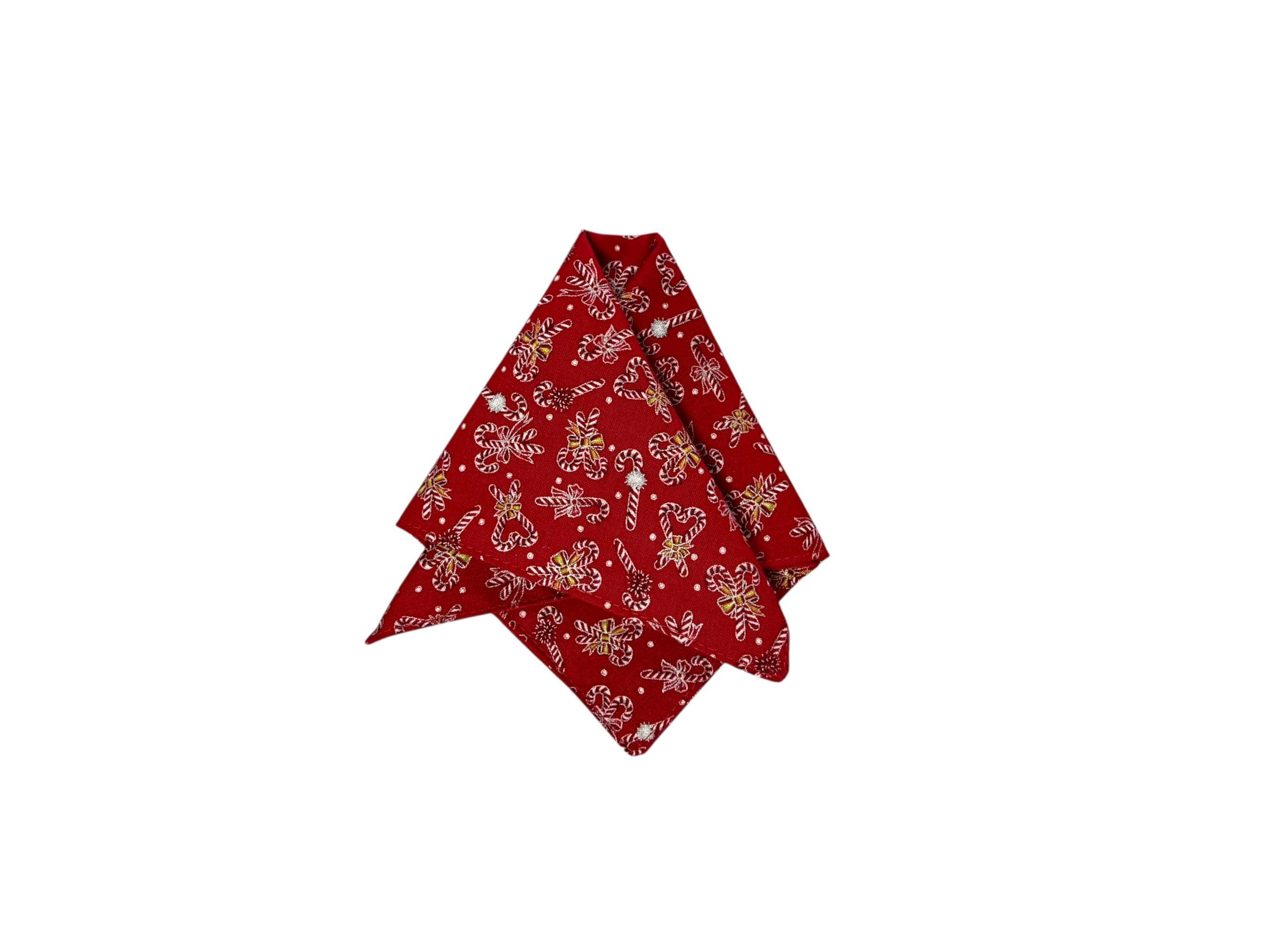 Candy Cane Handkerchief - Christmas Red & Green Accented with Silver Metallic - Cotton Pocket Square - Adult Men's Sizing - Handcrafted in the USA by Holiday Bow Ties, llc - The "Douglas"
