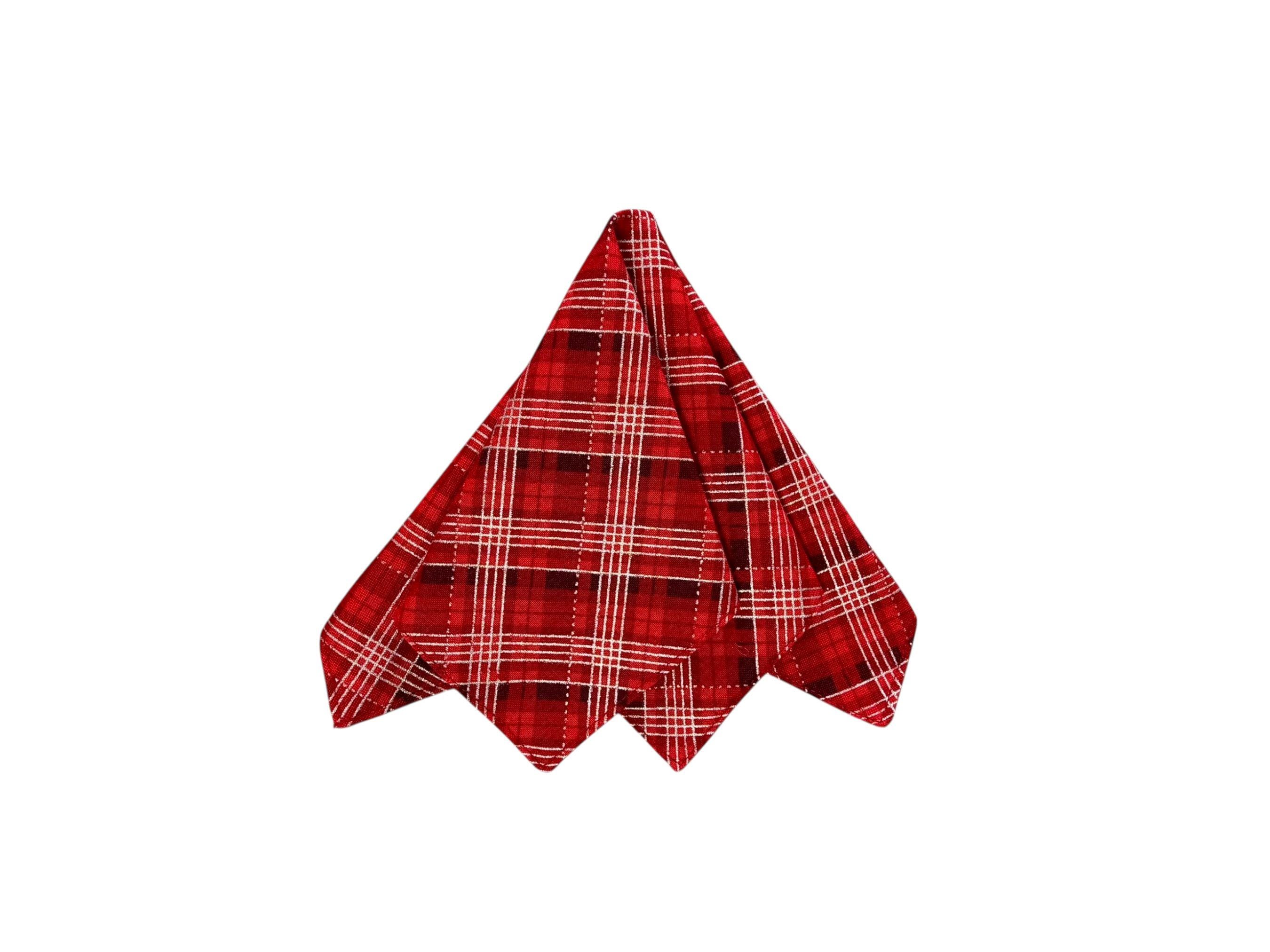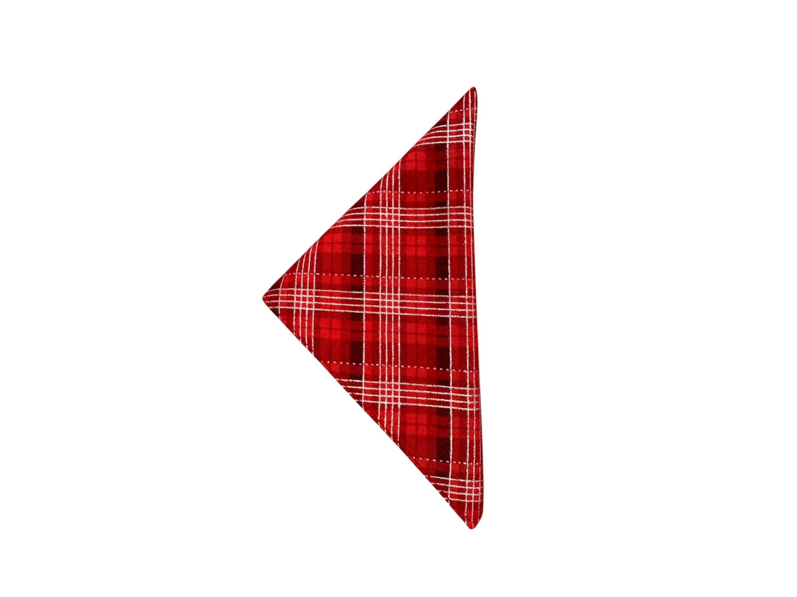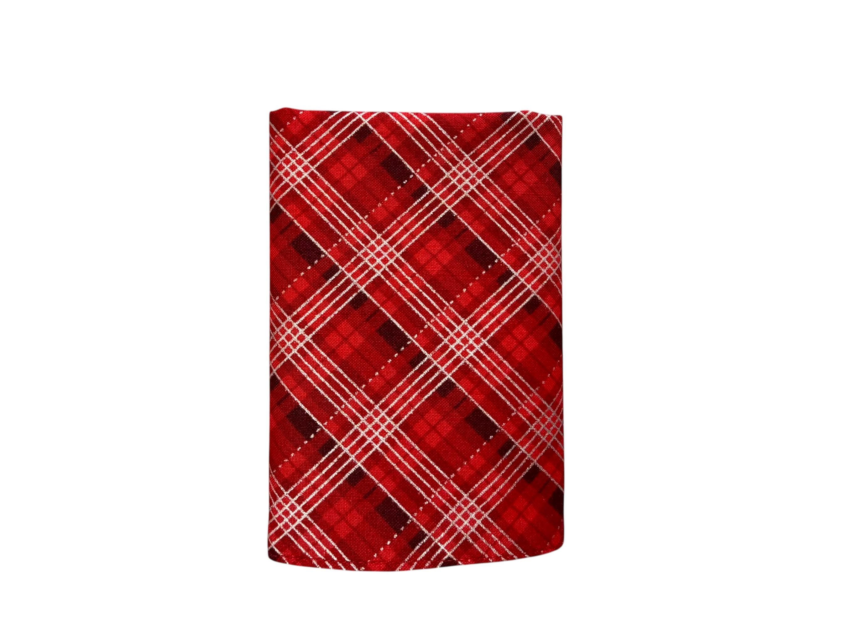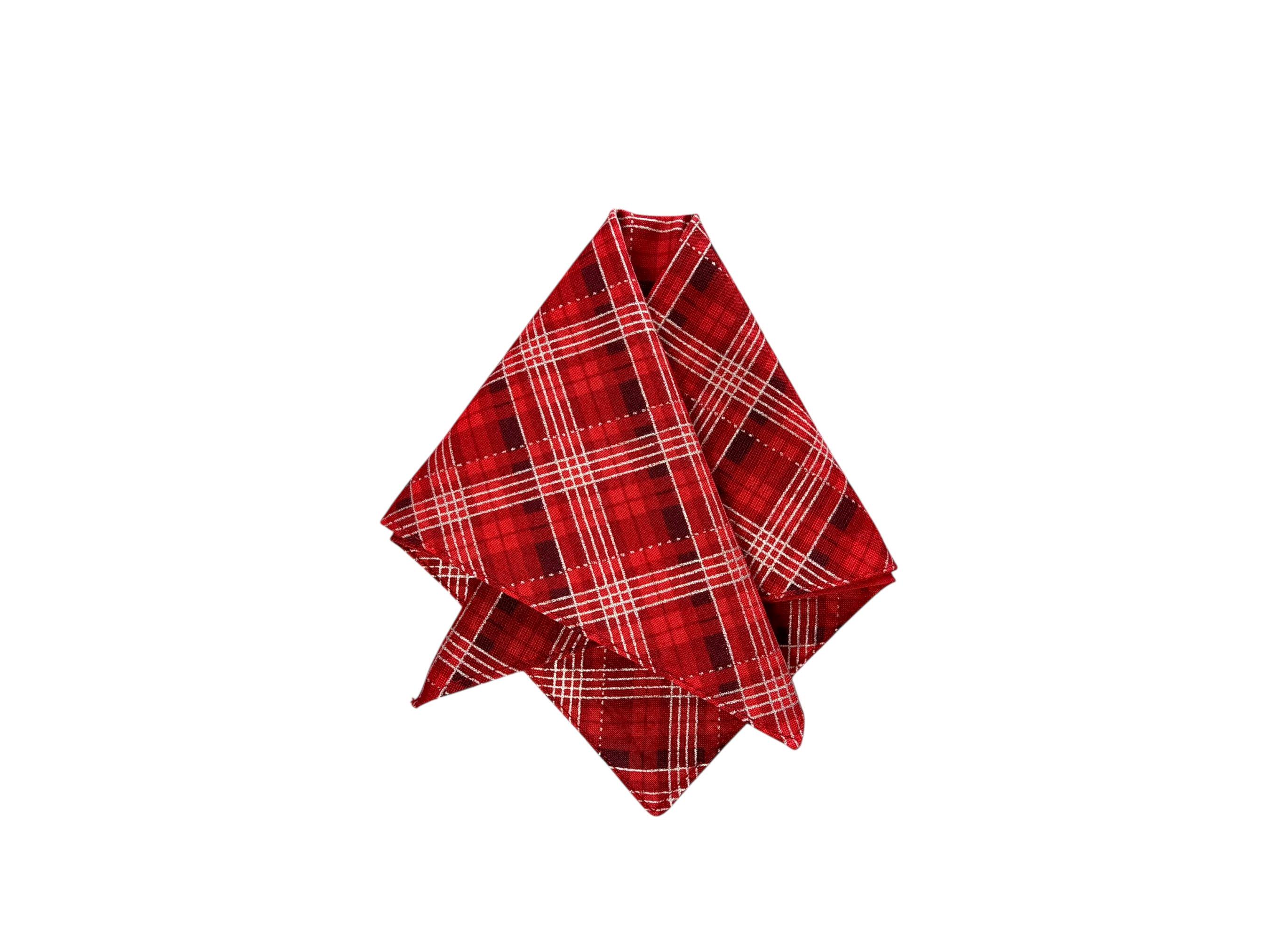 Holiday Pocket Square - Shades of Red with Silver Metallic Christmas Plaid - Cotton Handkerchief - Men's Sizing - Handcrafted in the USA by Holiday Bow Ties, LLC - The "Nicholas"