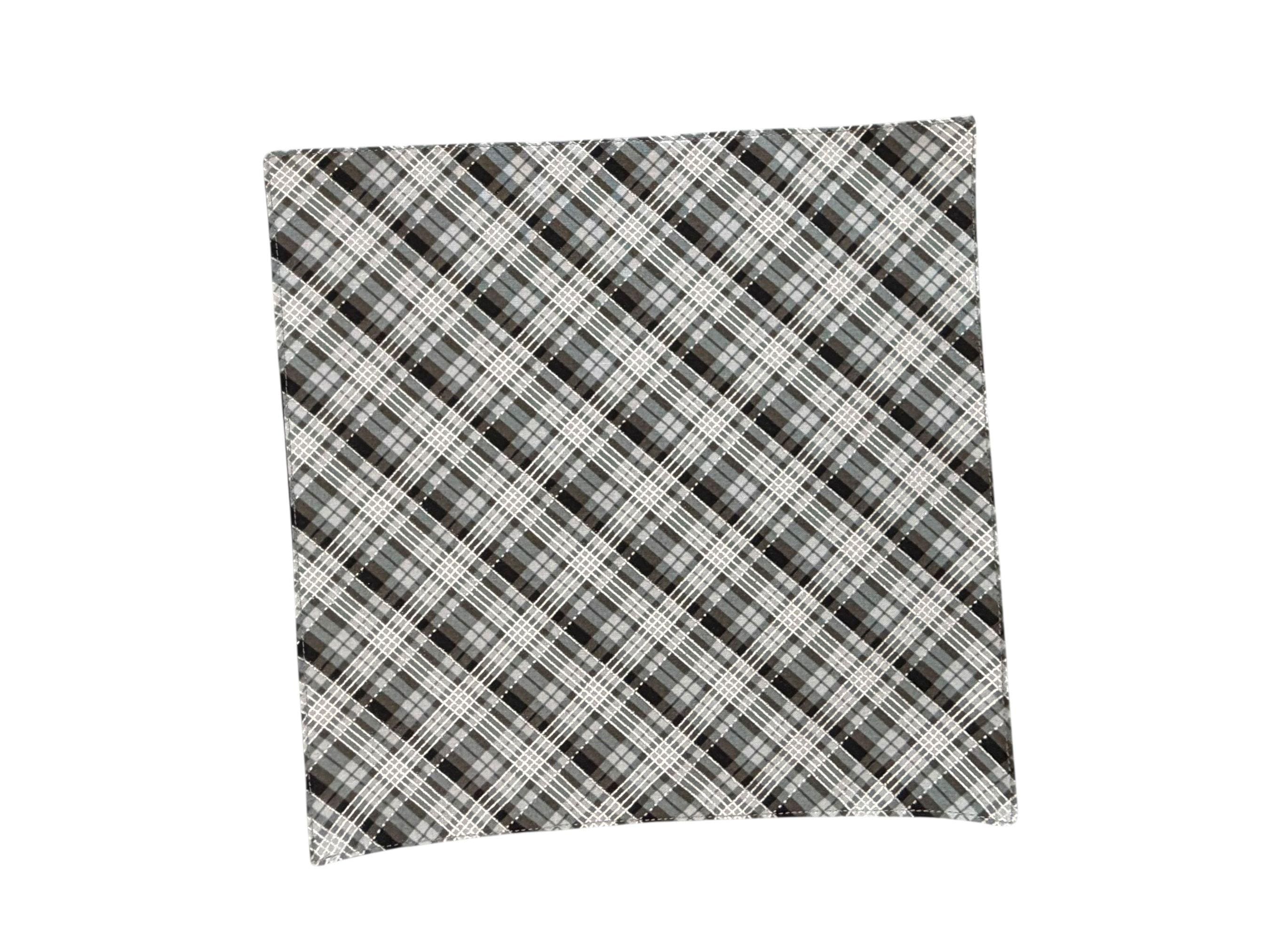Holiday Pocket Square - Black & Grey with Silver Metallic Christmas Plaid - Cotton Handkerchief - Men's Sizing - Handcrafted in the USA by Holiday Bow Ties, LLC - The "Theodore"