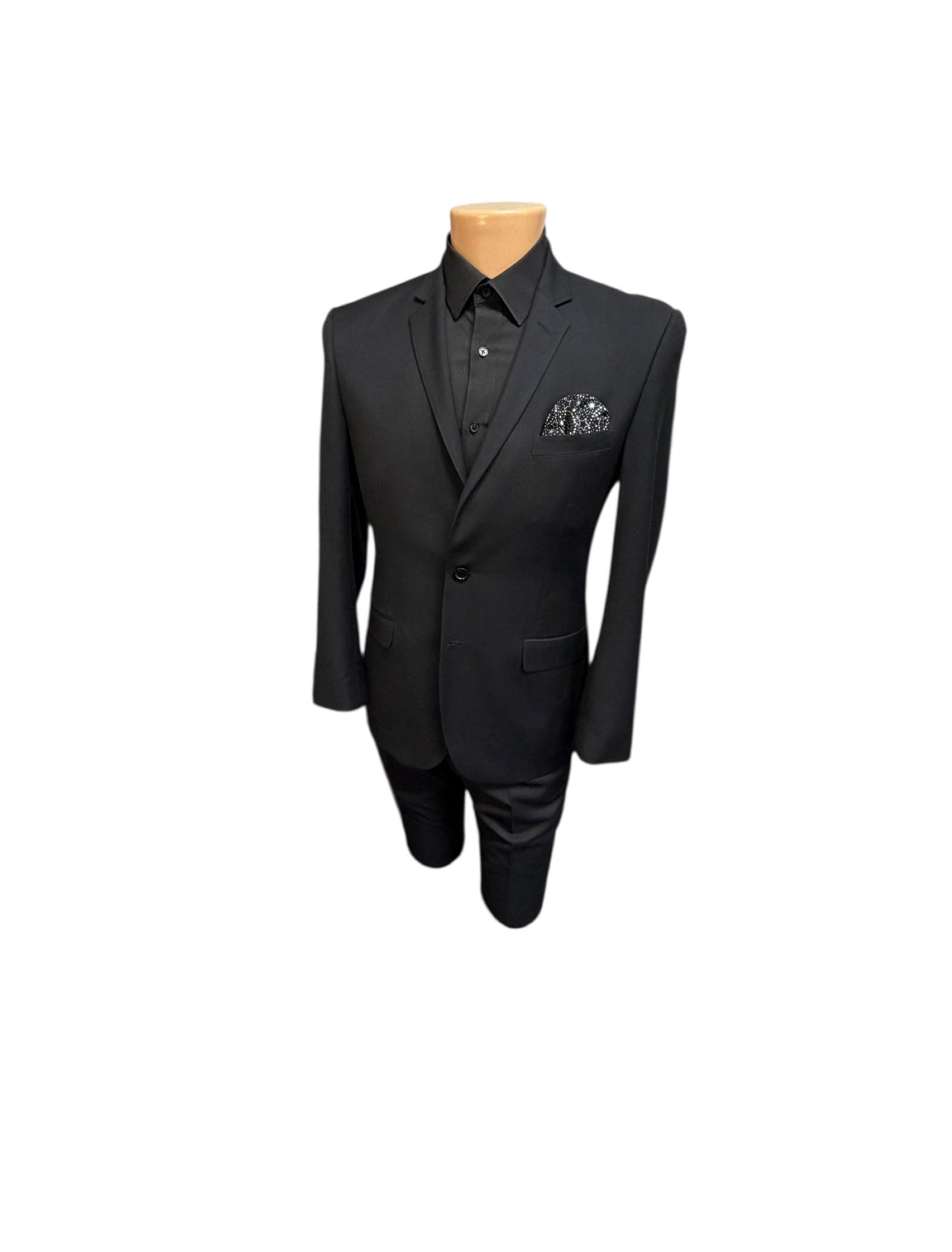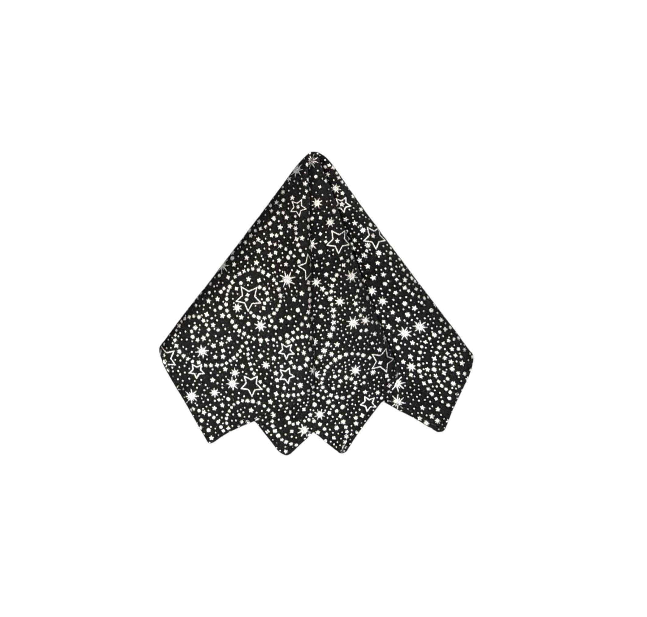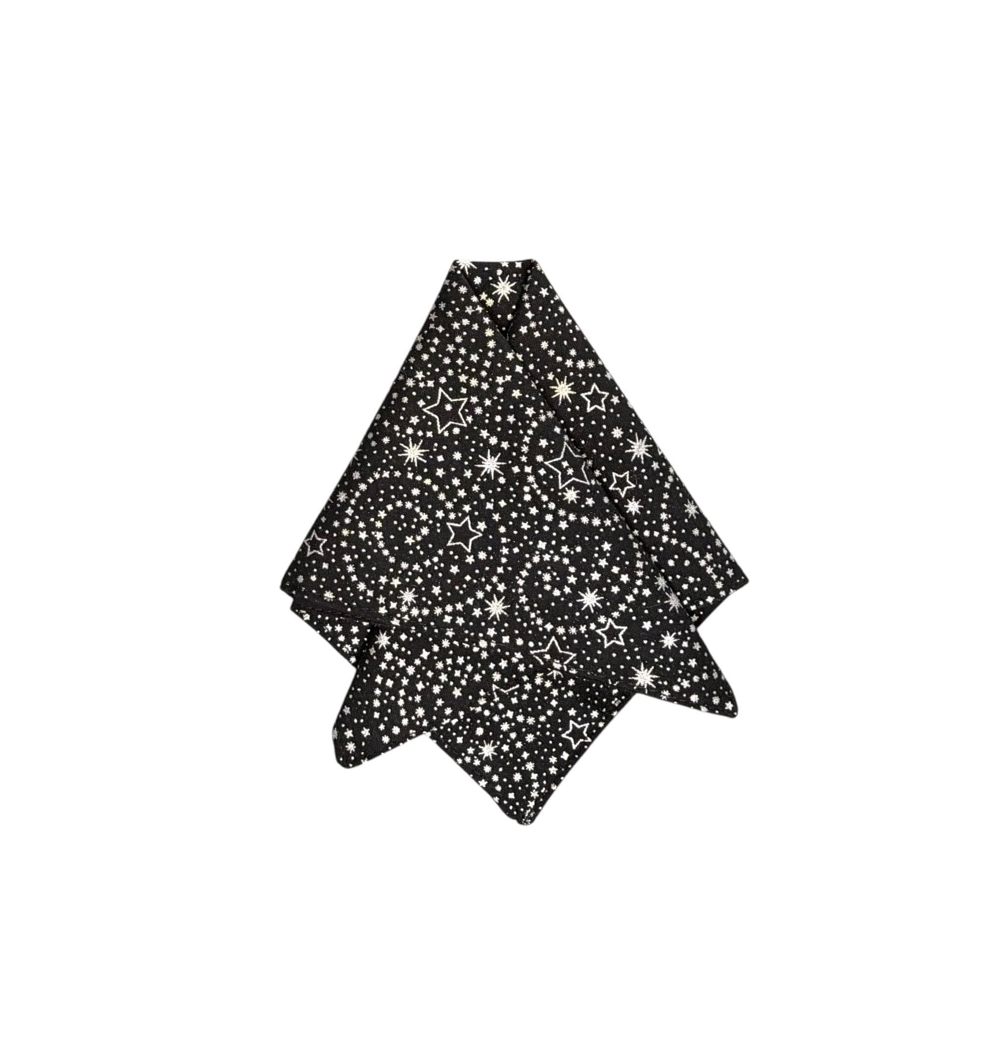 Pocket Square - Black with Silver Metallic Stars Holiday Design - Wedding - Prom Night - Cotton Handkerchief - Adult Men's Sizing - Handcrafted in the USA by Holiday Bow Ties, llc - The "Joey"