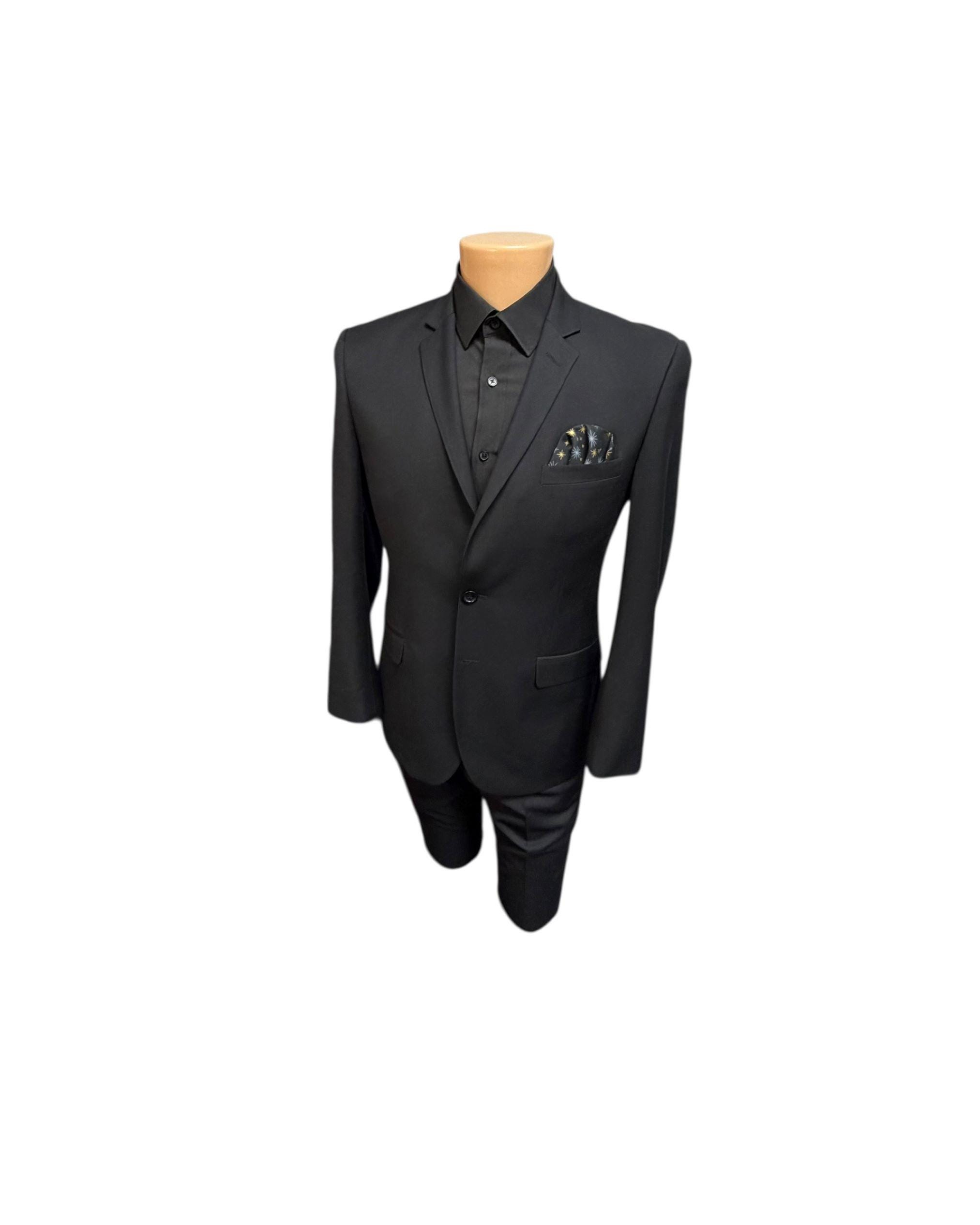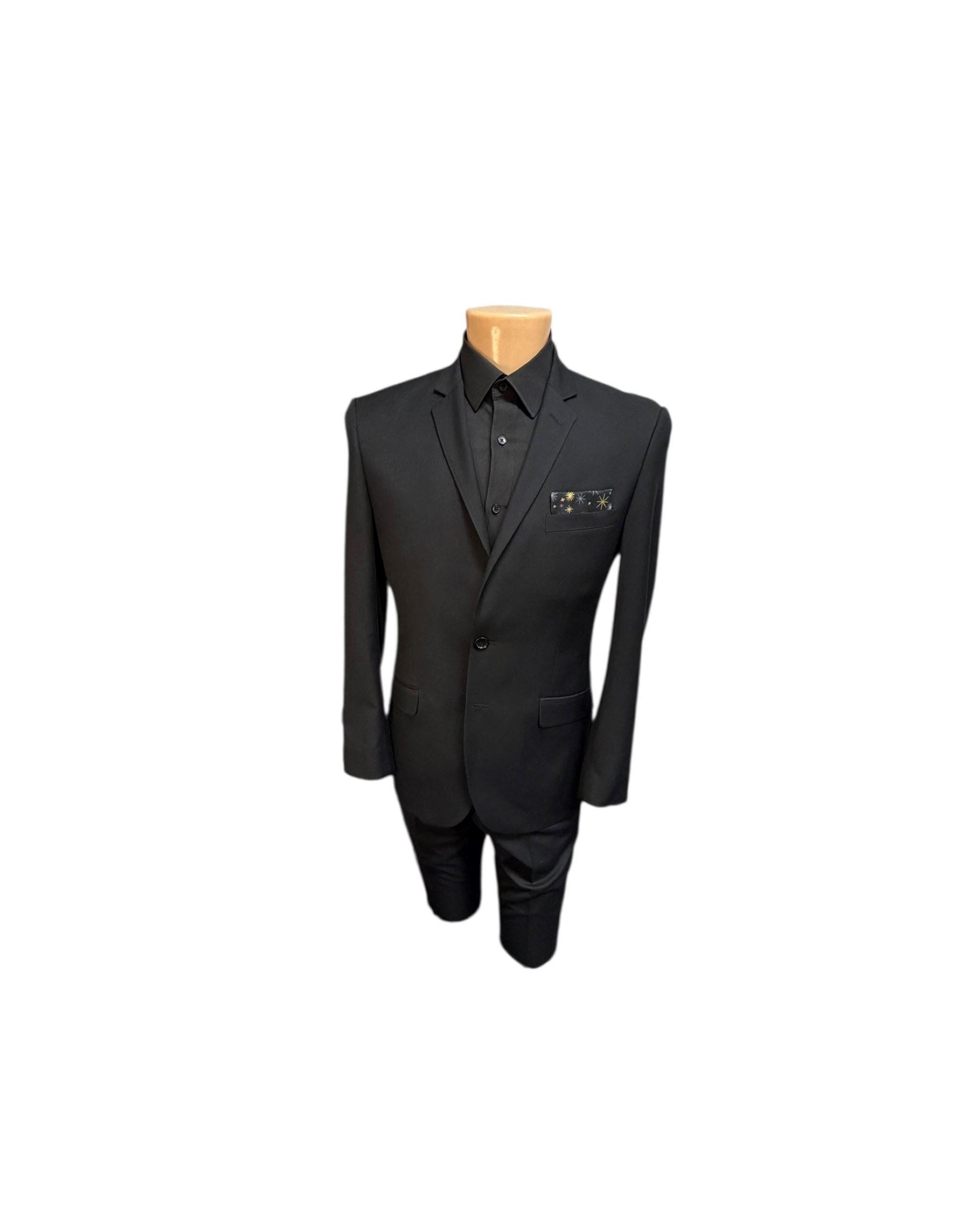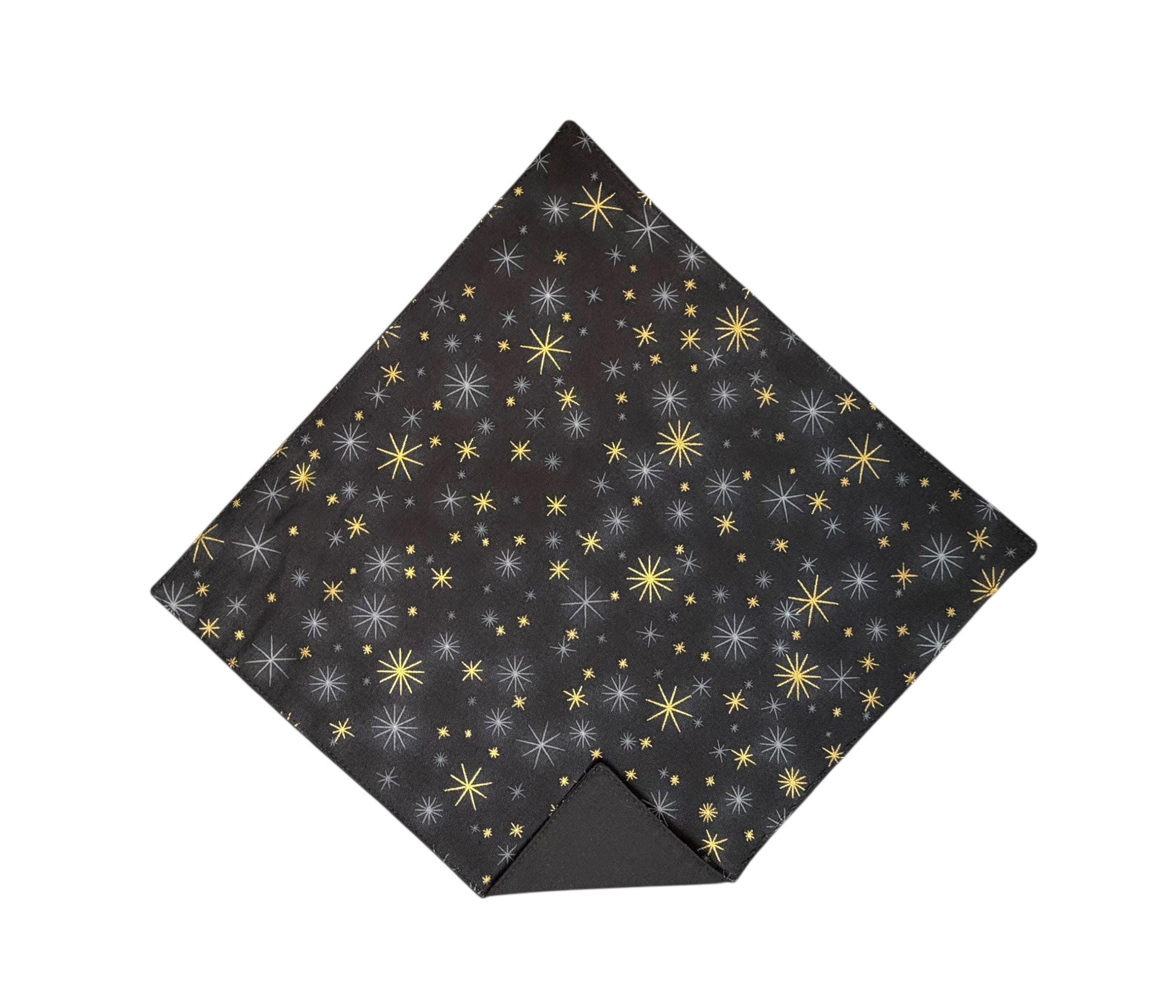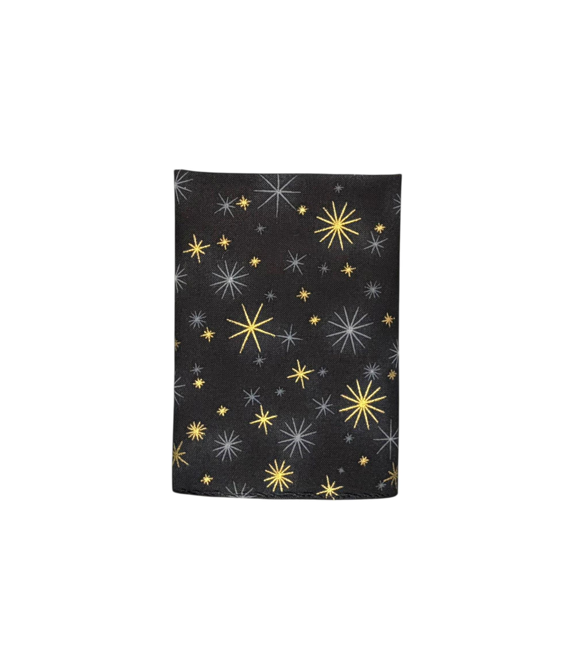 Pocket Square - Black with Gold Metallic Stars Holiday Design - Wedding - Prom Night - Cotton Handkerchief - Adult Men's Sizing - Handcrafted in the USA by Holiday Bow Ties, llc - The "Oakly"