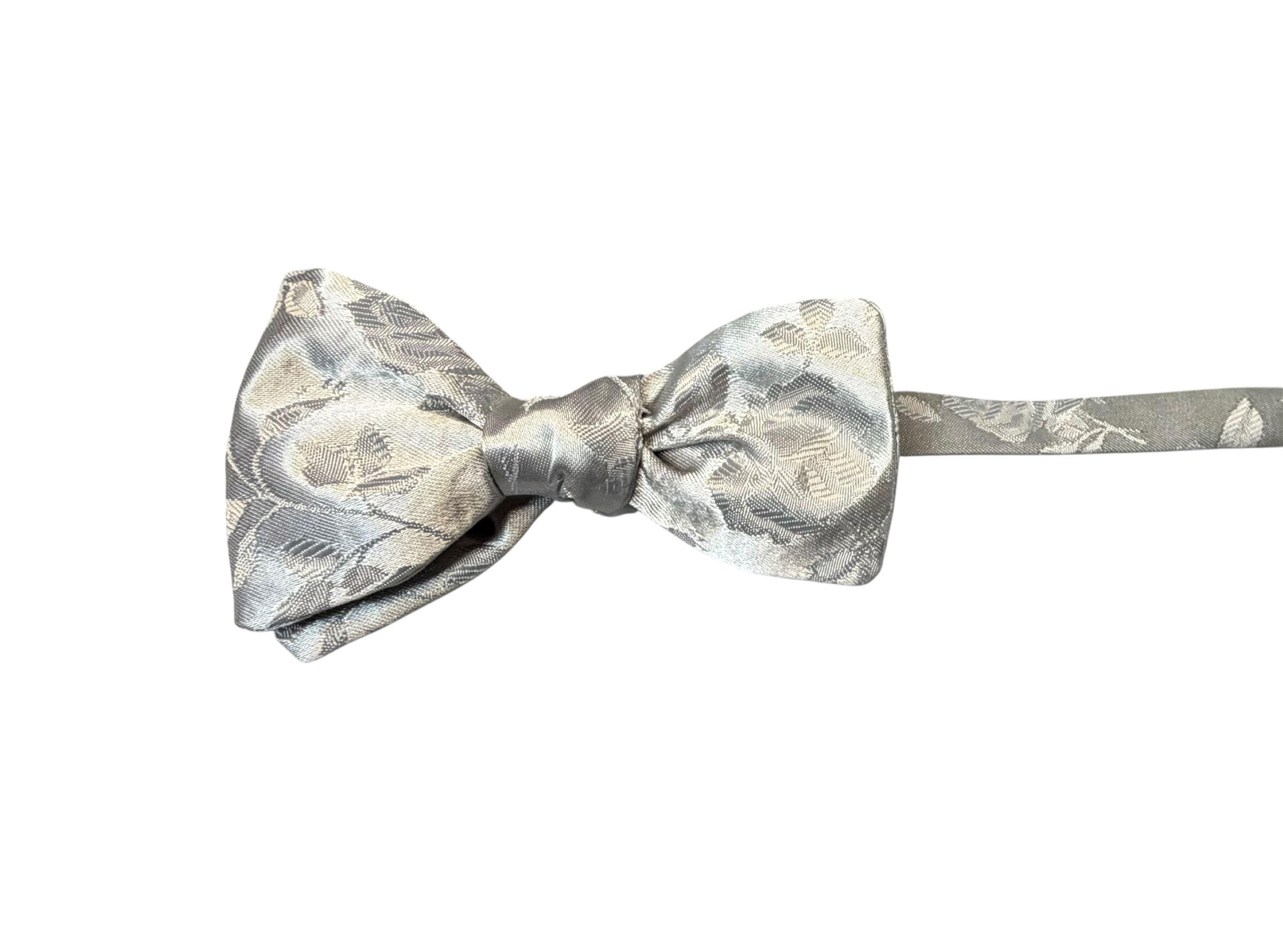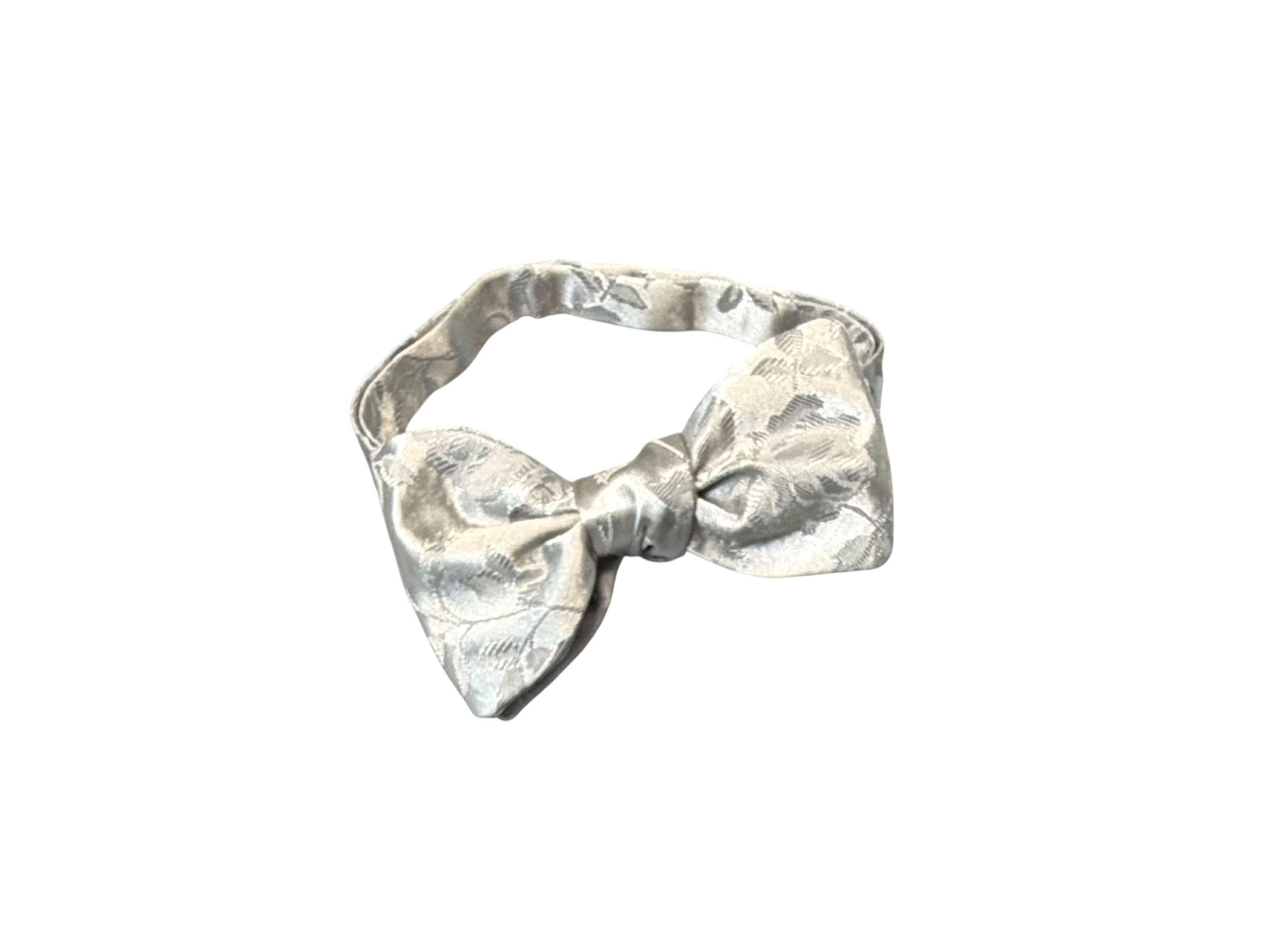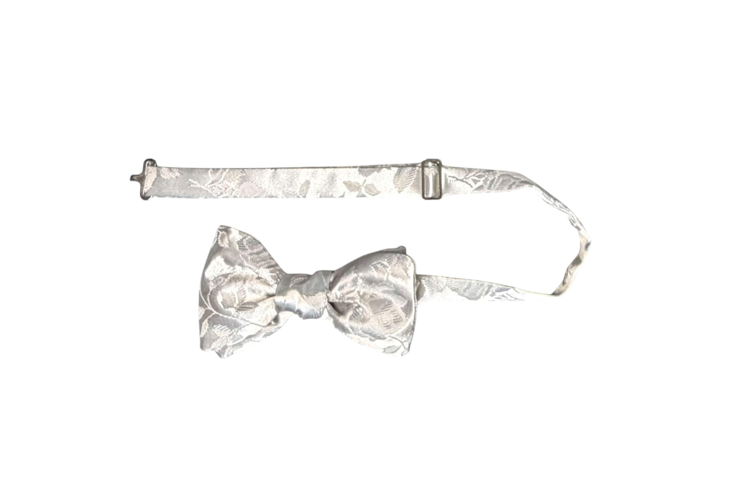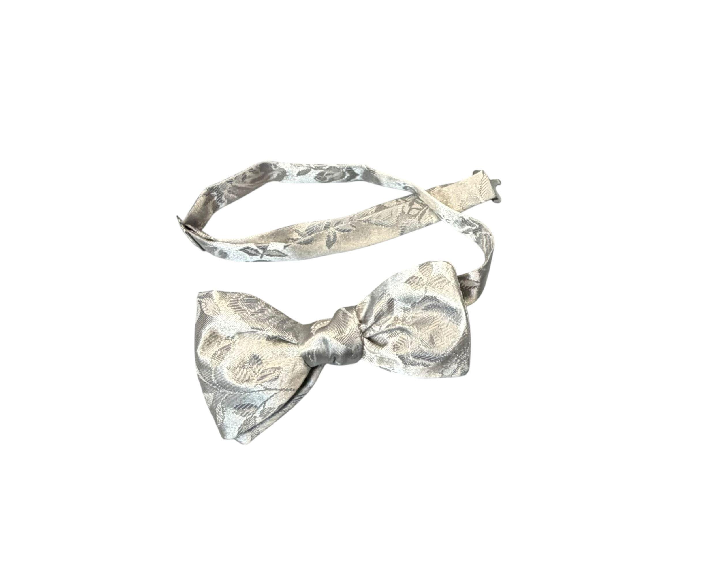 Pretied Adjustable Bow Tie - Silver Grey Rose Satin Brocade - Adult Mens Sizing - Handcrafted in the USA by Holiday Bow Ties, LLC - The "Lee" Bow Tie