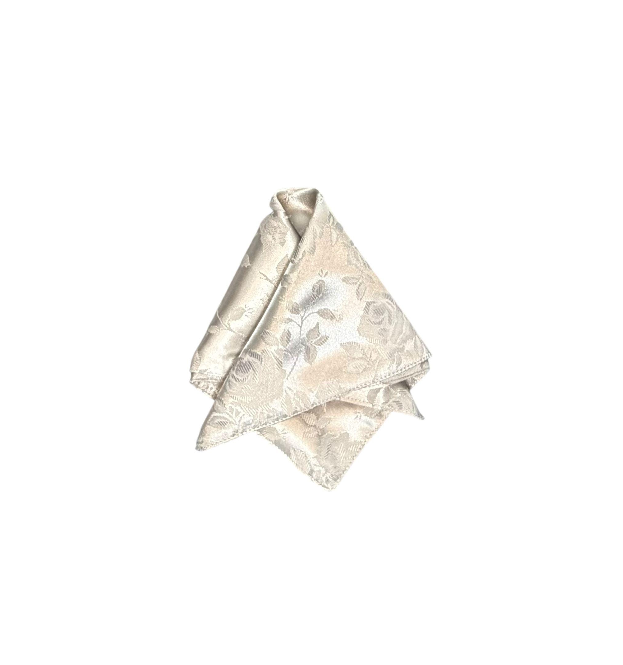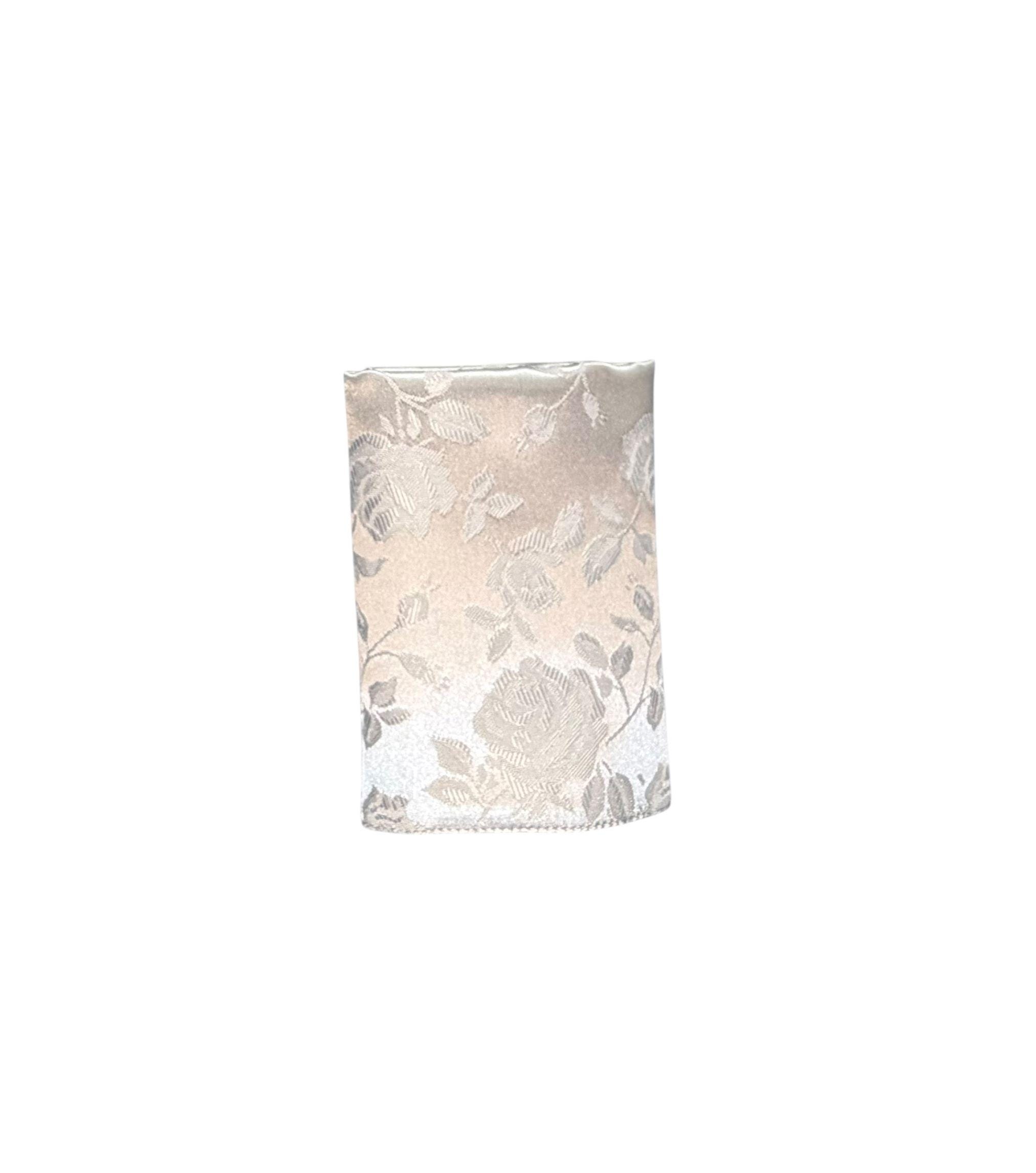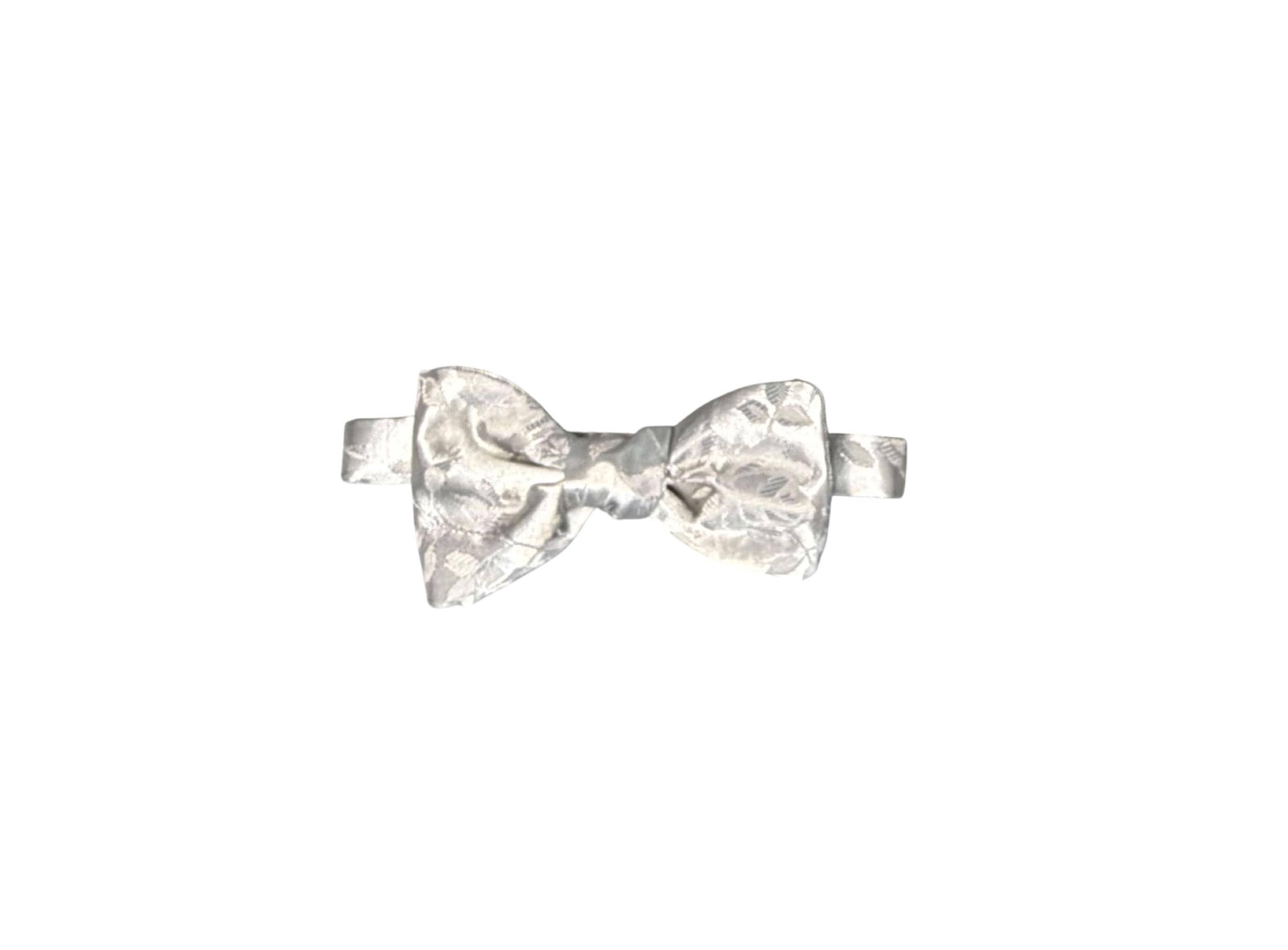 Self-tie Adjustable Bow Tie and Pocket Square Set - Silver Grey Embossed Rose Satin Brocade - Adult Mens Sizing - Crafted in the USA by Holiday Bow Ties, LLC - The "Lee" Bow Tie and Pocket Square Set