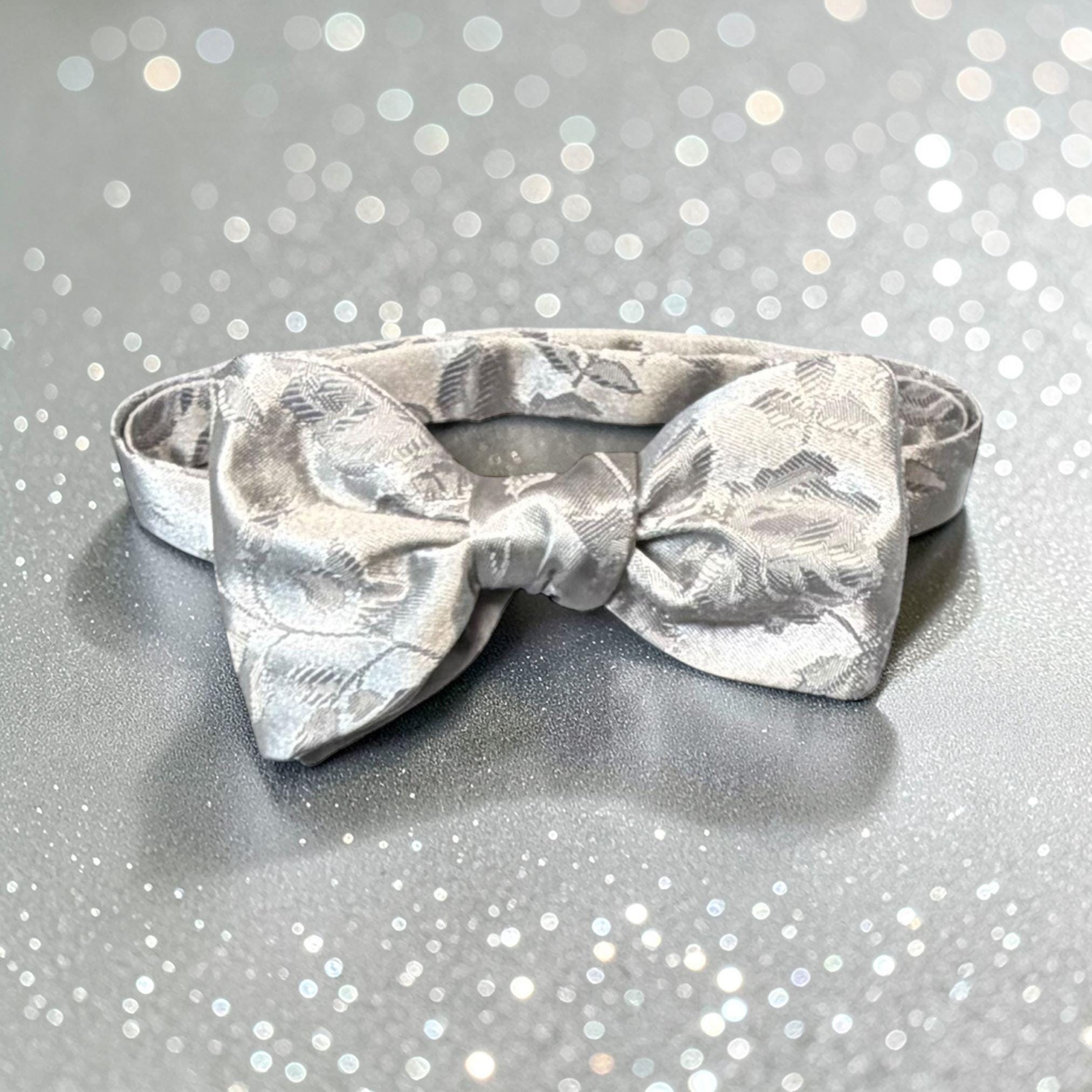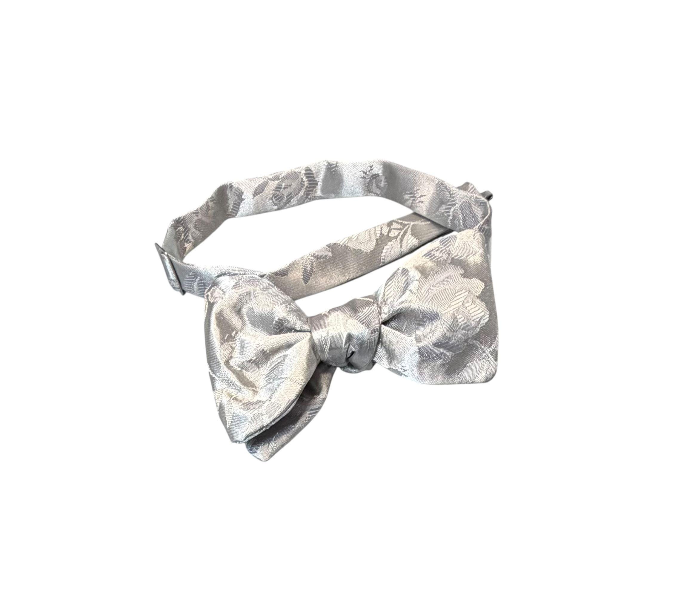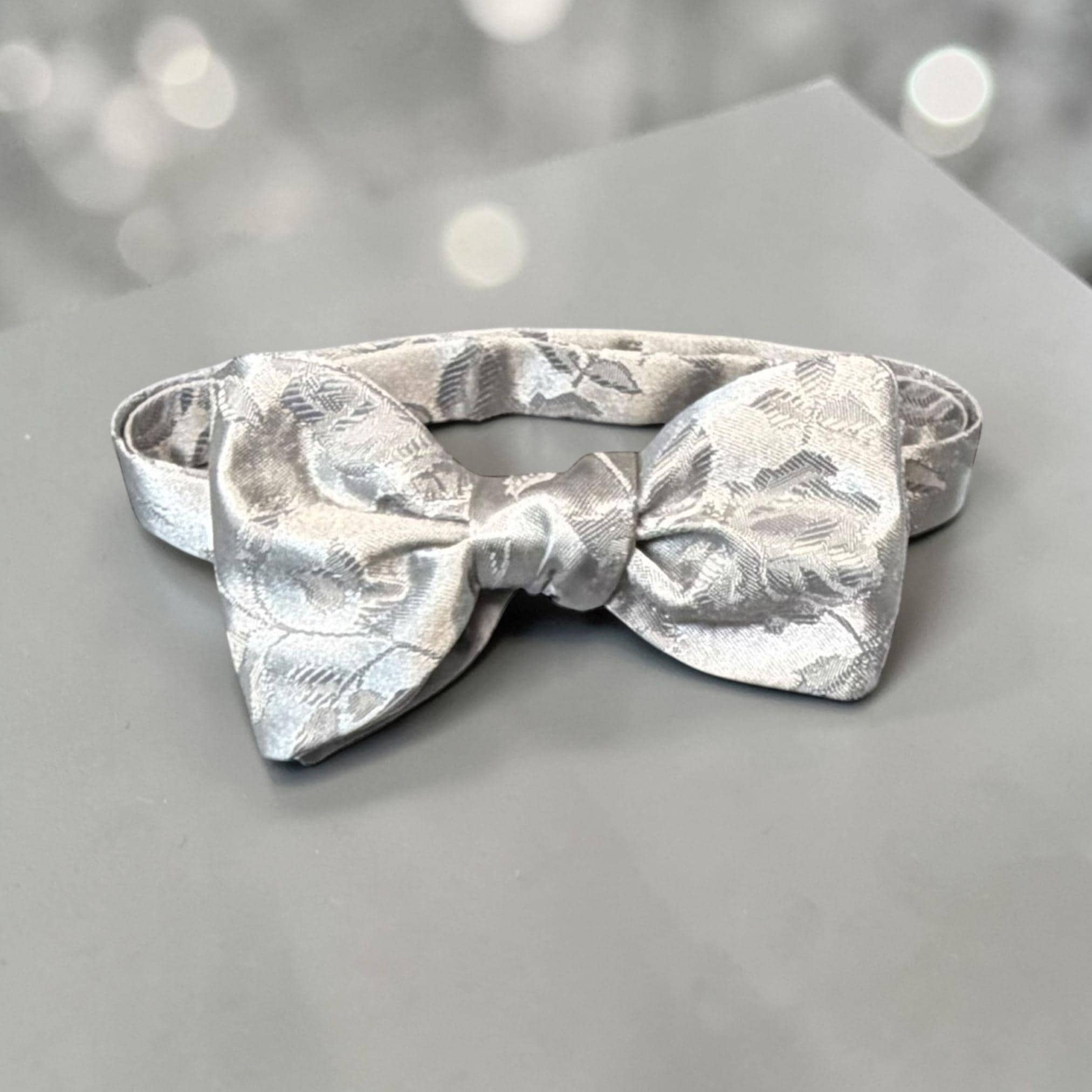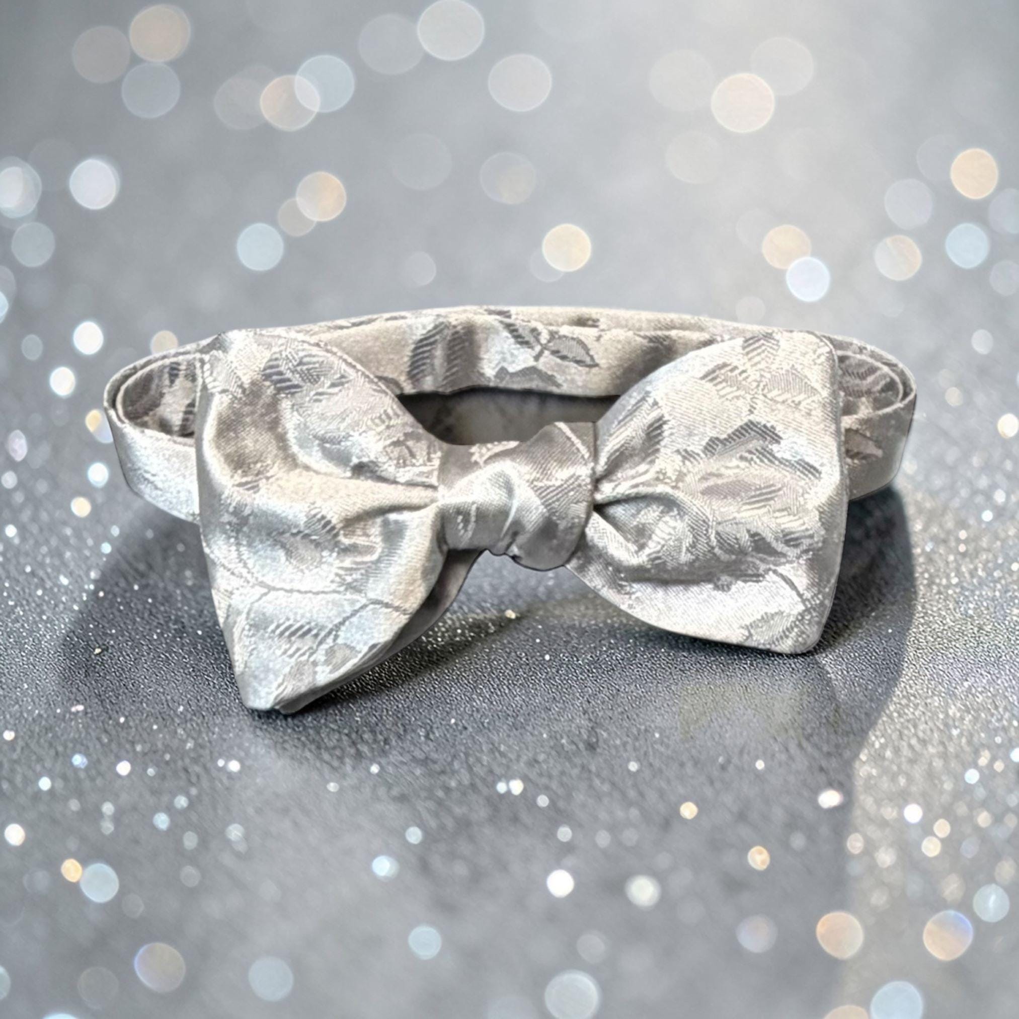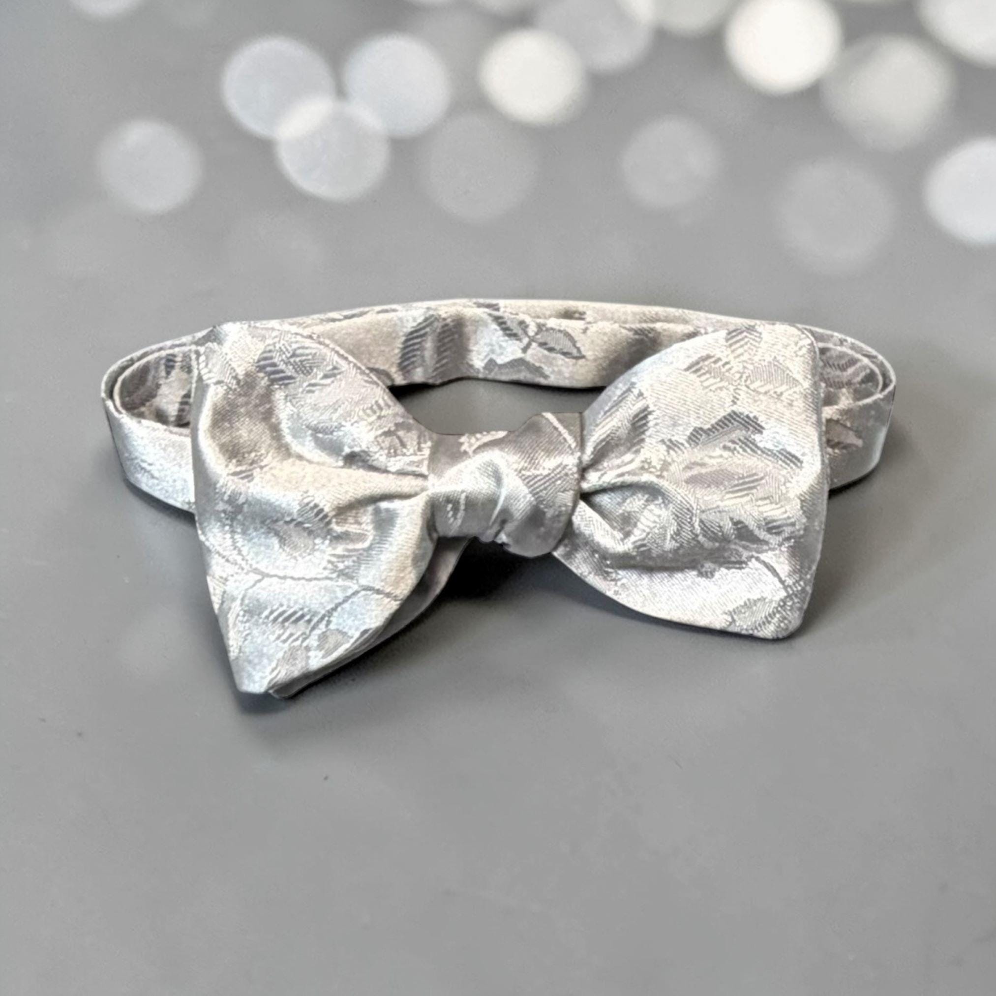 Wedding Self-Tie or Pretied - Silver Grey Rose Satin Jacquard - Adult Men's Sizing - Wedding Elegance and Prom Style - Handcrafted in the USA by Holiday Bow Ties, llc - The "Lee" Bow Tie