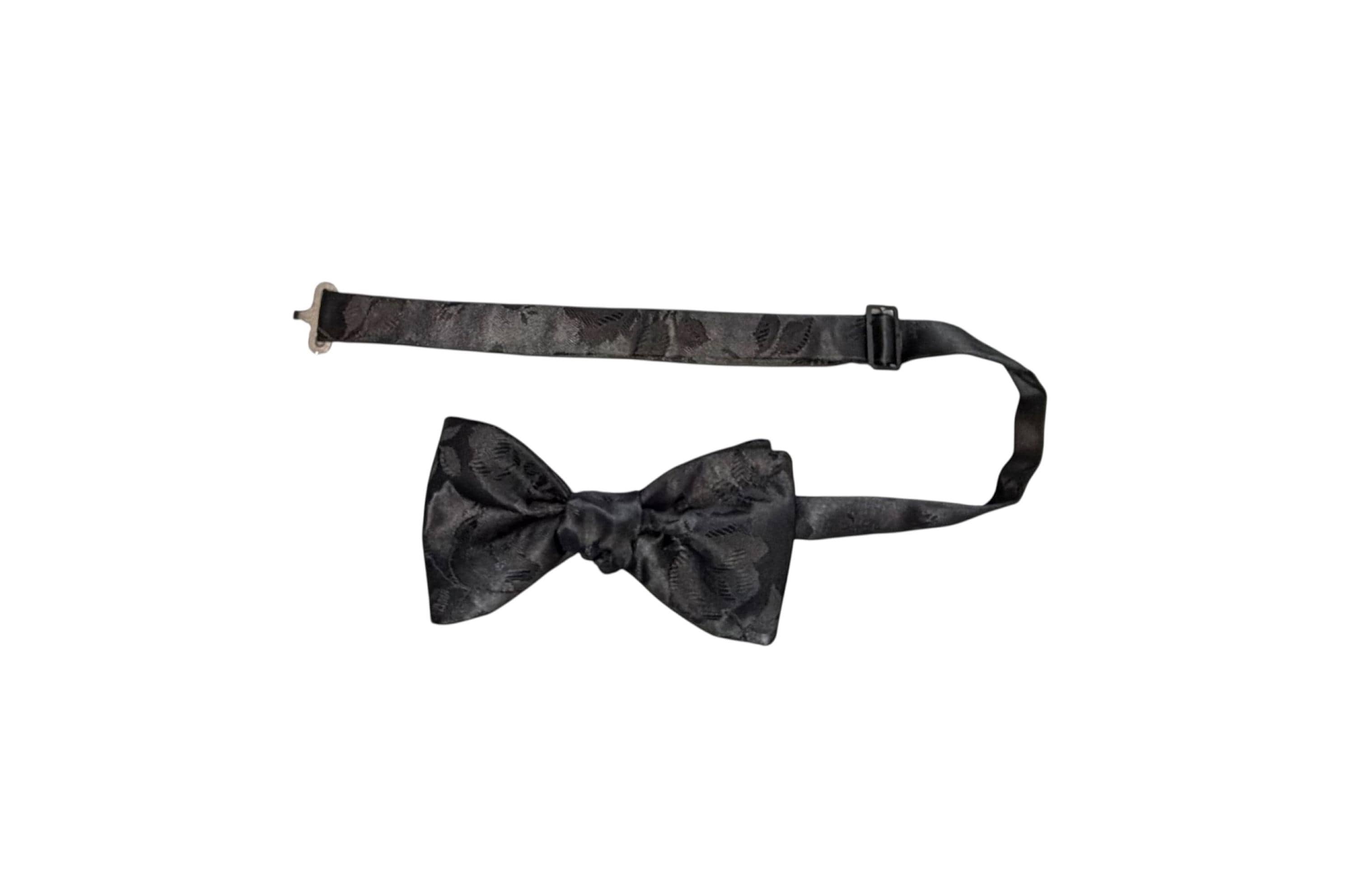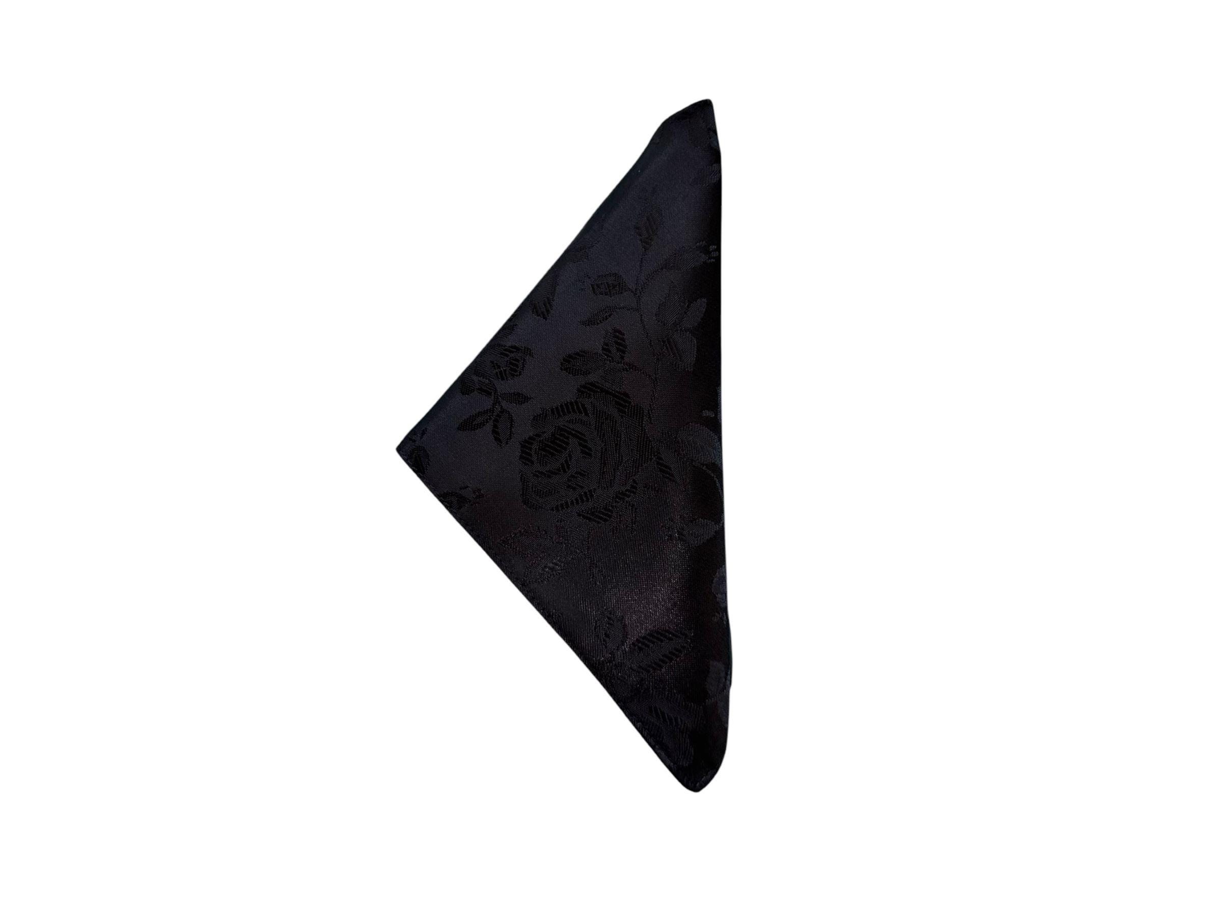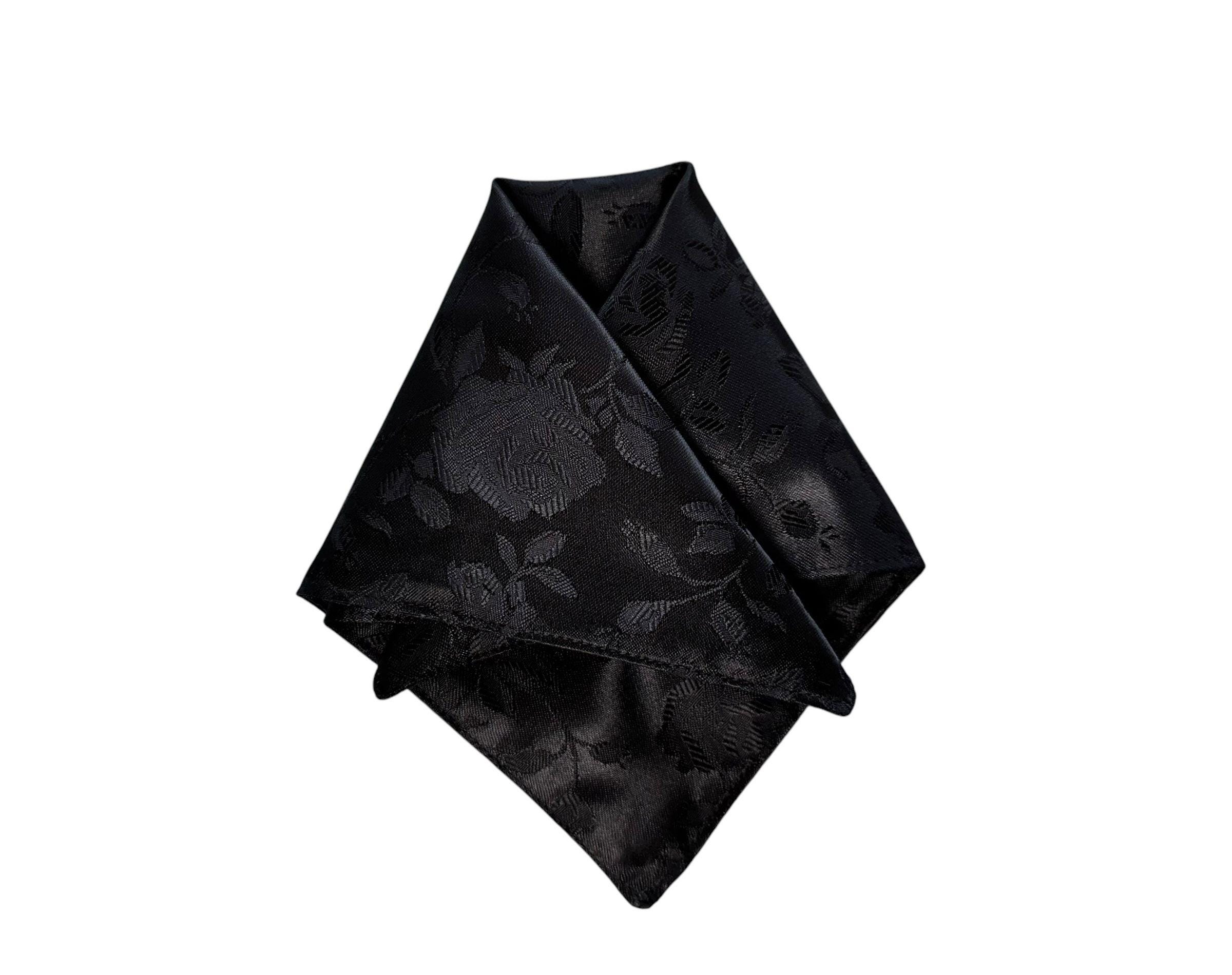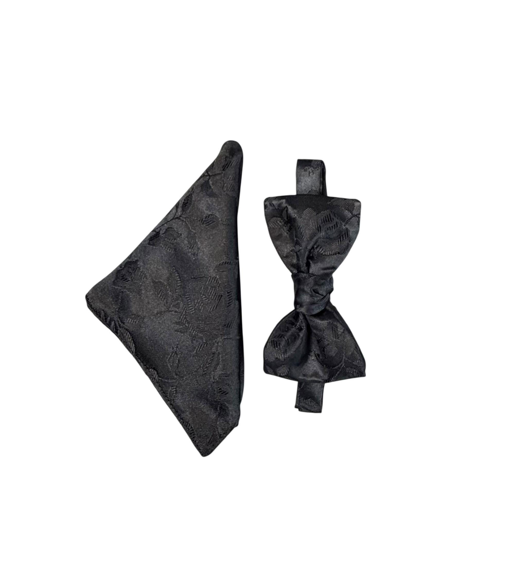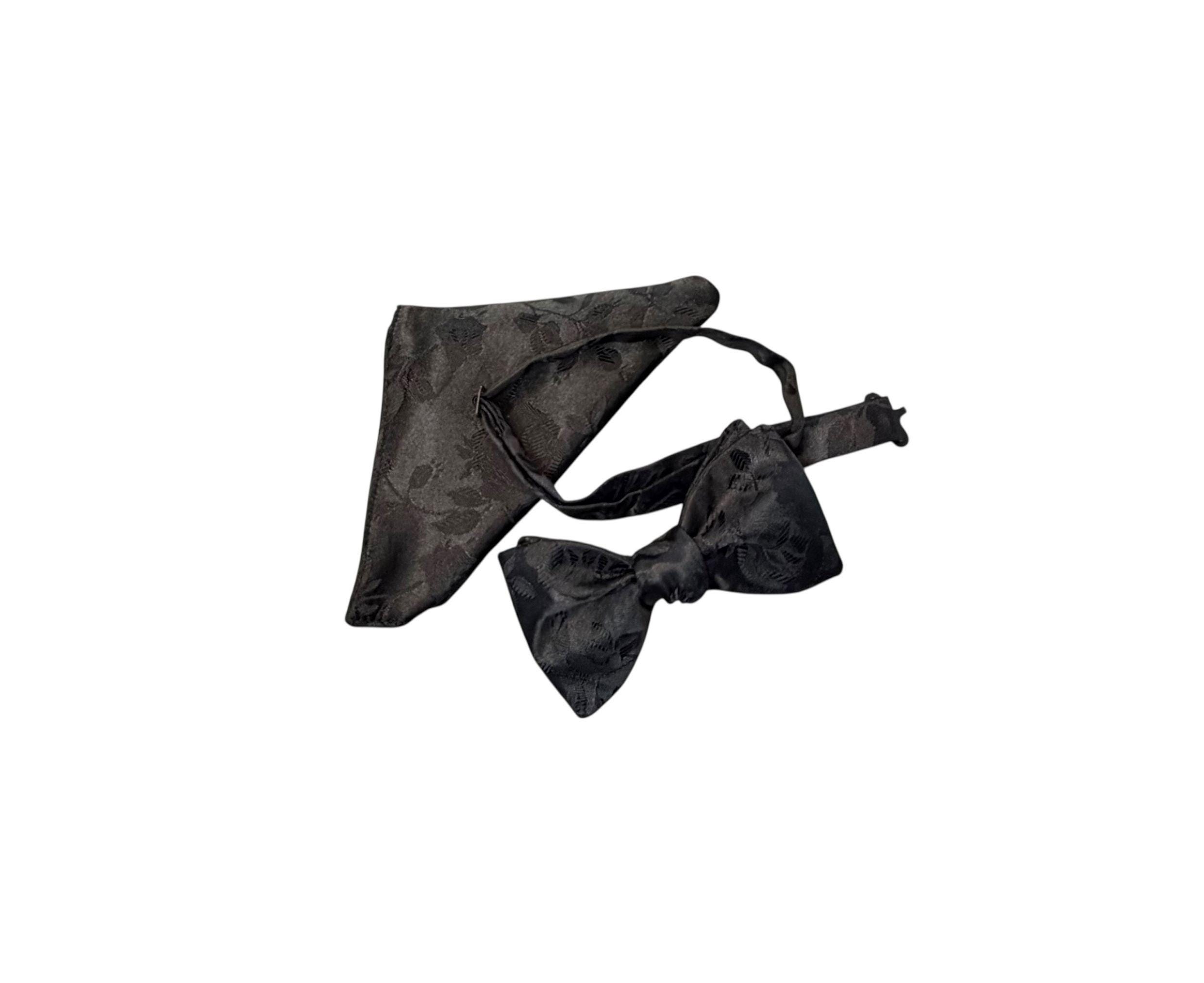 Pretied Adjustable Bow Tie and Pocket Square Set - Black on Black Floral Rose Brocade - Holiday Bow Ties, LLC - The "Lee" Bow Tie and Pocket Square Set