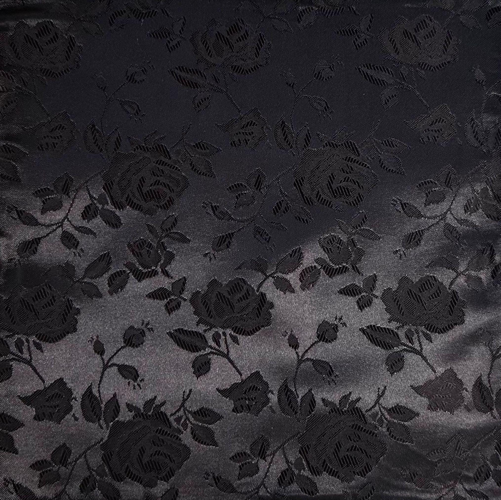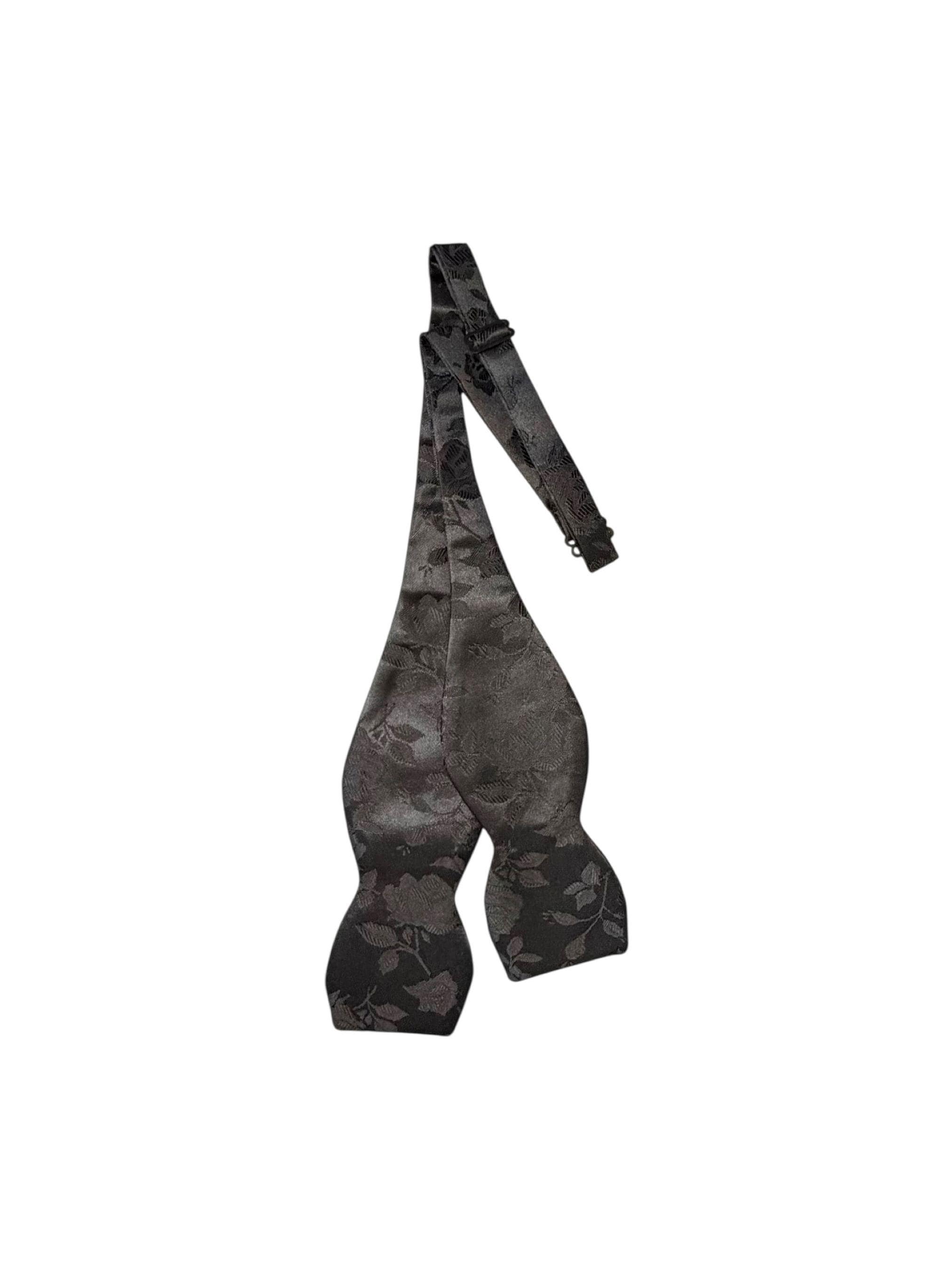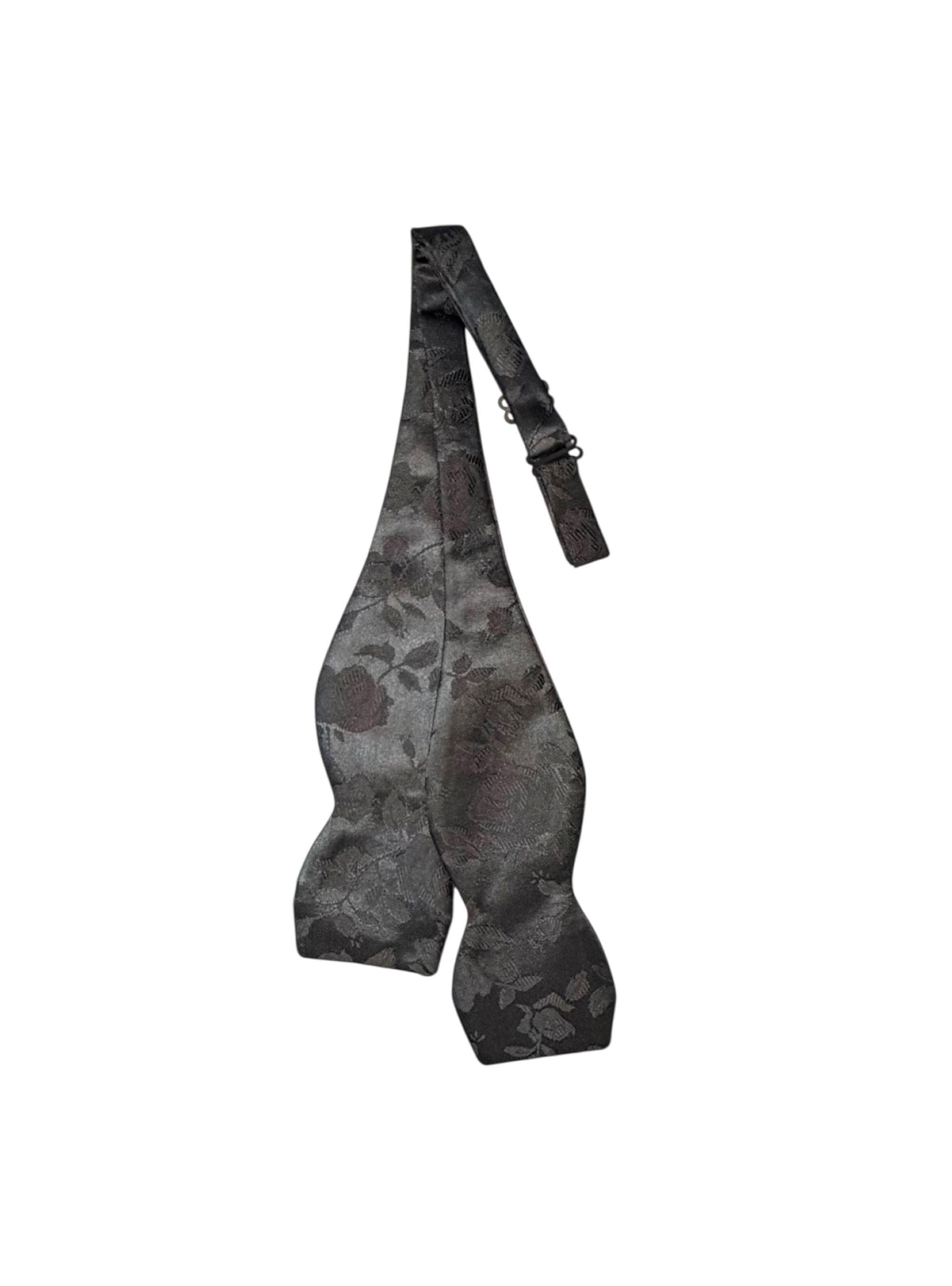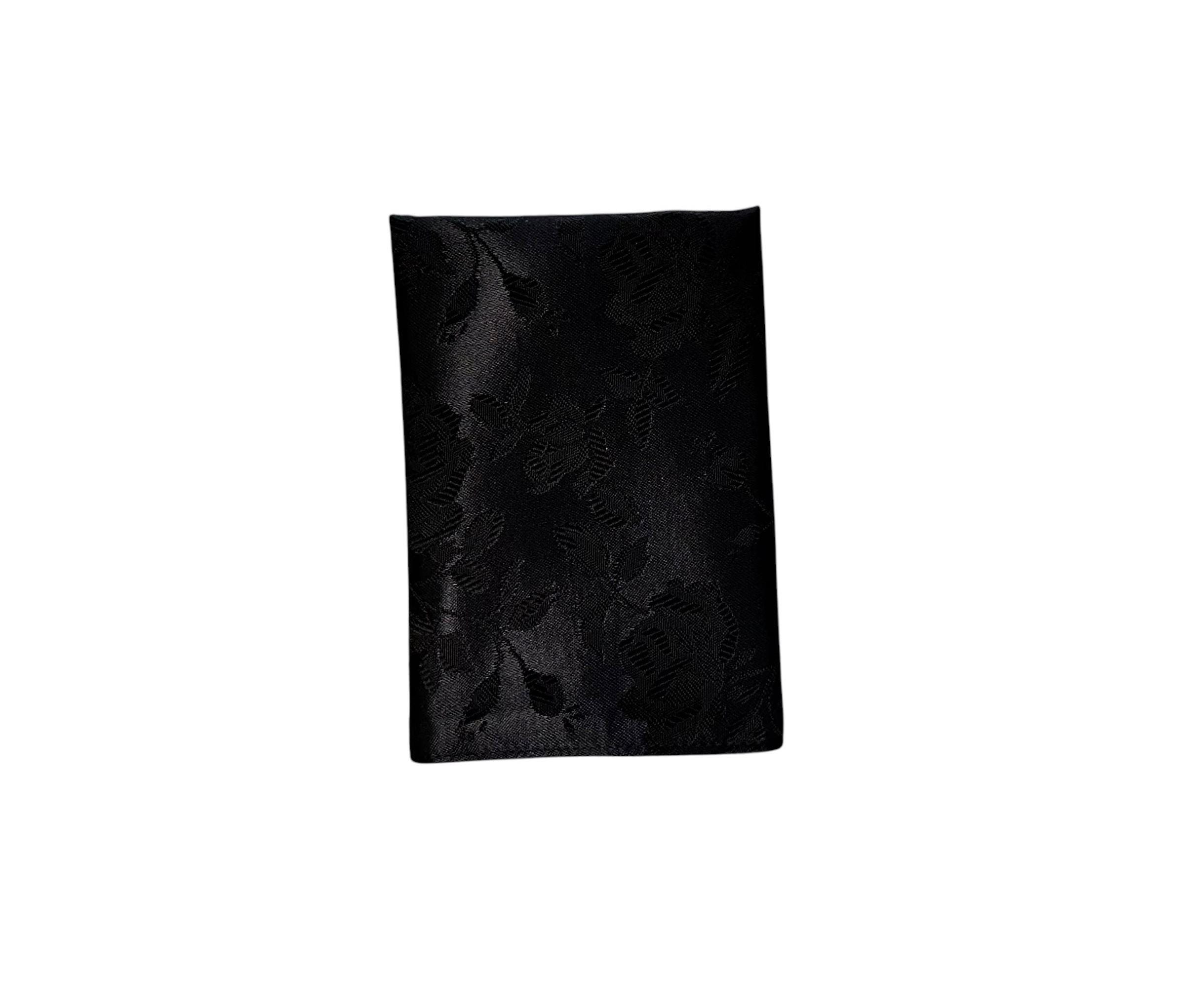 Self-tie Adjustable Bow Tie and Pocket Square Set - Black on Black Embossed Rose Satin Brocade - Adult Mens Sizing - Crafted in the USA by Holiday Bow Ties, LLC - The "Lee" Bow Tie and Pocket Square Set