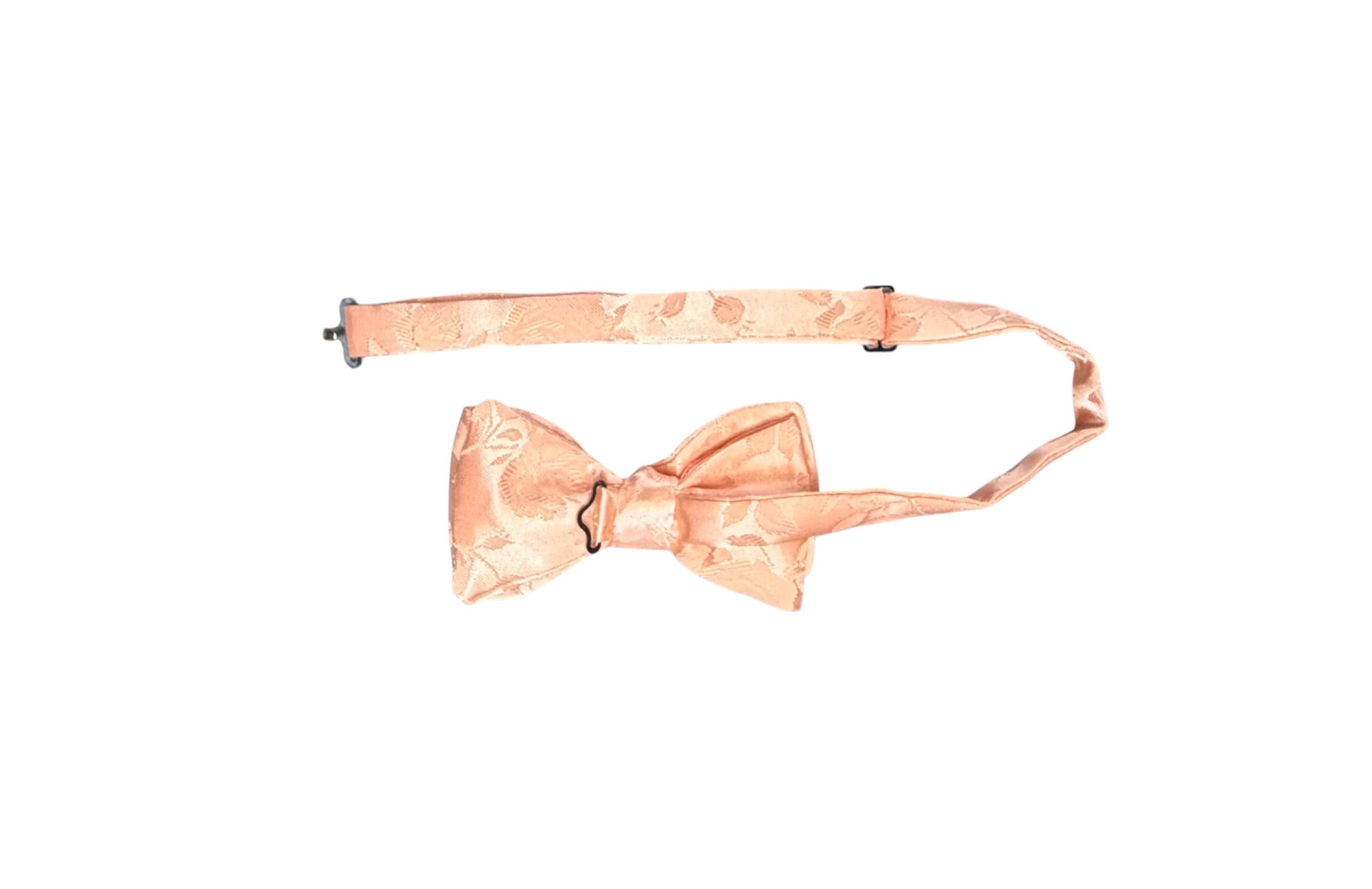 Pretied Adjustable Bow Tie - Peach on Peach Rose Satin Brocade - Adult Mens Sizing - Handcrafted in the USA by Holiday Bow Ties, LLC - The "Lee" Bow Tie