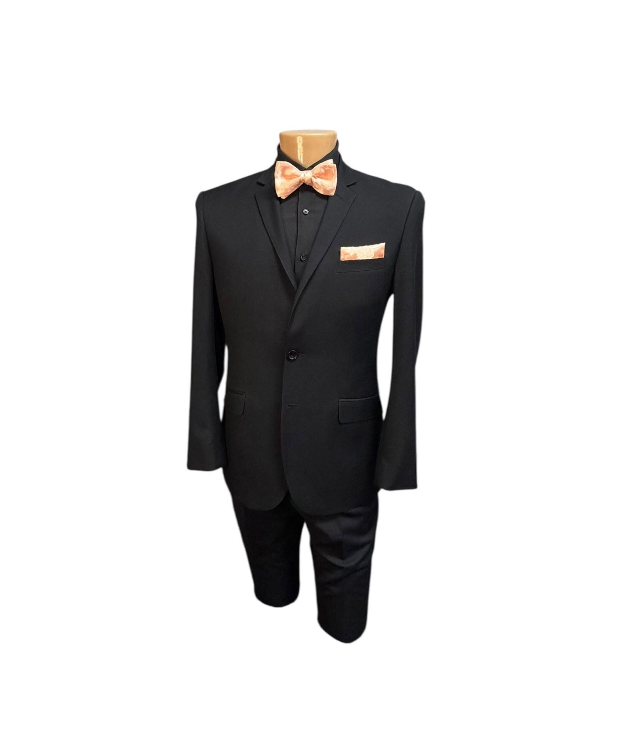 Sizes Available: This pretied bow tie is available in Adult-Men 14 and up (2.5” height, 4.75” width and the adjustable strap fits 13” to 24”). Pocket Square is a 10 inch by 10 inch square.