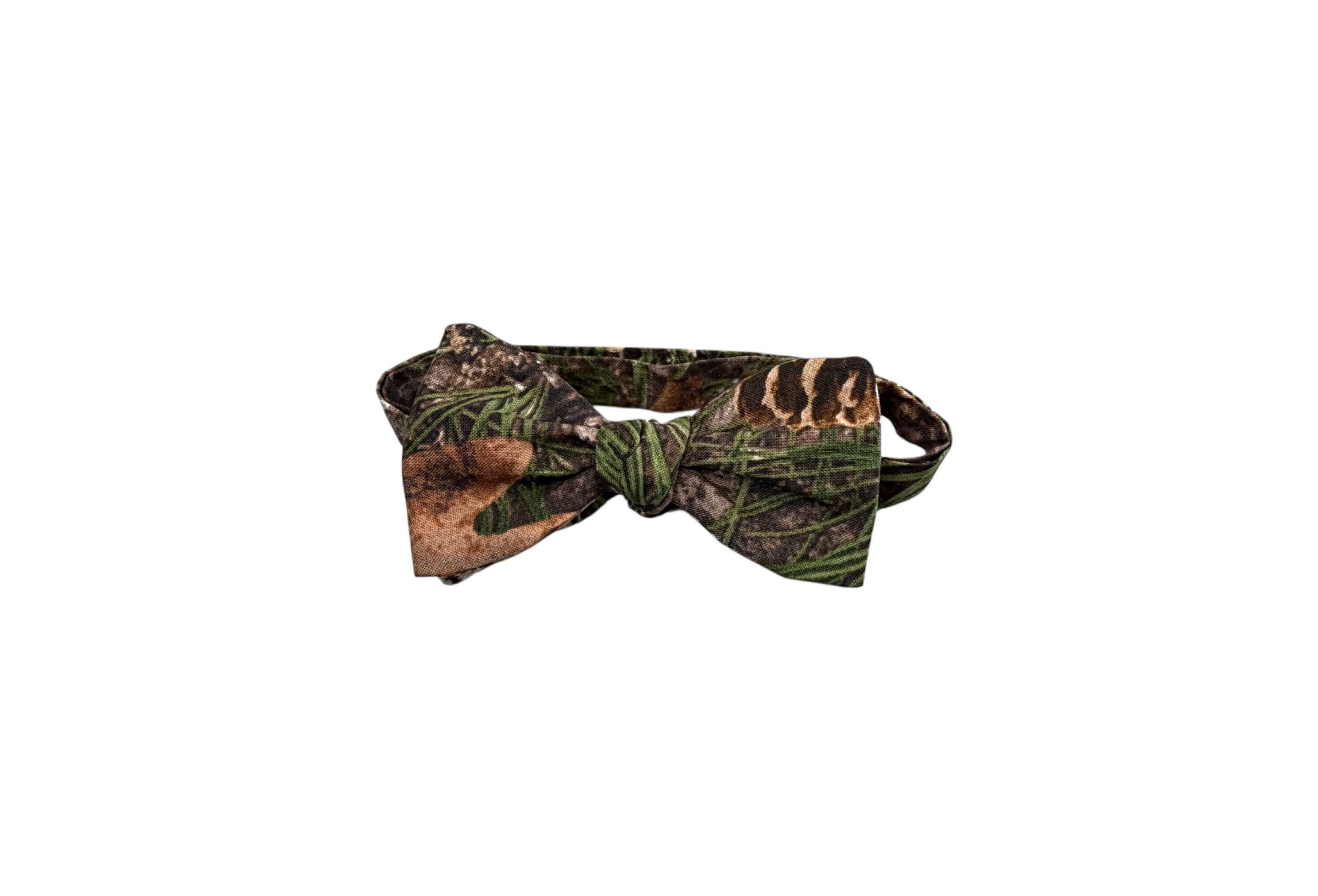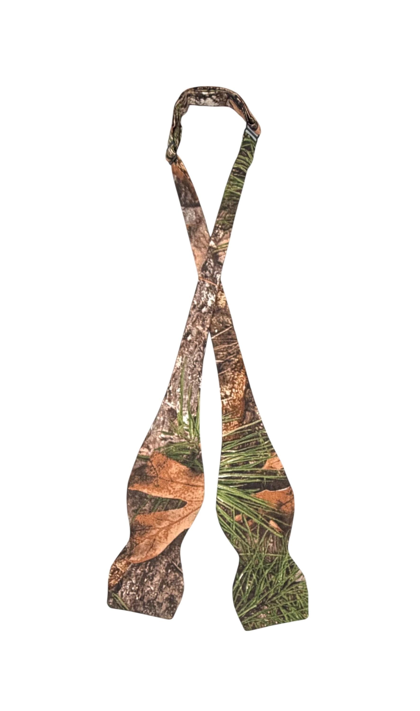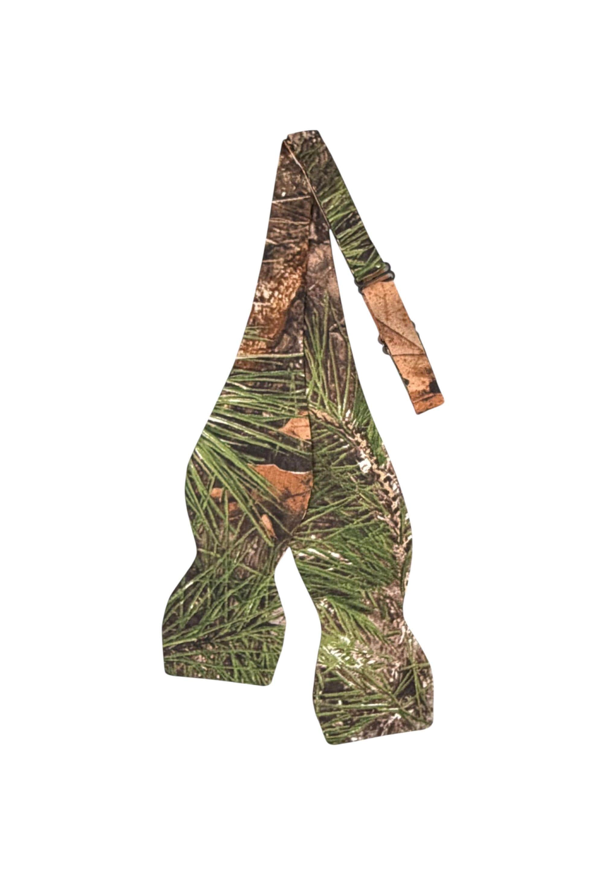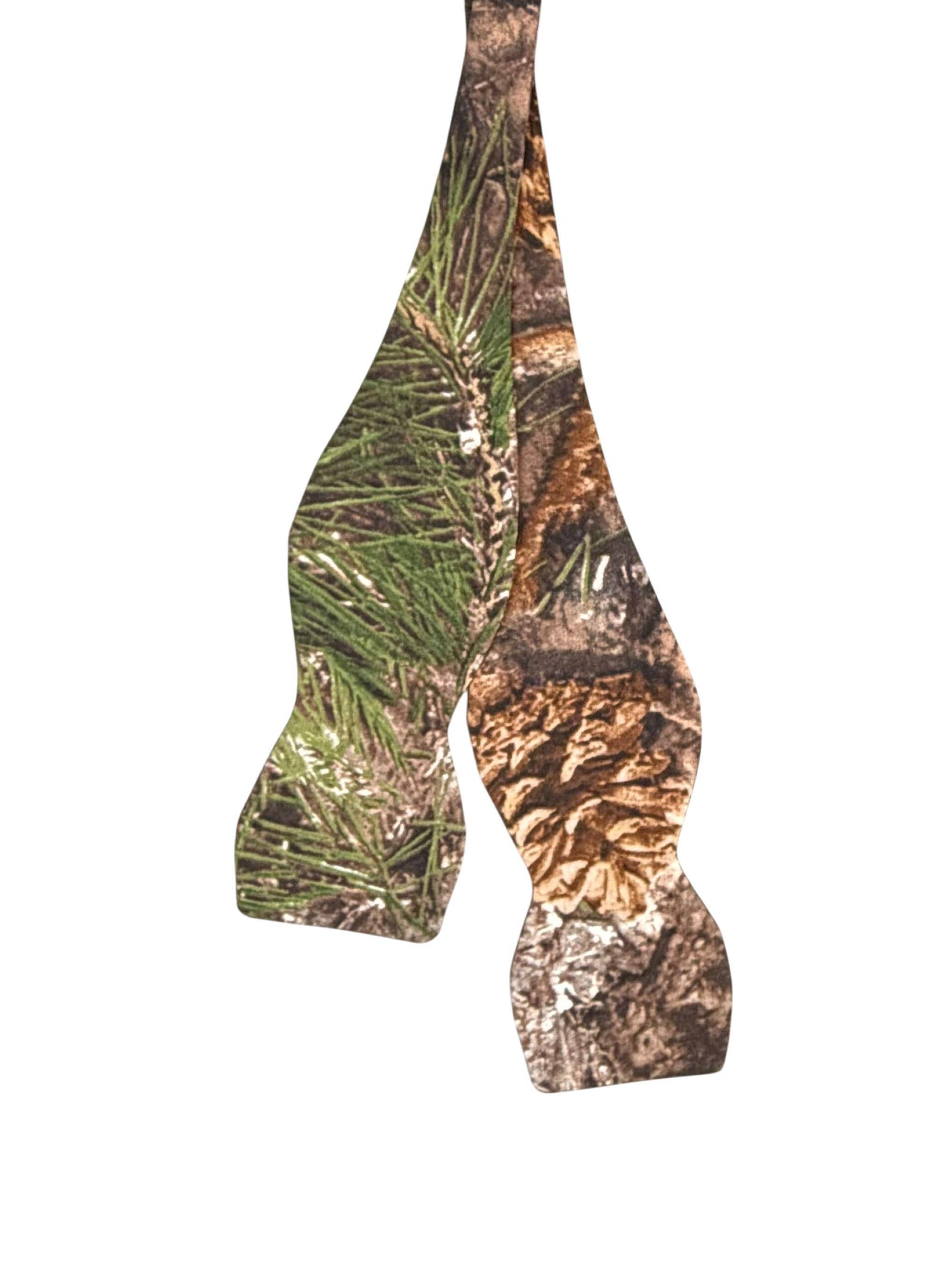 Self-tied Bow Tie - Brown Timber and Pine Camouflage Patterned Neck Wear - Adult Men's Sizing - Handcrafted in the USA - The "Hunter" Bow Tie