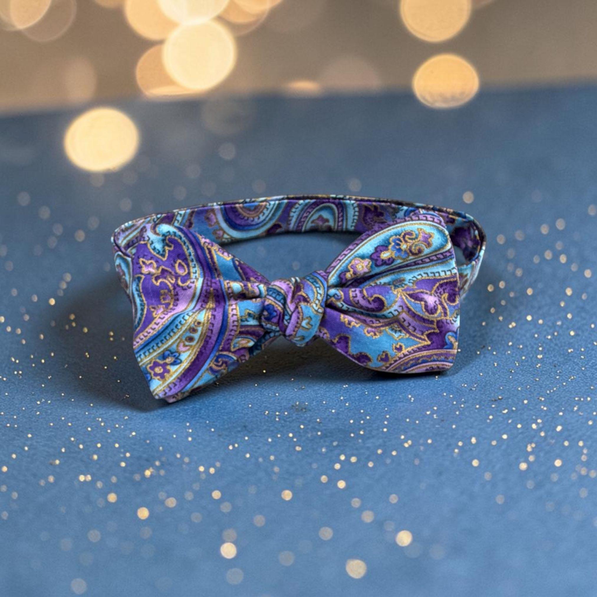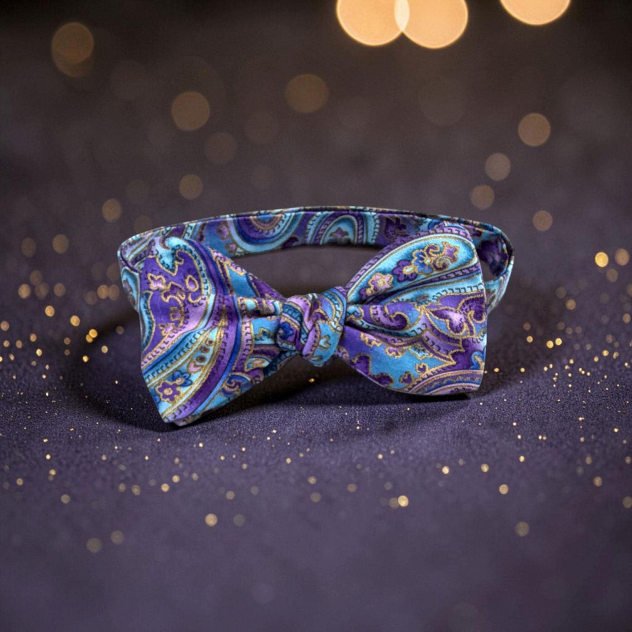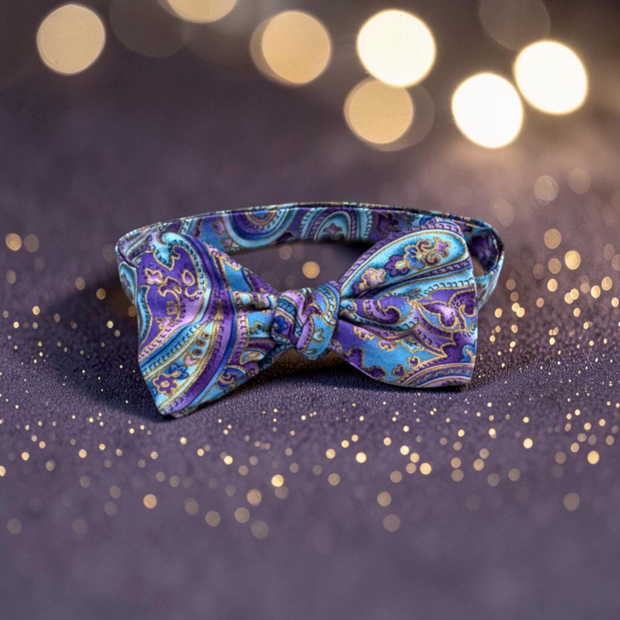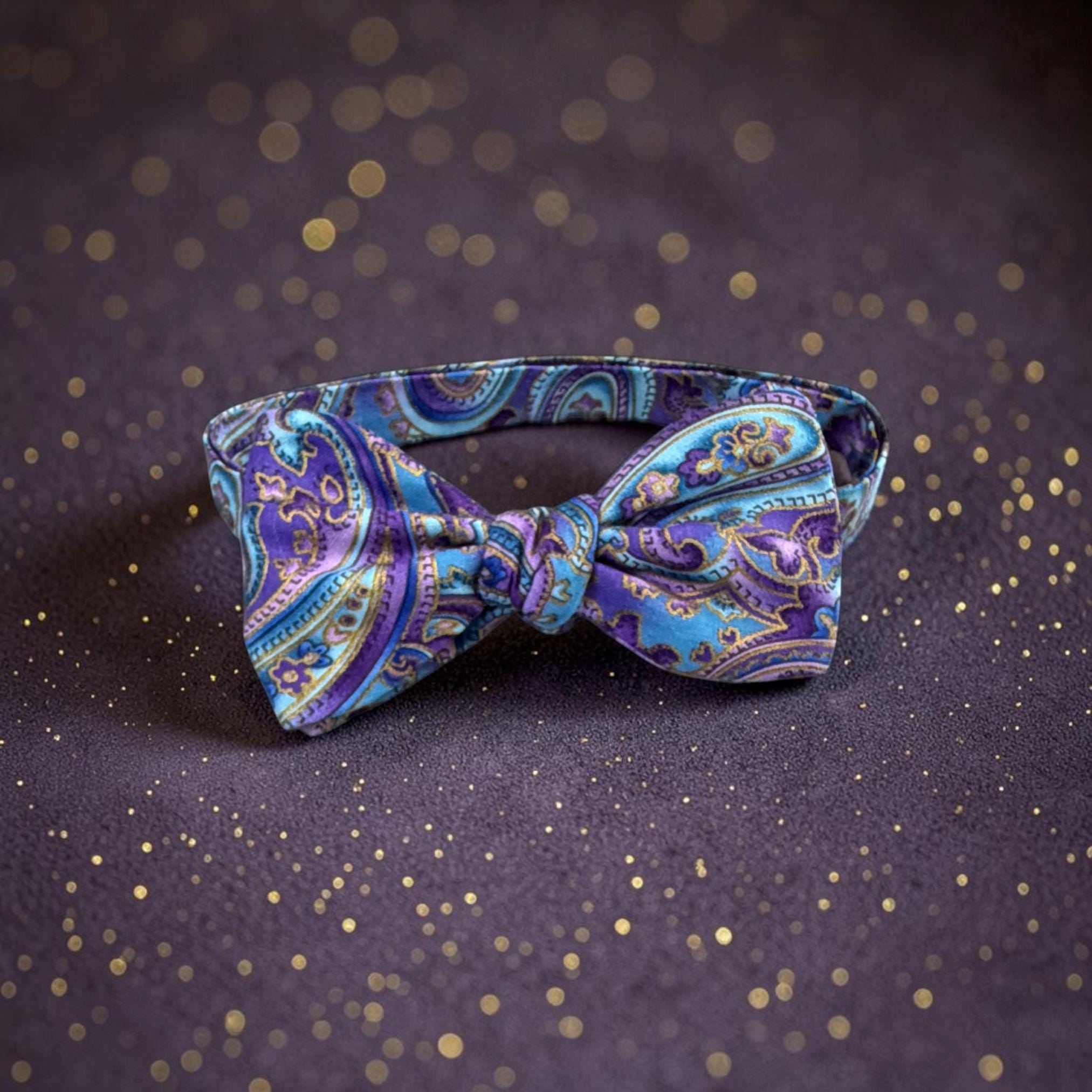 Self-Tie or Pretied Bow Tie – Emperors Purple Paisley Design Cotton Bow Tie - Prom Night - Wedding - Adult Men's Sizing - Handcrafted in the USA by Holiday Bow Ties, llc - The "Burton" Bow Tie