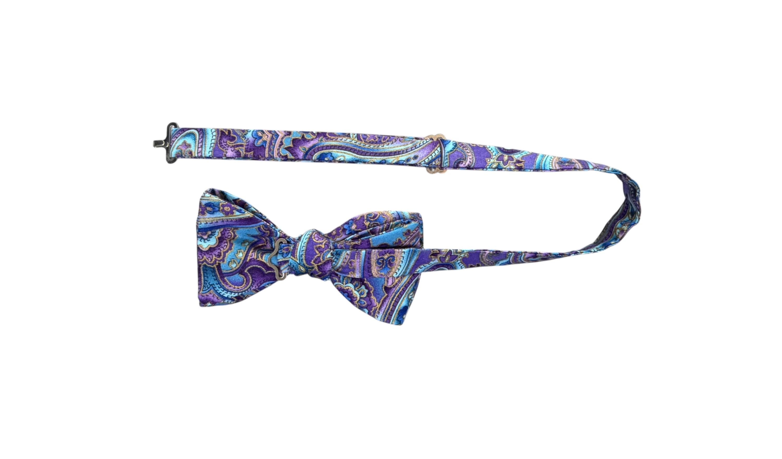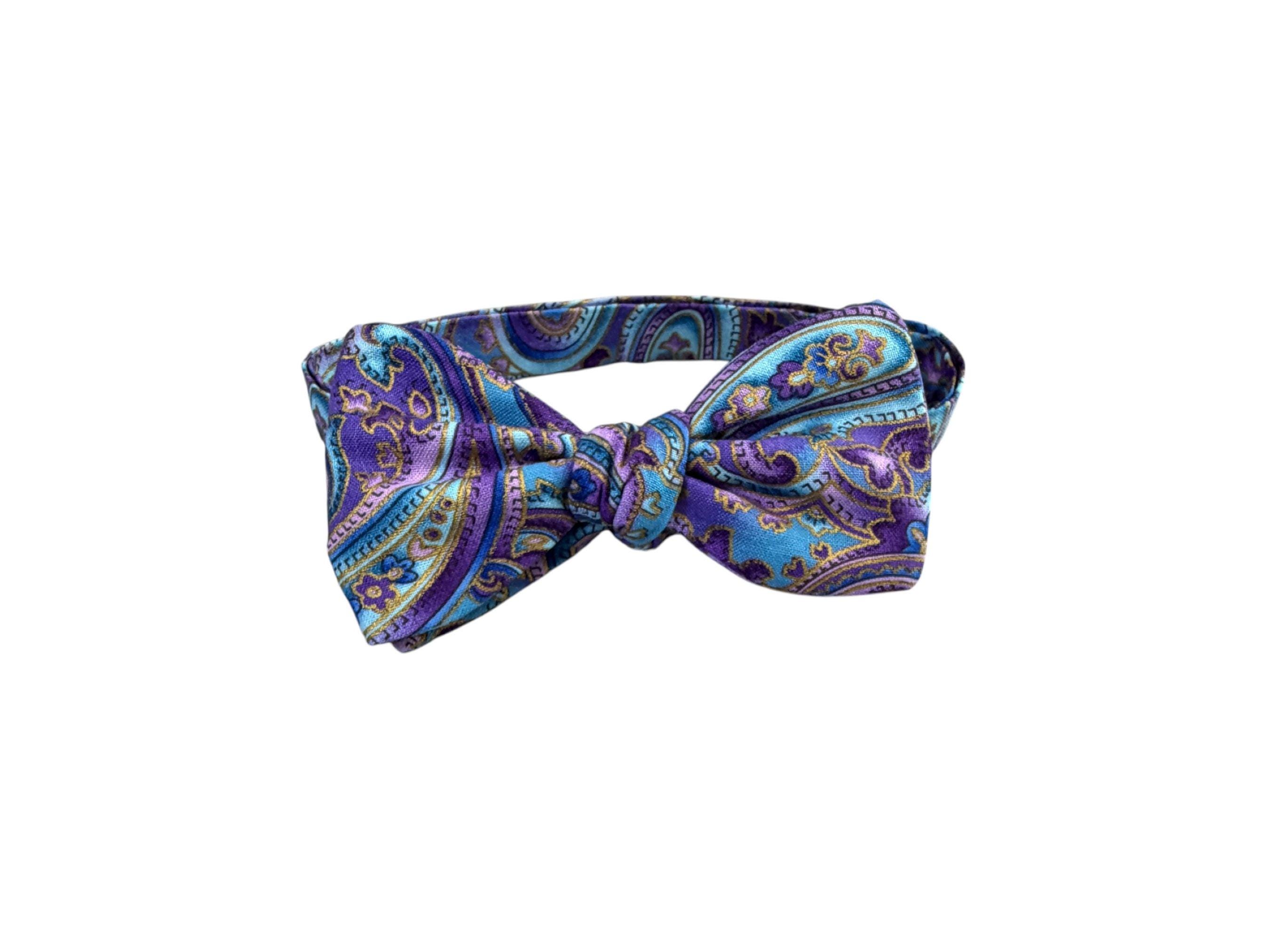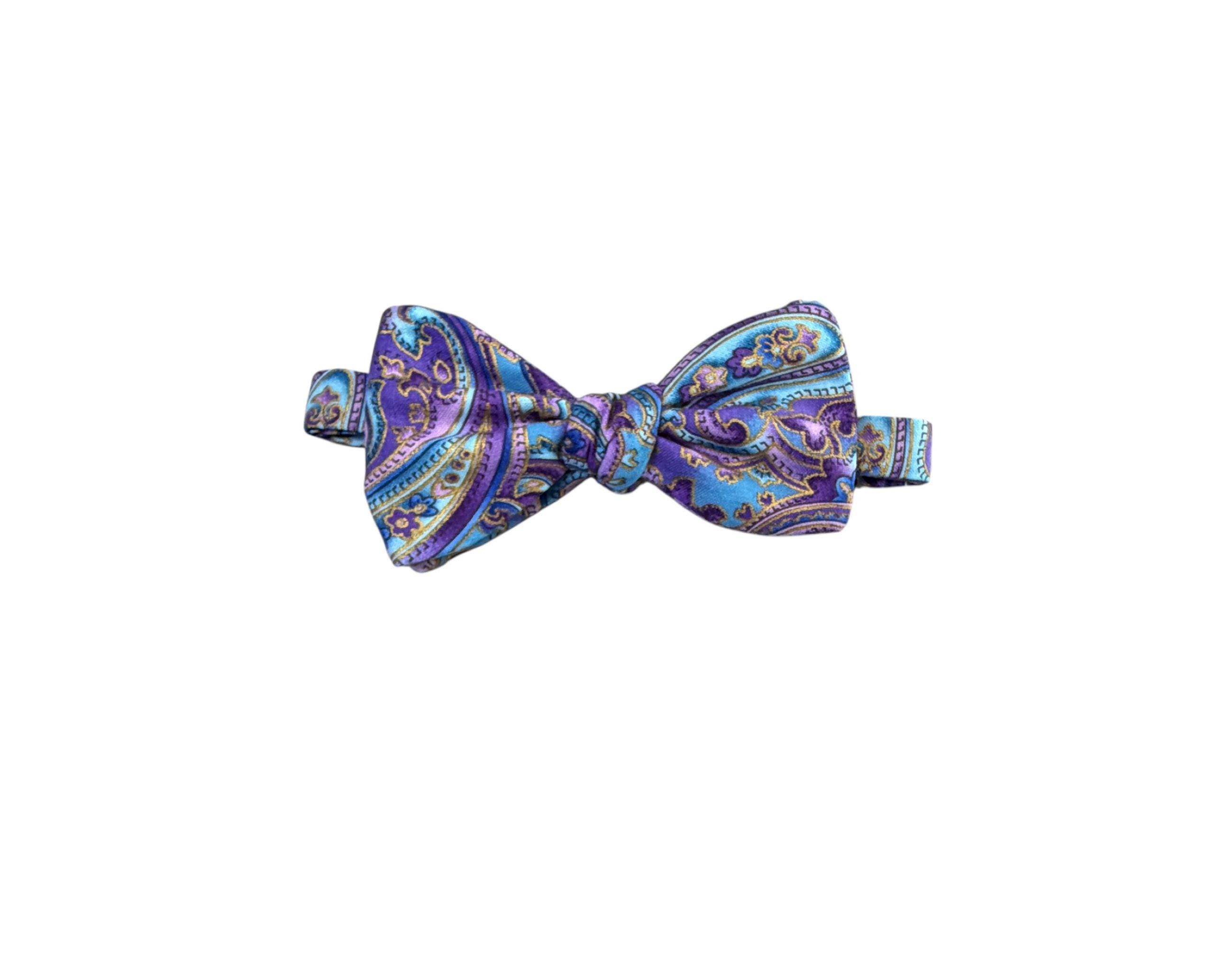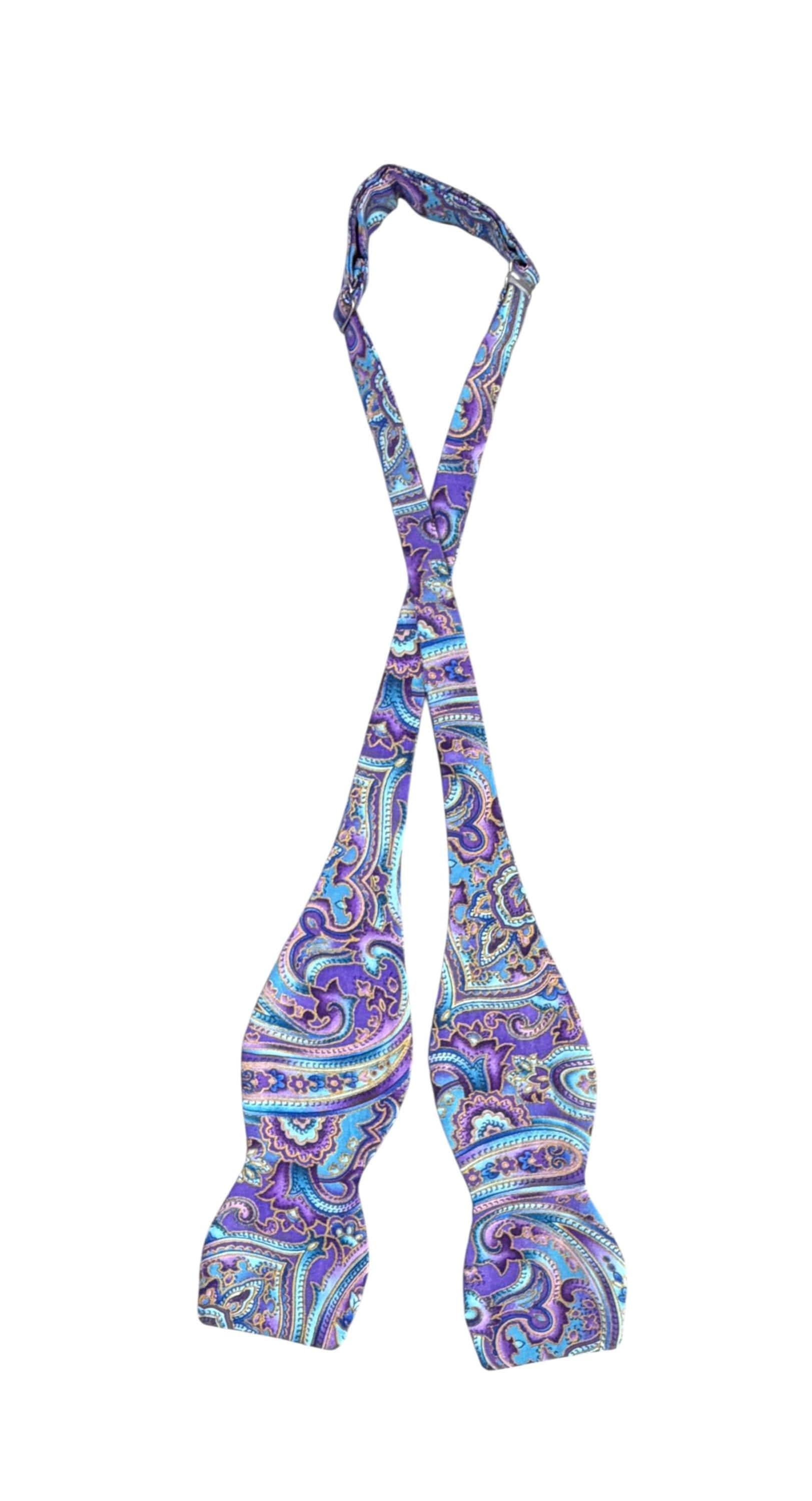 Self-Tie or Pretied Bow Tie – Emperors Purple Paisley Design Cotton Bow Tie - Prom Night - Wedding - Adult Men's Sizing - Handcrafted in the USA by Holiday Bow Ties, llc - The "Burton" Bow Tie
