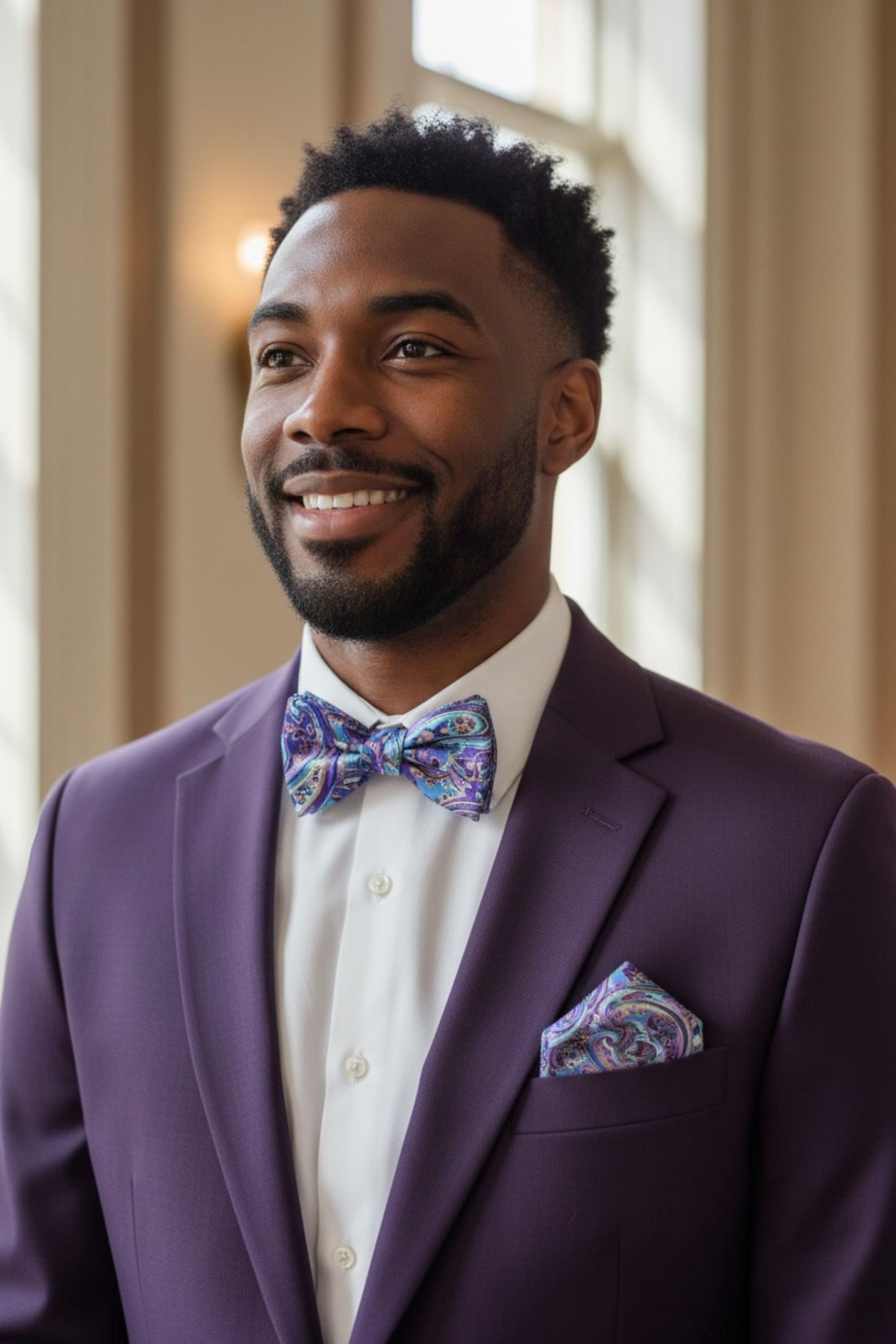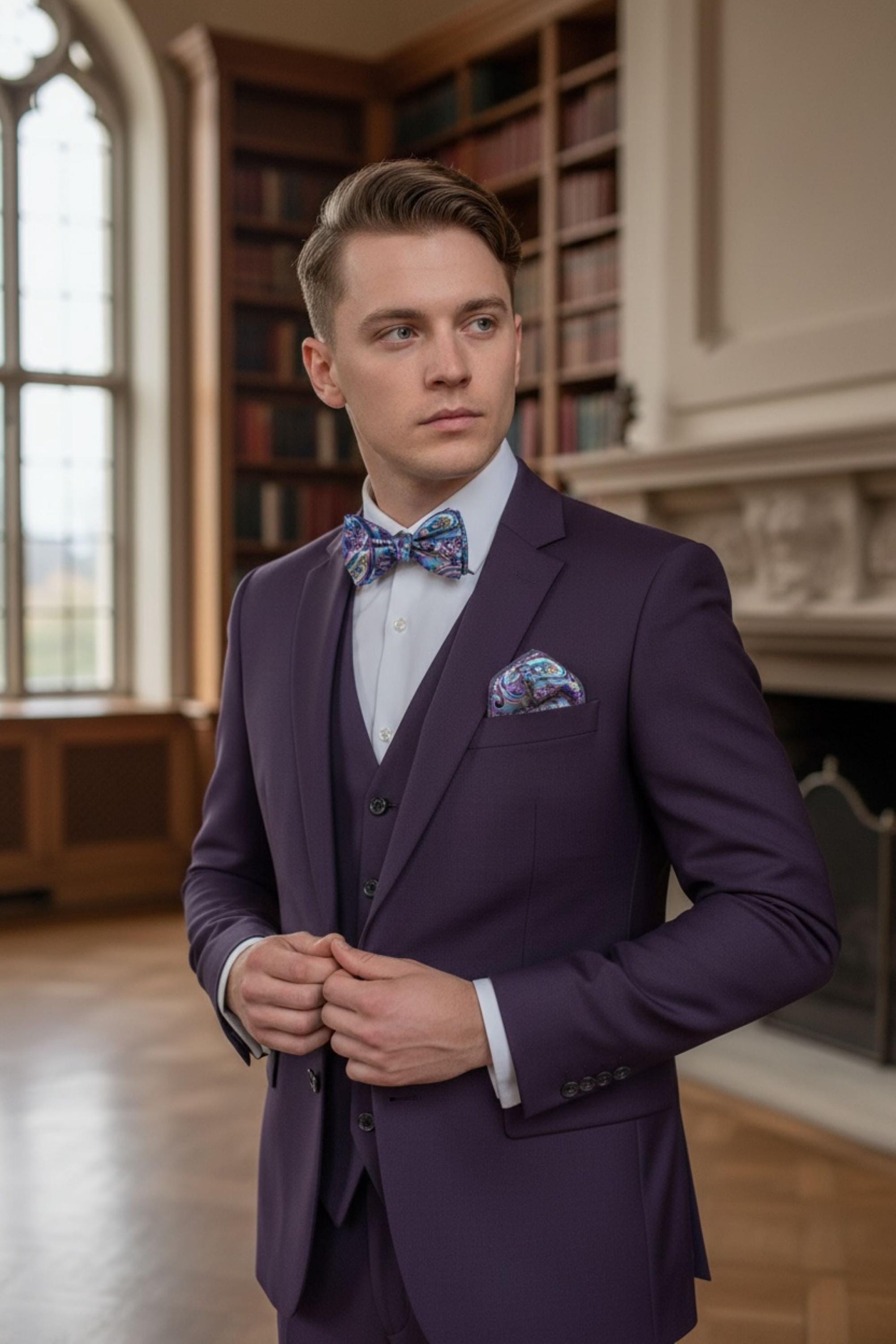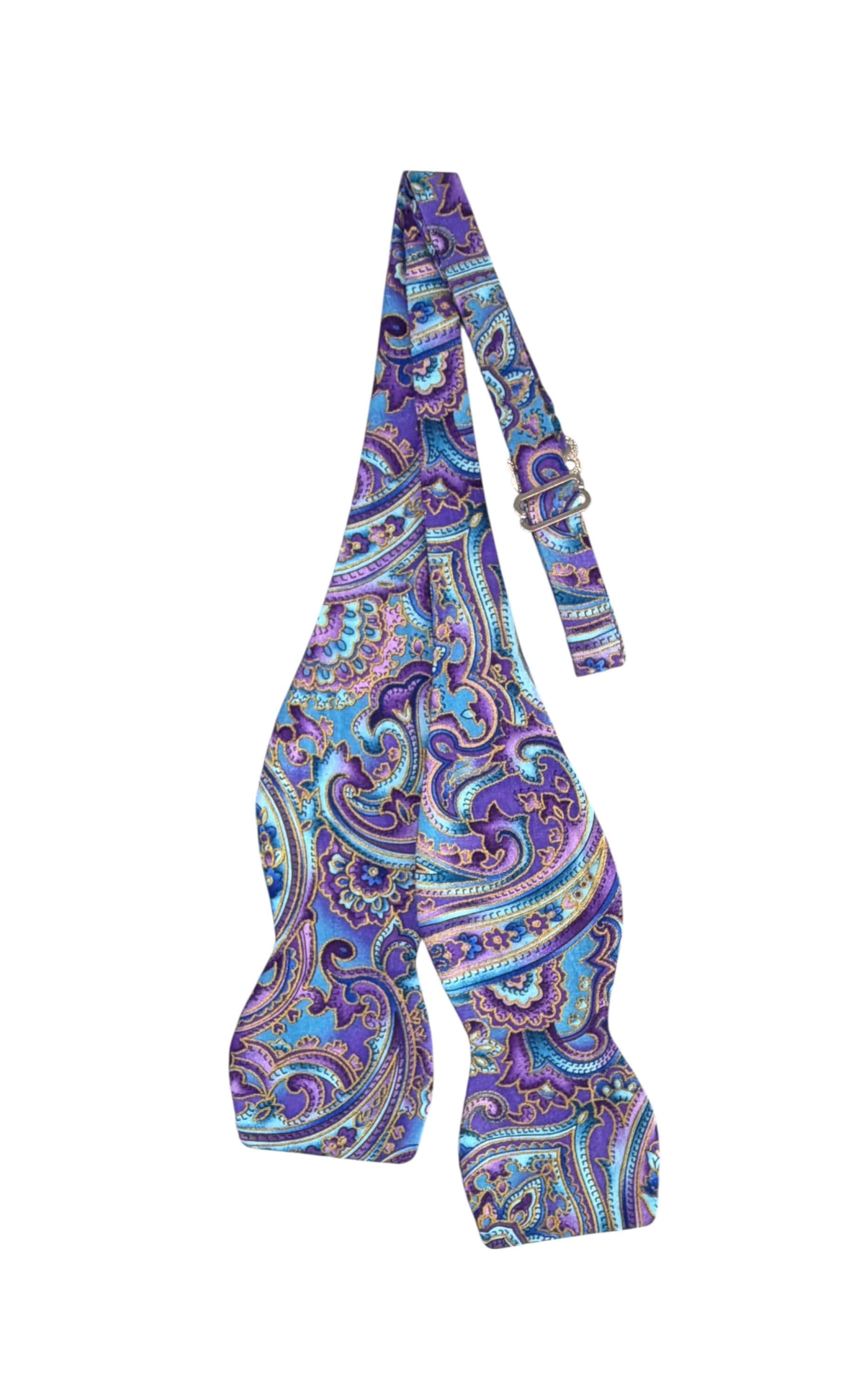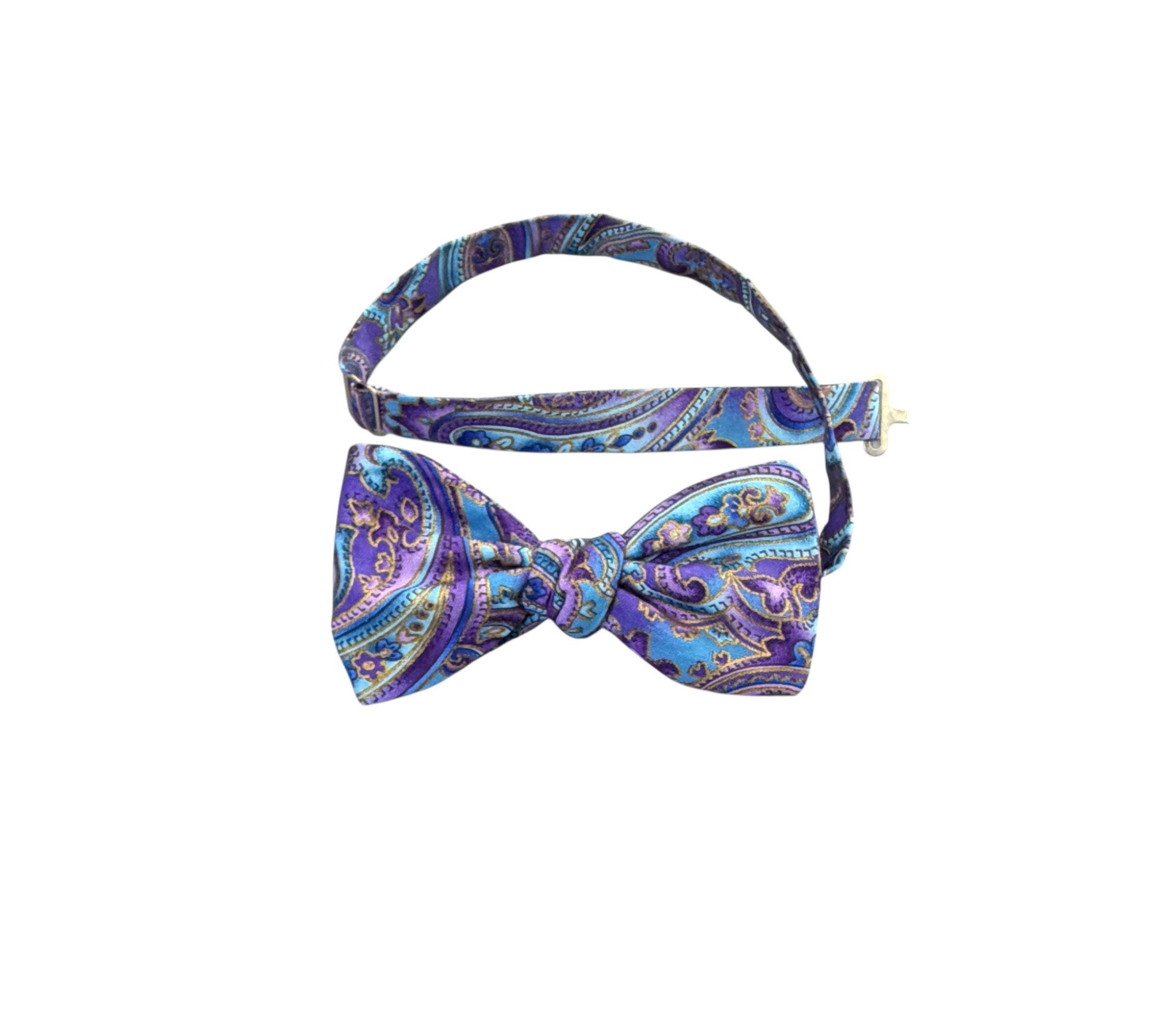 Self-Tie or Pretied Bow Tie – Emperors Purple Paisley Design Cotton Bow Tie - Prom Night - Wedding - Adult Men's Sizing - Handcrafted in the USA by Holiday Bow Ties, llc - The "Burton" Bow Tie