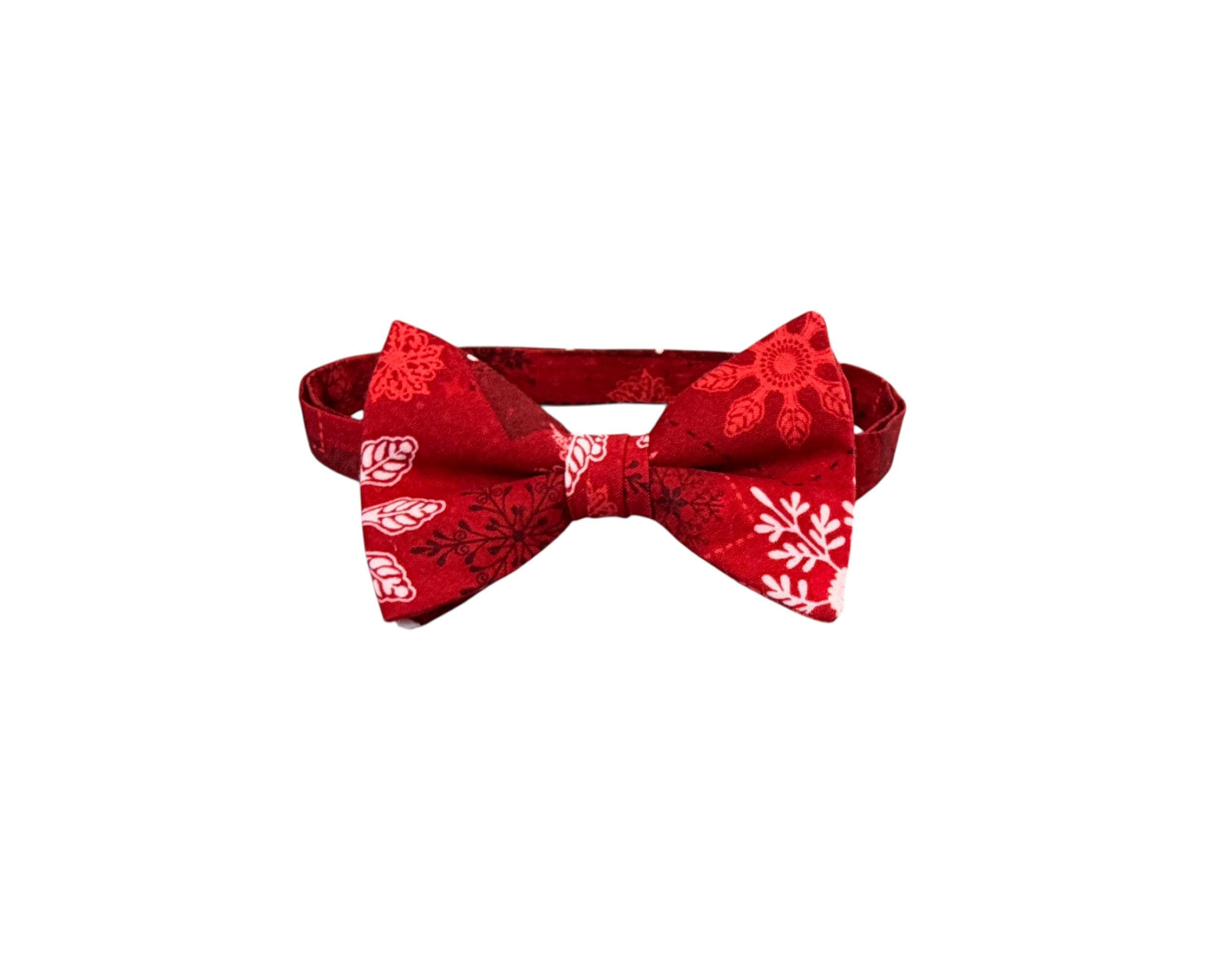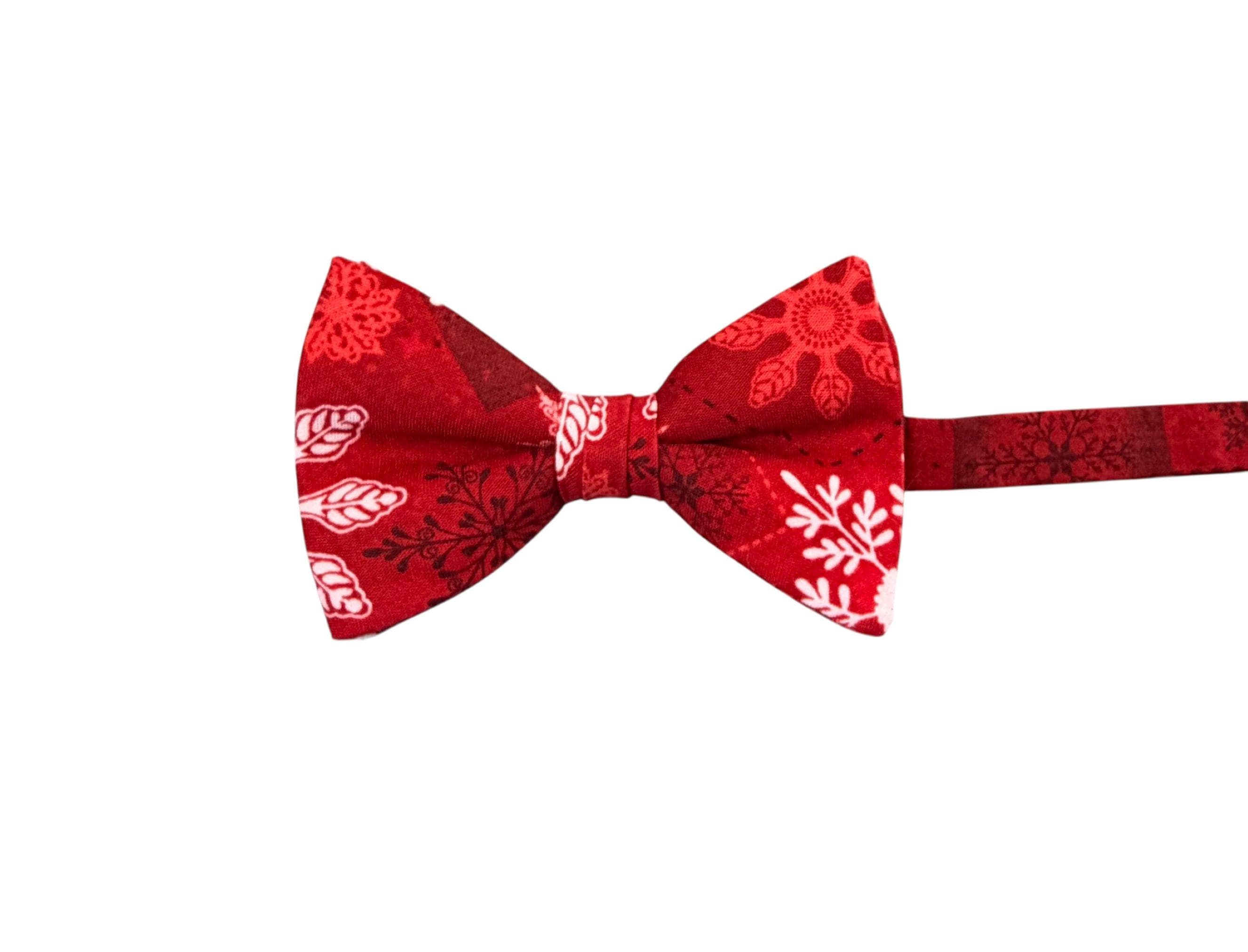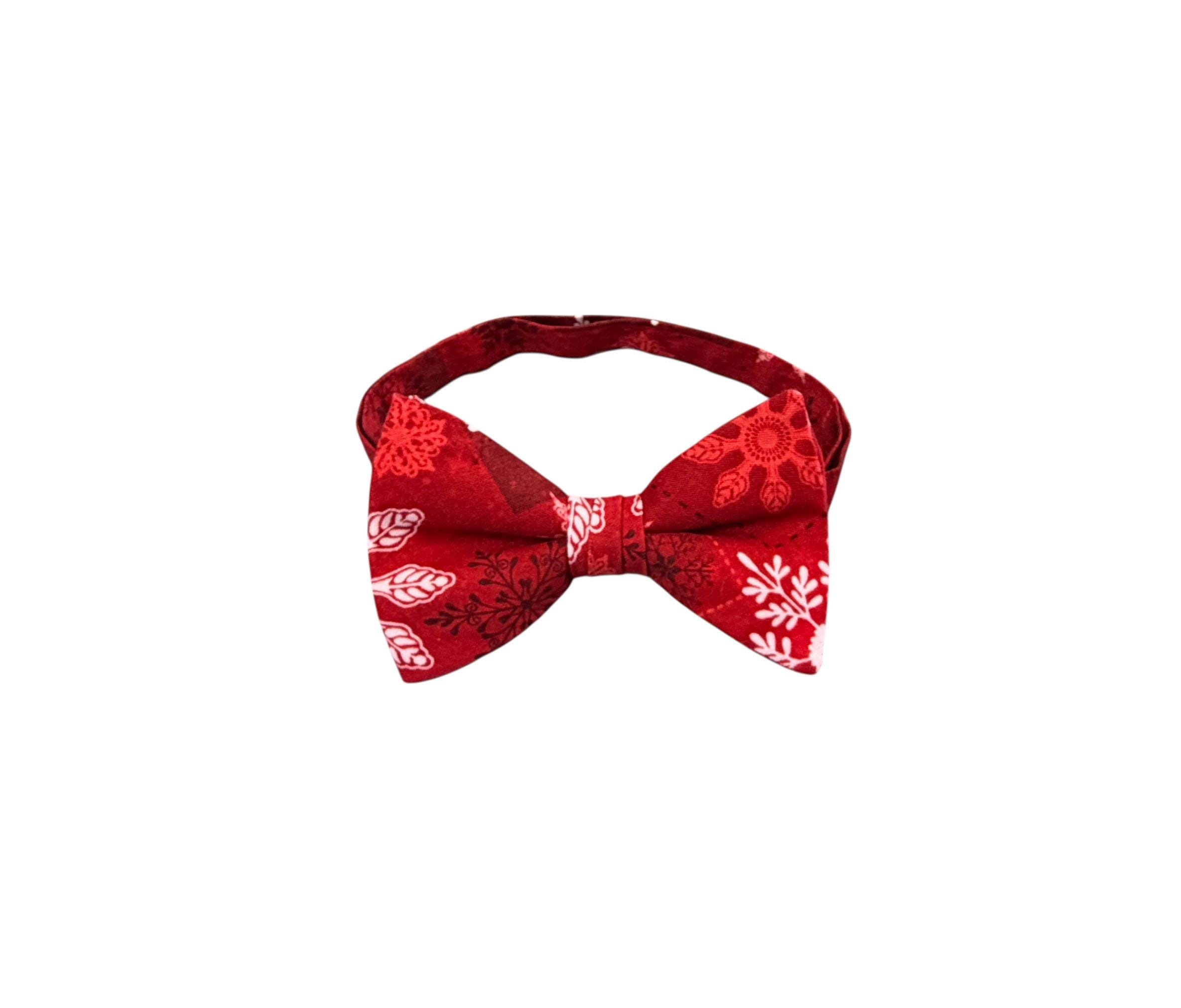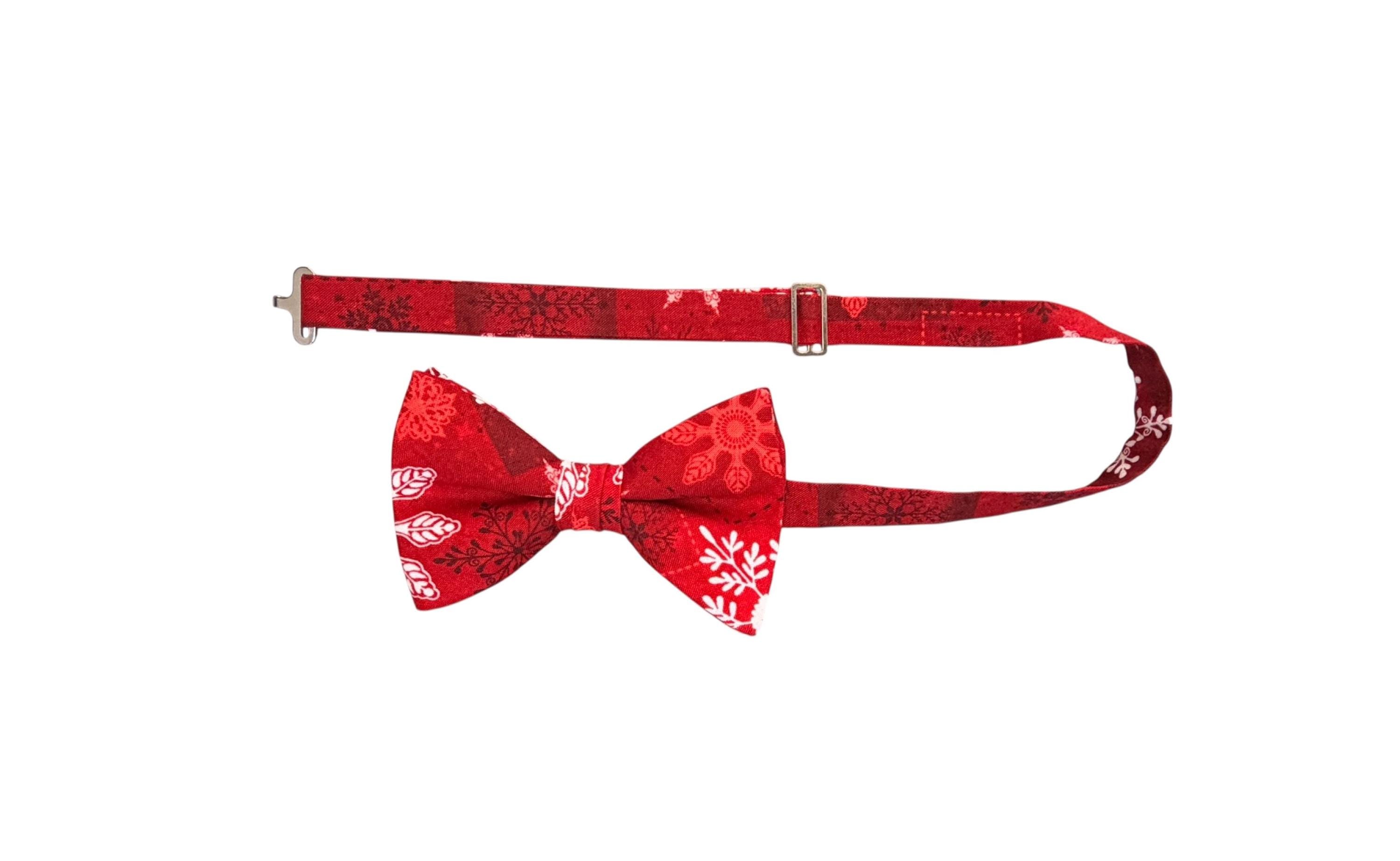 Handmade Pre-tied Bow Tie - Red and White Snowflake Patchwork Holiday Design Cotton Bow Tie - Adult Mens Sizing - 208.860.0879 - Crafted in the USA by Holiday Bow Ties, LLC- The "Winter" Bow Tie