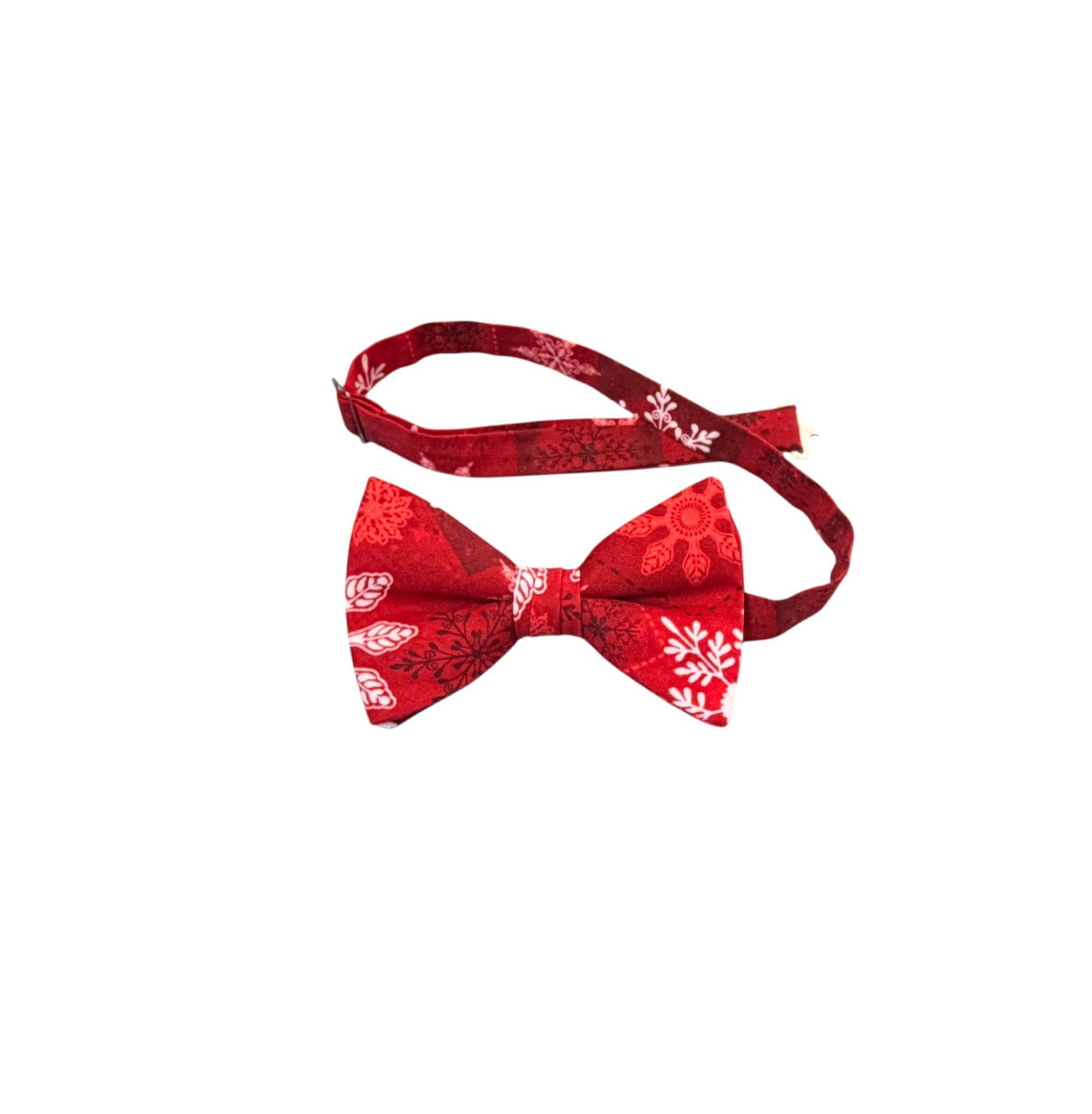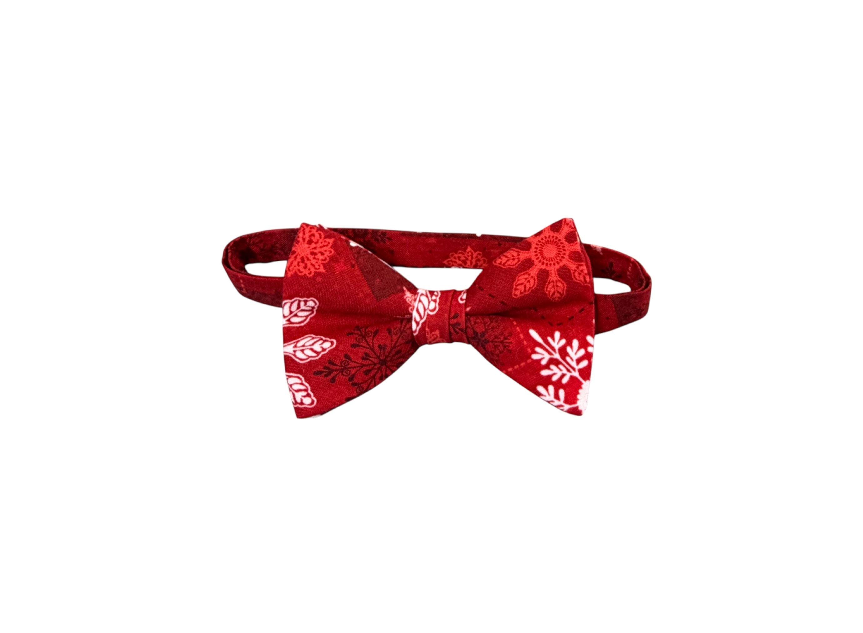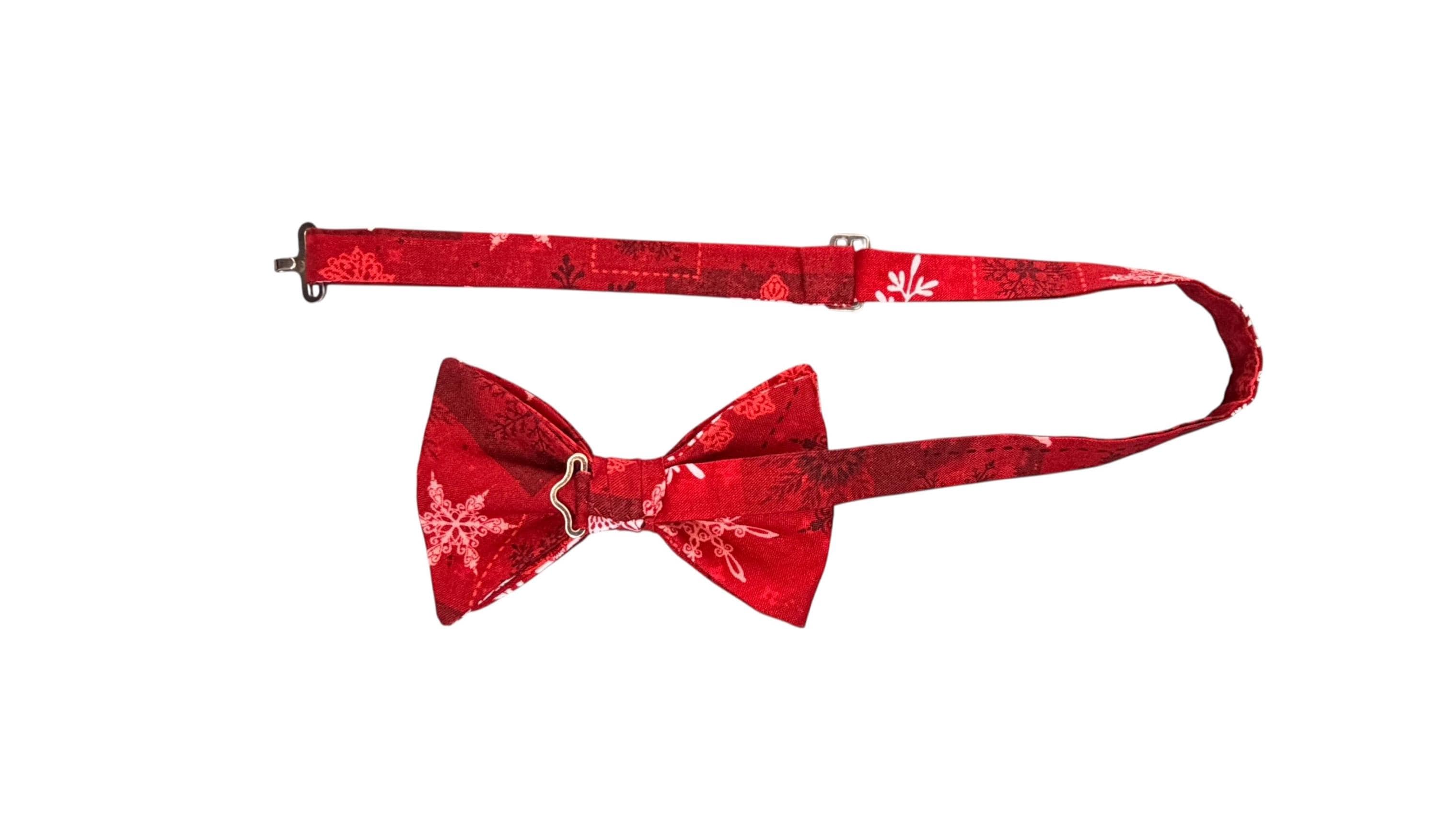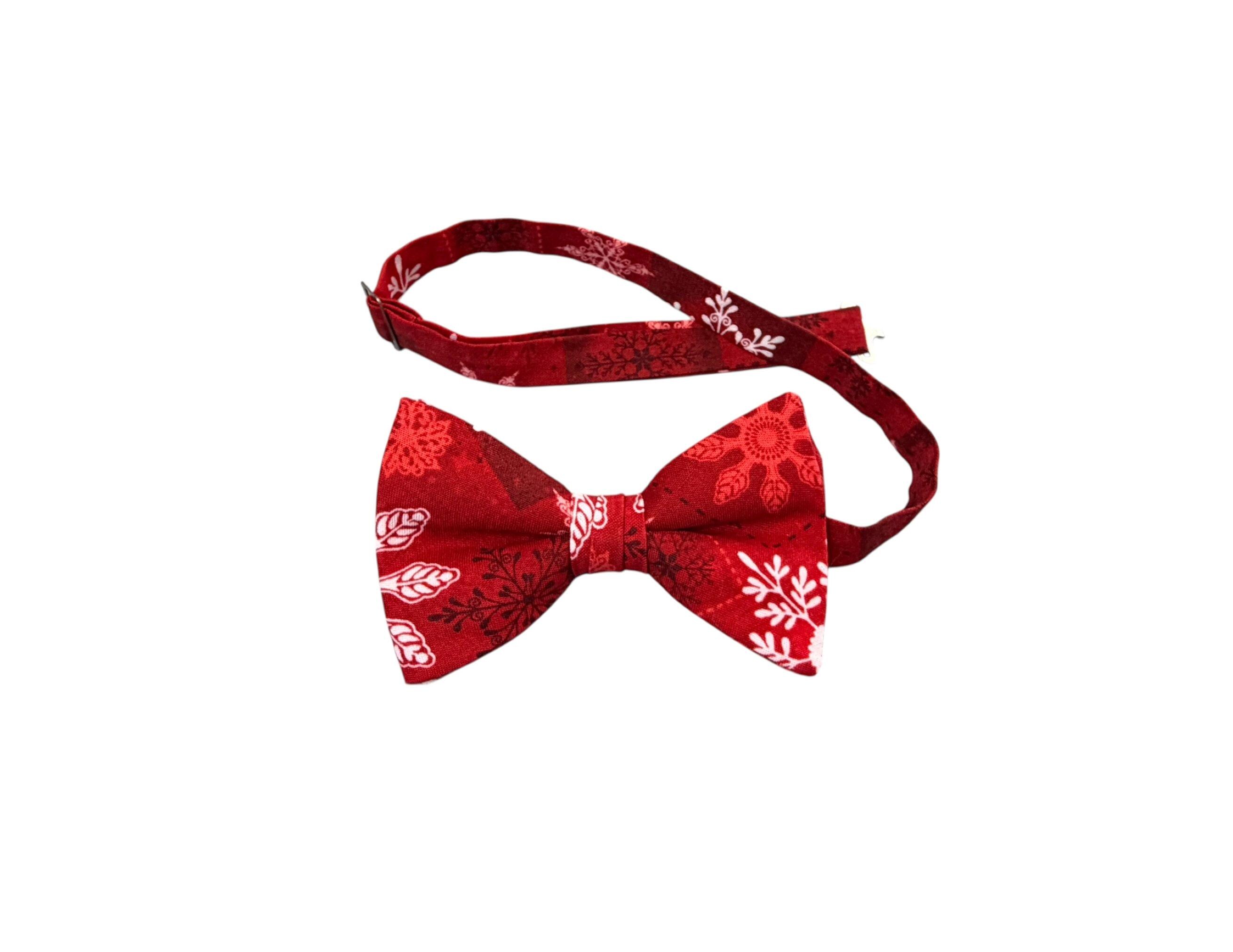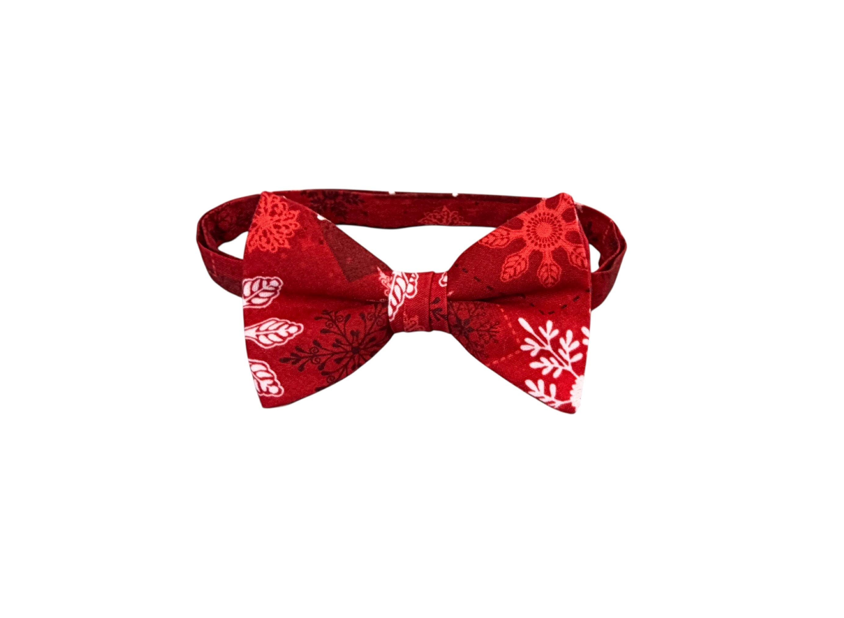 Handmade Pre-tied Bow Tie - Red and White Snowflake Patchwork Holiday Design Cotton Bow Tie - Adult Mens Sizing - 208.860.0879 - Crafted in the USA by Holiday Bow Ties, LLC- The "Winter" Bow Tie