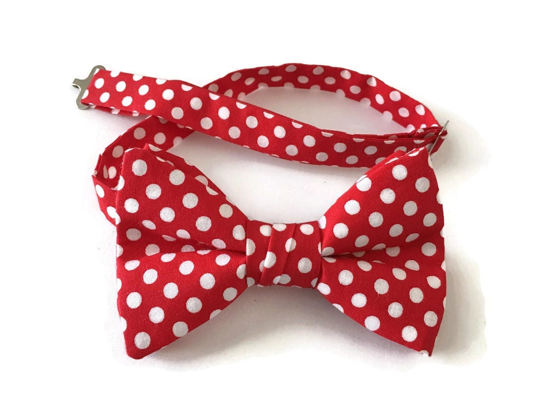 Handmade Pre-Tied Bow Tie - Red & White Polka Dot Premium Cotton Bow Tie - Adult Men's Sizing - Crafted in the USA by Holiday Bow Ties, llc - The "McFadden"