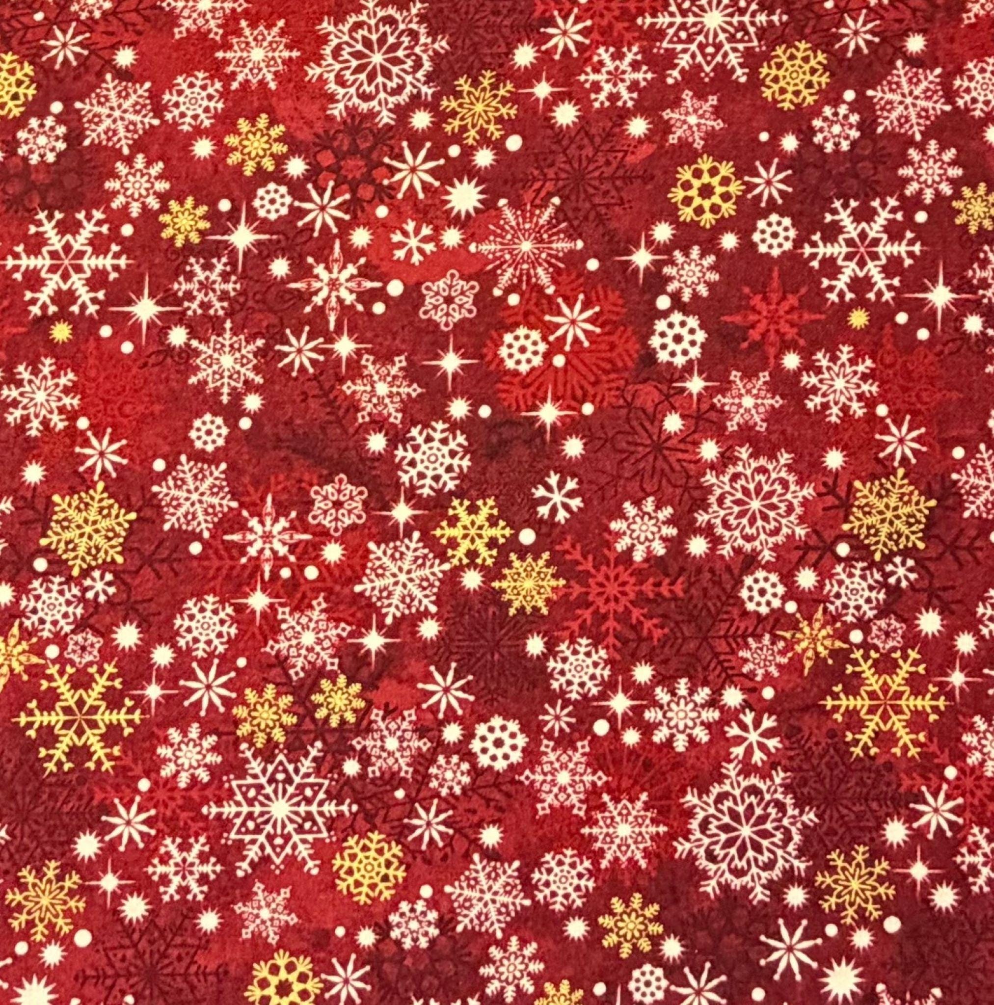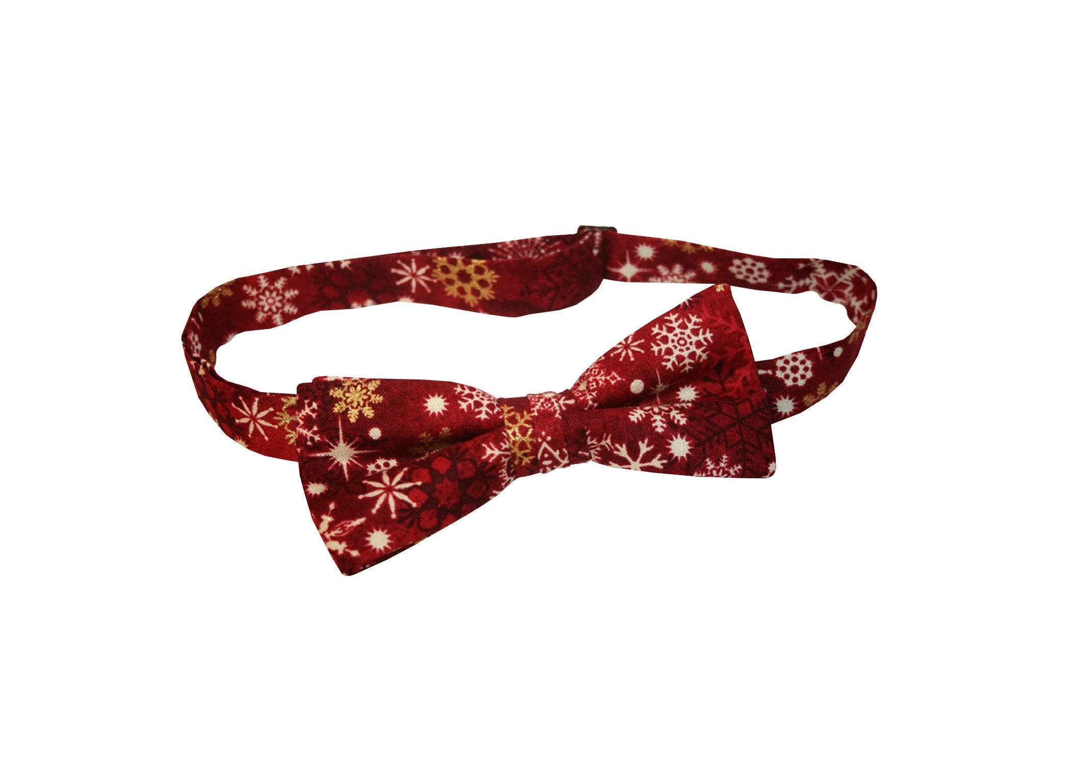 Handmade Pre-tied Bow Tie - Holiday Snowflake Apple Red and Vintage White with Gold Metallic Premium Cotton Bow Tie - Adult Mens and Boys Sizing - Crafted in the USA by Holiday Bow Ties, LLC - The "Clarence" Bow Tie