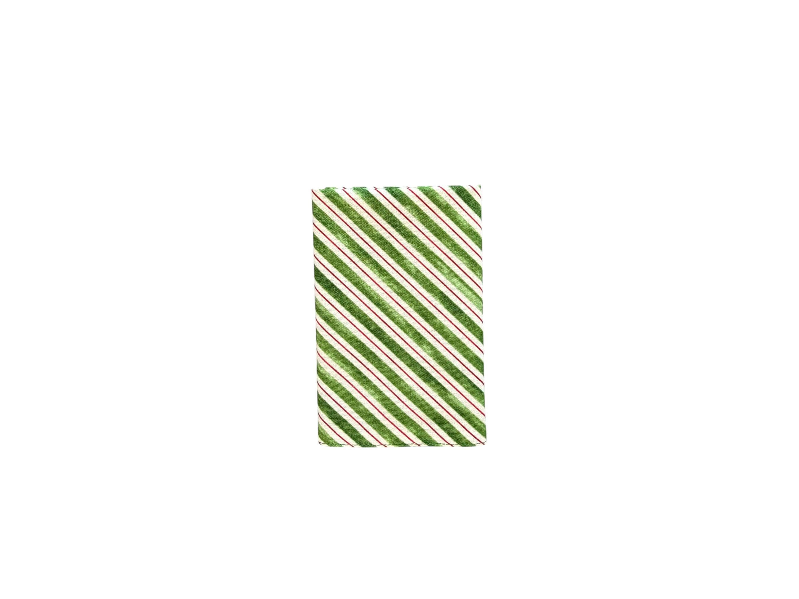 Handmade Pocket Square - Christmas Green and Red Candy Cane Stripe Handkerchief - Adult Mens Sizing - Crafted in the USA by Holiday Bow Ties, LLC - The "Clement" Pocket Square