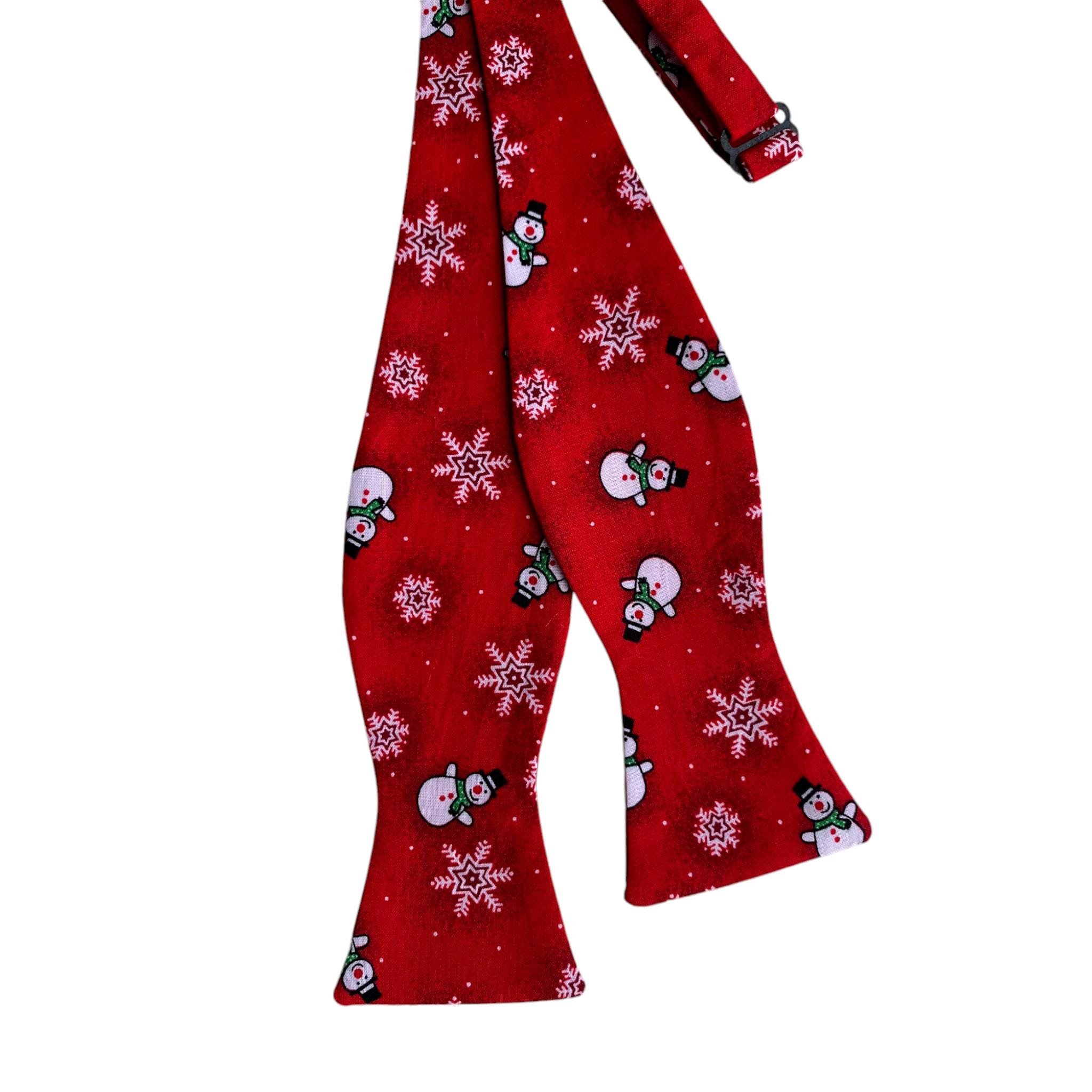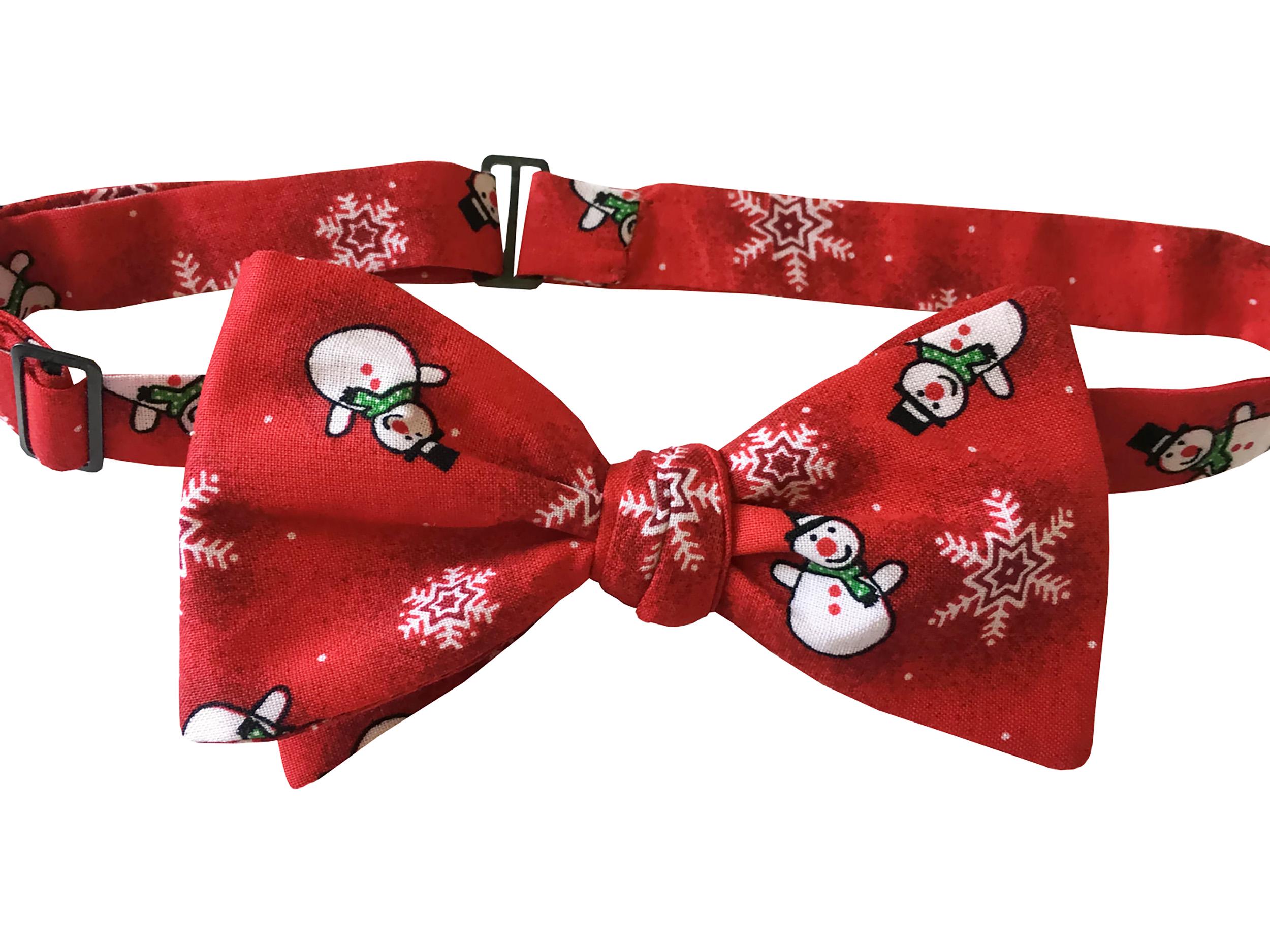 Self-tie Bow Tie - Snowman Holiday Design Premium Cotton Bow Tie - Adult Mens Sizing - Crafted in the USA - The "Frosty" Bow Tie
