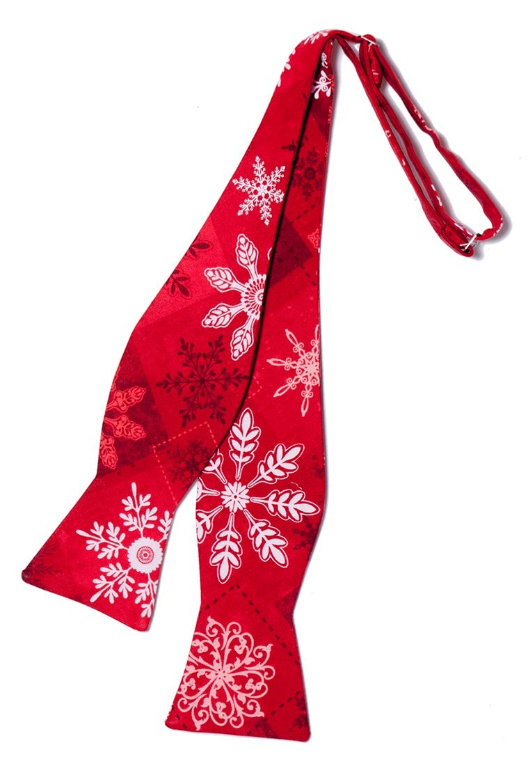 Holiday Self-Tie Bow Tie - Red and White Snowflakes Holiday Design - Premium Cotton - Adult Men's Sizing - Handcrafted in the USA - The "Winter" Bow Tie