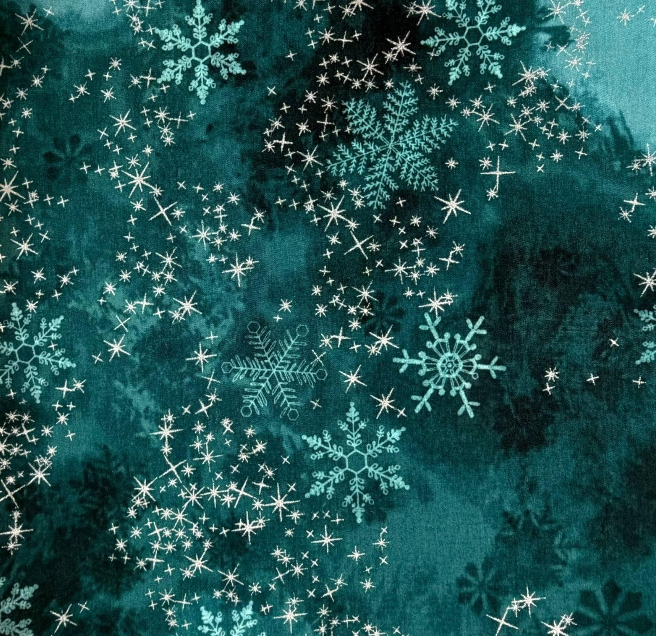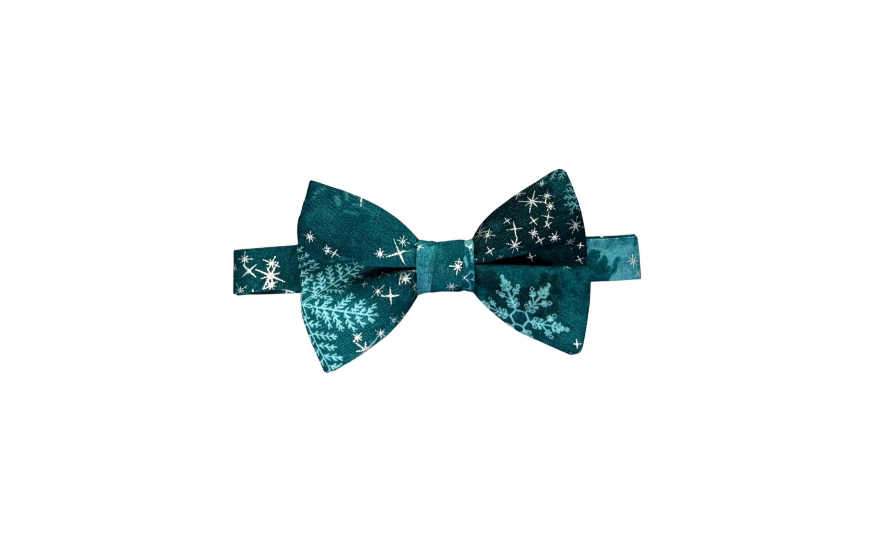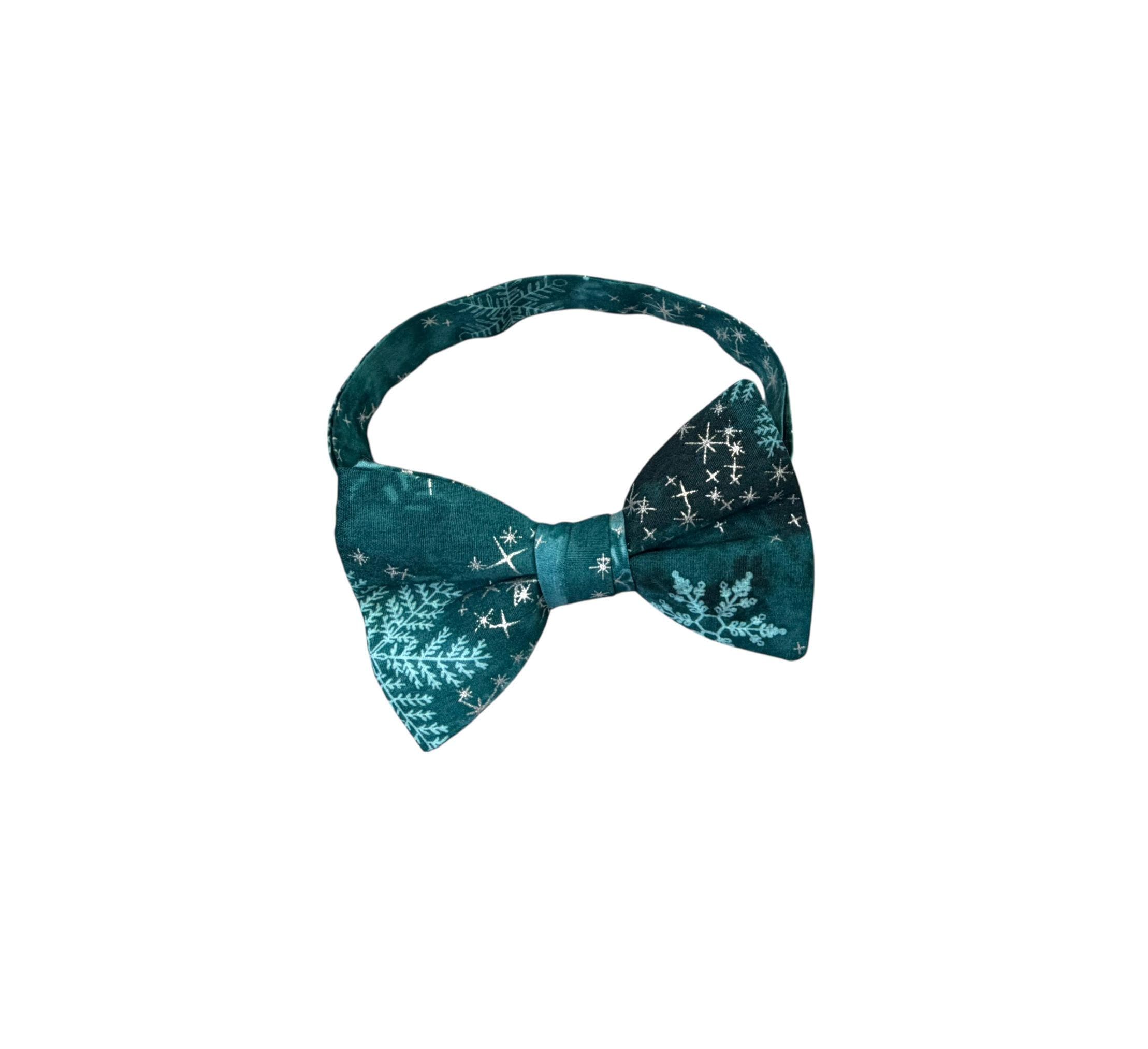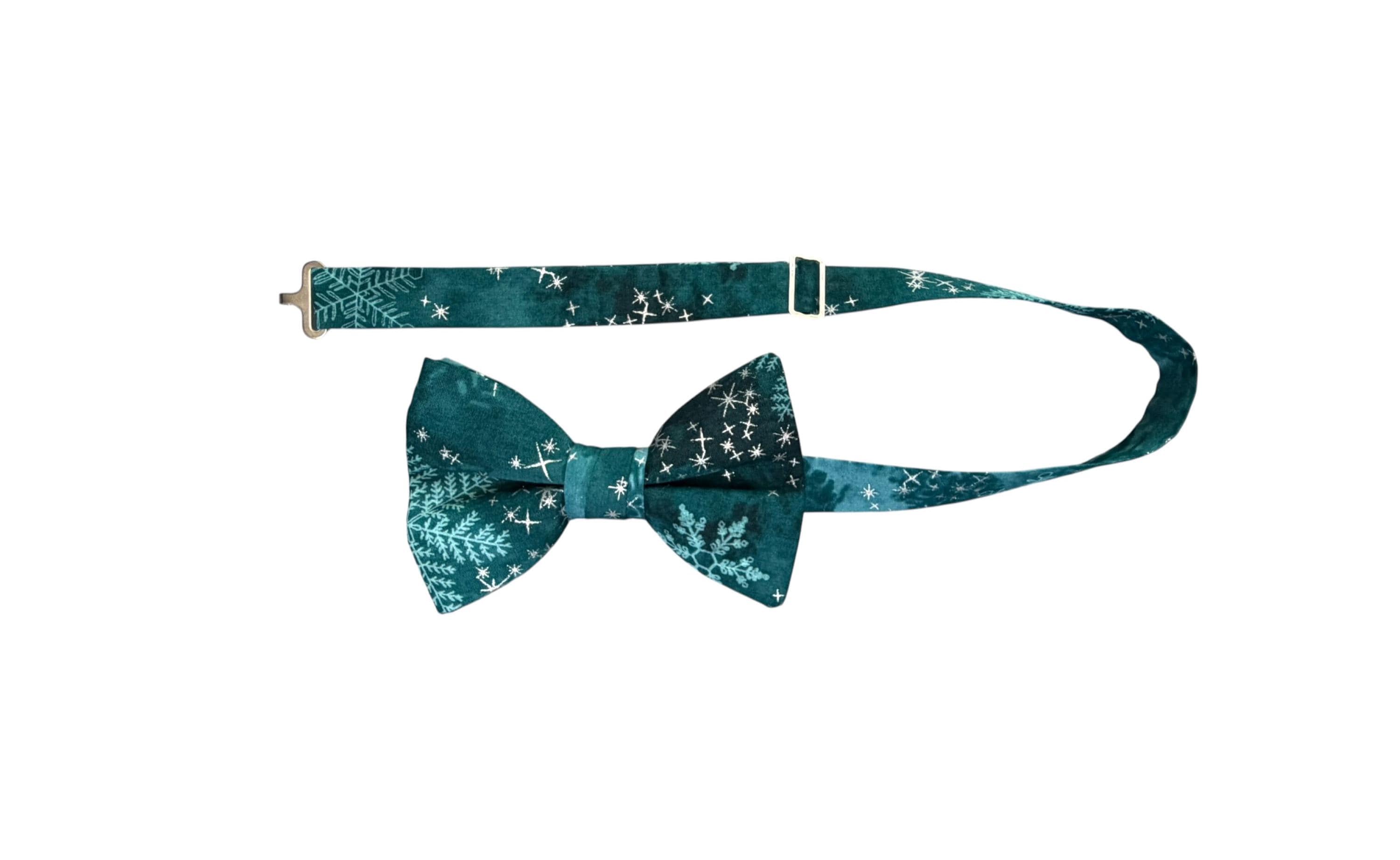 Handmade Pre-tied Bow Tie - Handmade Teal and Aqua Snowflakes with Silver Metallic Stars - Premium Cotton - Adult Men's Sizing - Crafted in the USA by Holiday Bow Ties, LLC - The "North" Bow Tie