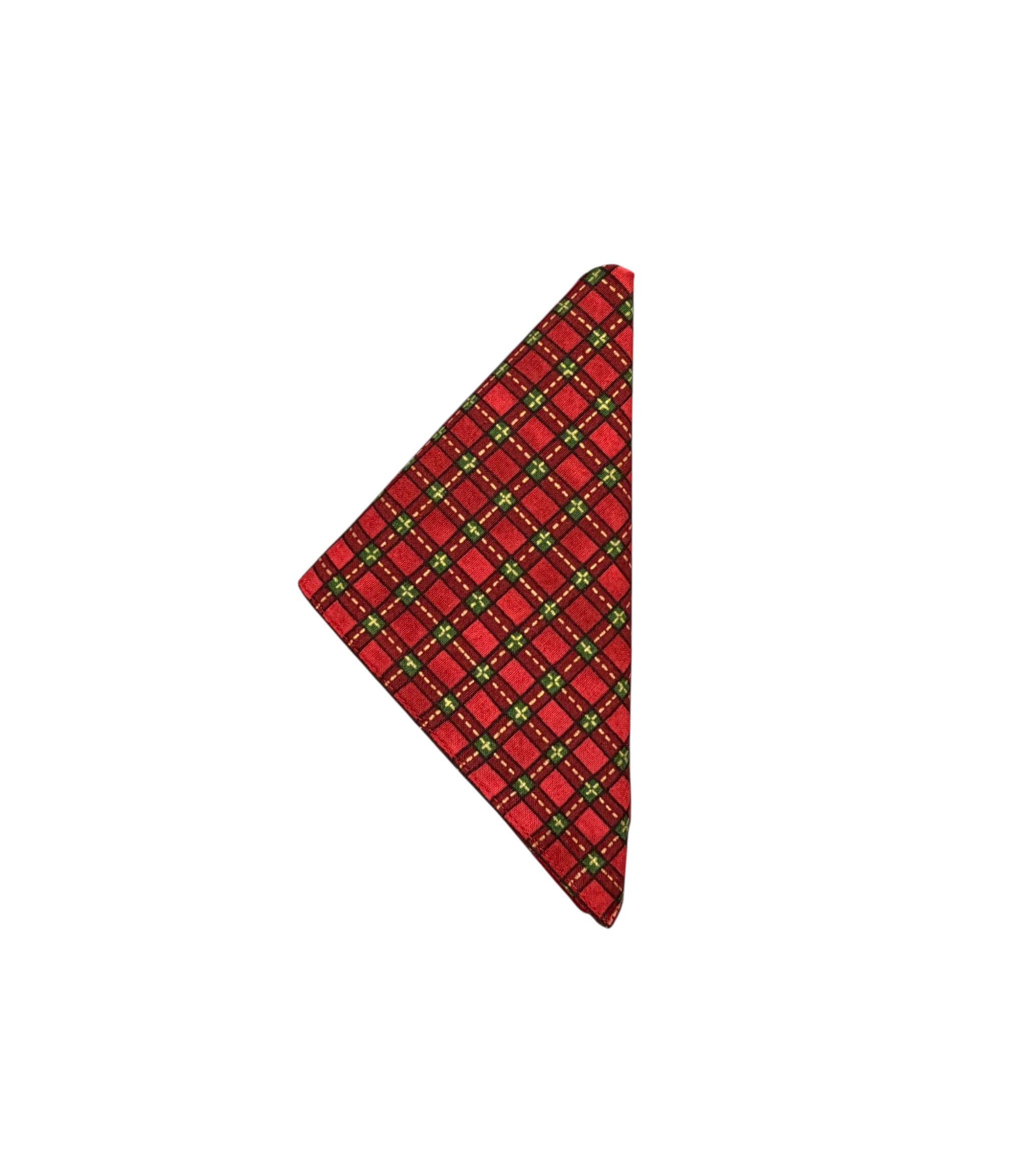 Holiday Pocket Square - Red Christmas Plaid - Cotton Handkerchief - Adult Men's Sizing - Handcrafted in the USA by Holiday Bow Ties, LLC - The "Gabriel" Pocket Square