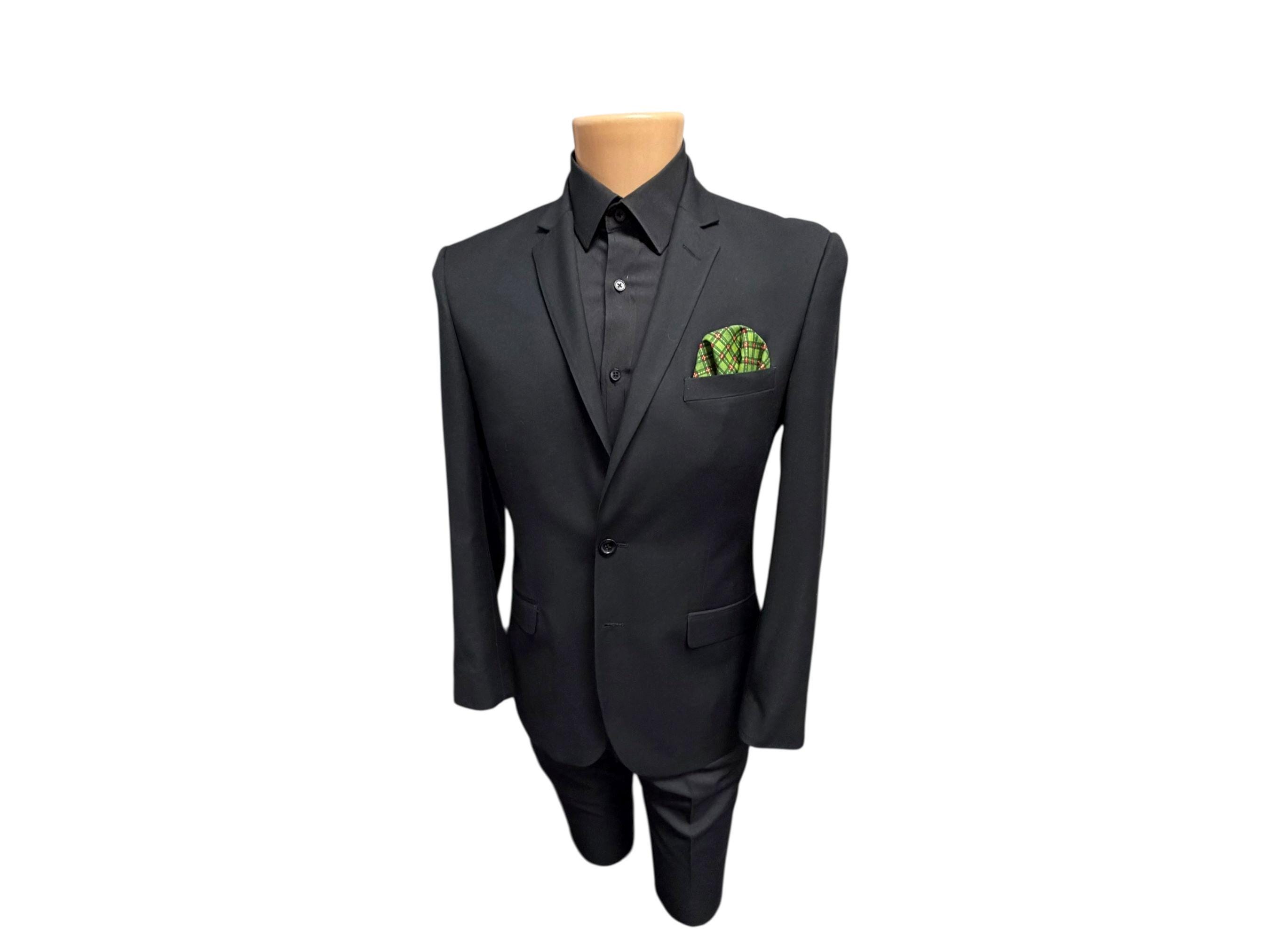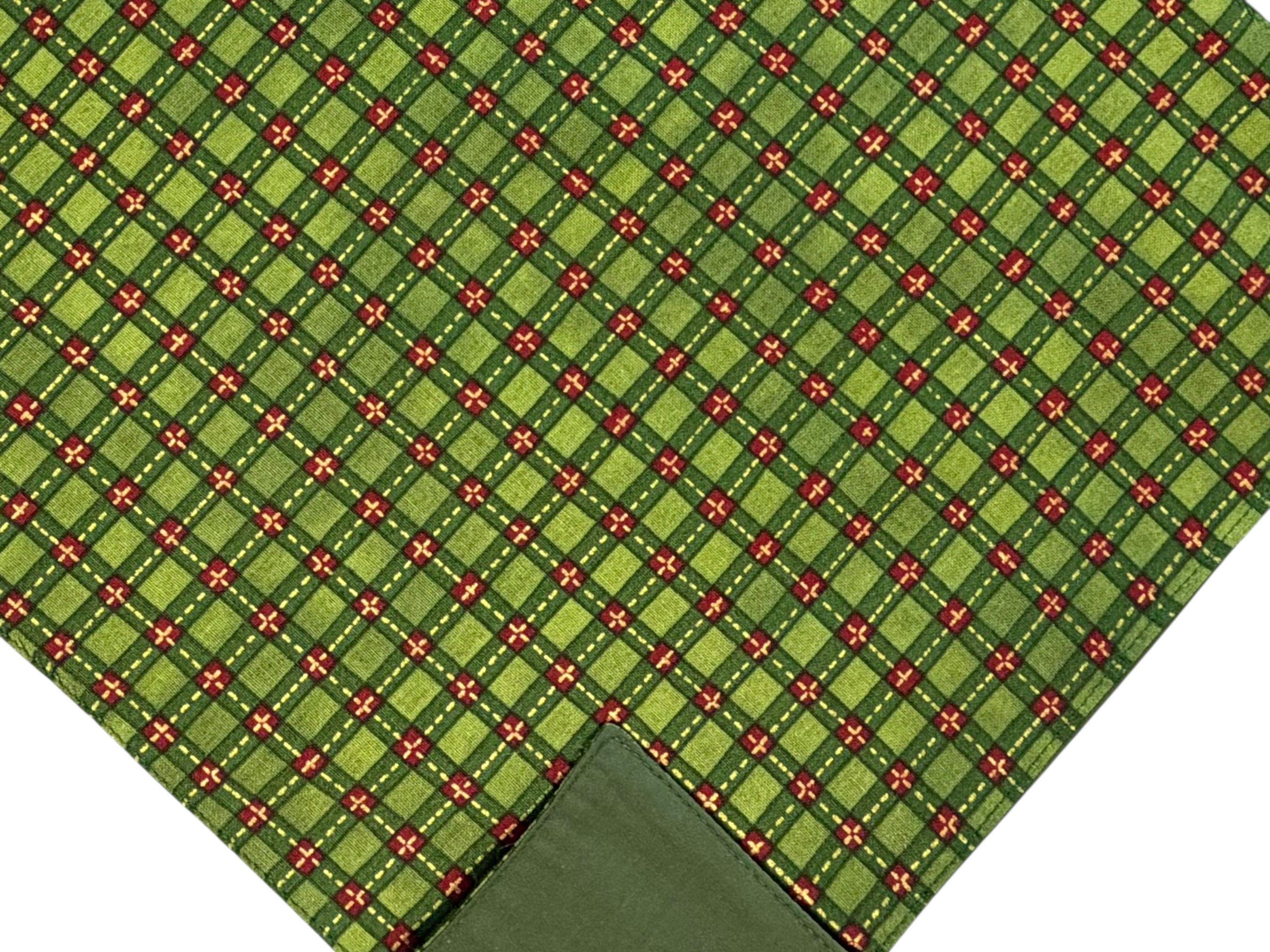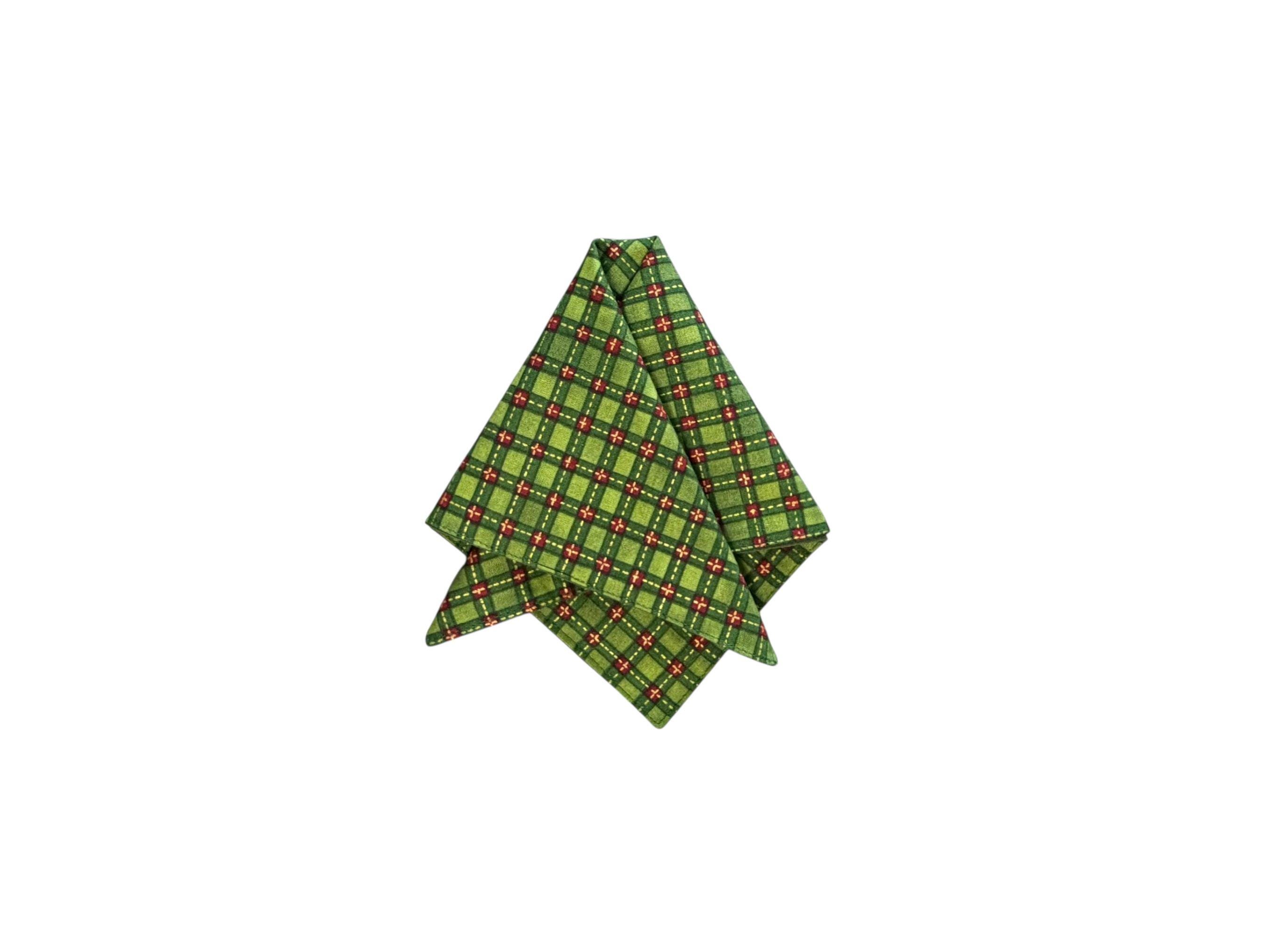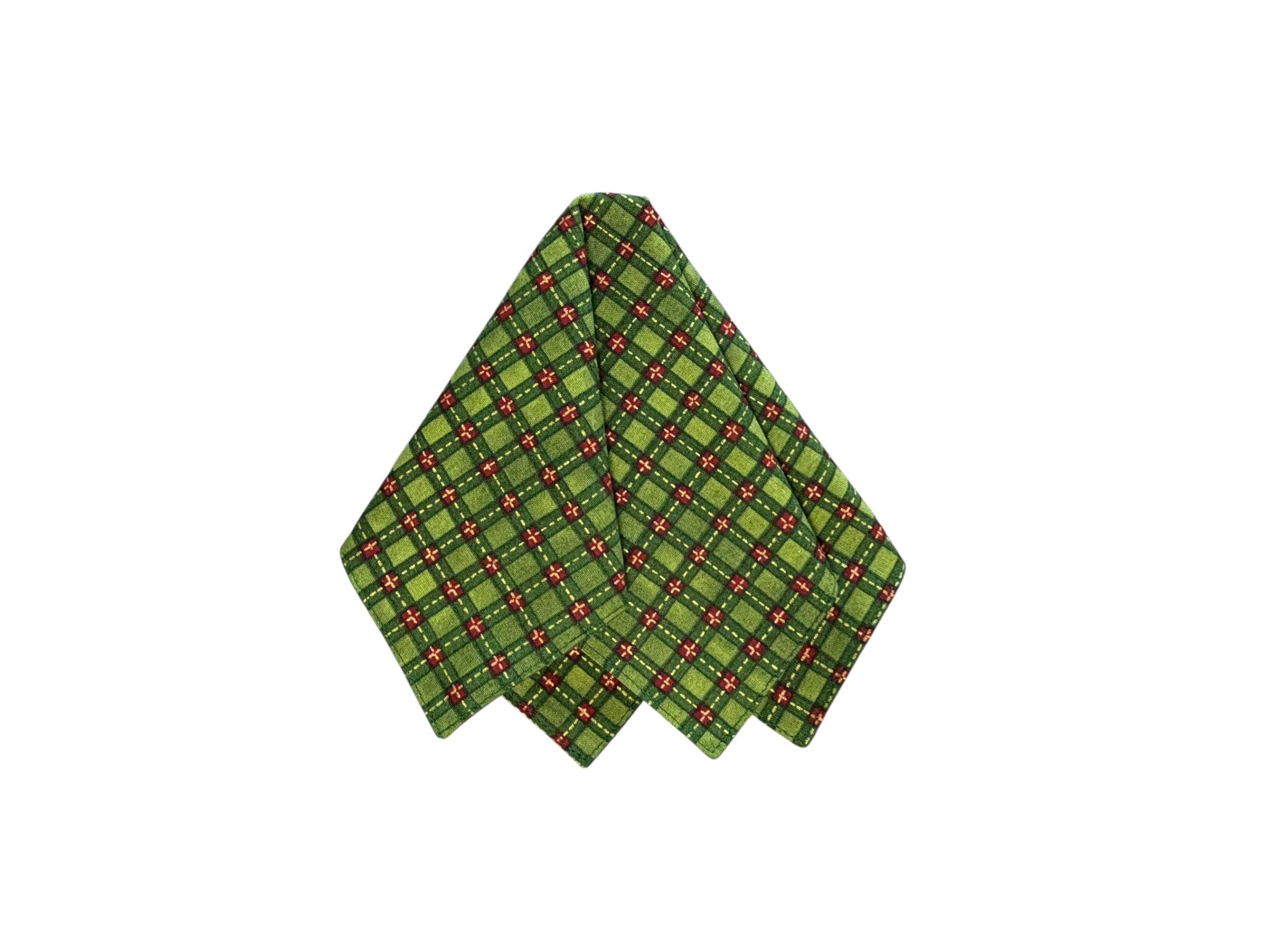 Holiday Pocket Square - Green and Red Holiday Christmas Plaid with Gold Metallic Accents Handkerchief - Adult Men's Sizing -Handcrafted in the USA by Holiday Bow Ties, LLC - The "Jasper" Pocket Square