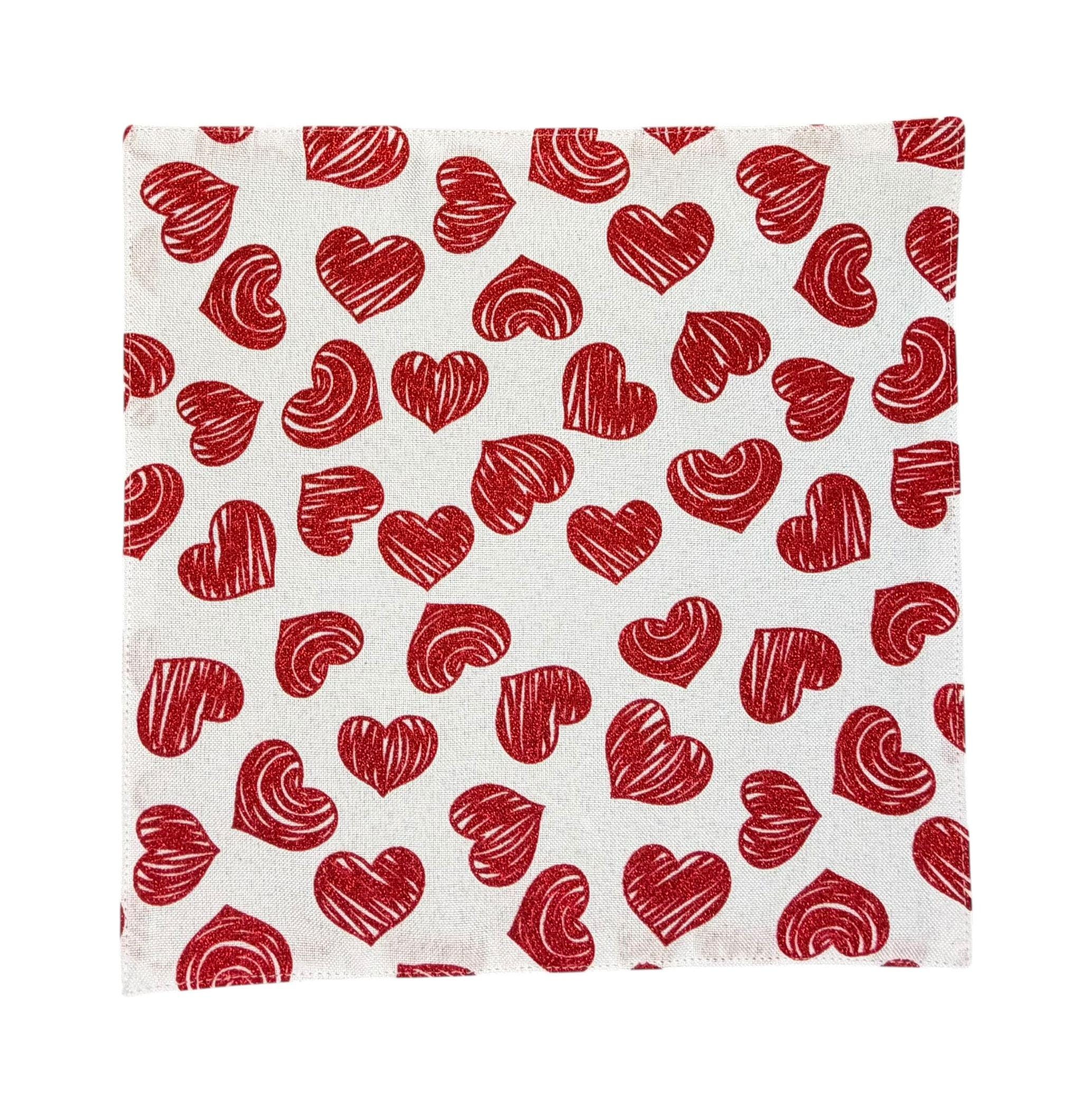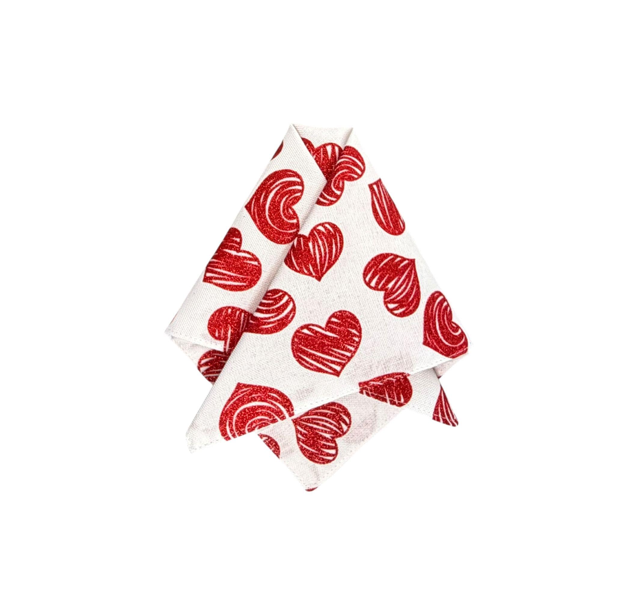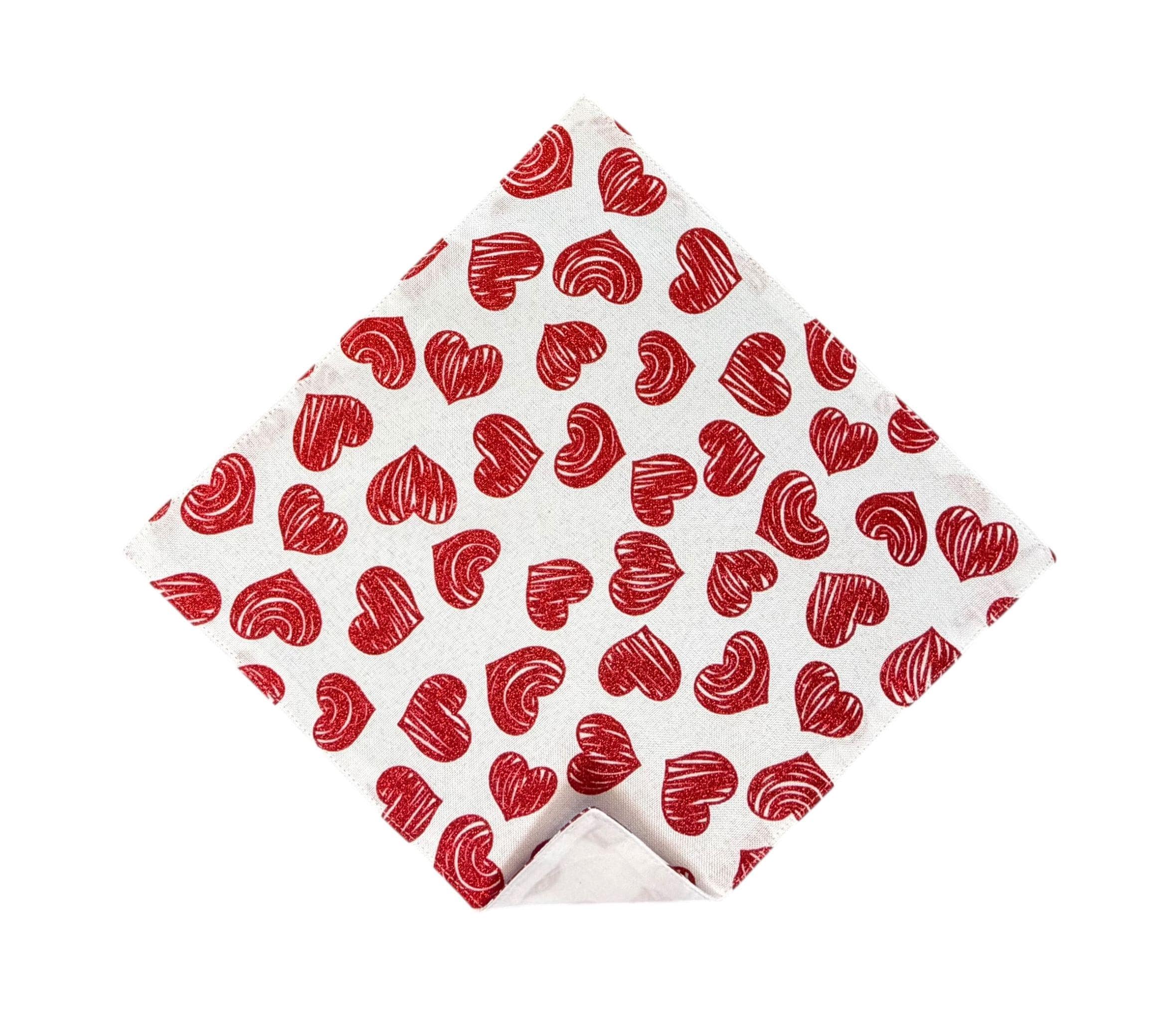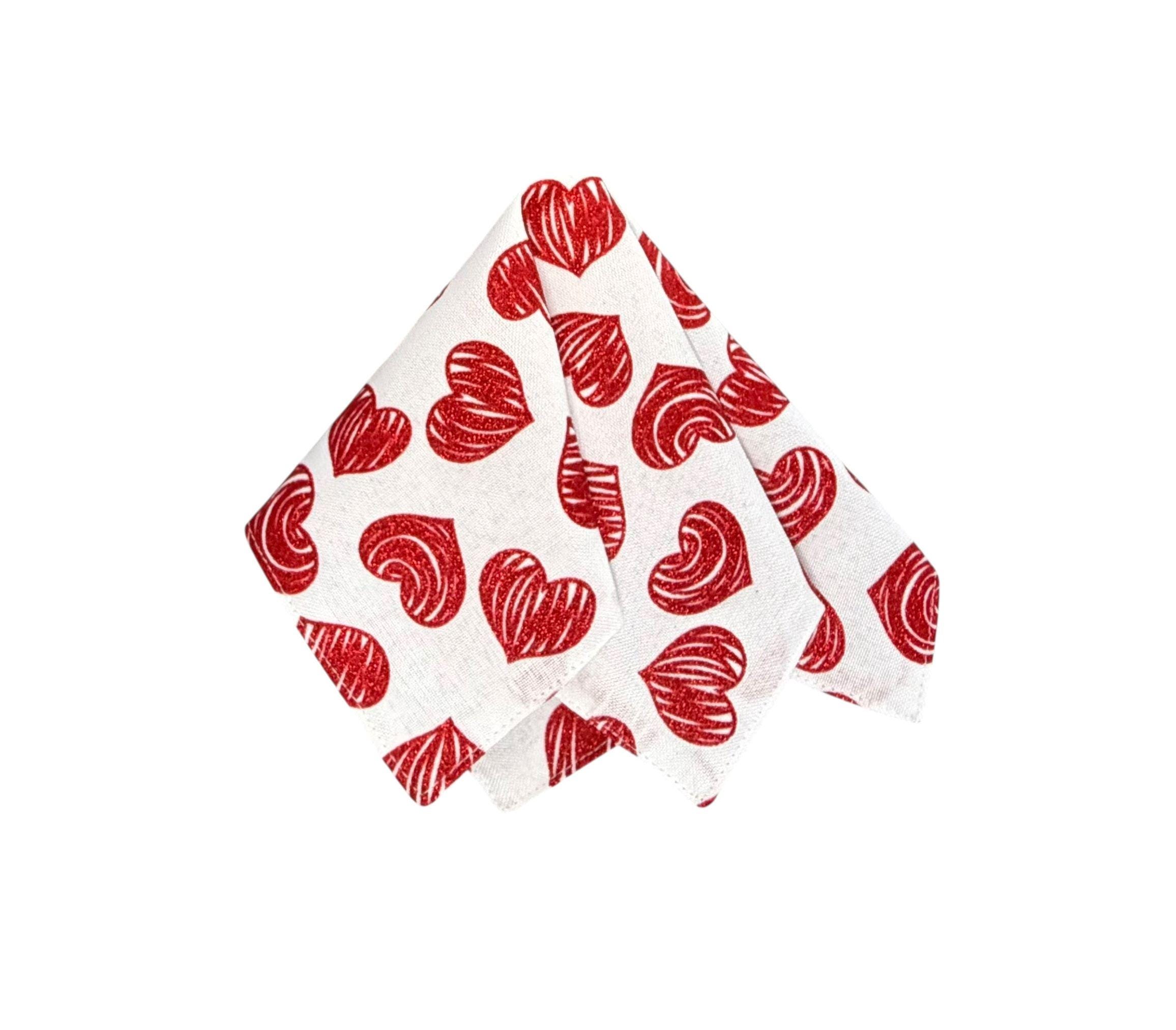 Valentine Pocket Square - White with Red Glitter Hearts Cotton Handkerchief - Adult Men's - Handcrafted in the USA by Holiday Bow Ties, LLC - The "Francis"