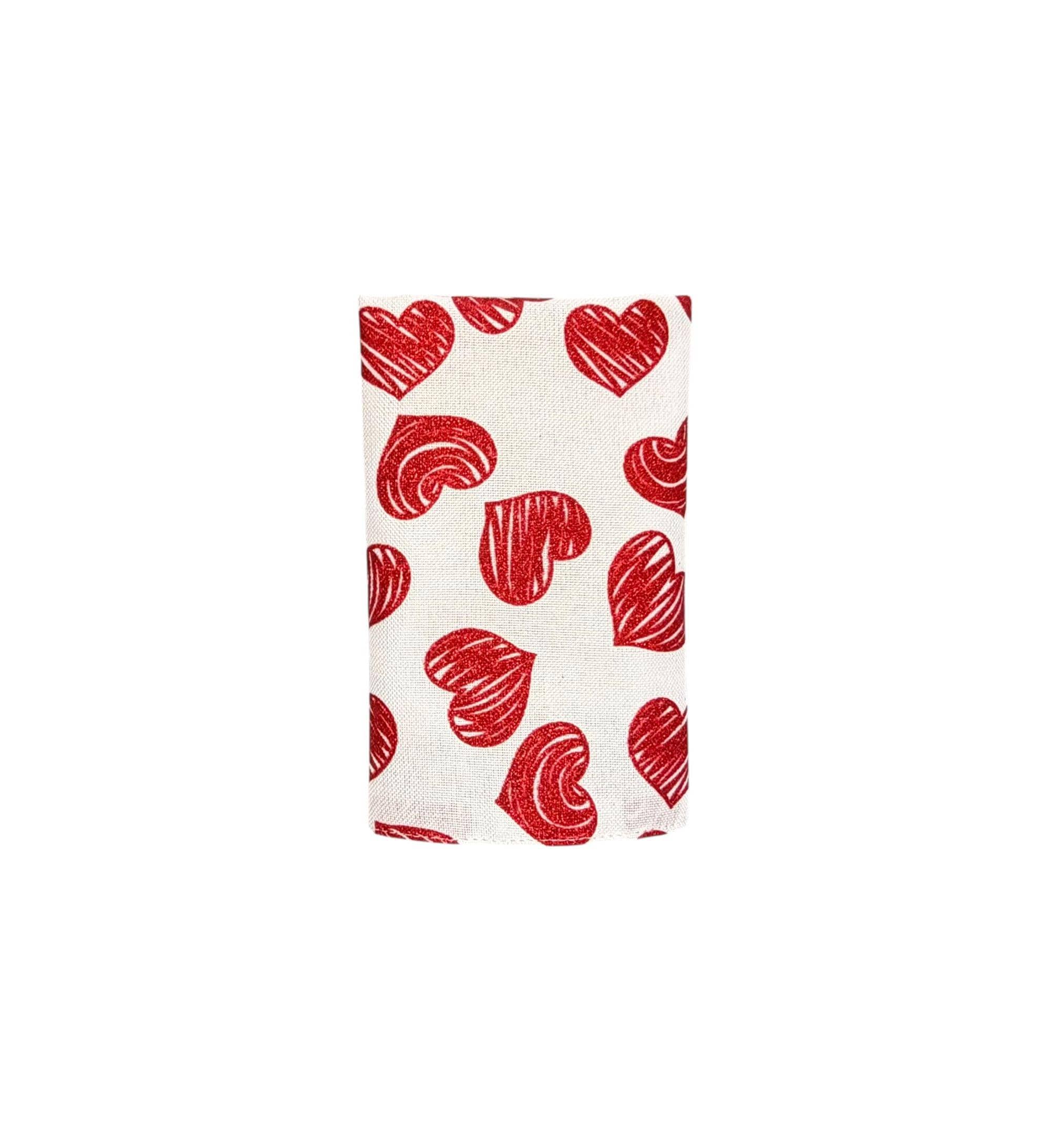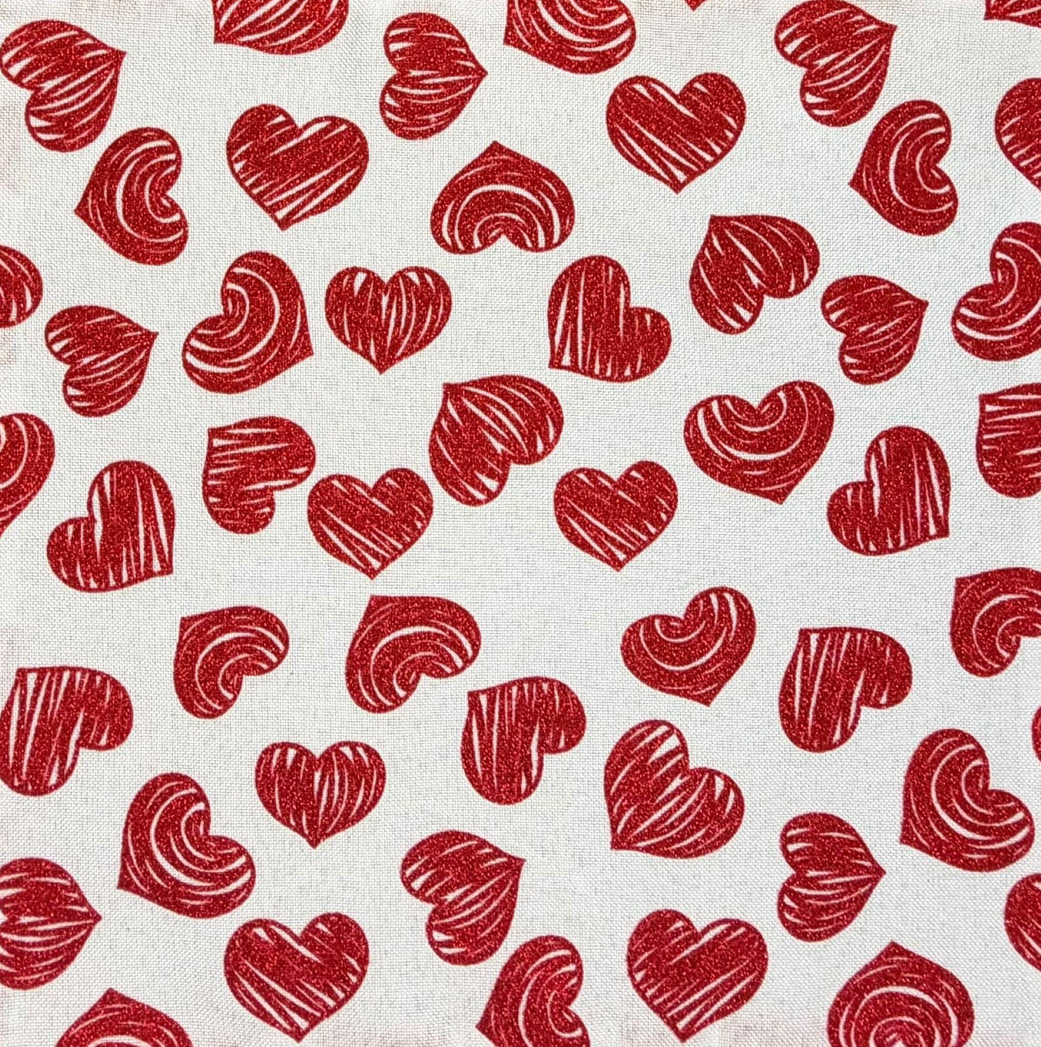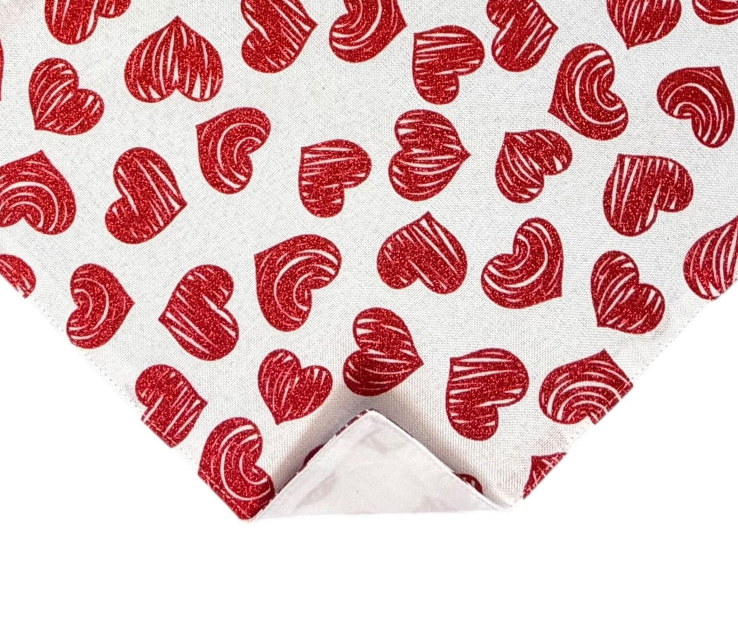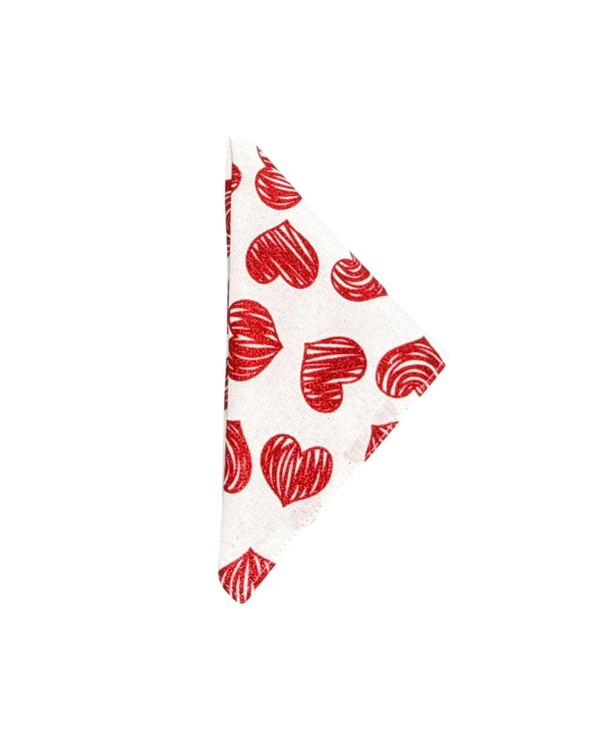 Valentine Pocket Square - White with Red Glitter Hearts Cotton Handkerchief - Adult Men's - Handcrafted in the USA by Holiday Bow Ties, LLC - The "Francis"