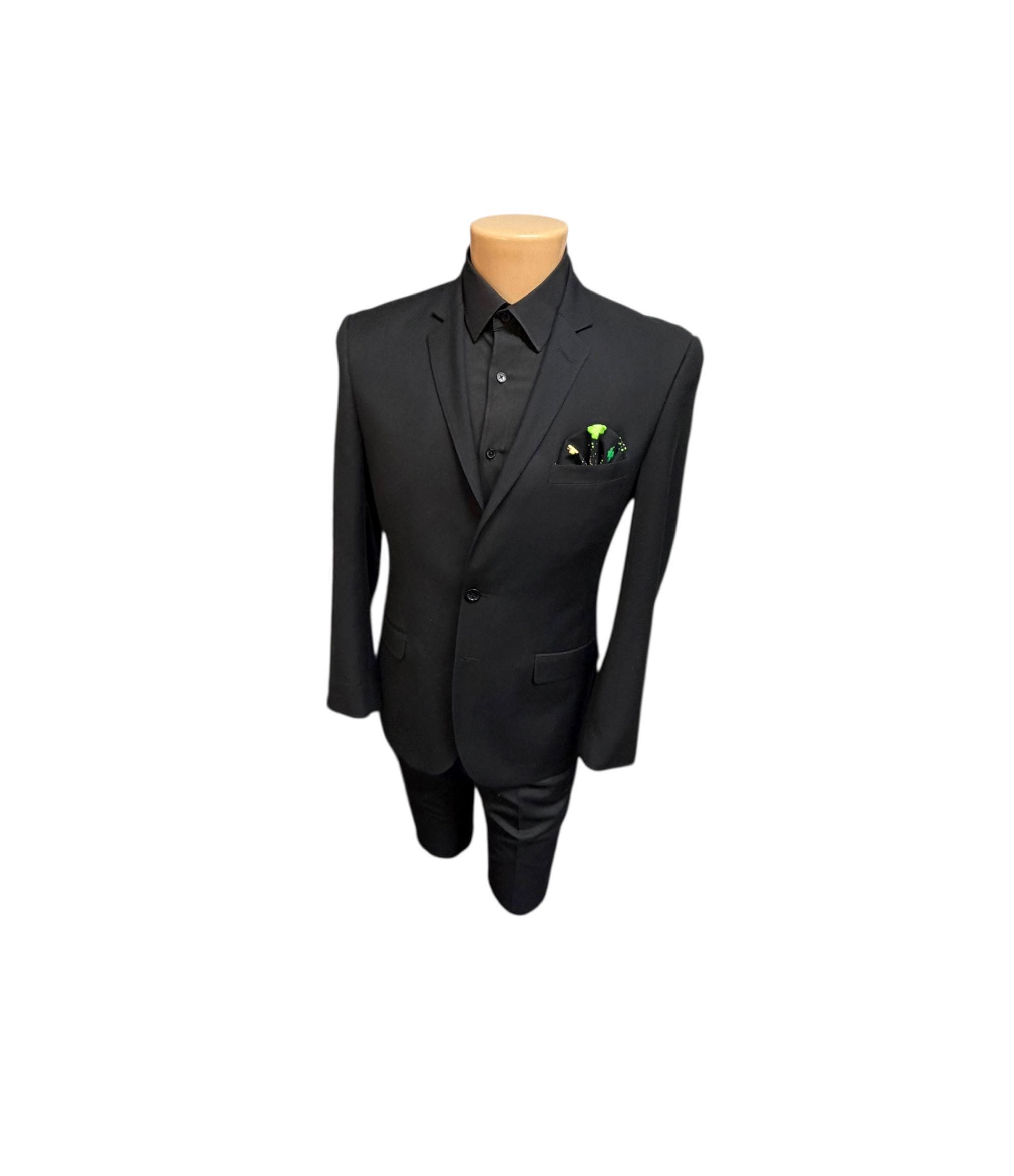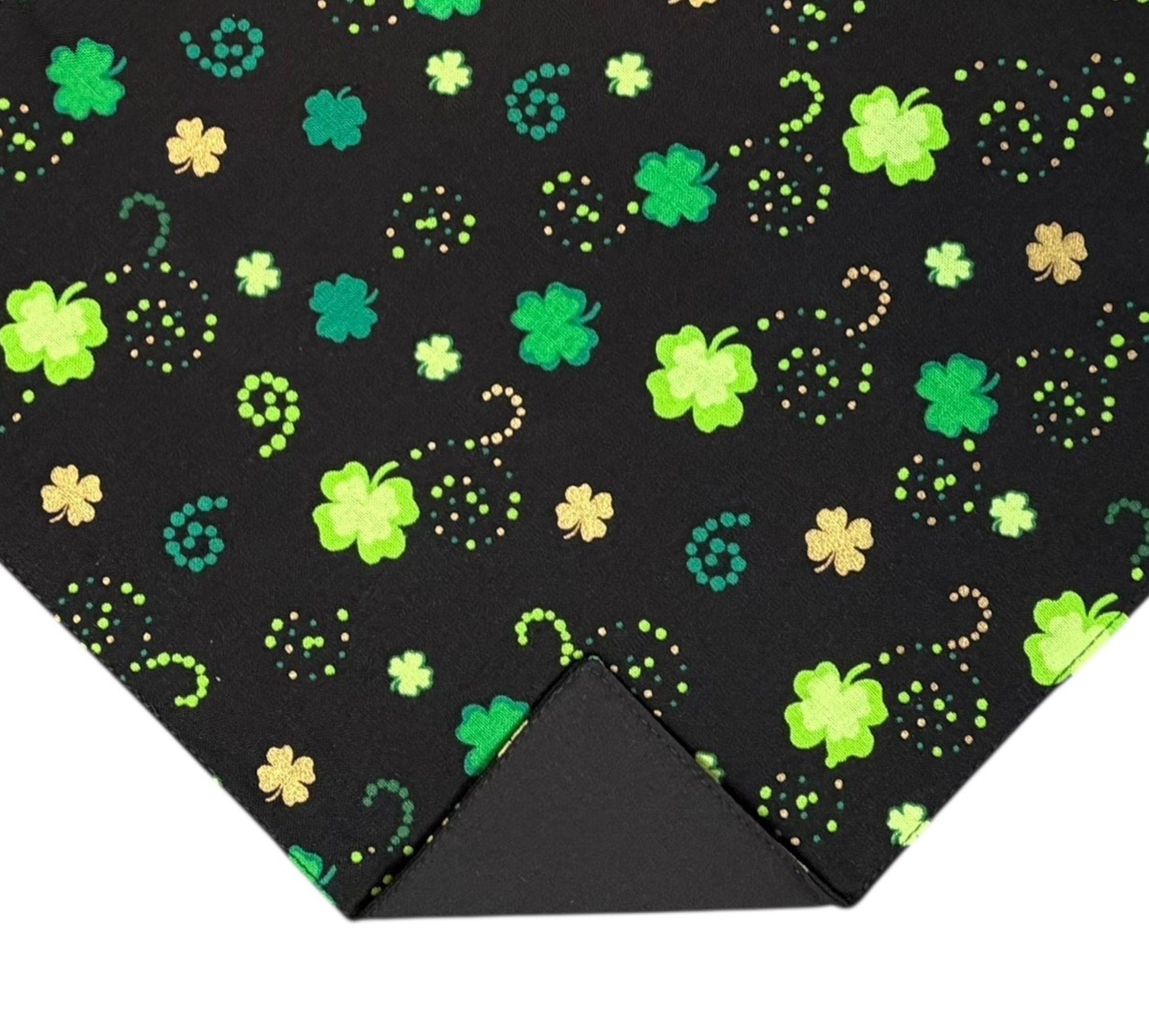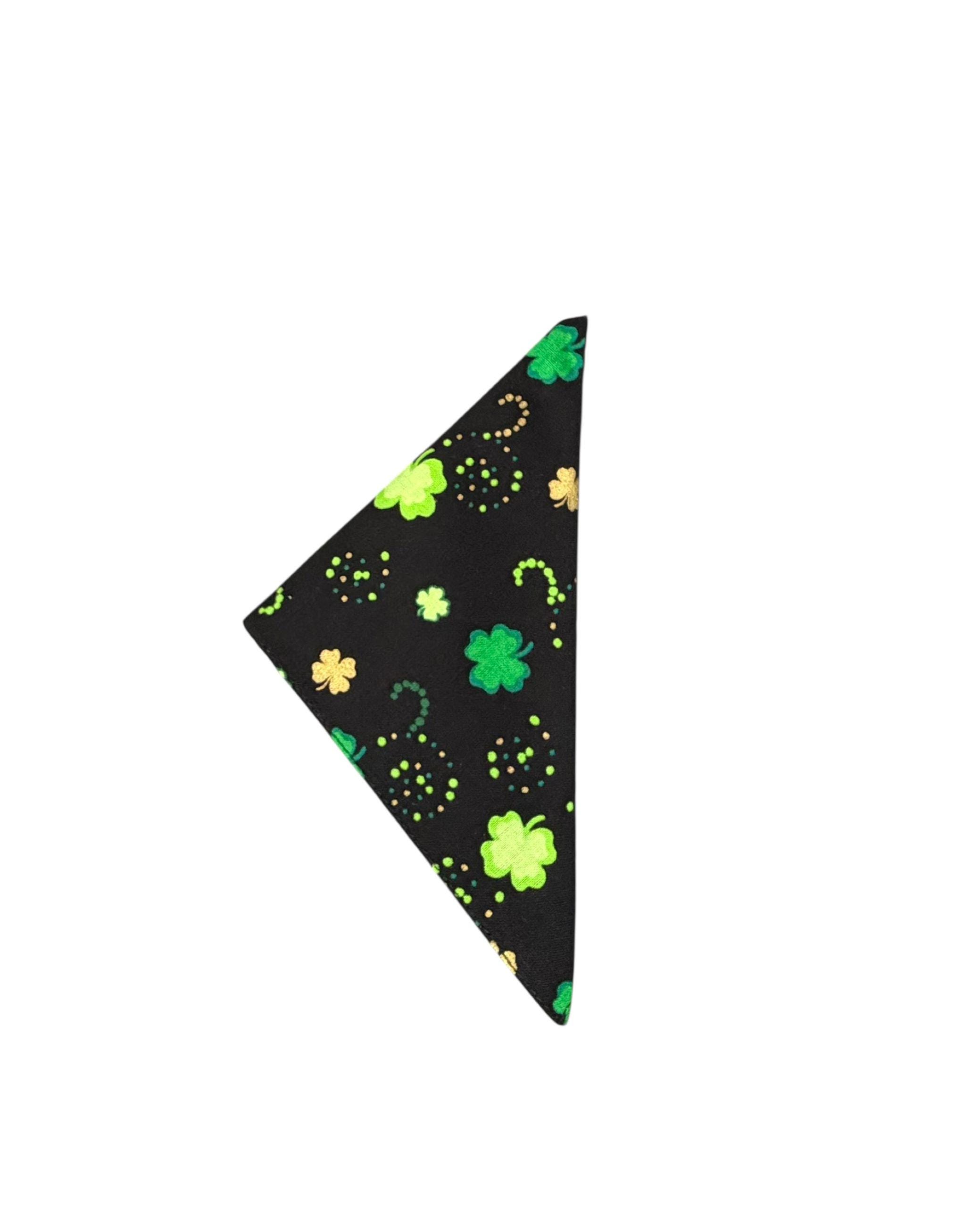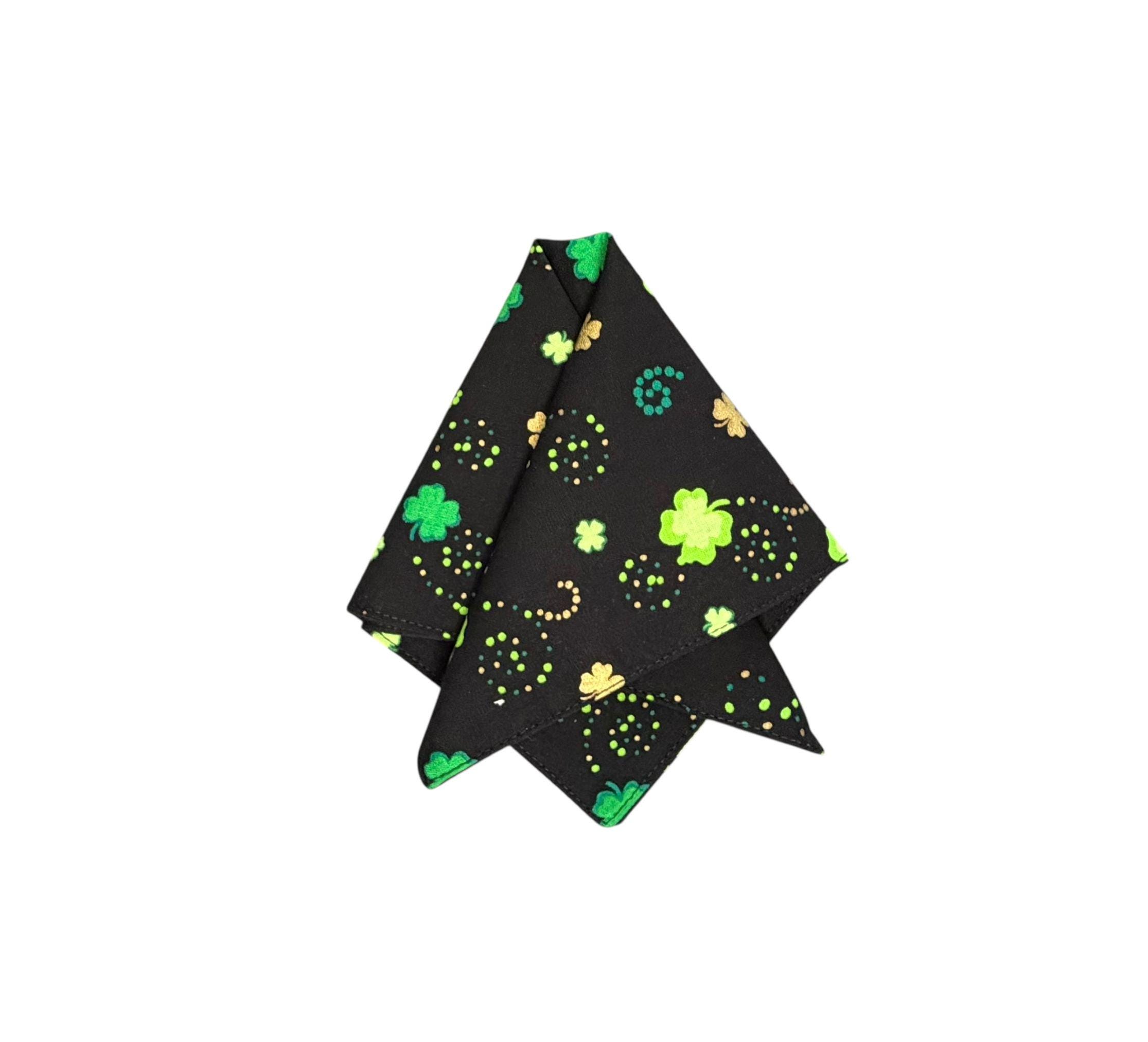 St. Patrick's Pocket Square - Black with Green and Metallic Gold Shamrocks Handkerchief - Adult Men's Sizing - Handcrafted in the USA by Holiday Bow Ties, llc - The "Burk"