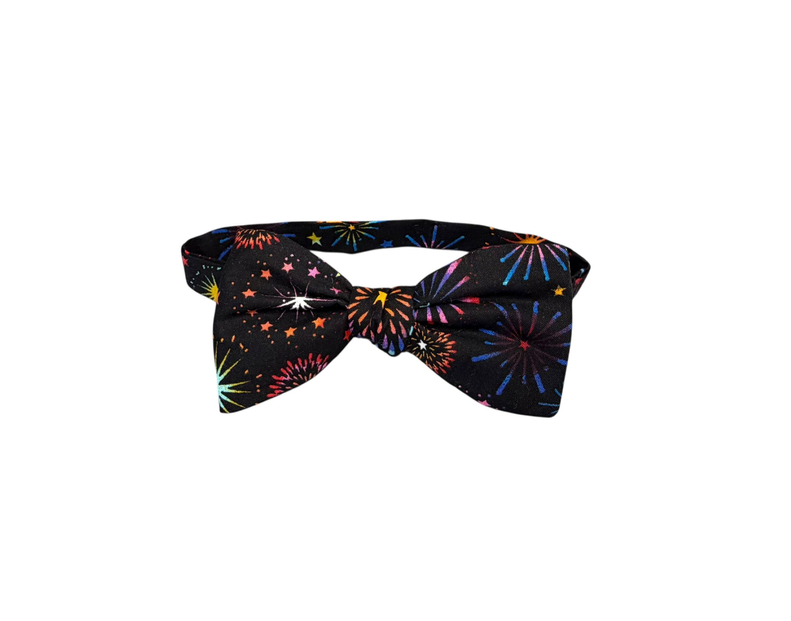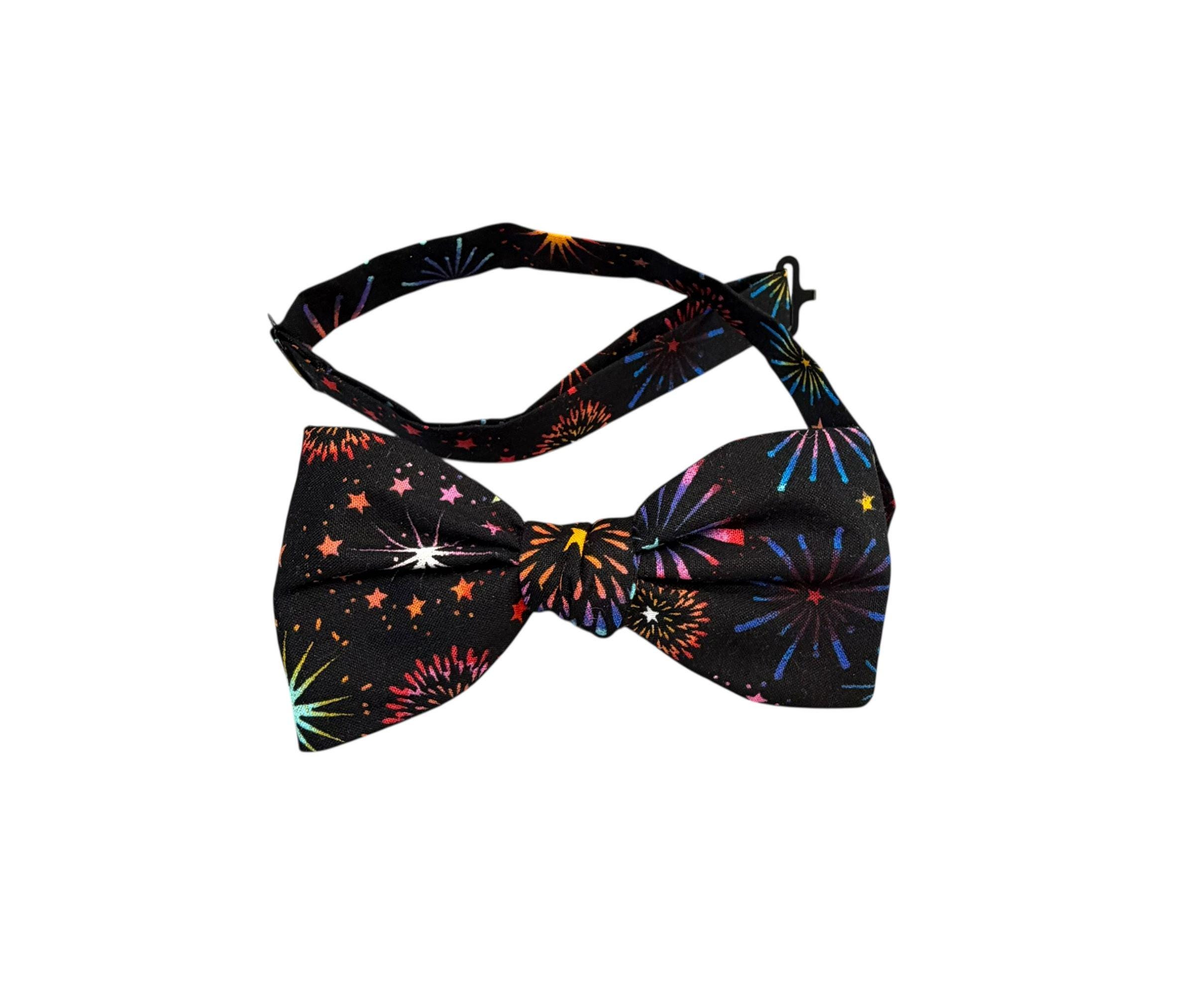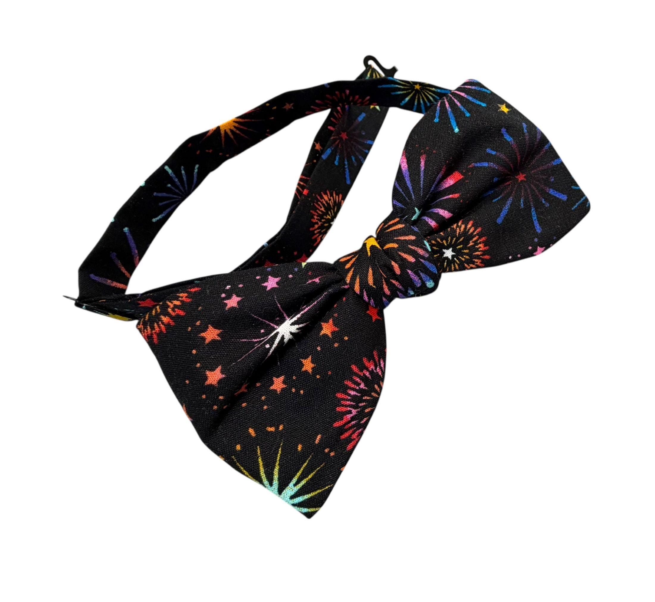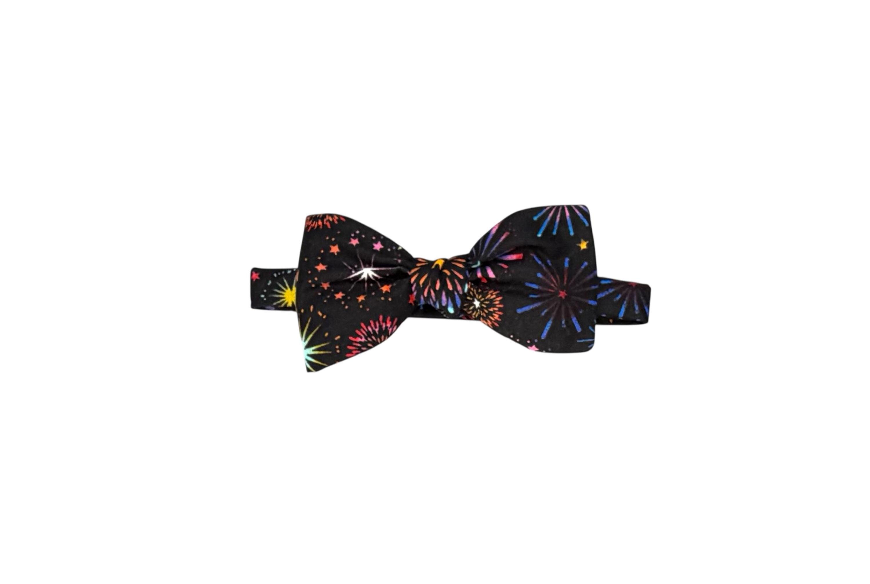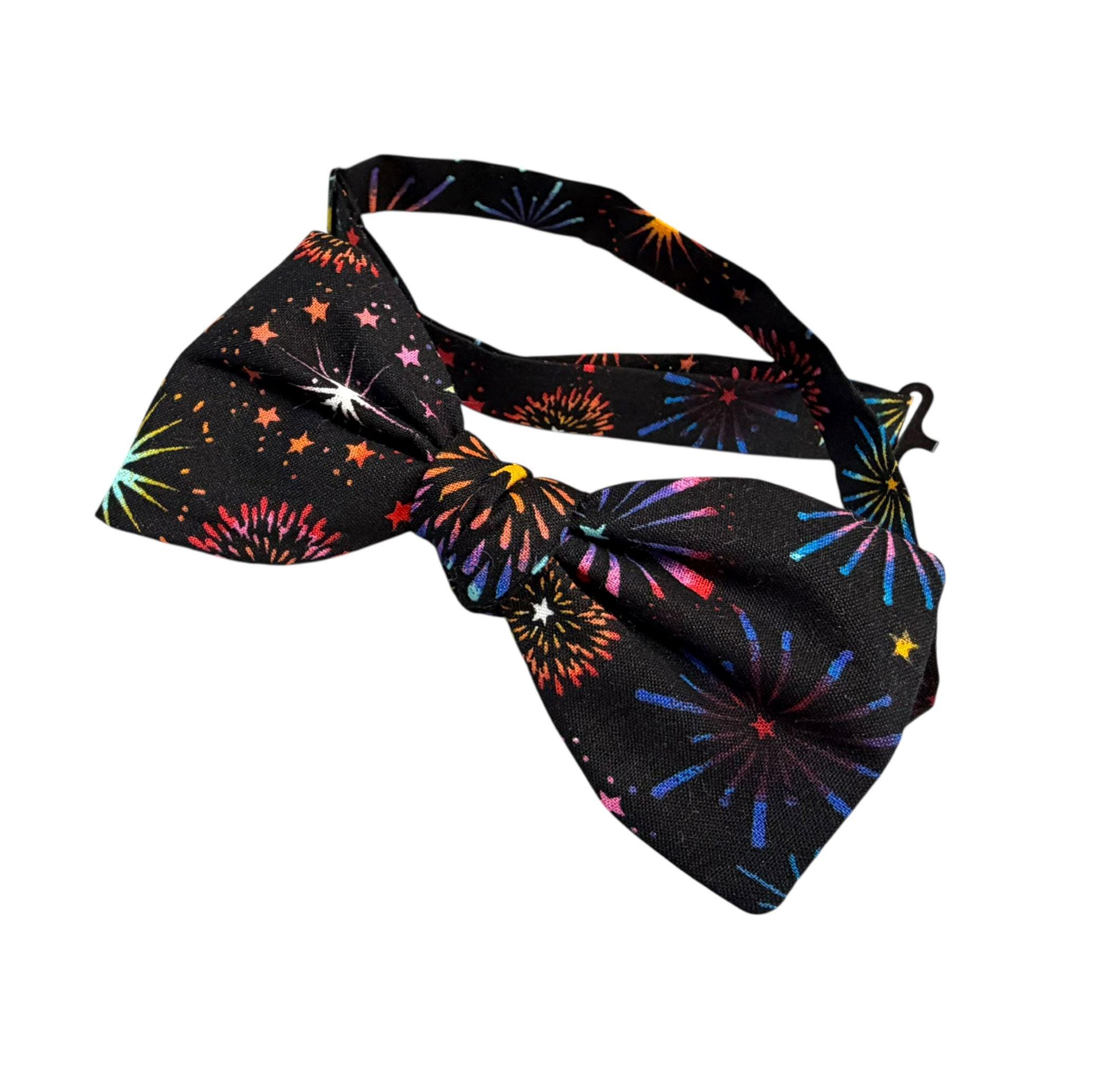 Handmade Pre-Tied Bow Tie - Multi Colored Fireworks Celebration - Adult Men's Sizing - Hand crafted in the USA by Holiday Bow Ties, llc- The "Lexington" Bow Tie