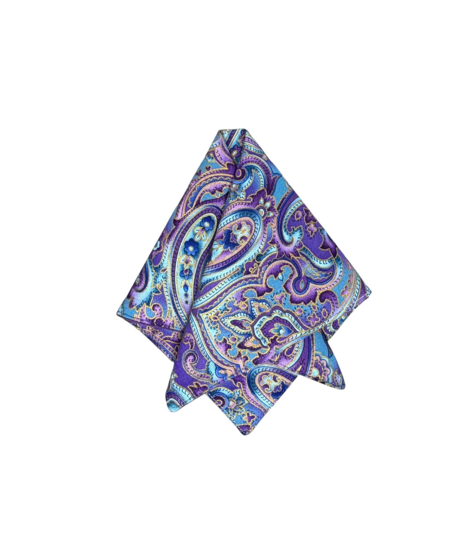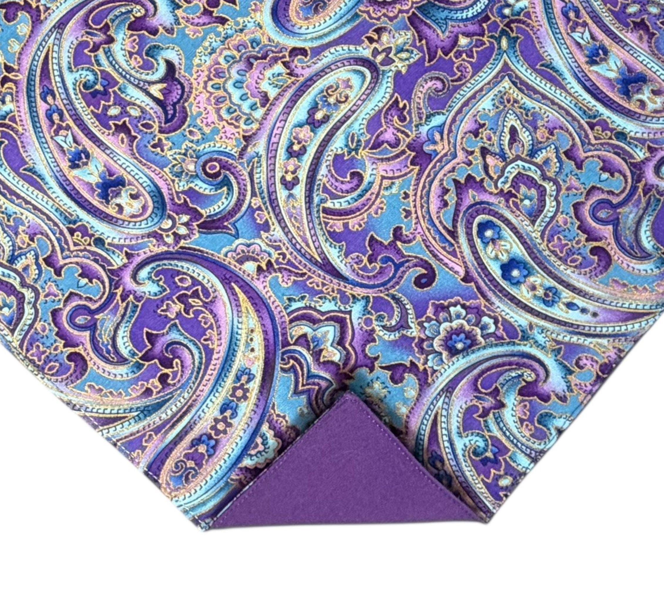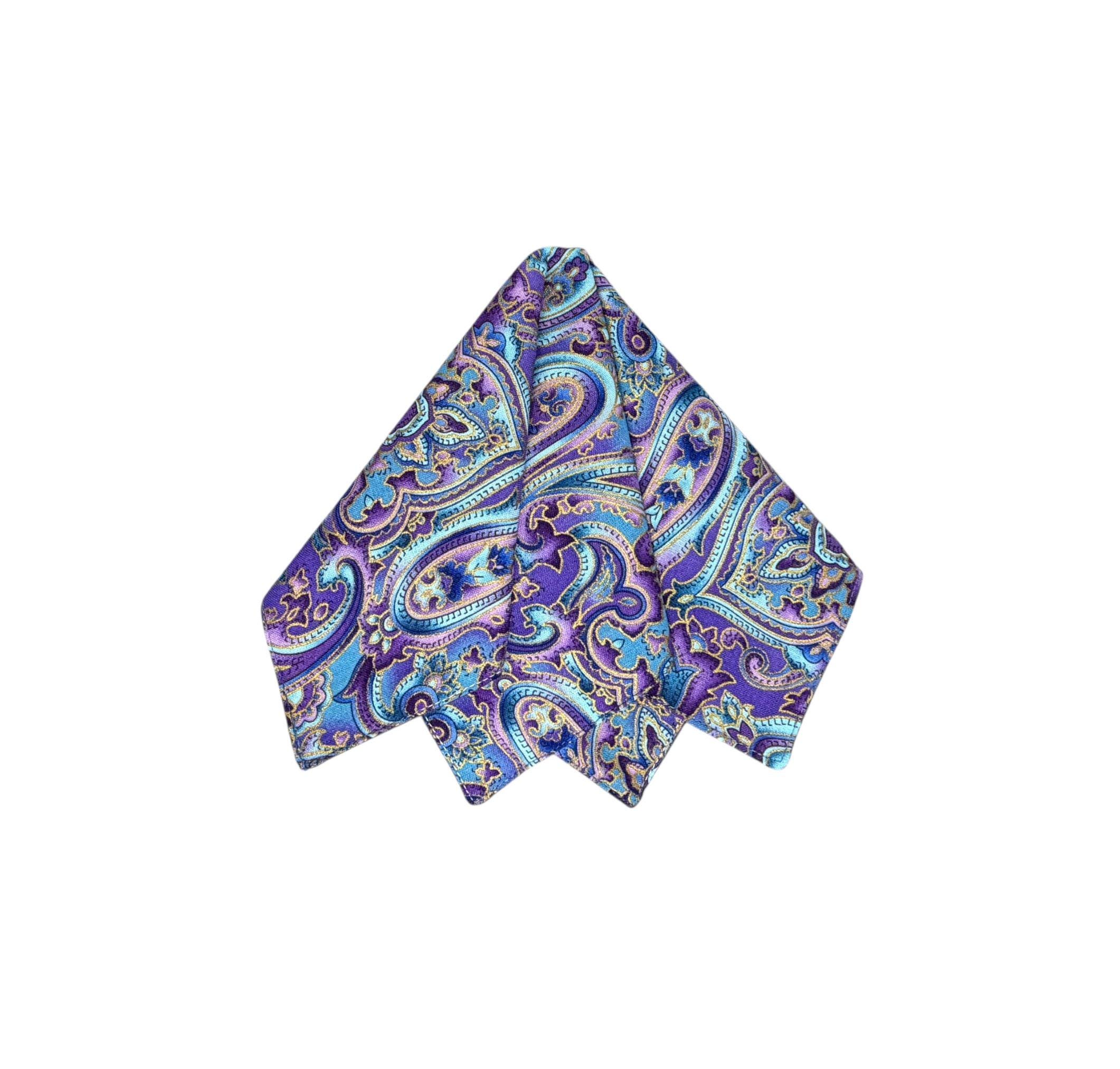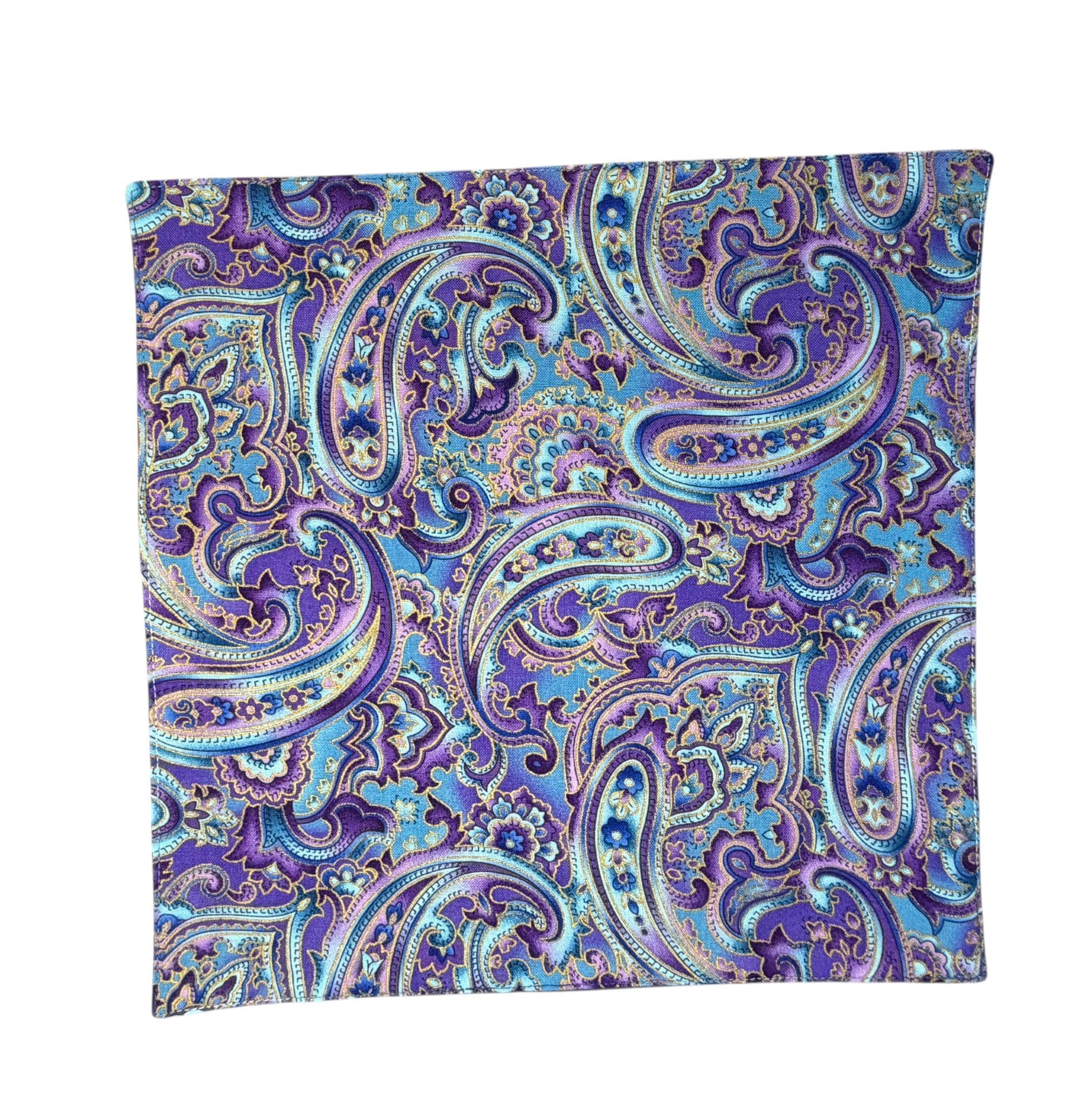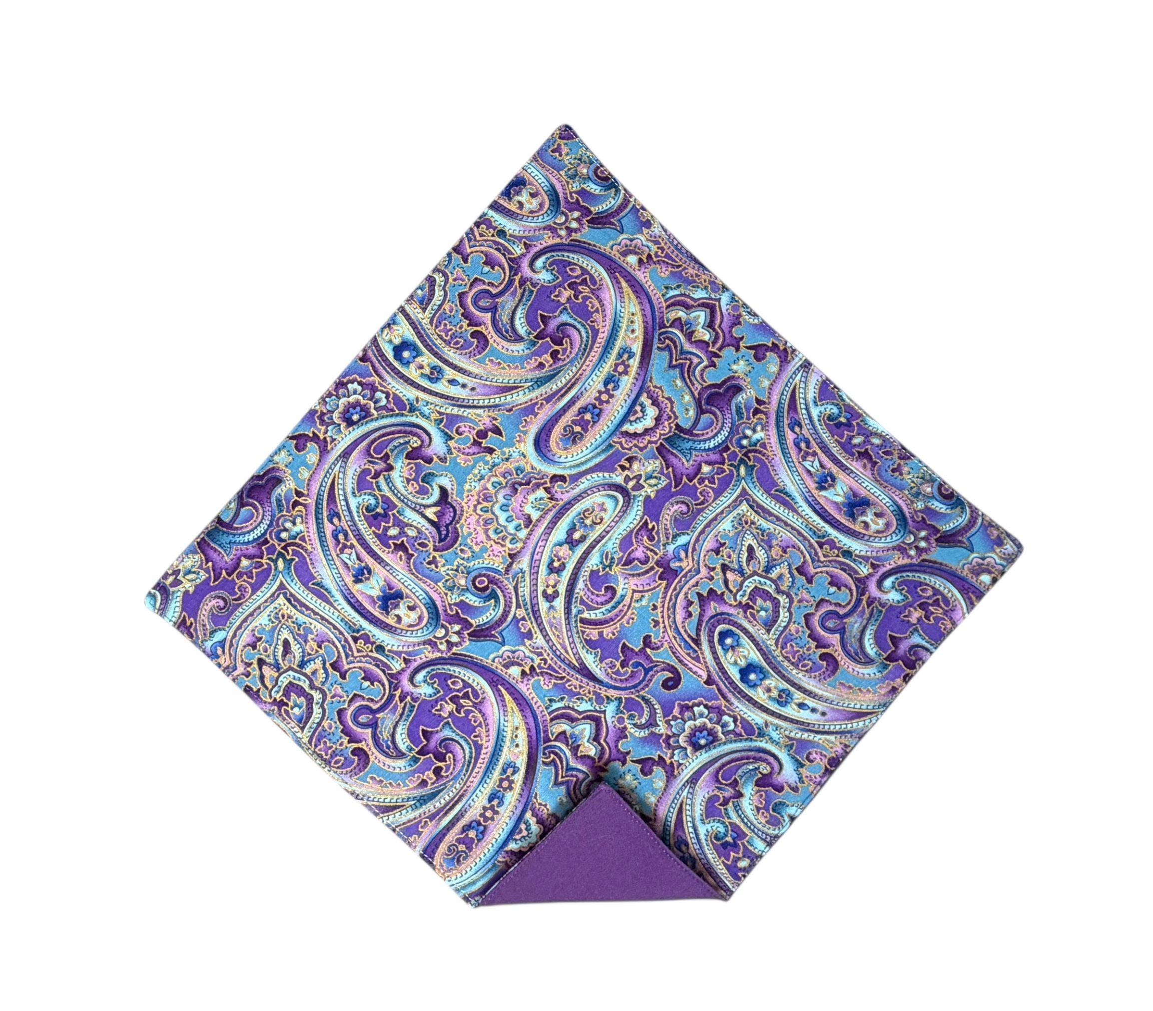 Pocket Square - Paisley Design in Purple & Turquoise with Gold Metallic Accents - Wedding- Prom Night - Cotton Handkerchief -Adult Men's Sizing - Handcrafted in the USA by Holiday Bow Ties, llc - The "Burton"