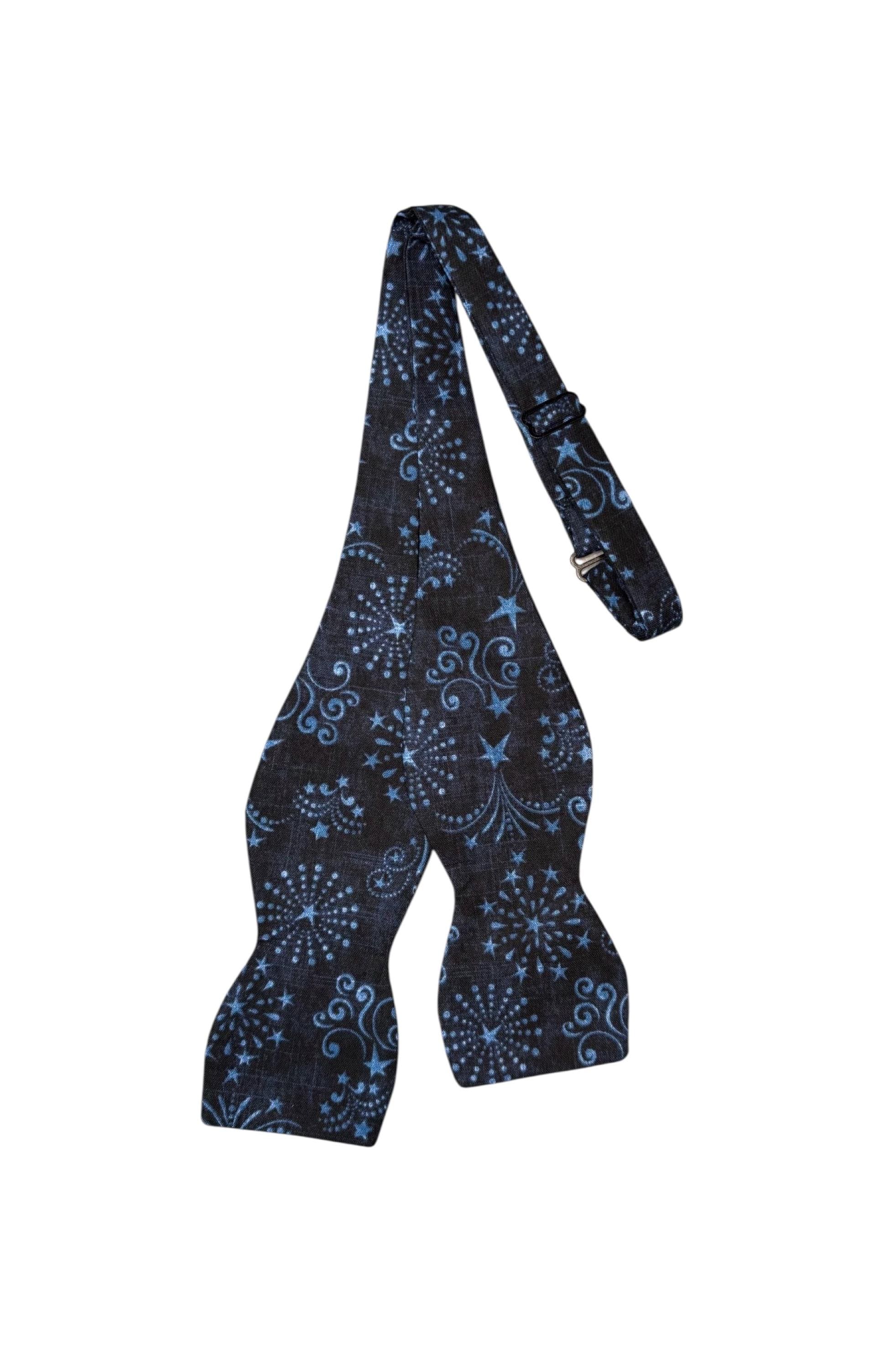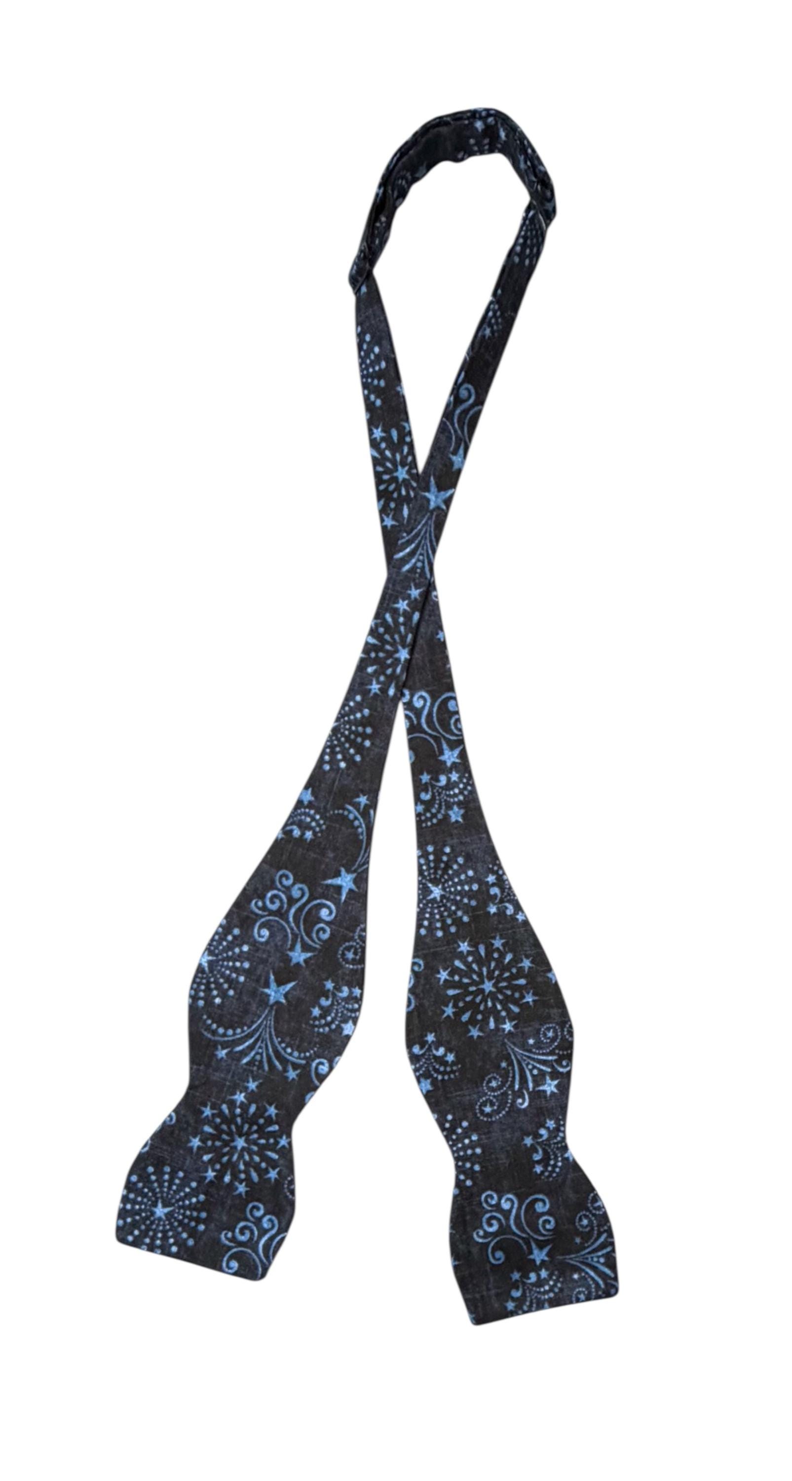 Patriotic Self-Tie Bow Tie - Fourth of July Firework Celebration in Shades of Blue - Premium Cotton - Adult Men's Sizing - Handcrafted in the USA by Holiday Bow Ties, llc - The "Jefferson"