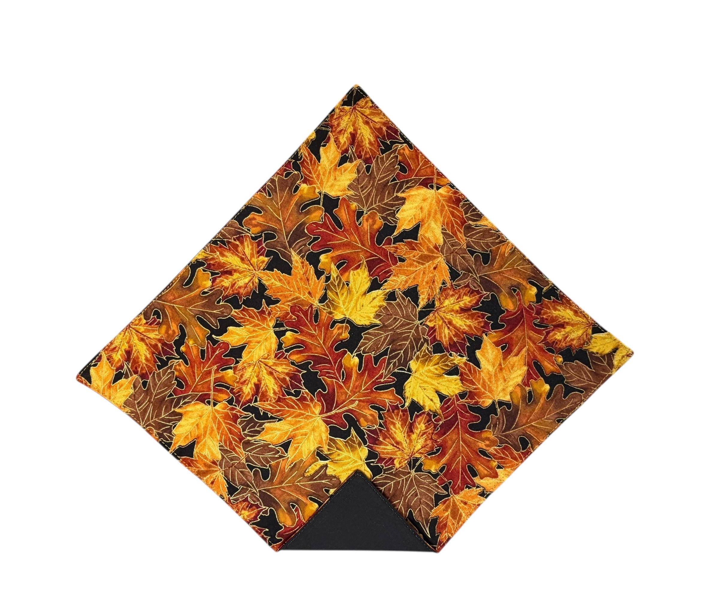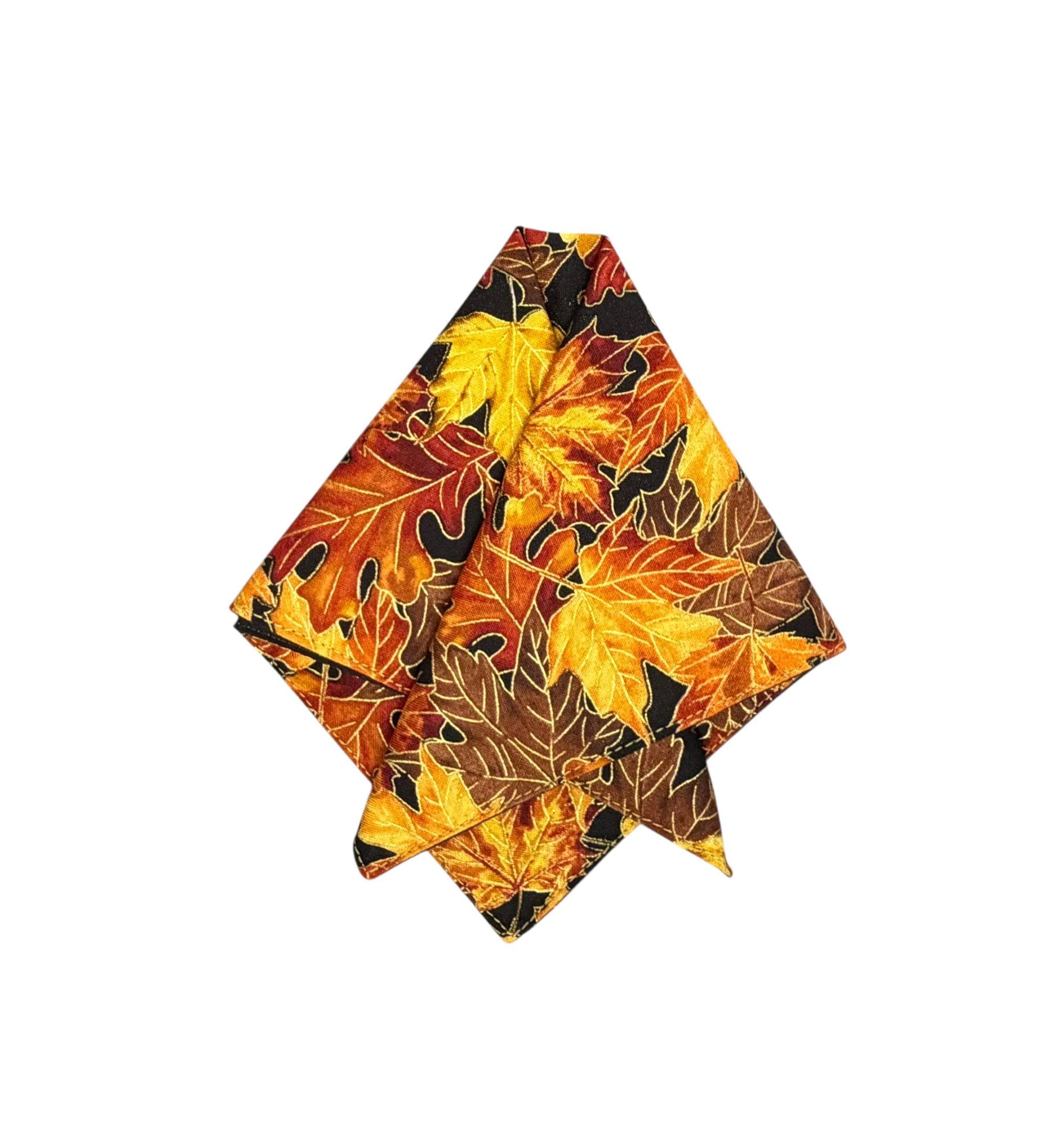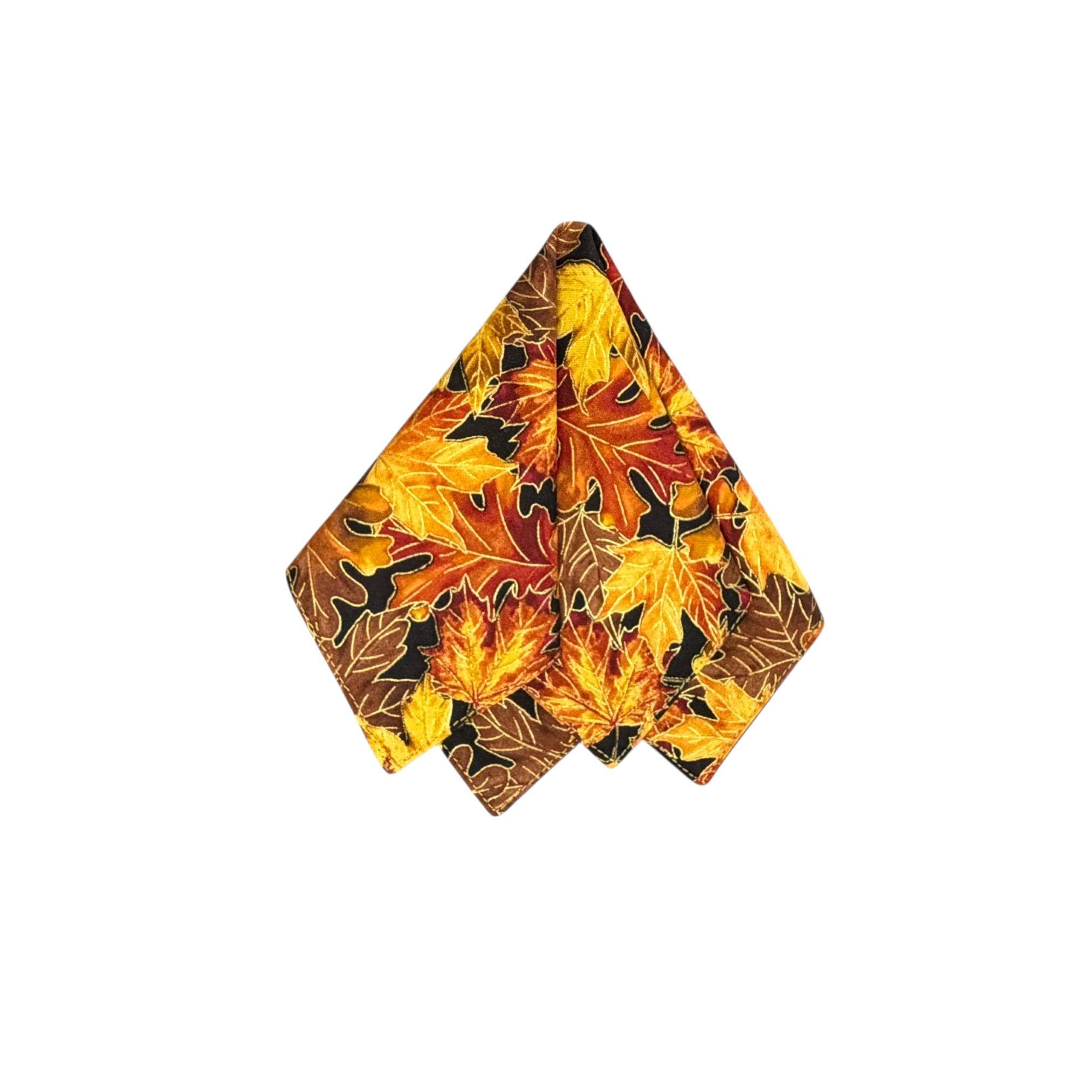 The Golden Autumn Harvest Leaves Handkerchief Pocket Square captures the warmth and richness of the season. Featuring detailed leaf patterns in orange, yellow, and brown with shimmering gold metallic accents, this handcrafted piece adds a polished, festive touch to your look.
