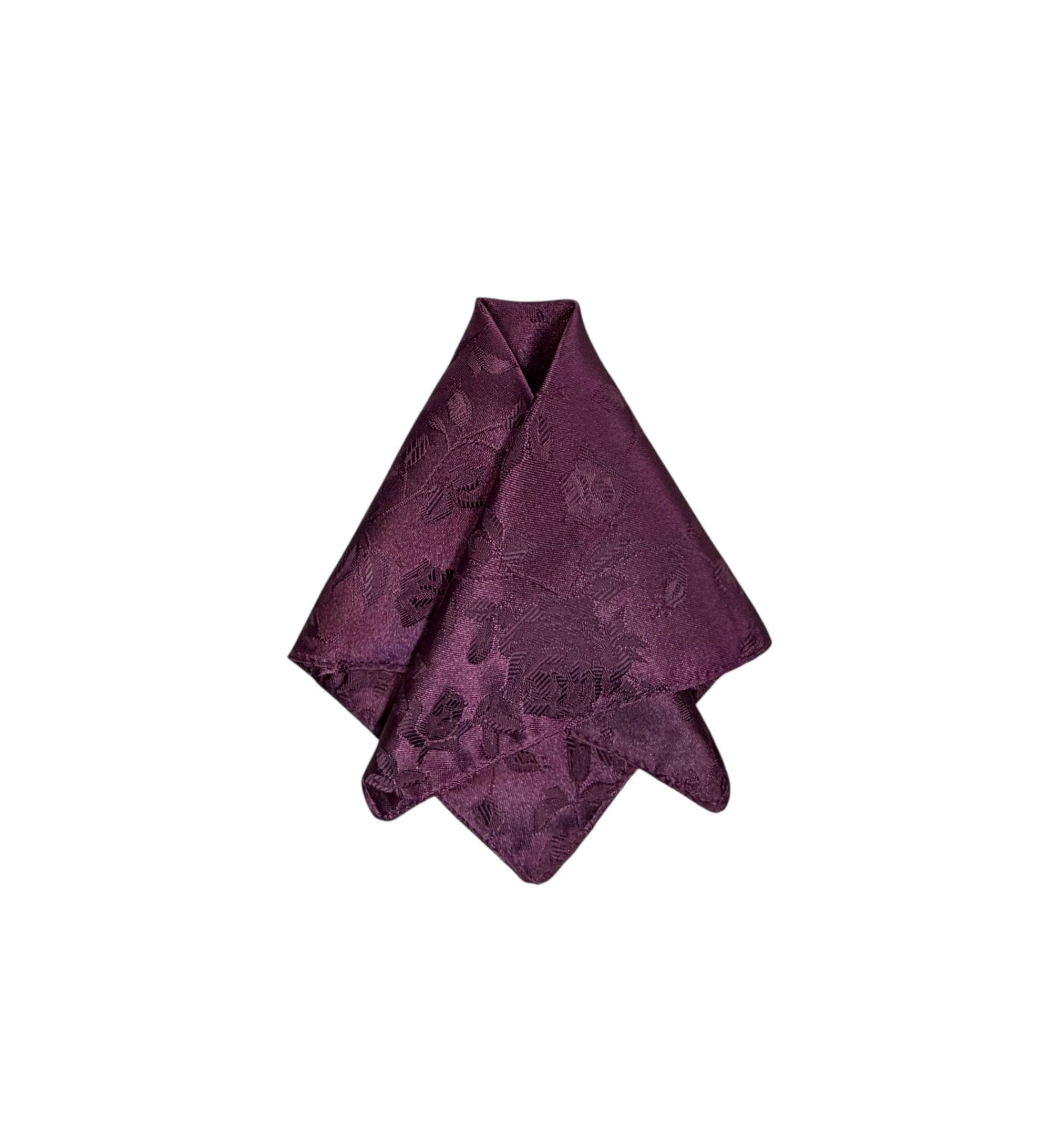 Pocket Square - Berry Plum Rose Satin Jacquard Handkerchief - Adult Men's Sizing - Handcrafted in the USA by Holiday Bow Ties, LLC - The "Lee"